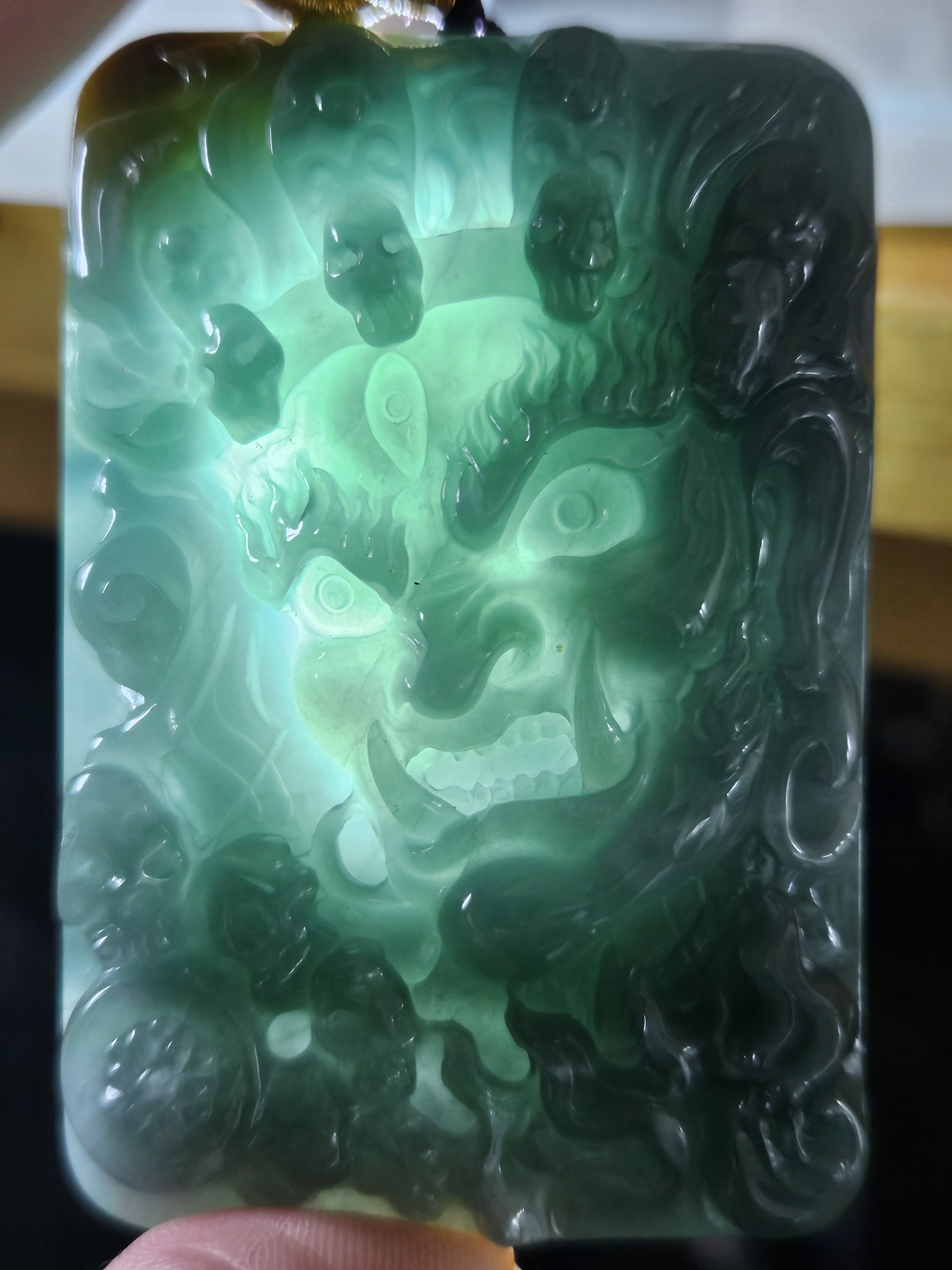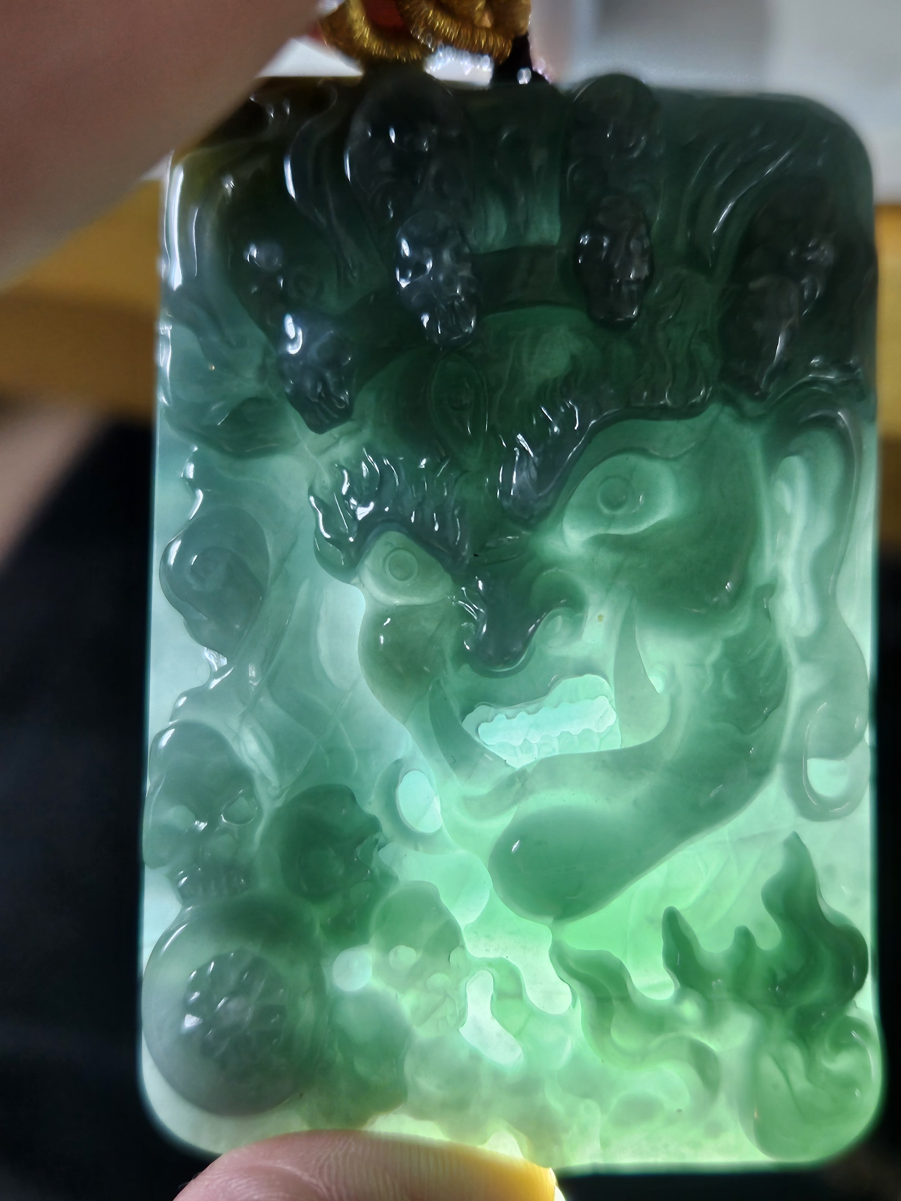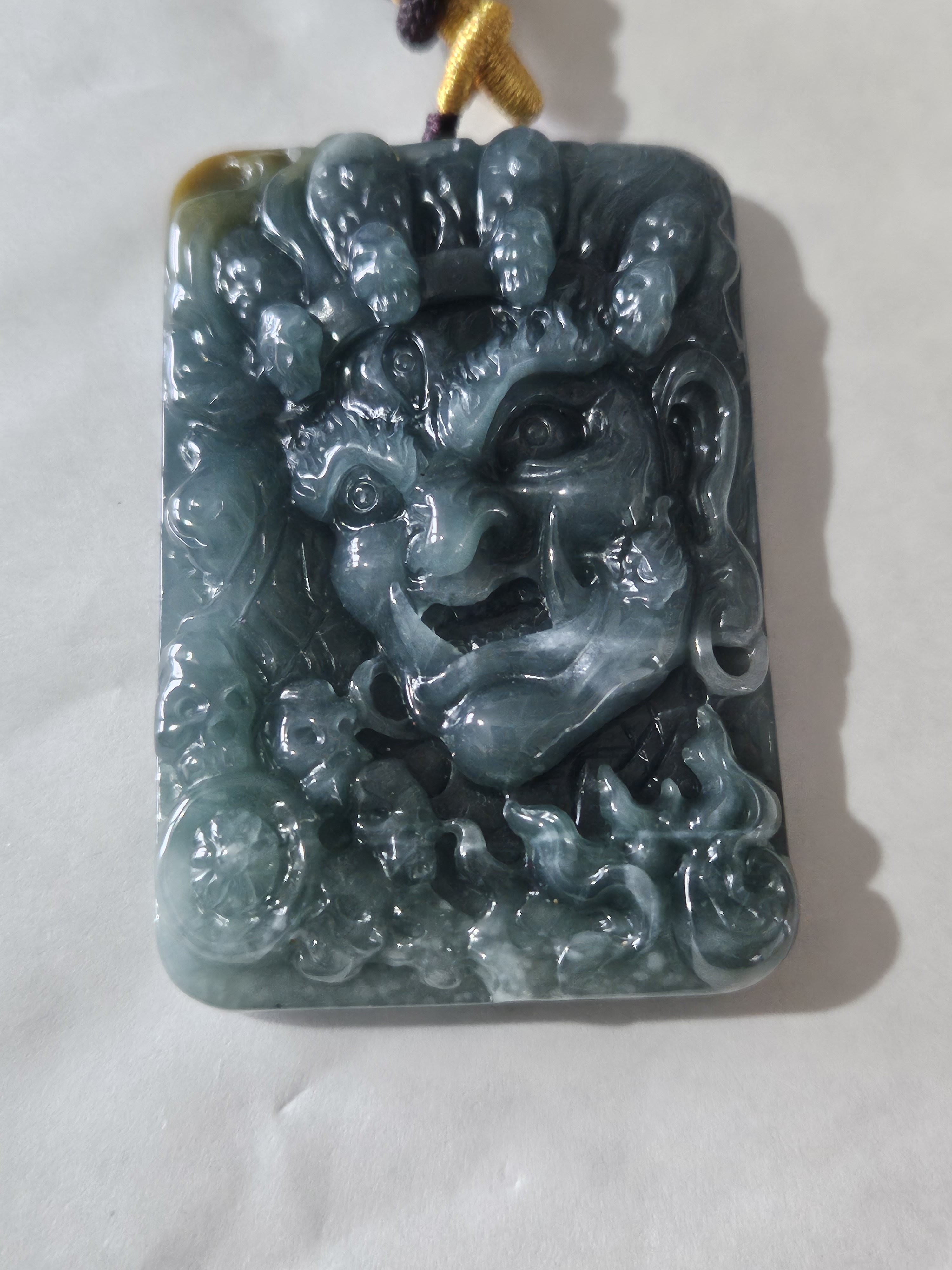 The pendant, made of Guatemala jadeite, is on an adjustable string chain. Measures 62.4 x 41.8 x 13.5mm, weighs 70.47g, comes with a certificate of authenticity £89