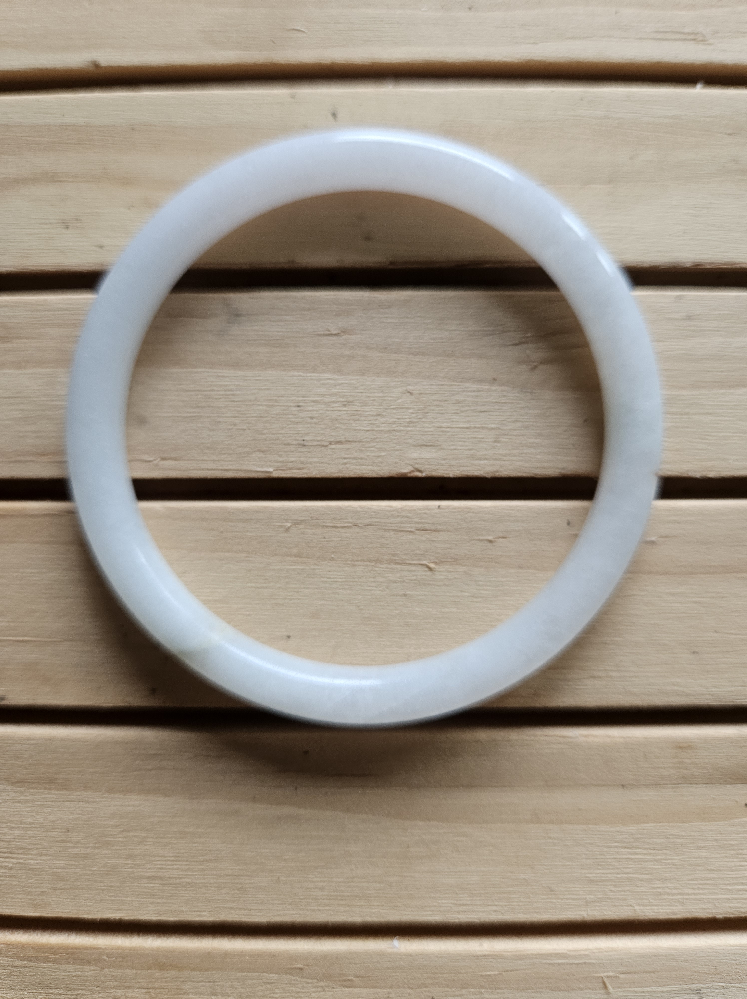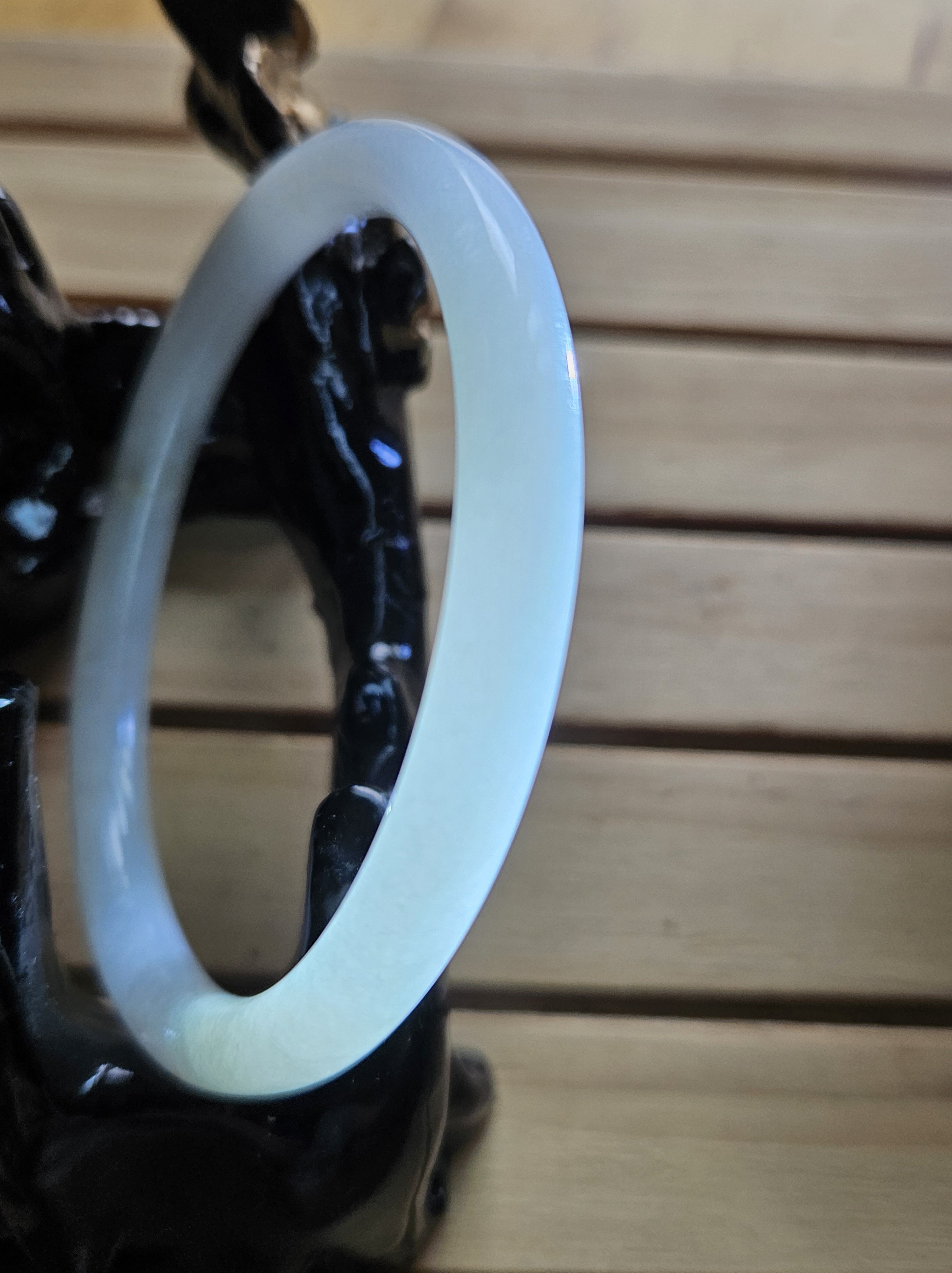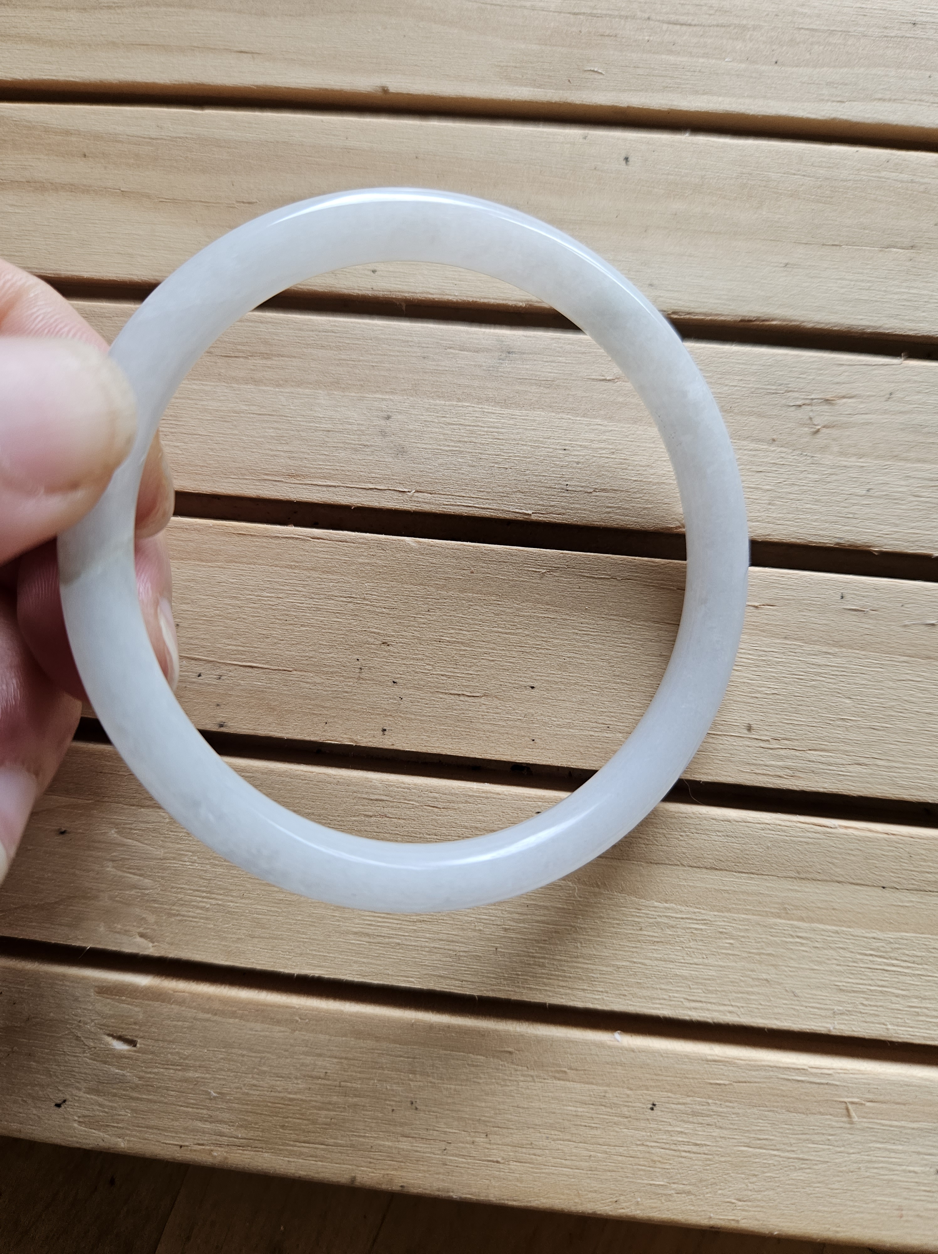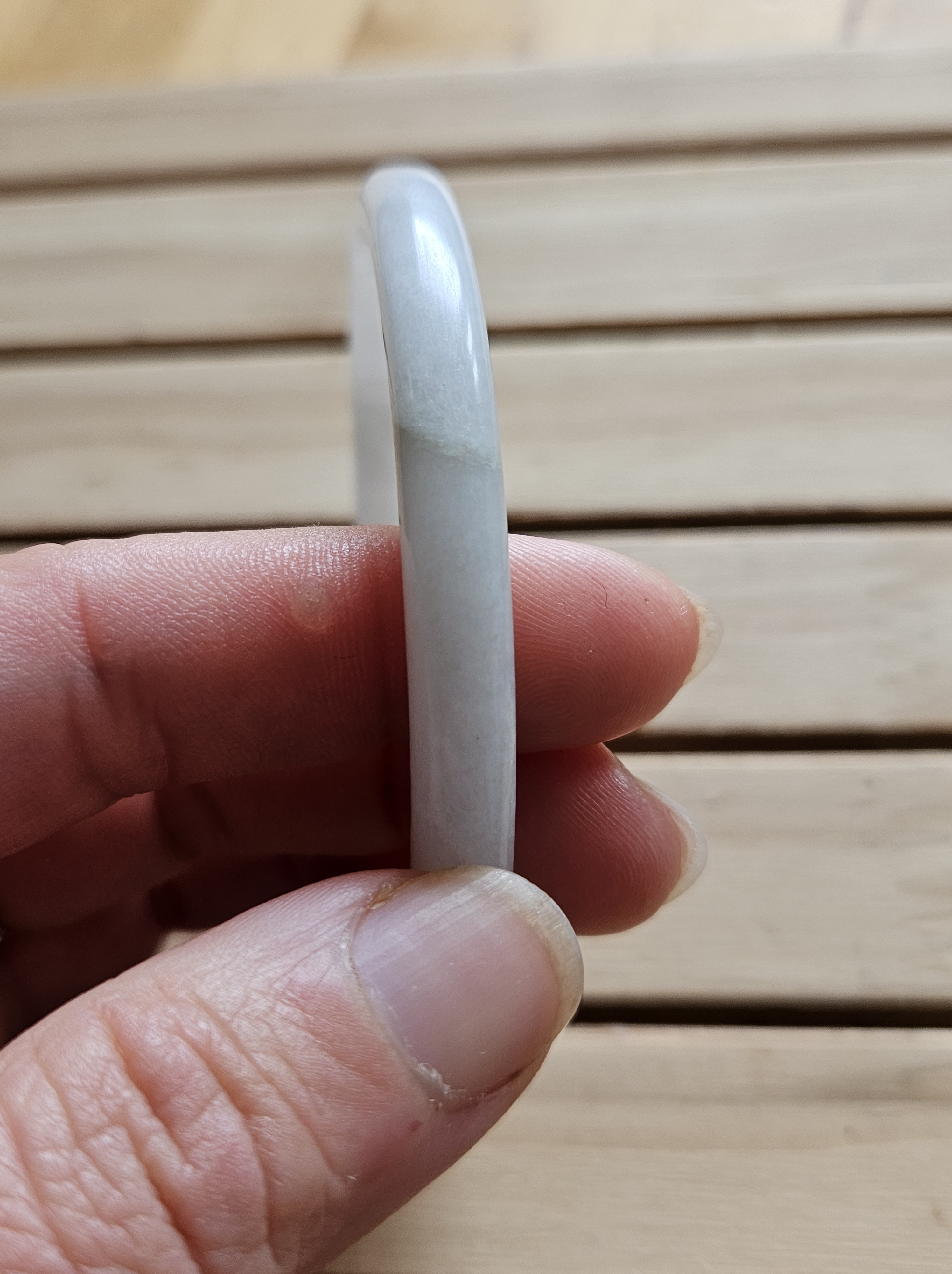 Measuring 55 x 6.5 x 6.7mm, weigh 21.63g, this lovely Burmese jadeite bangle can be worn on its own or make a pair with another similar size bangle that creates lovely sound when they clang together hence the term ding dang for a pair. Fits up to 57mm, comes with a certificate of authenticity £69