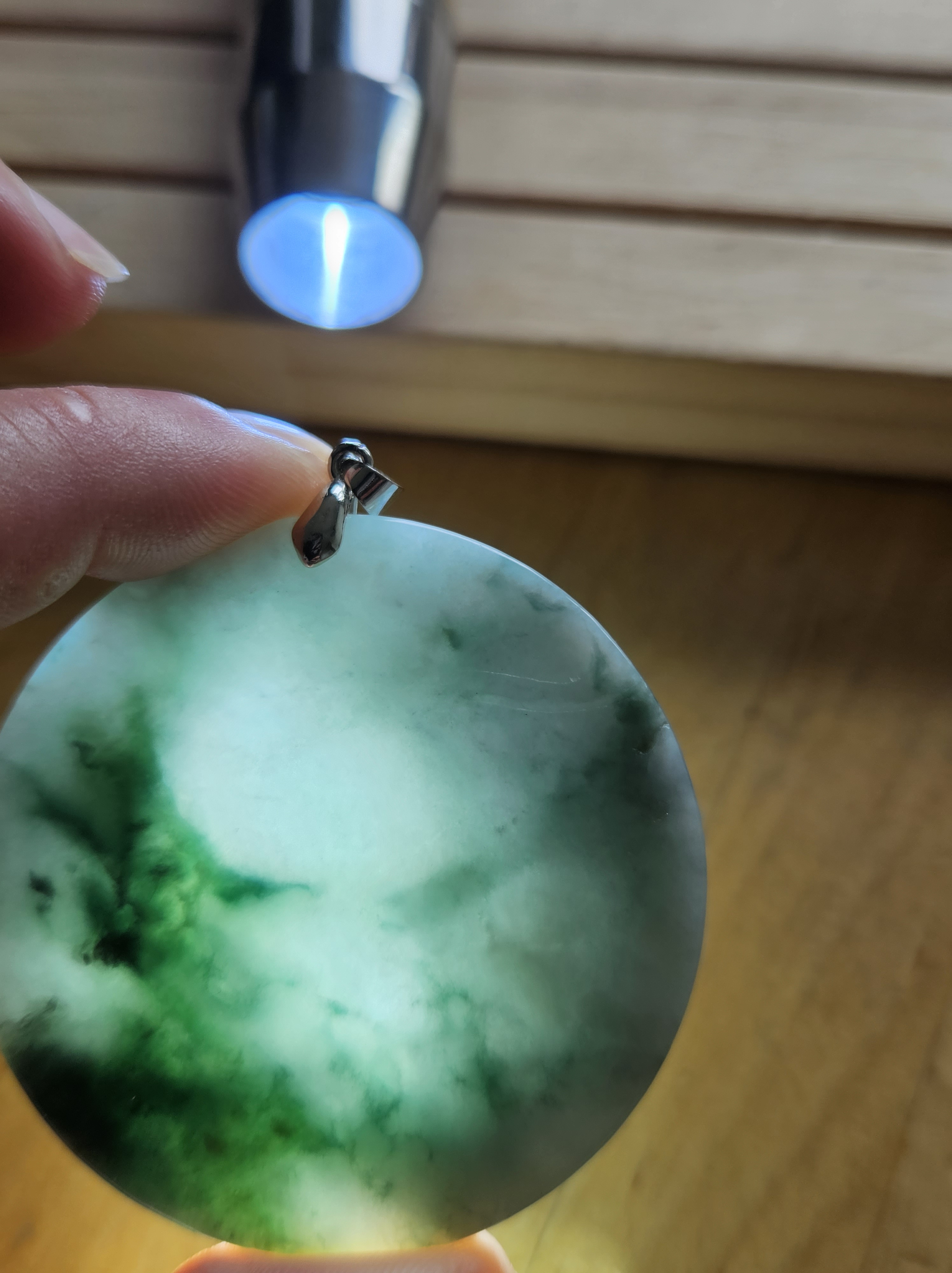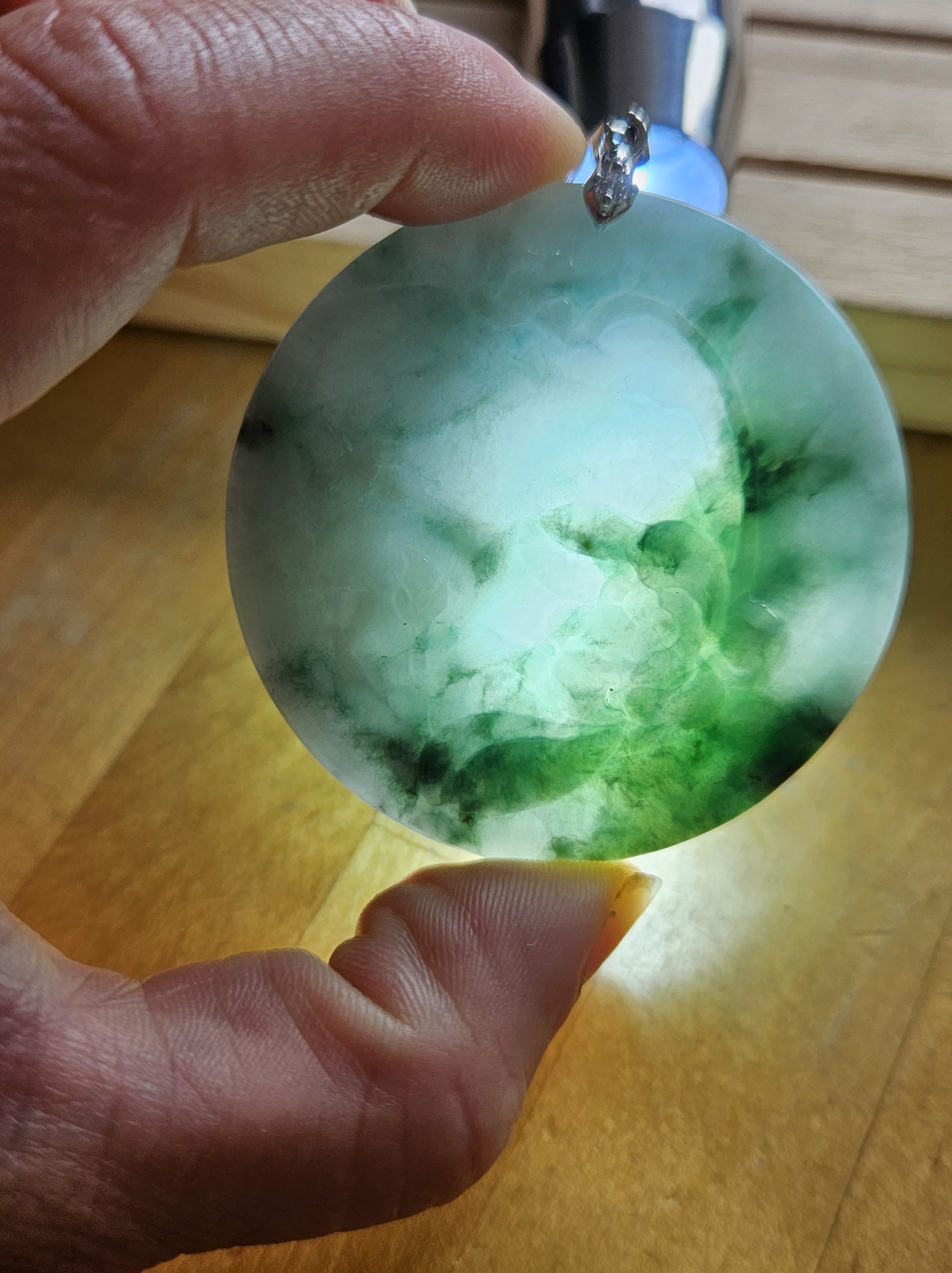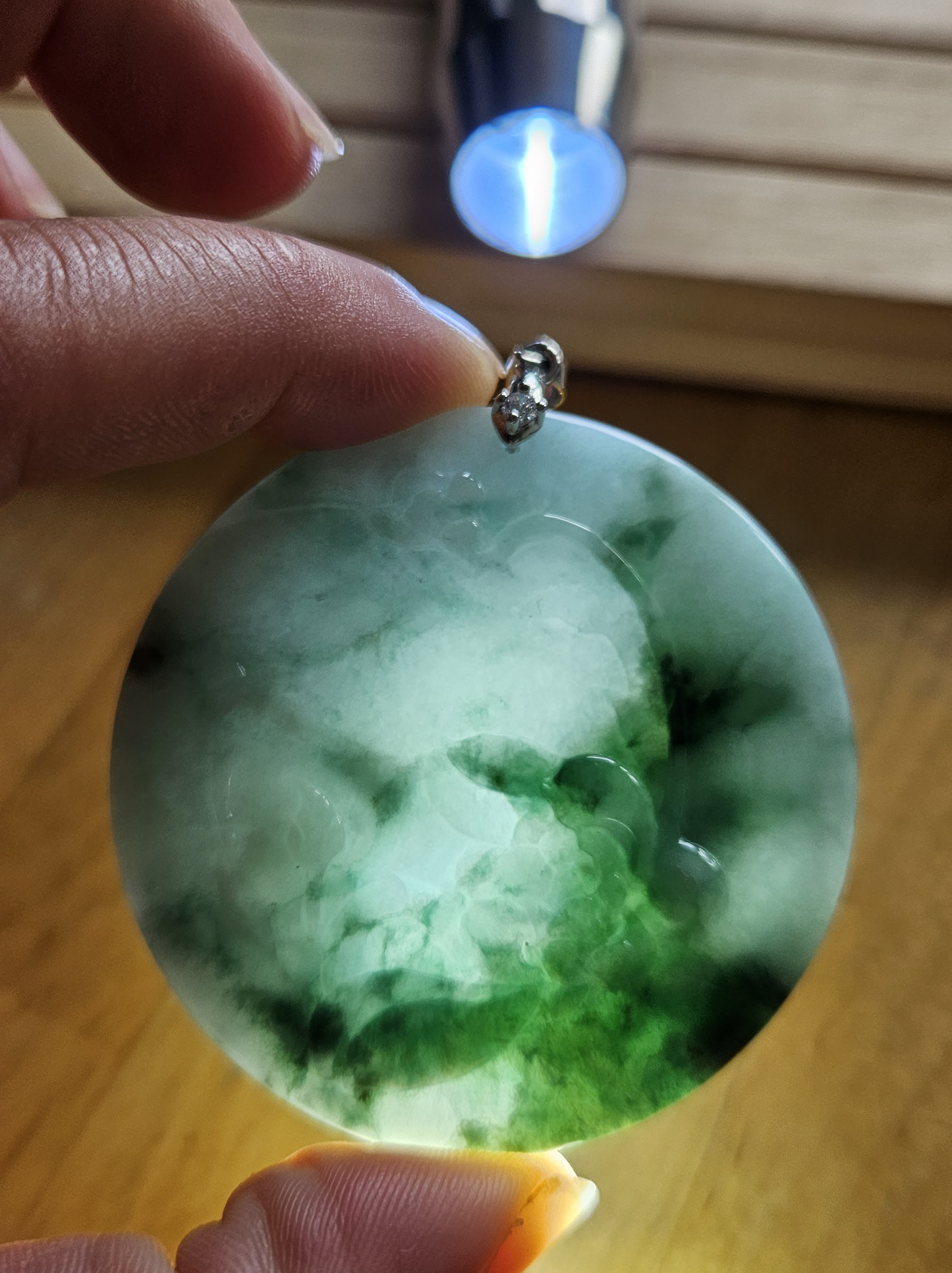Whether you’re religious or not and whether you have a lot of knowledge on the lotus flower or not — deriving from the Buddhist meaning — the lotus flower signifies purity, rebirth, and strength. “It is all about new beginnings and starting fresh as our senses become awakened to something new. Measures 51.5 x 6mm, this is a lovely Burmese jadeite with gorgeous blooms. The back of the jade is smooth so you can double the pendant as a wushipai无事牌, which means may every go smoothly and nothing bad befalls you. £40