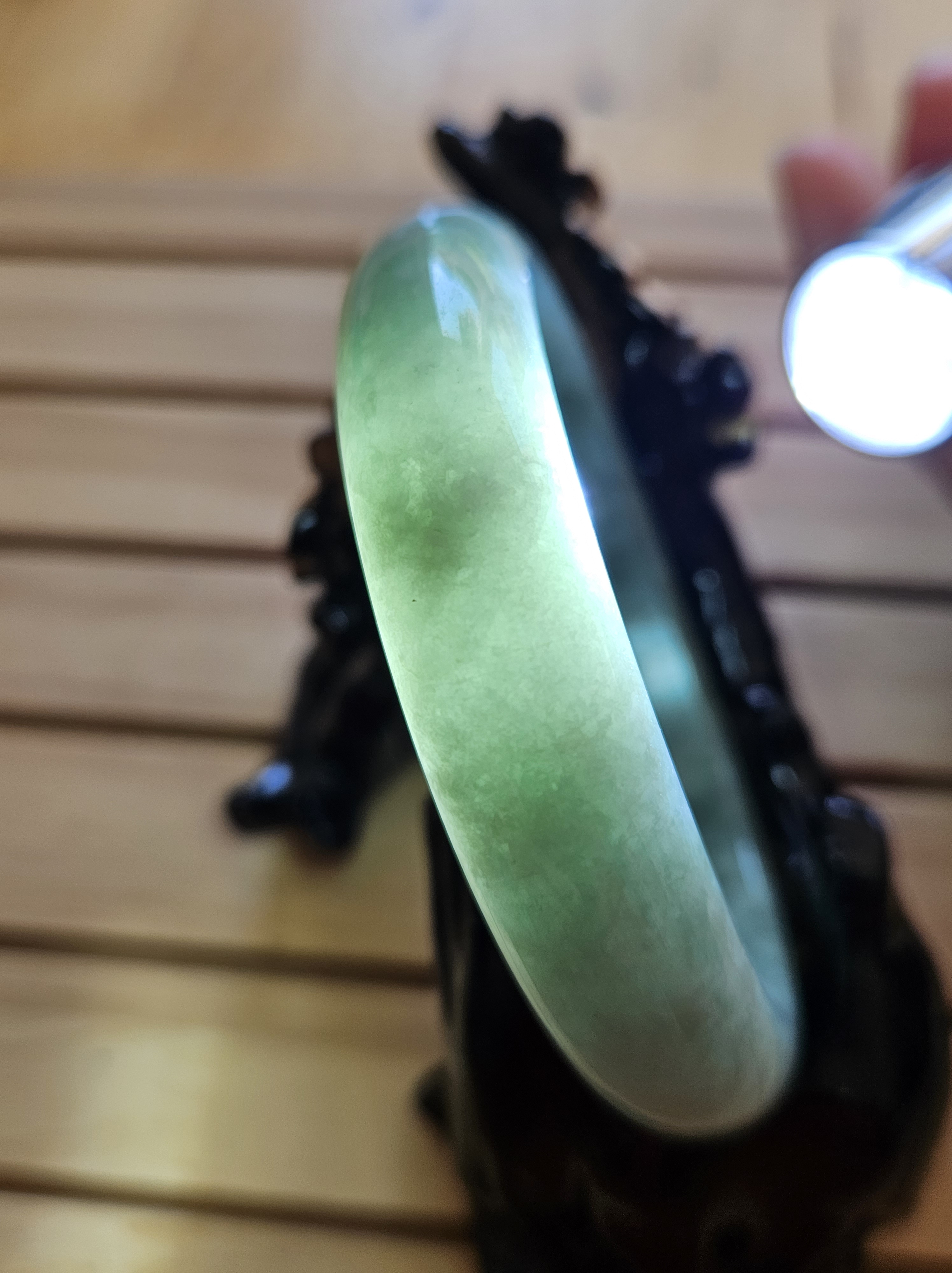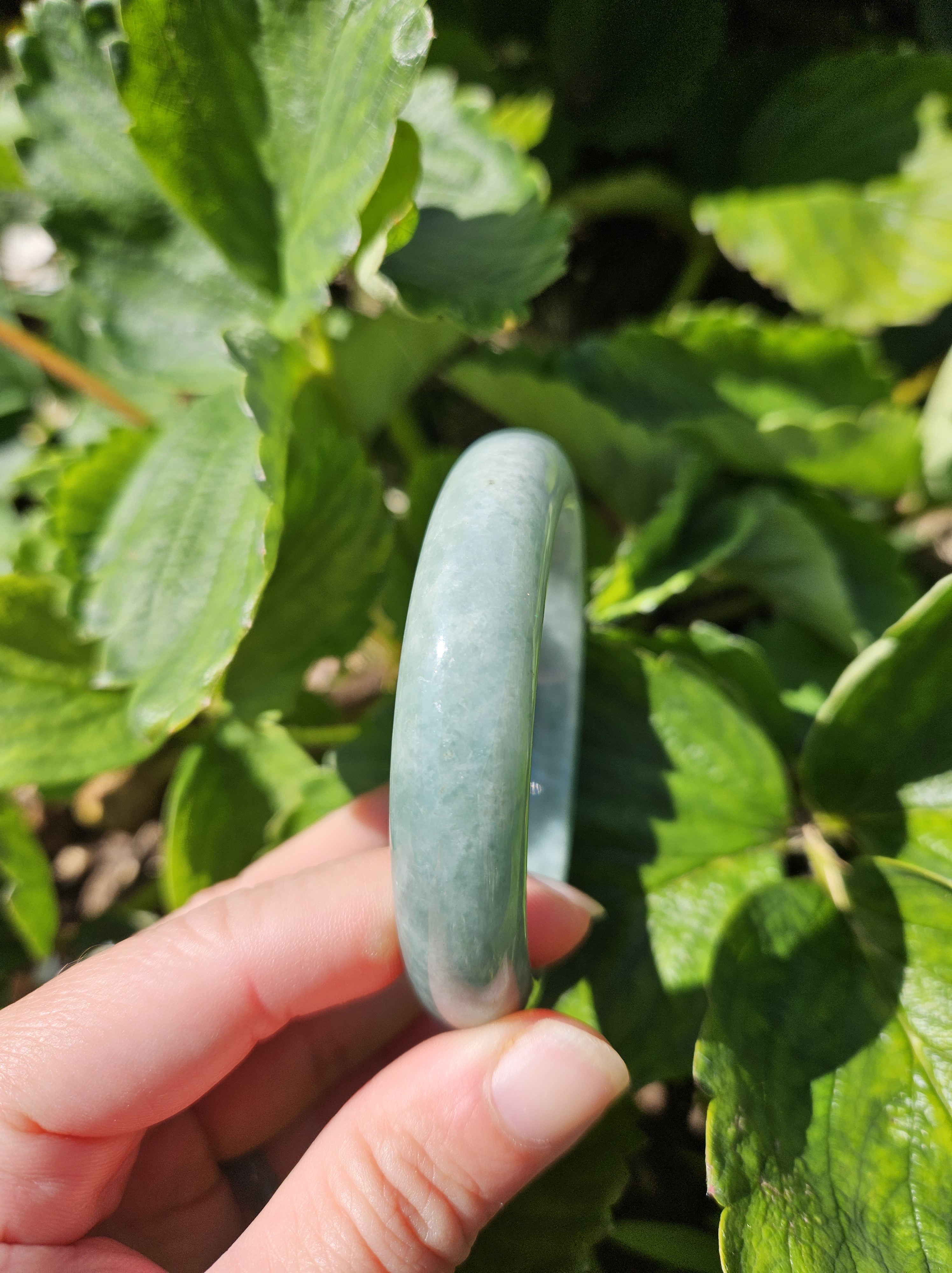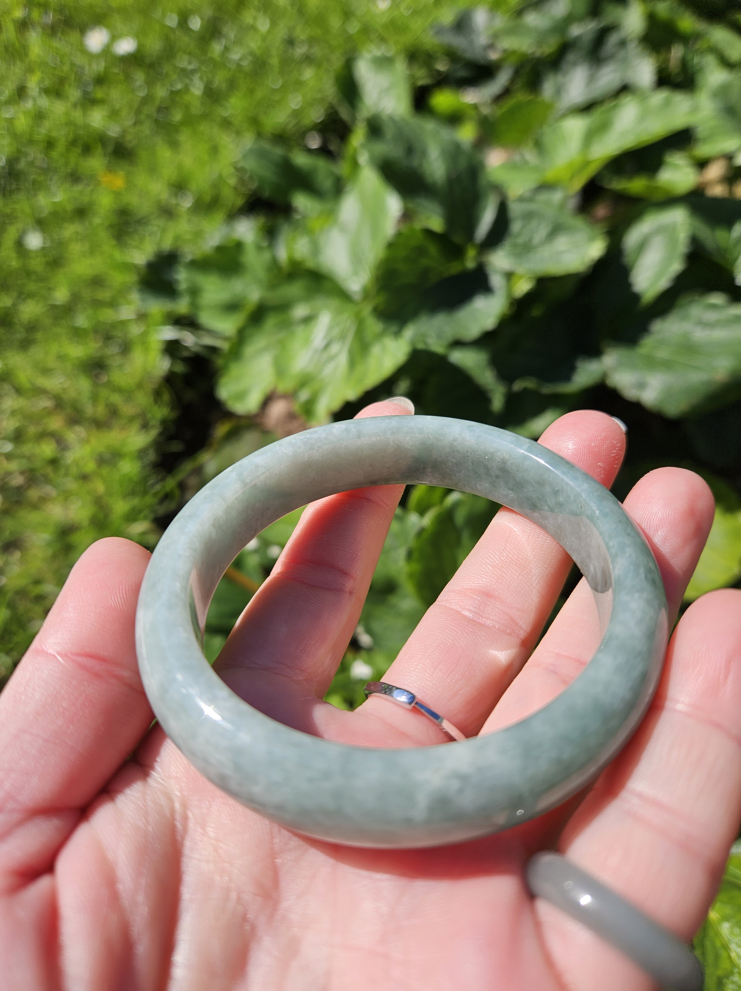 Lovely light green bangle made of Burmese jadeite measures 57.1 x 13.4 x 8.1mm, weighs 58.46g, comes with a certificate of authenticity £119