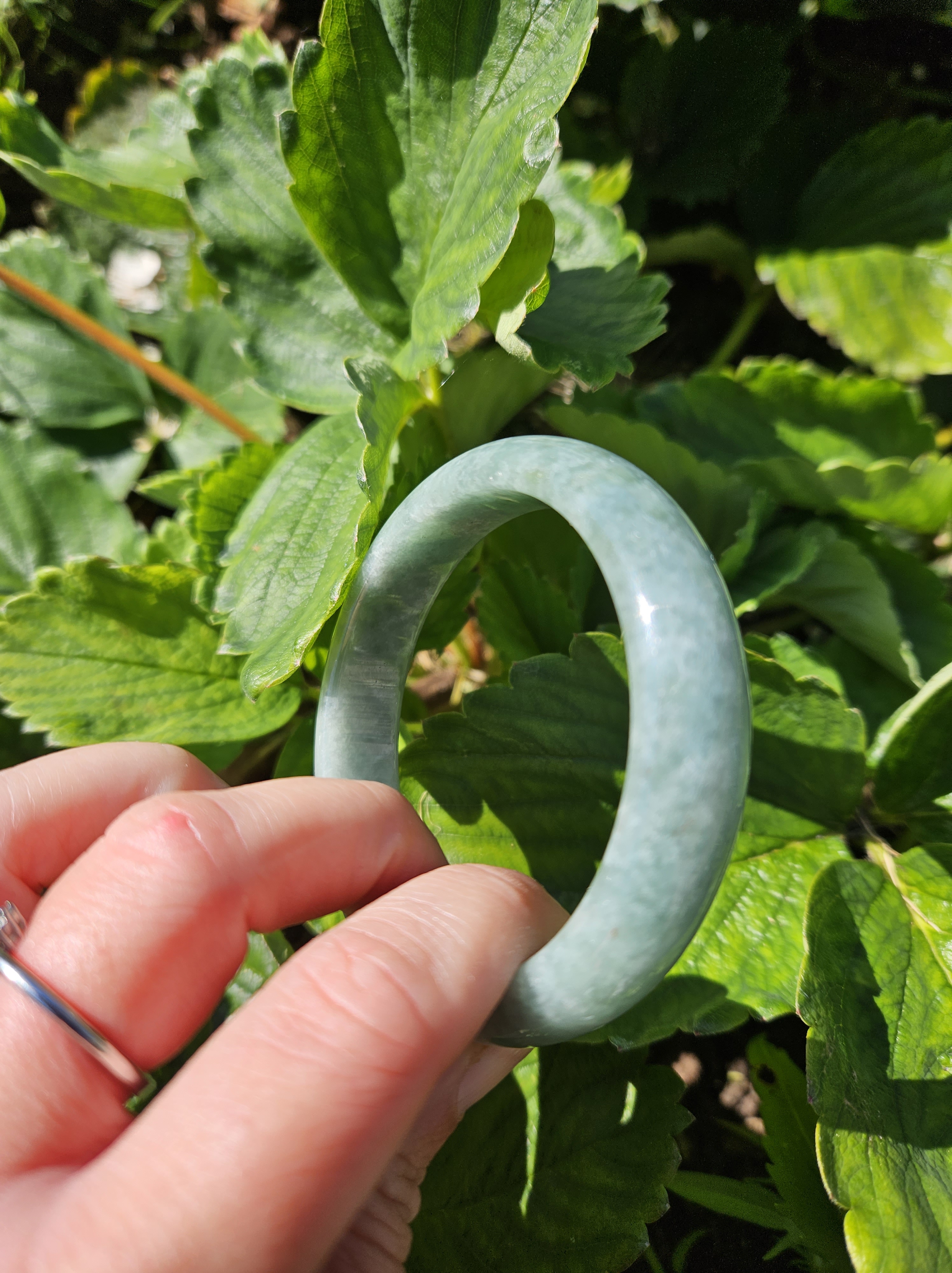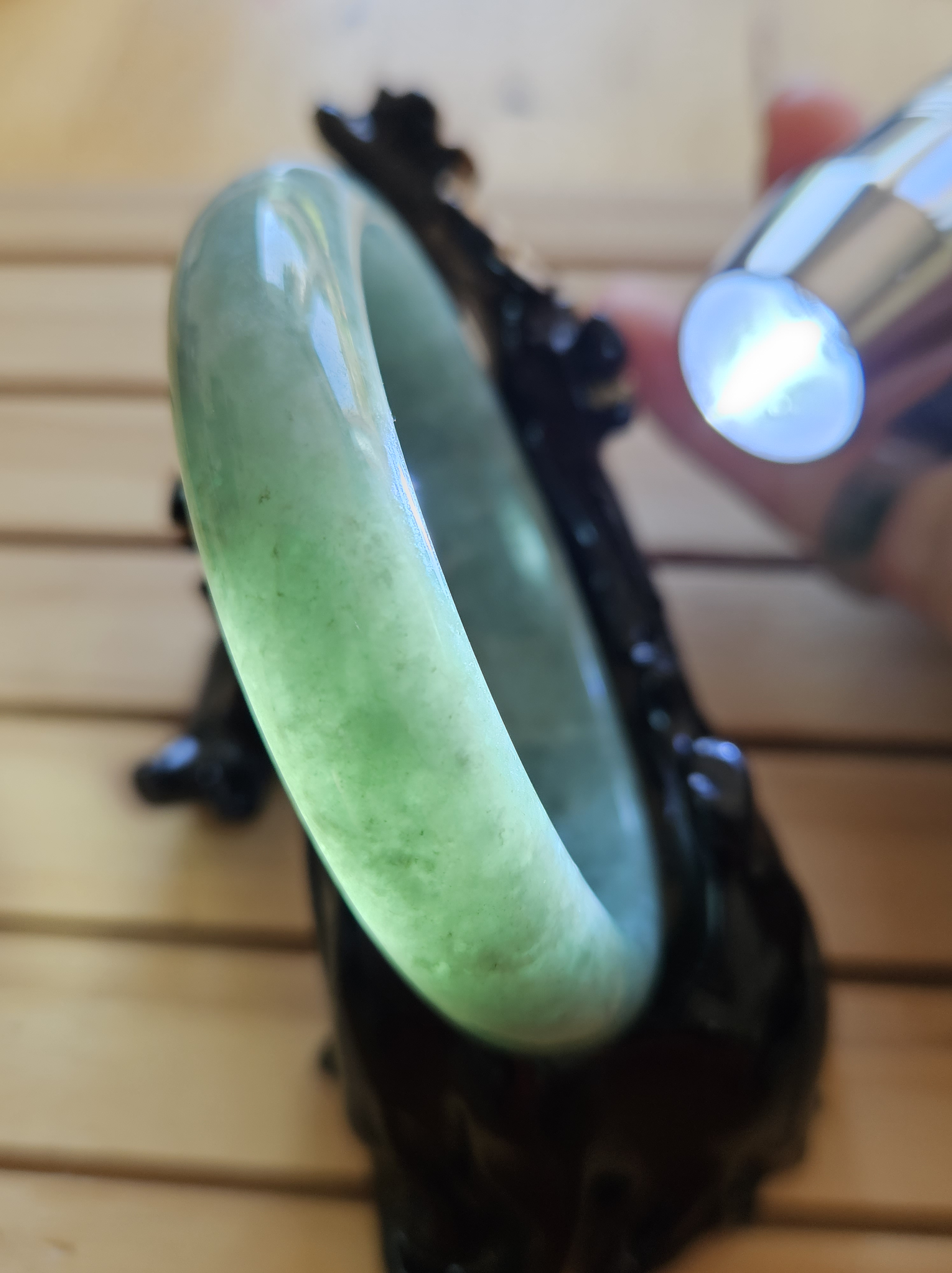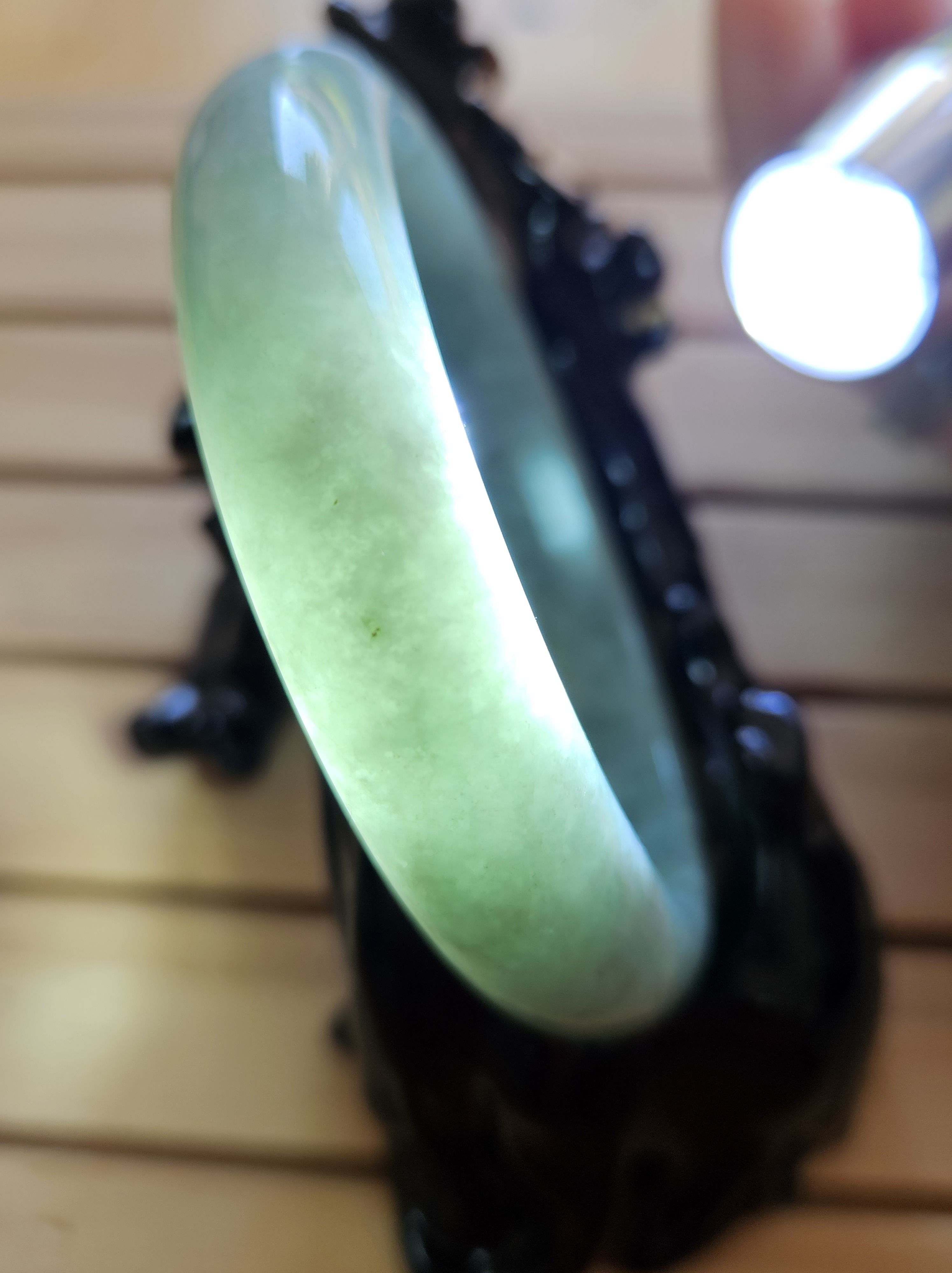 Lovely light green bangle made of Burmese jadeite measures 57.1 x 13.4 x 8.1mm, weighs 58.46g, comes with a certificate of authenticity £119