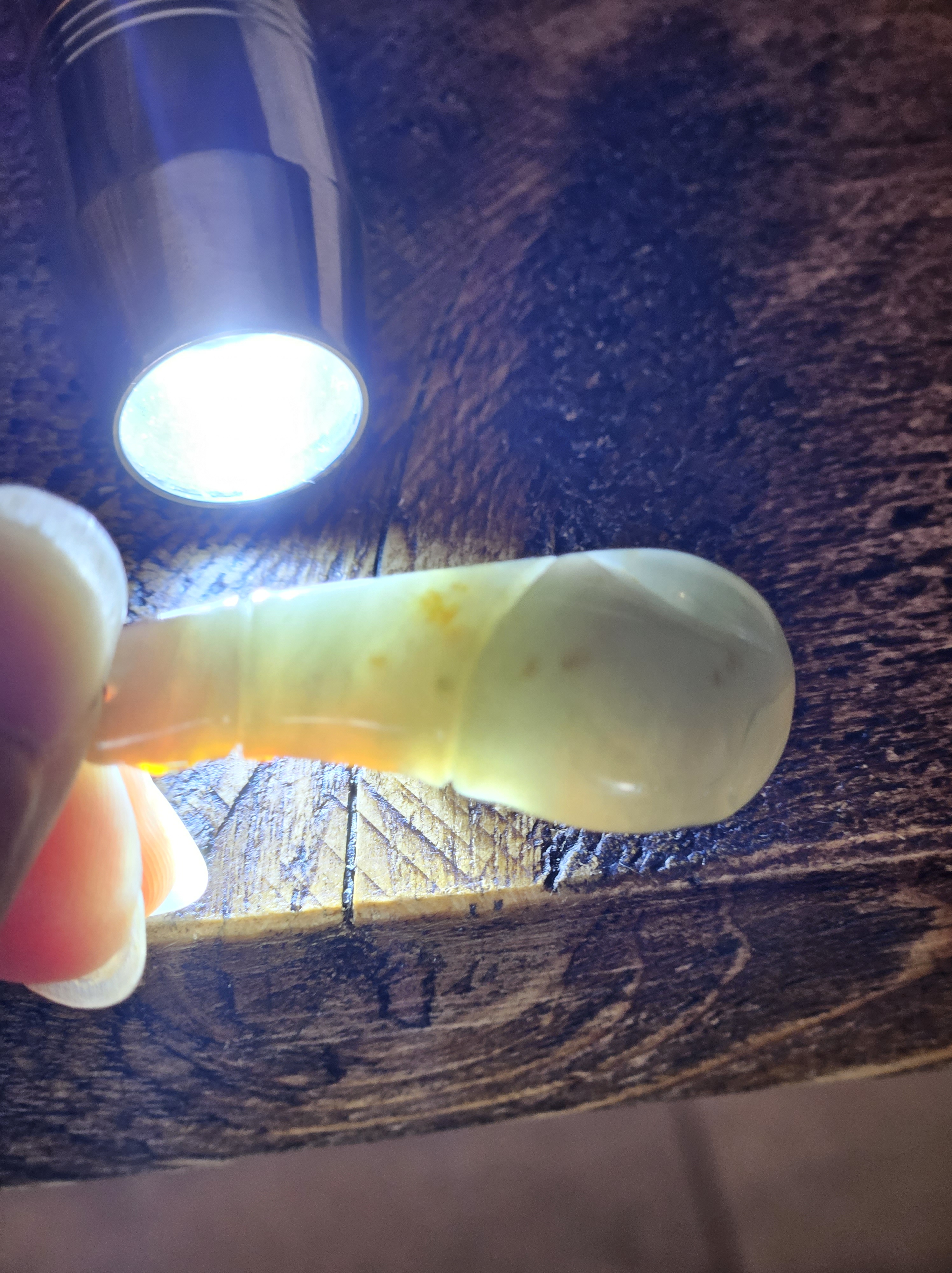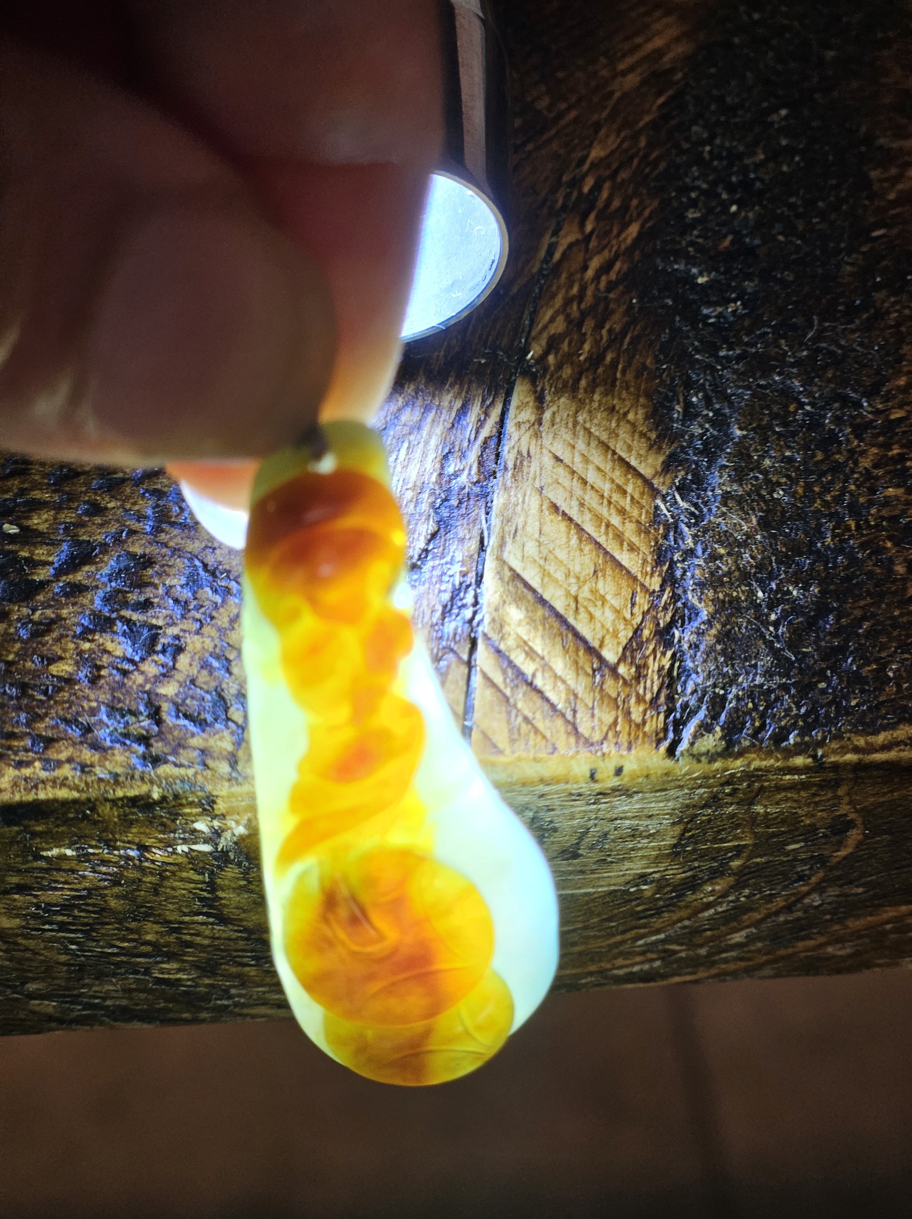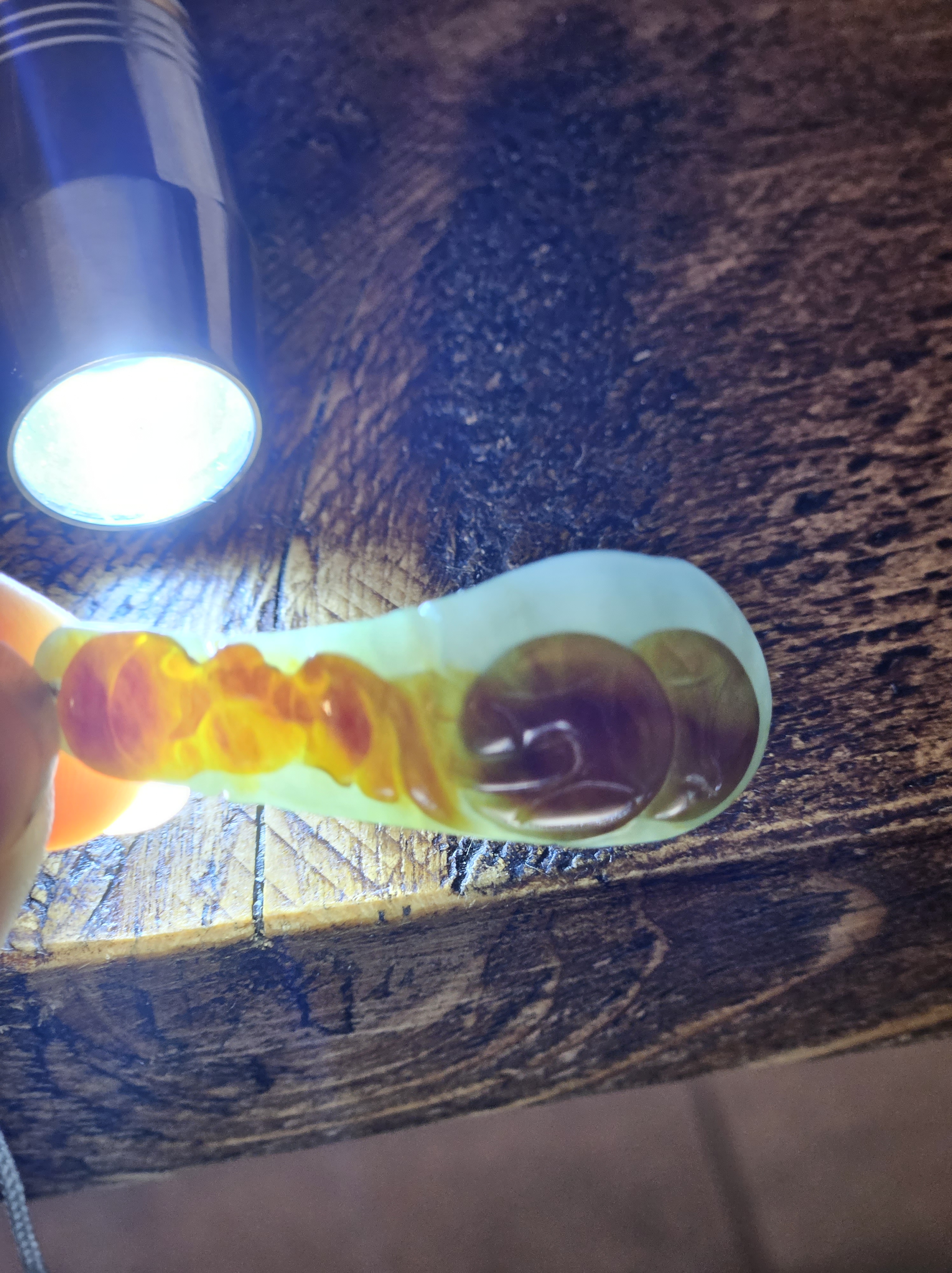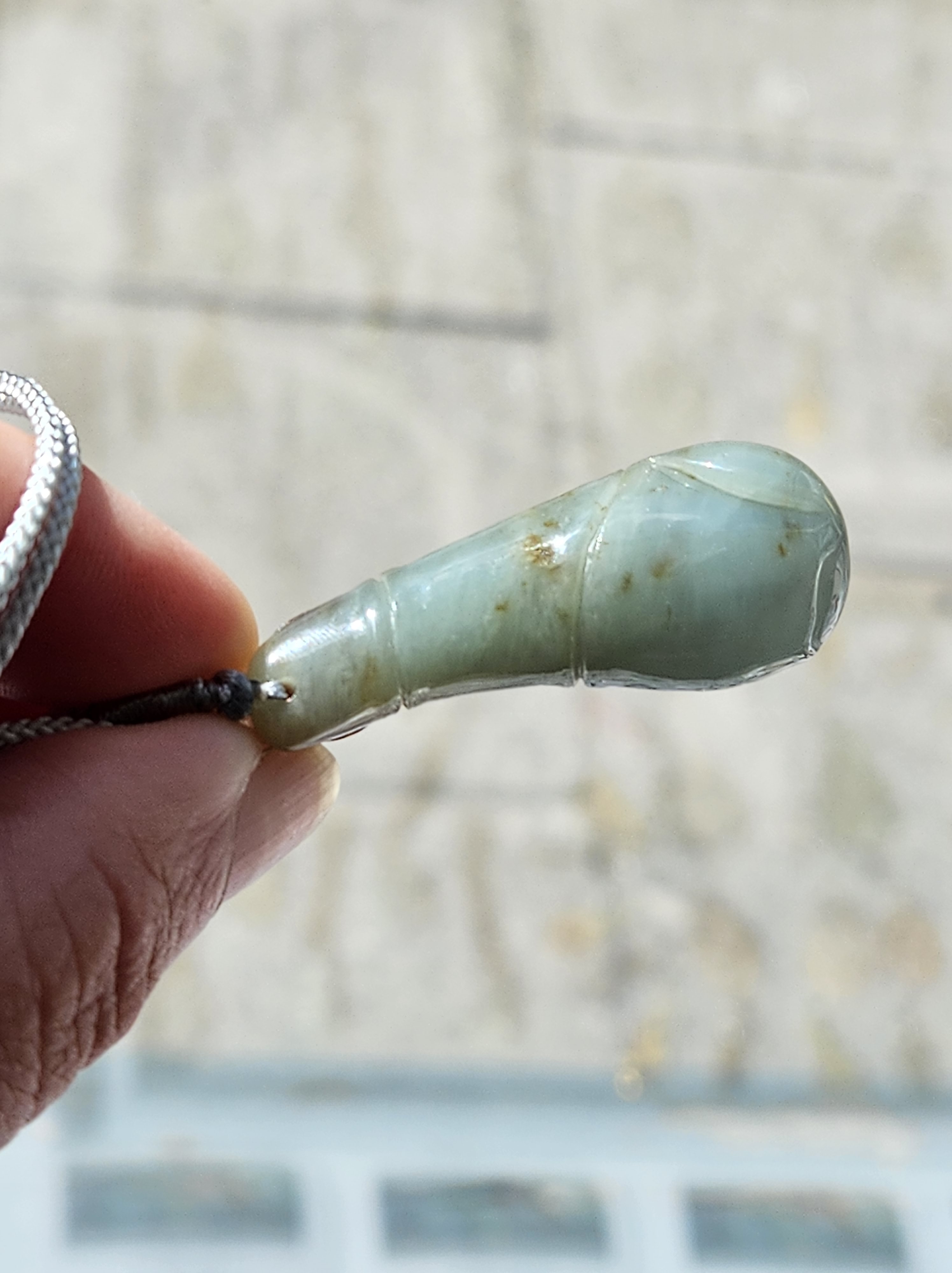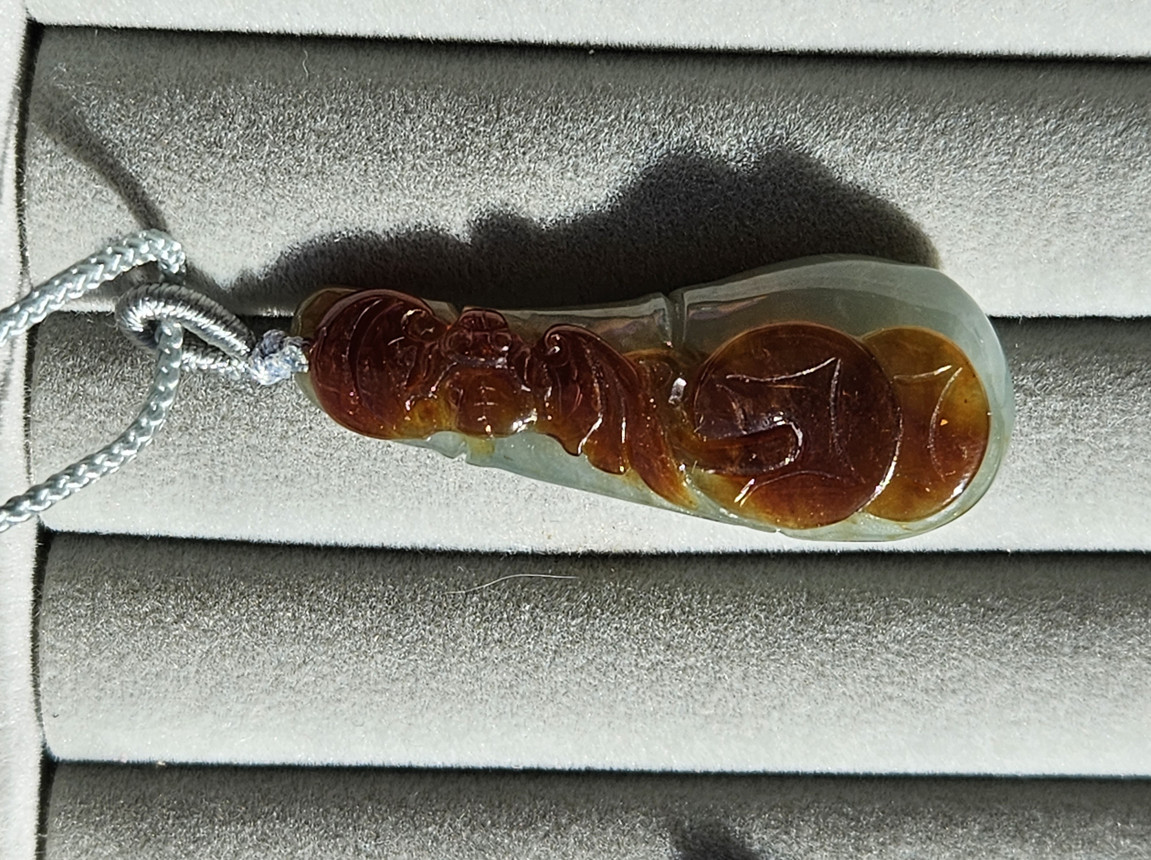 Bat in flight highlighted by natural red colour of the jade, representing happiness or blessings; the Chinese word for bat is fu, which provides the homophone — a word with the same sound — for ‘happiness’. The coins engraved on it represent wealth and good luck. Measures 43.4 x 16.5 x 10.7, weighs 12.11g, comes with a certificate of authenticity £69