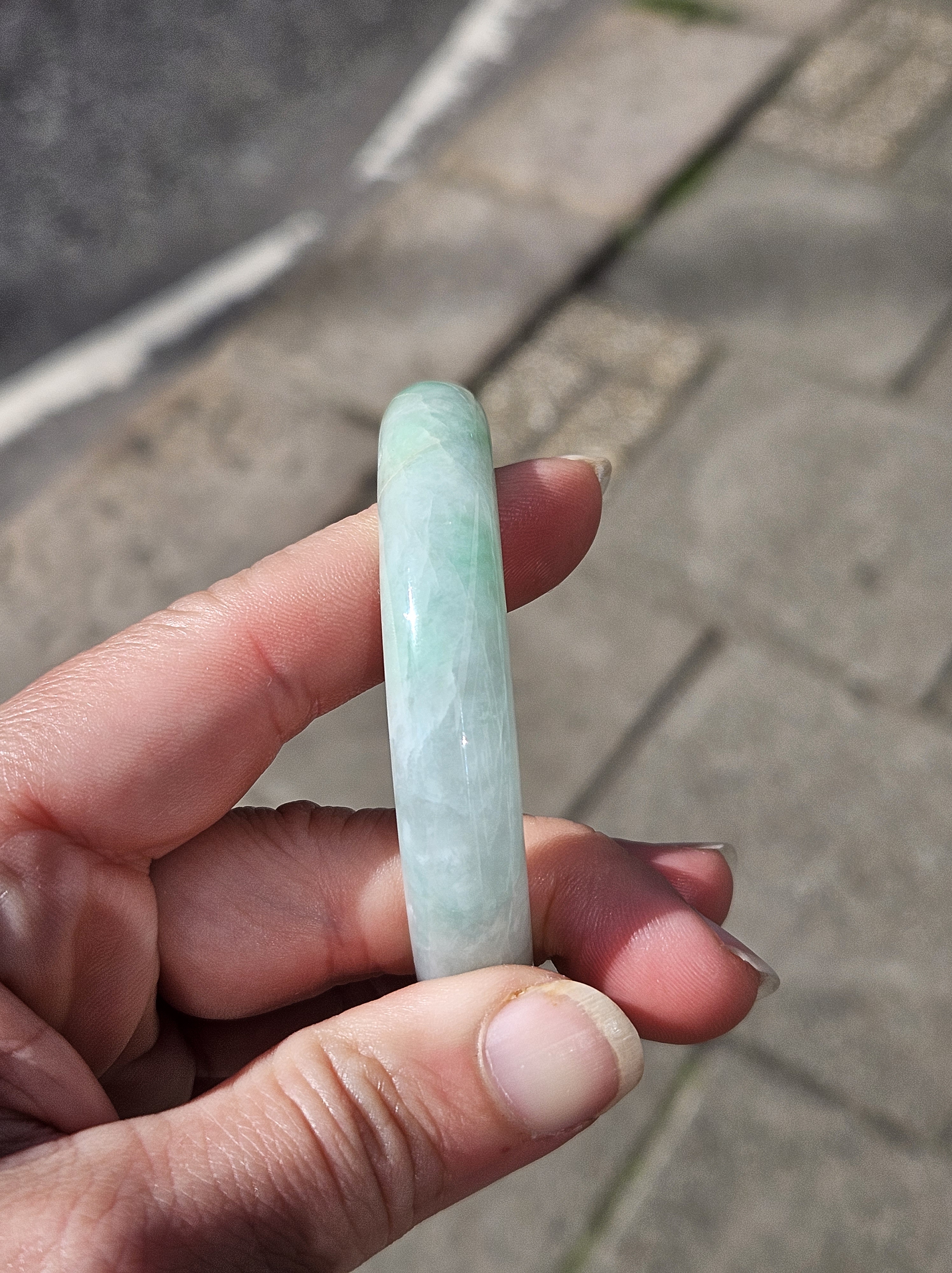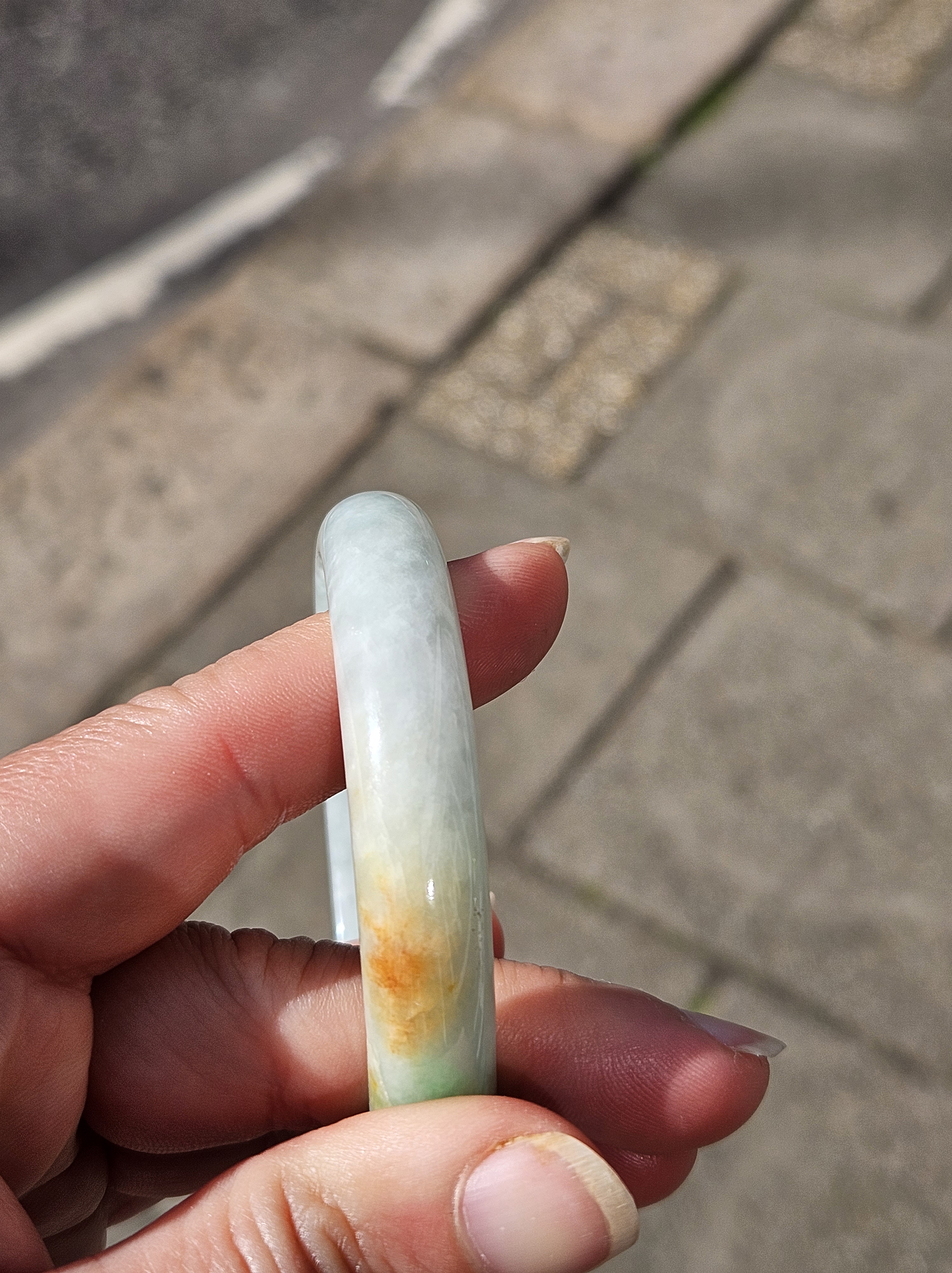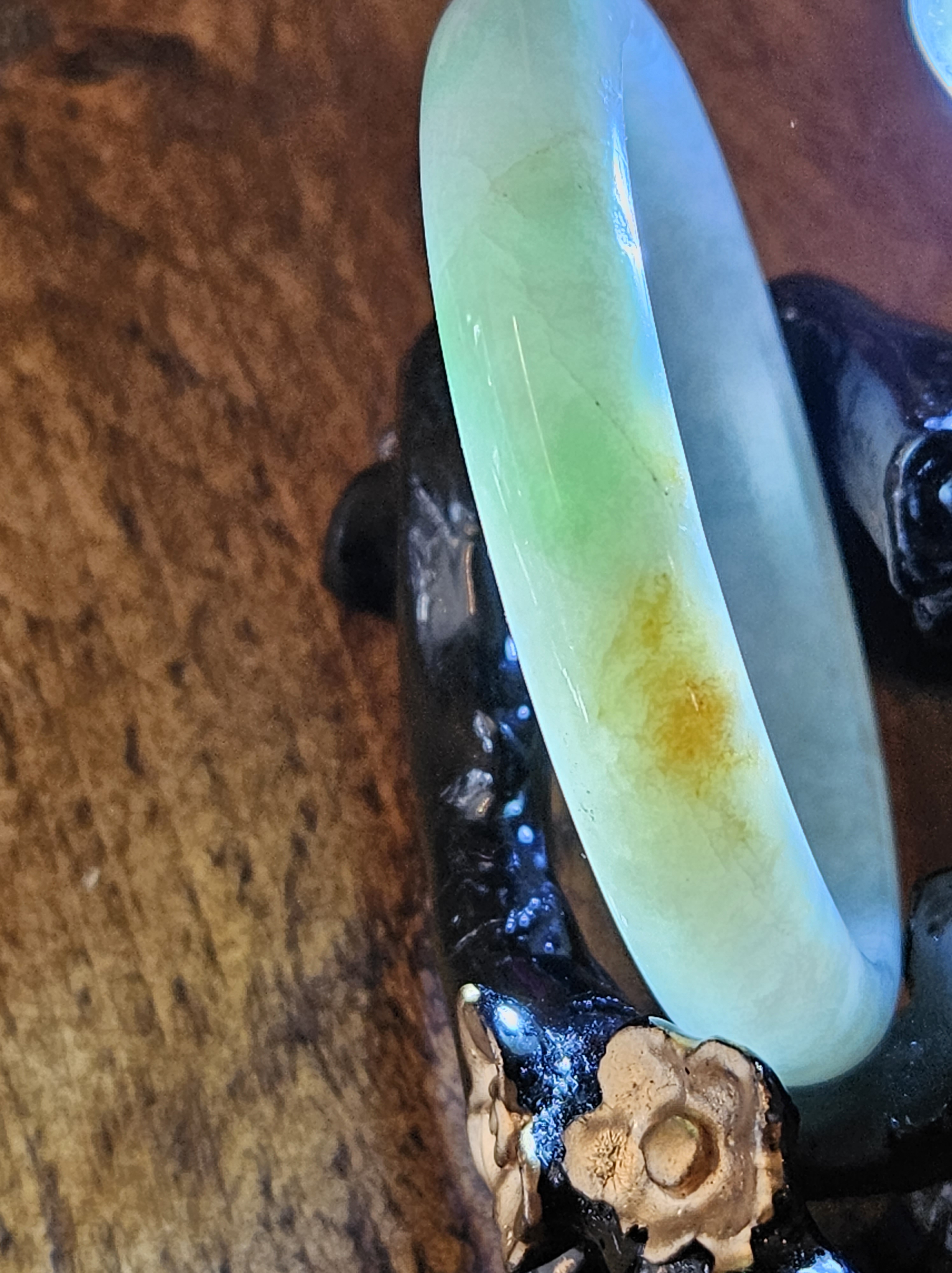 Gorgeous light green bangle with a patch of apple green and red measures 56.5 x 11.3 x 6.9mm, weighs 41.38g, comes with a certificate of authenticity £288