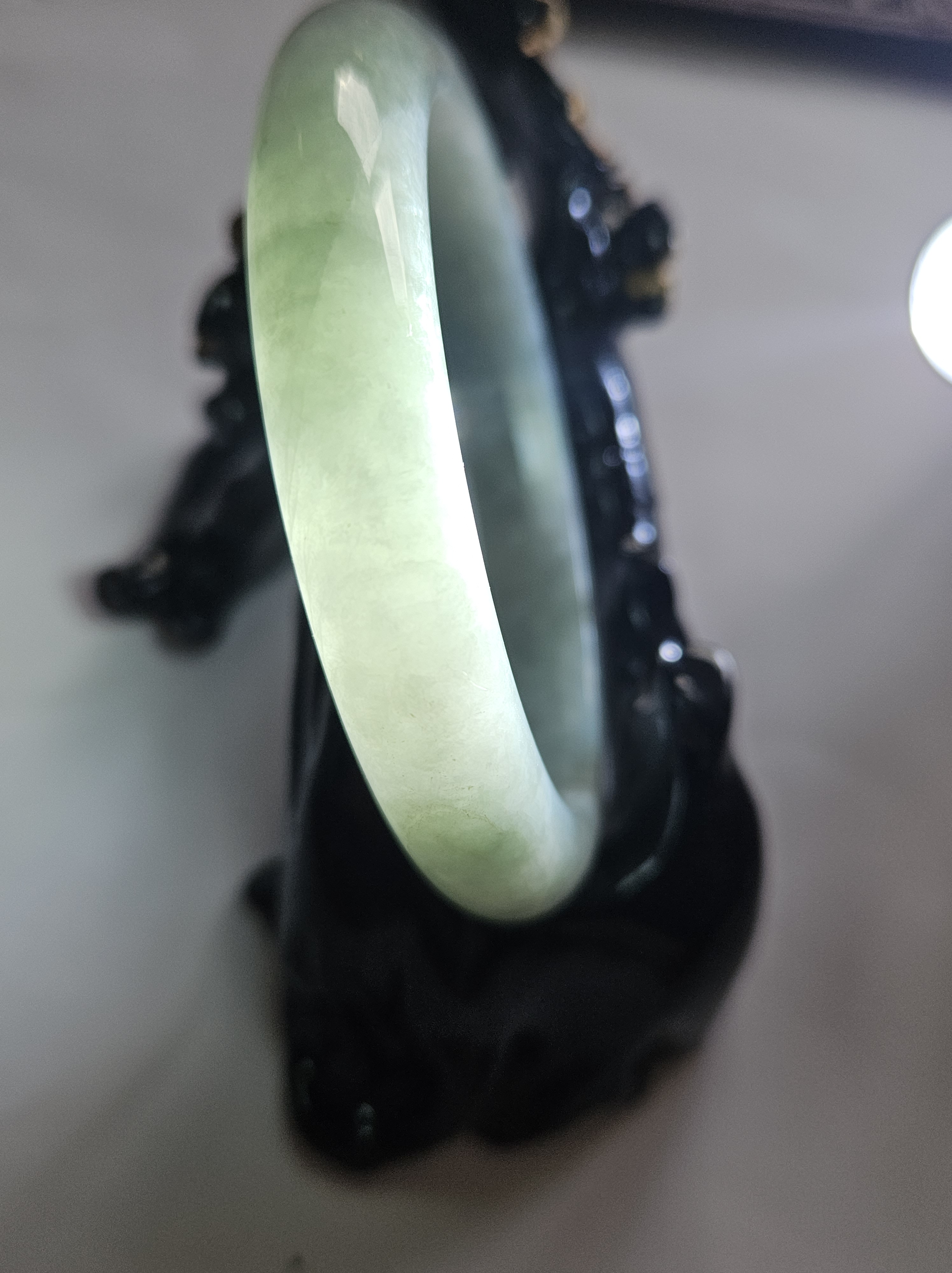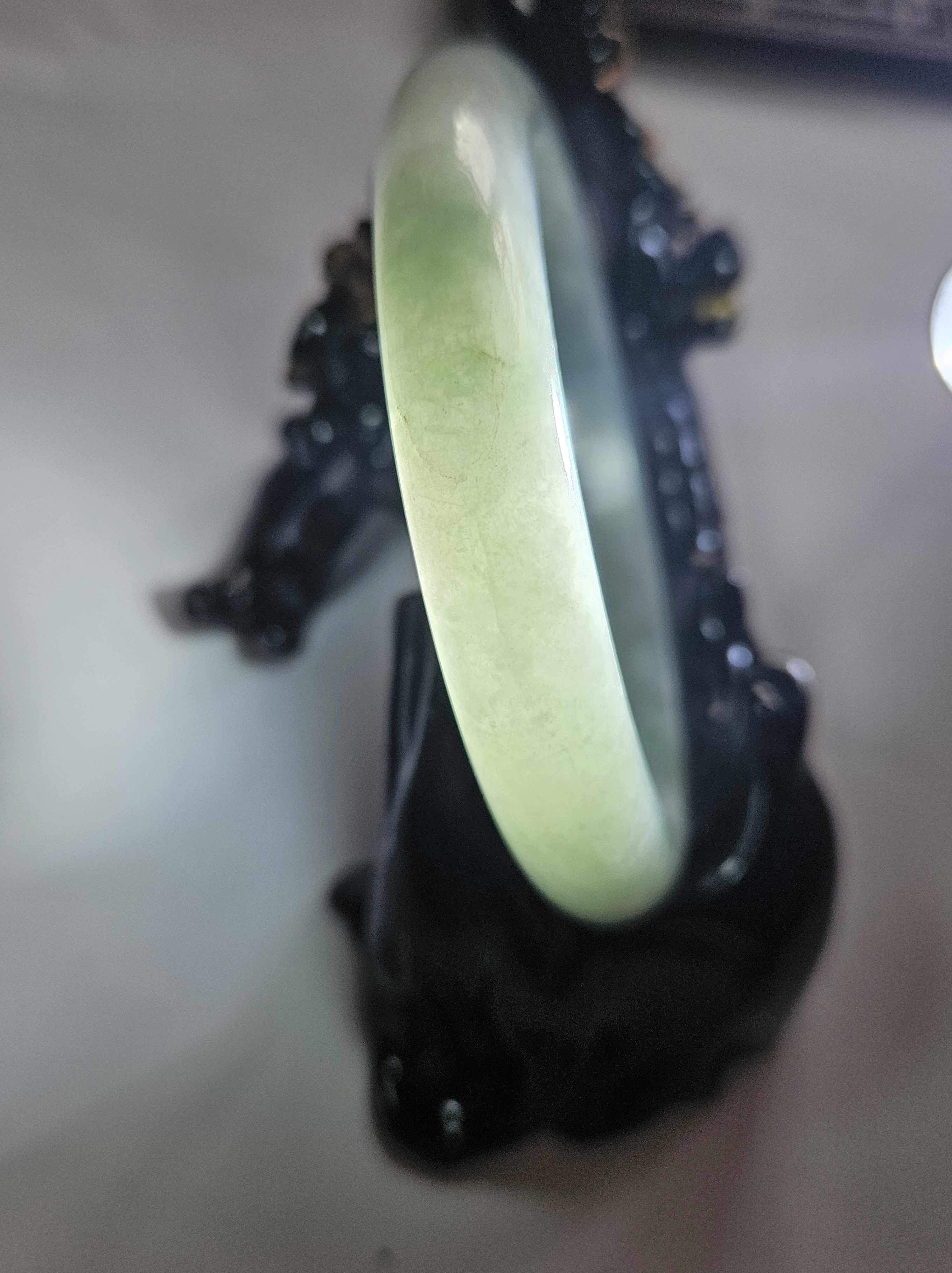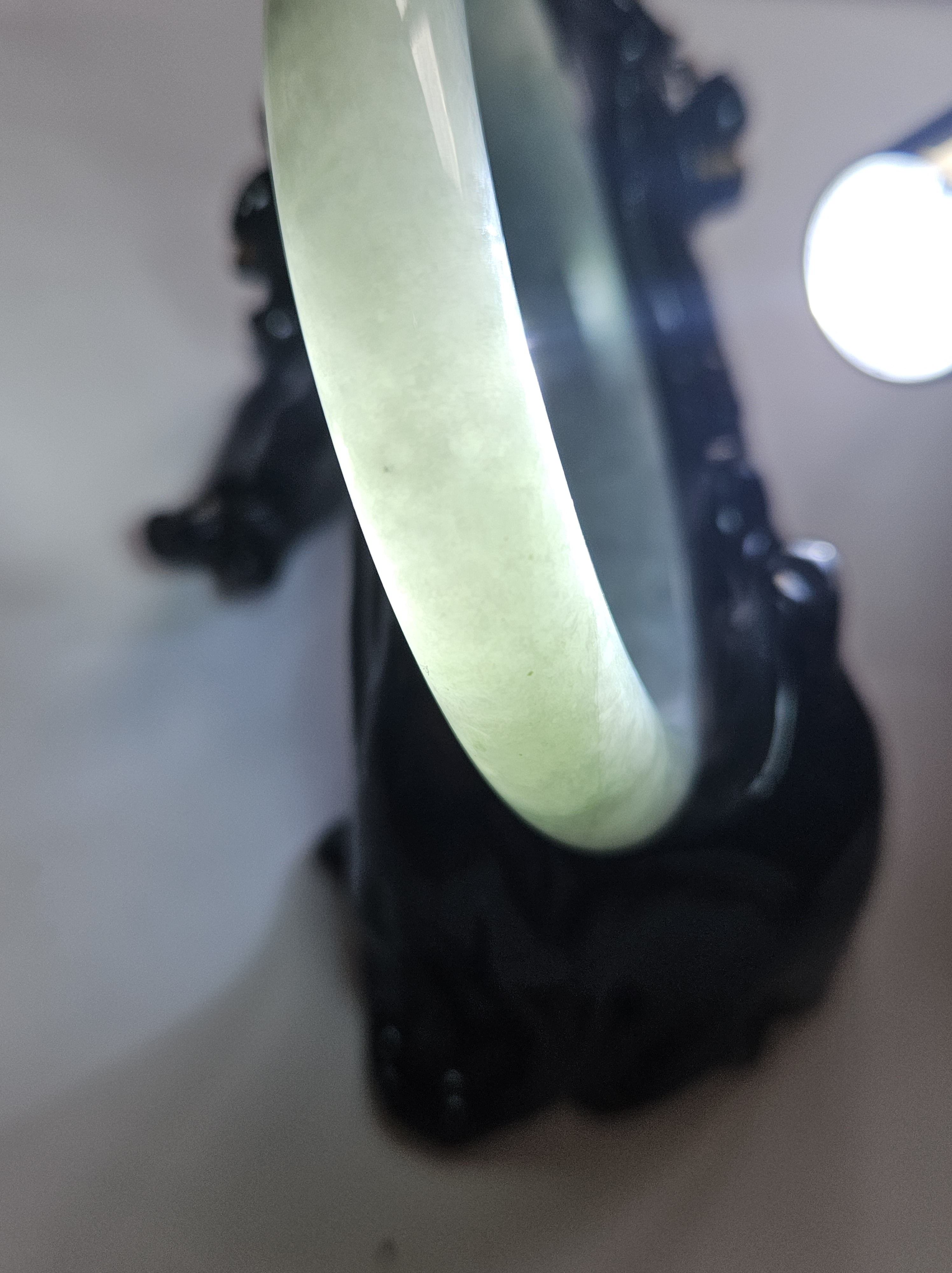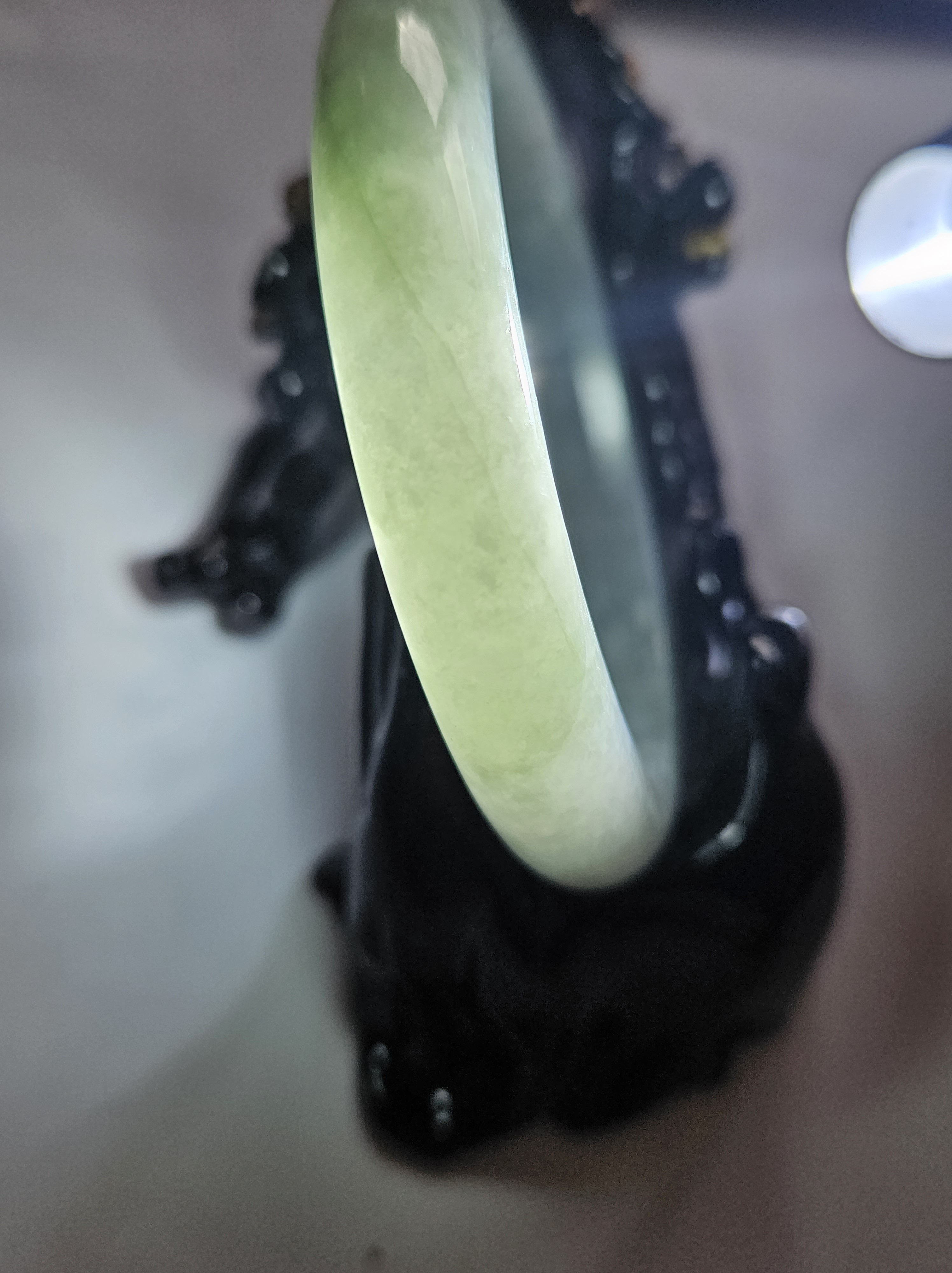 As per all natural stone, the Burmese jadeite bangle has internal cracks that does not affect usage.
