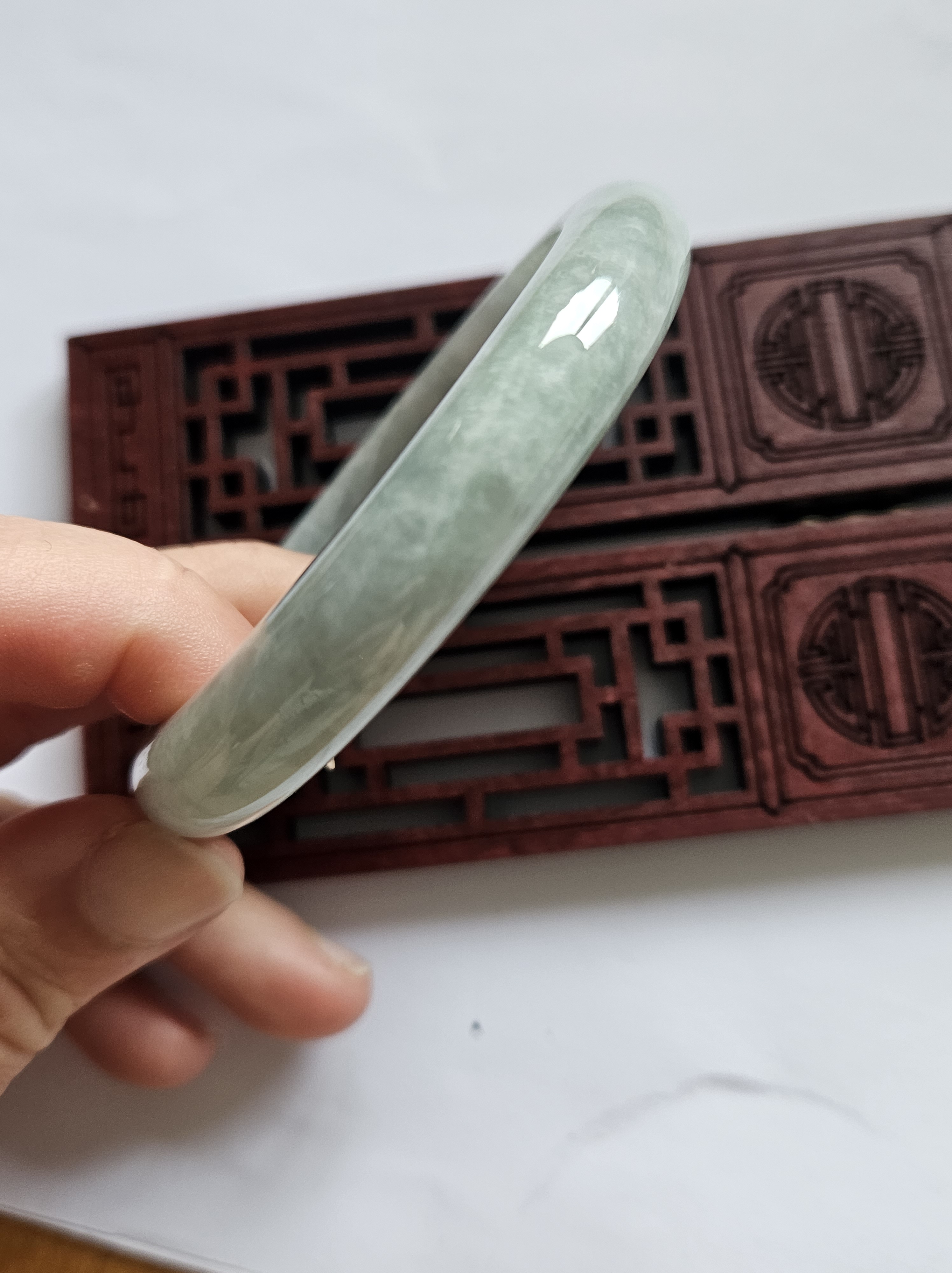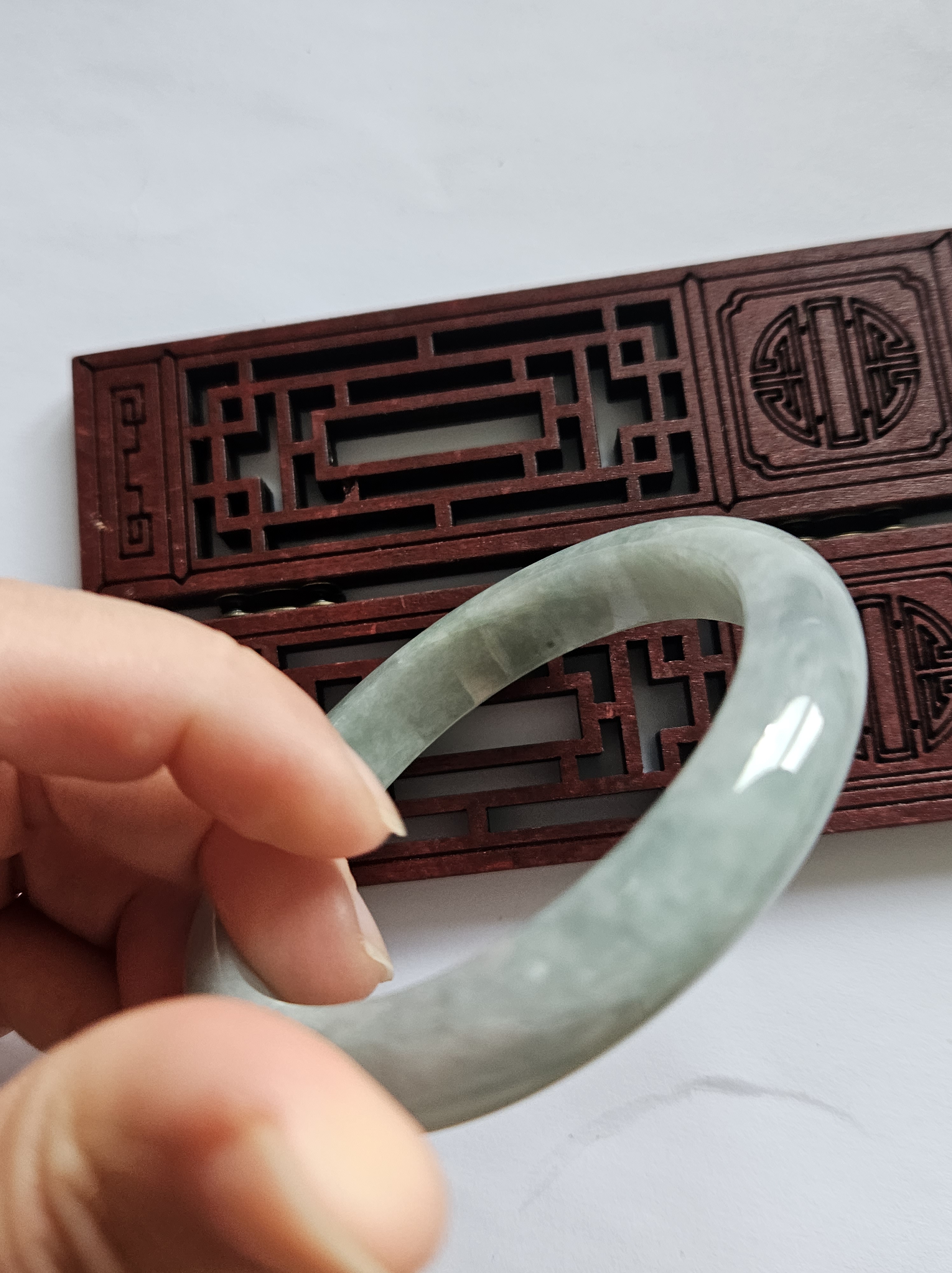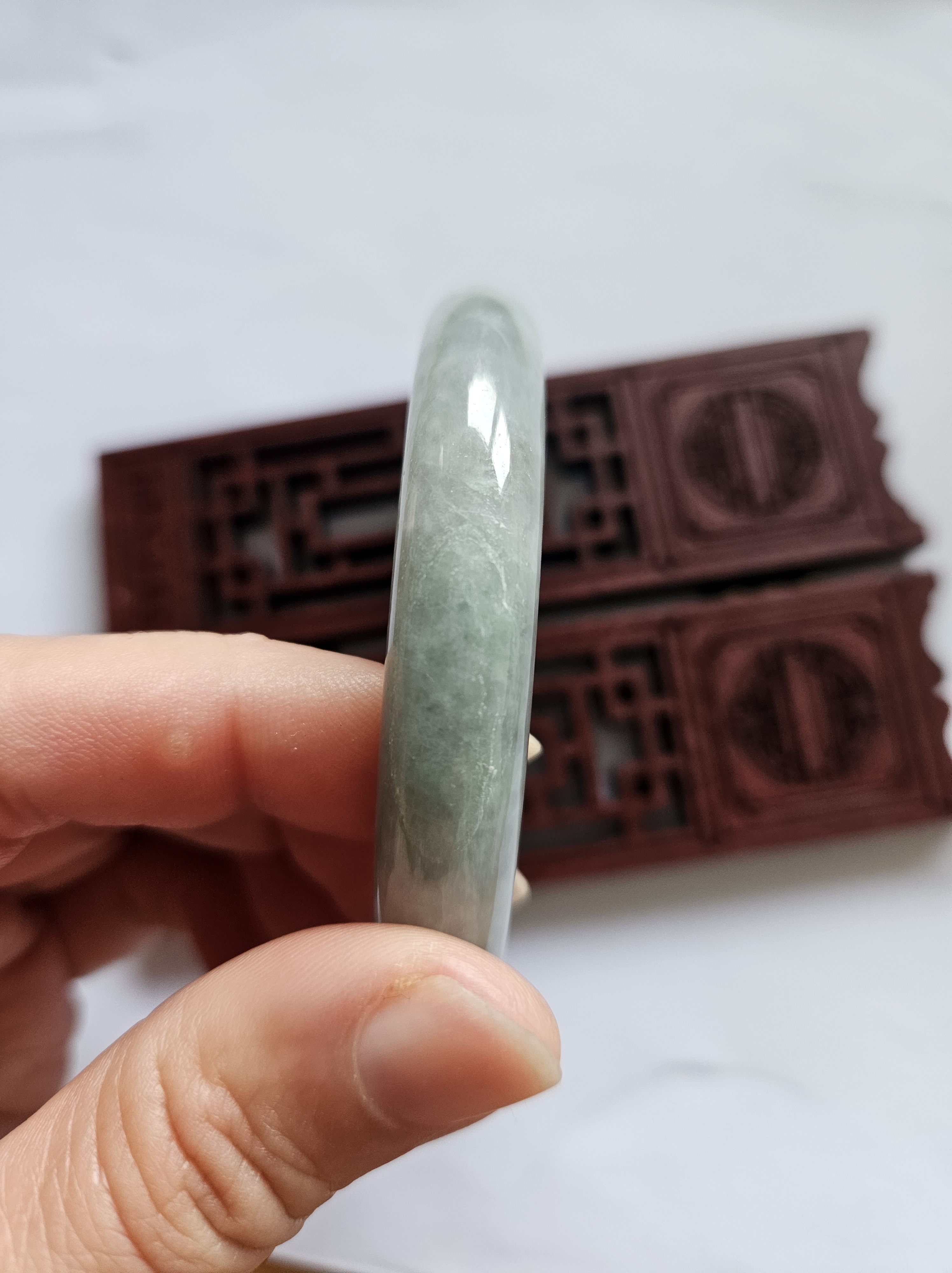 As per all natural stone, the Burmese jadeite bangle has internal cracks that does not affect usage.