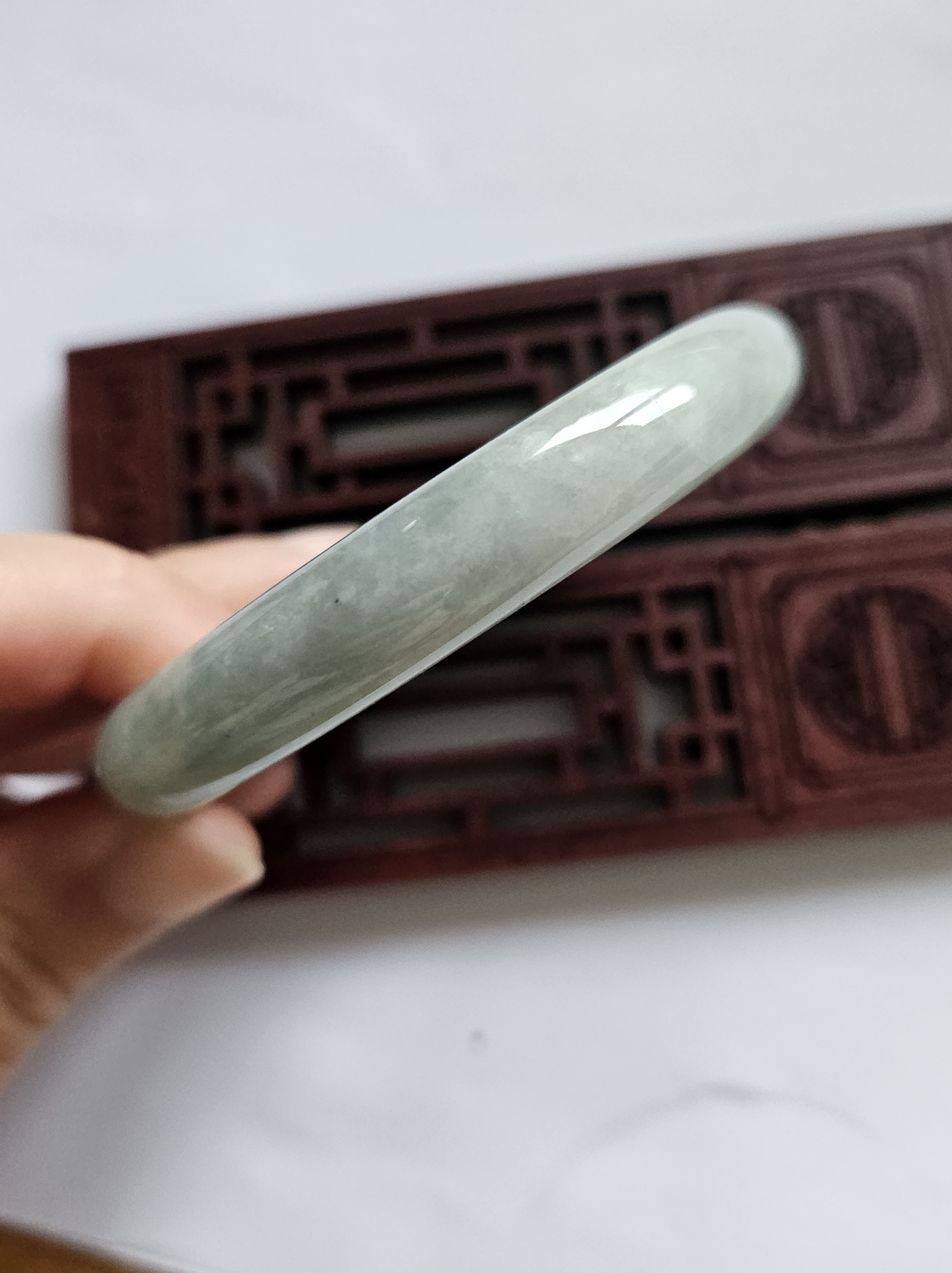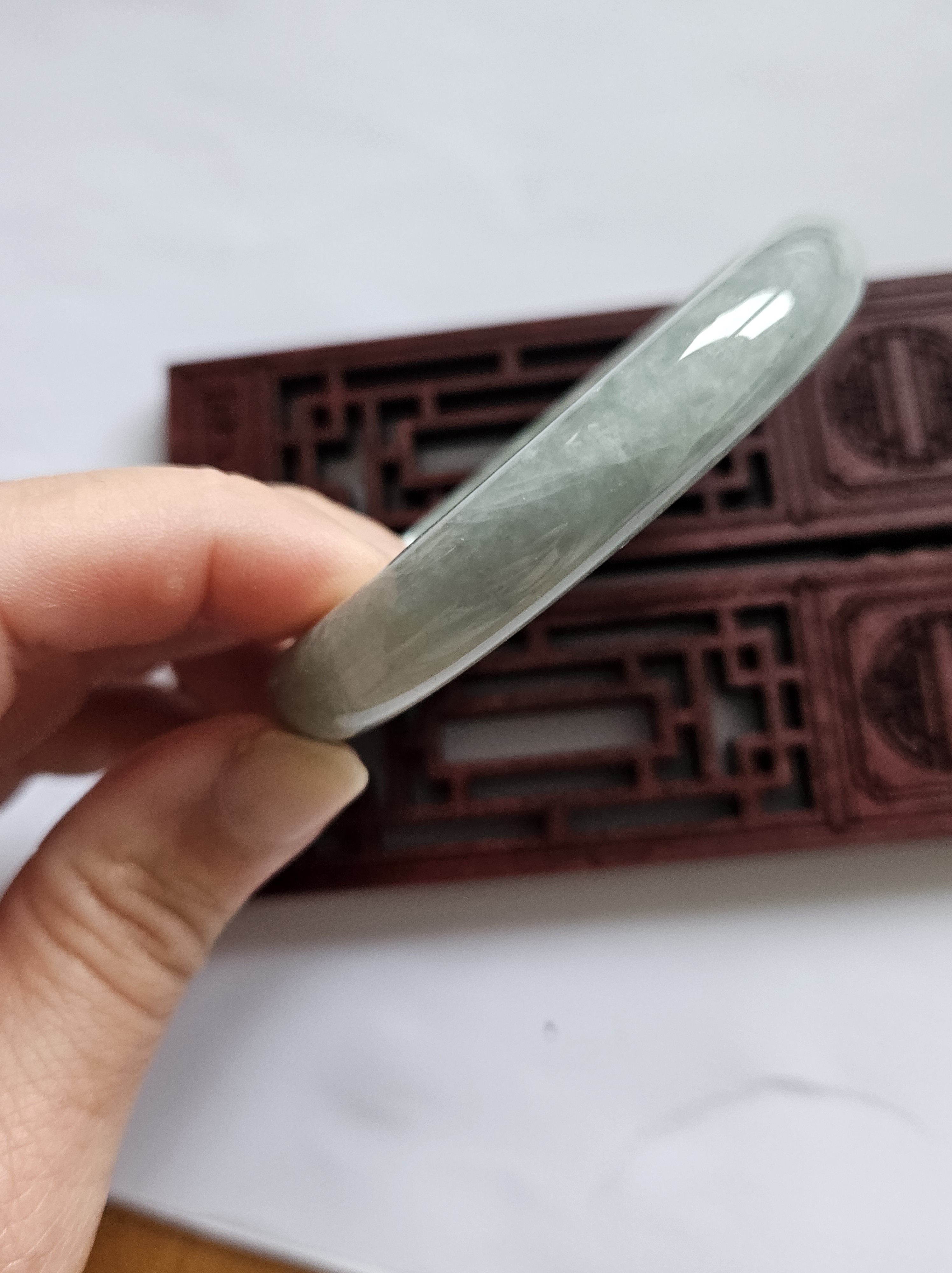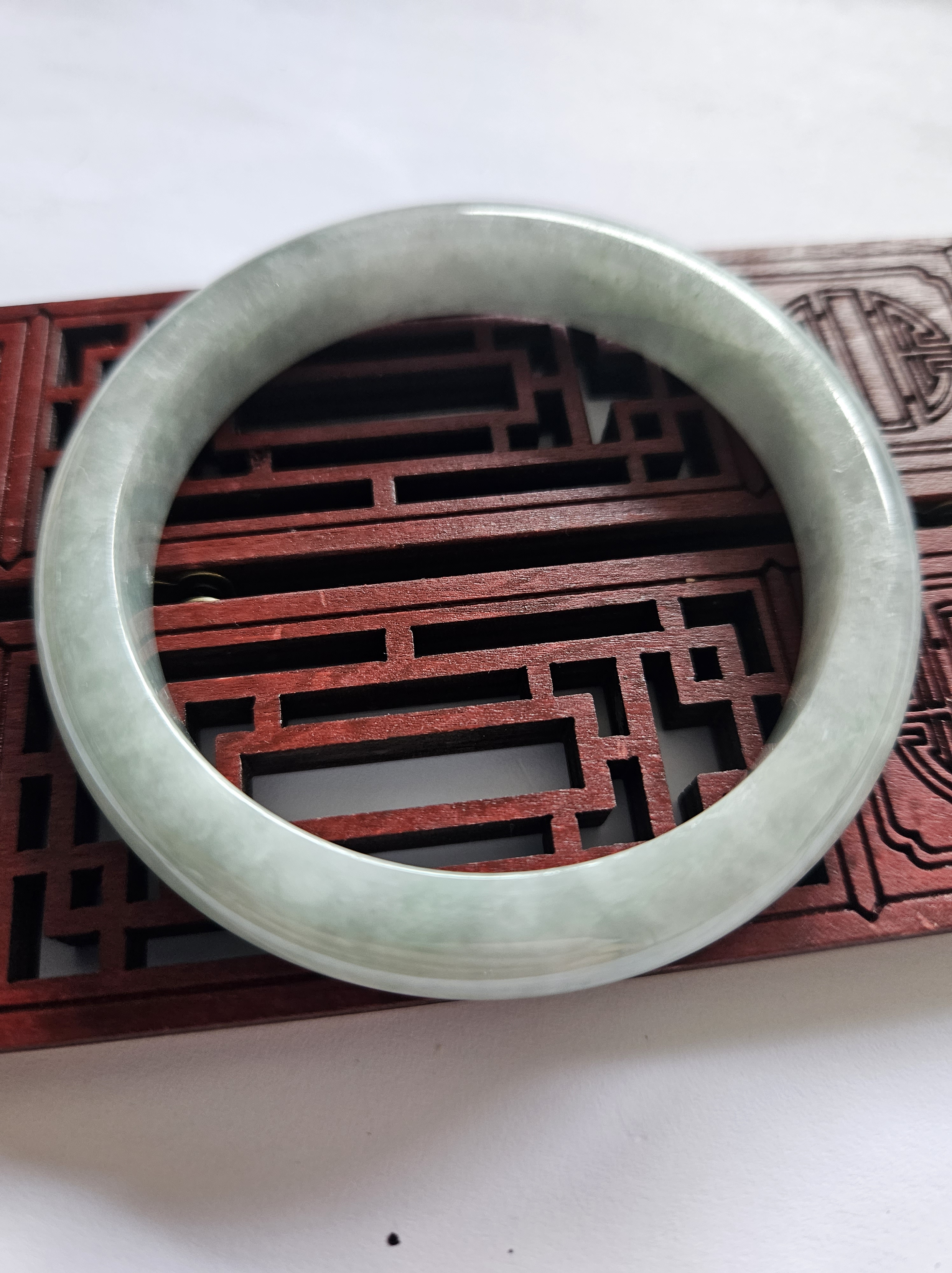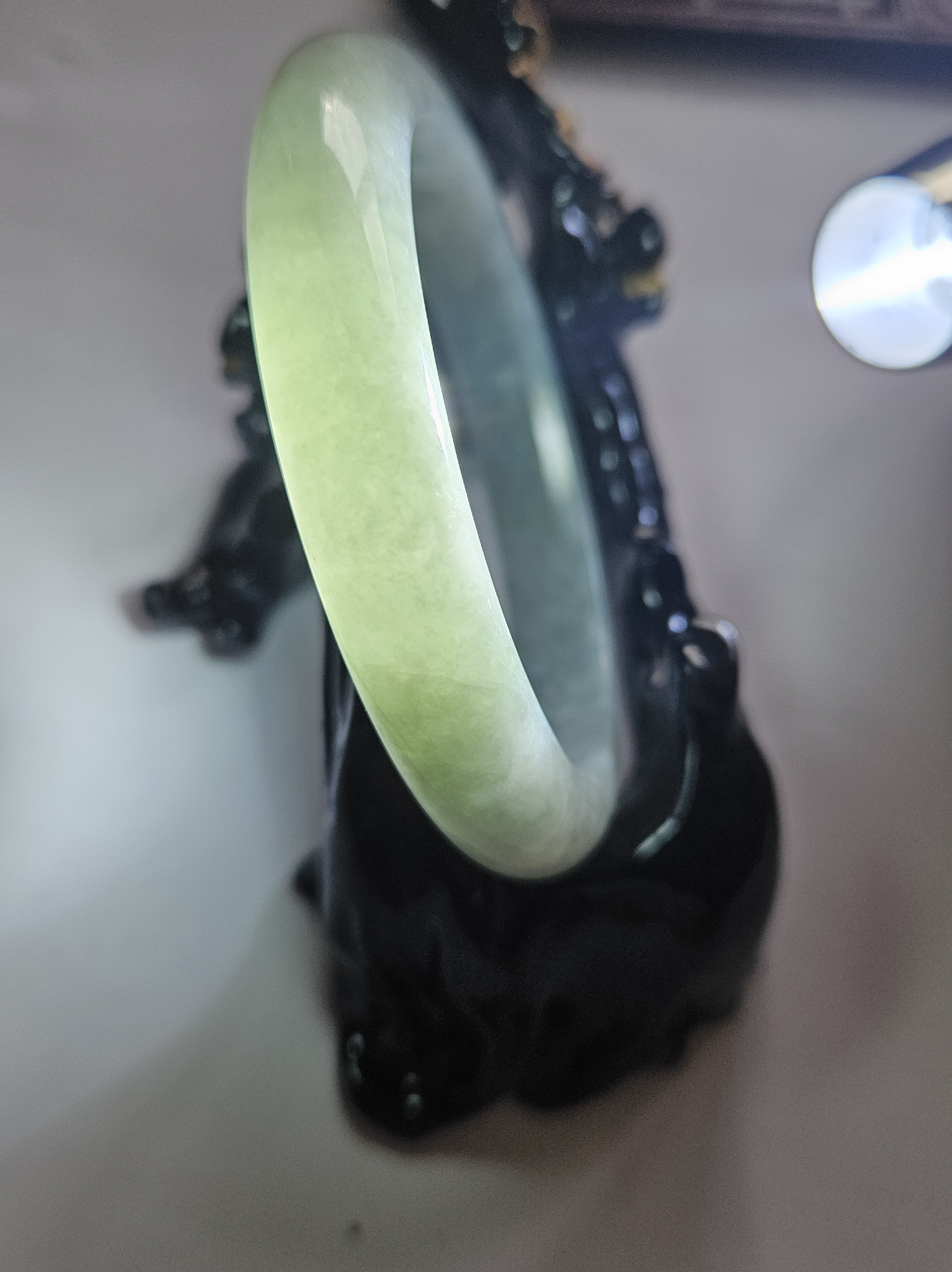 As per all natural stone, the Burmese jadeite bangle has internal cracks that does not affect usage.