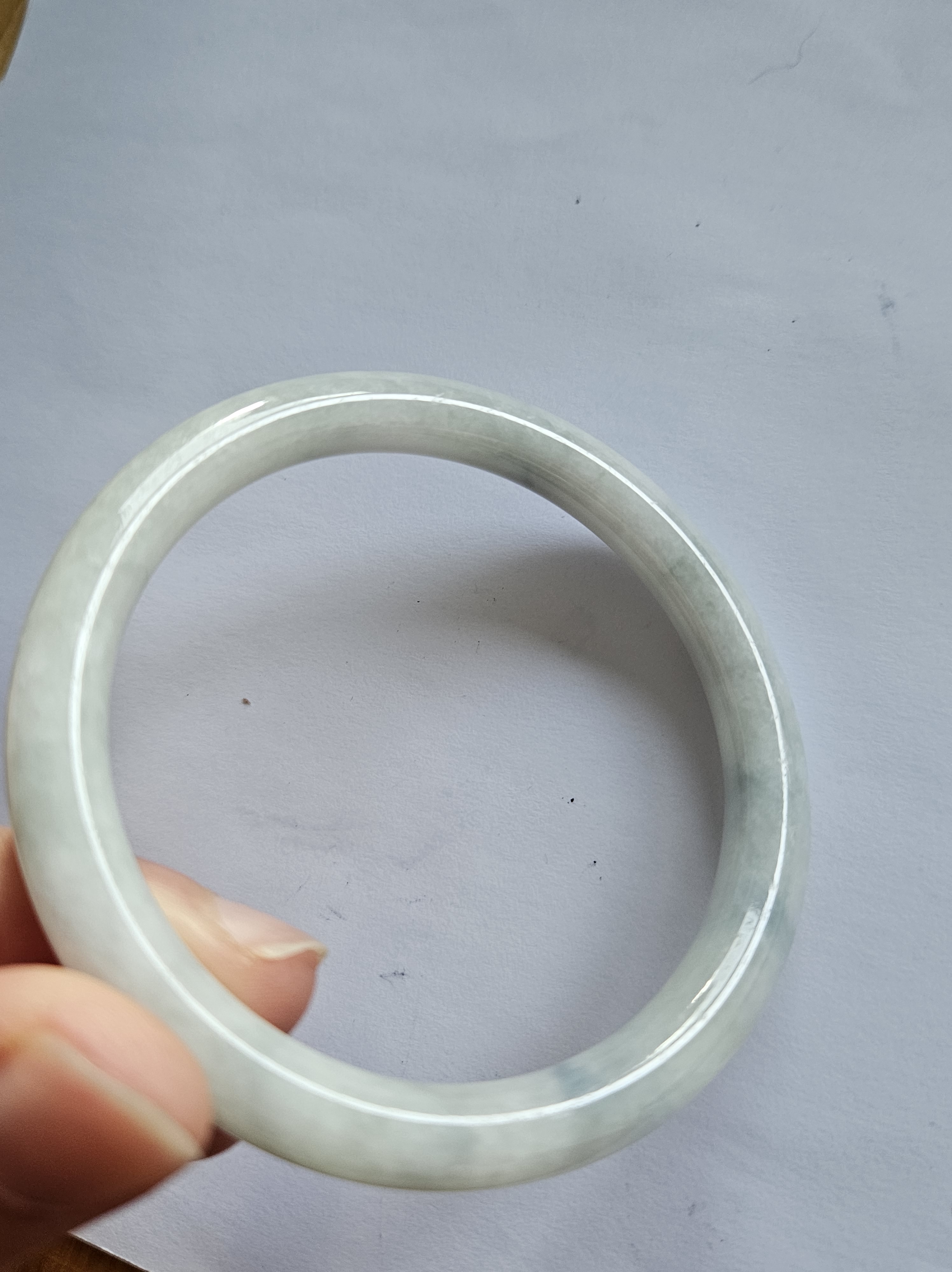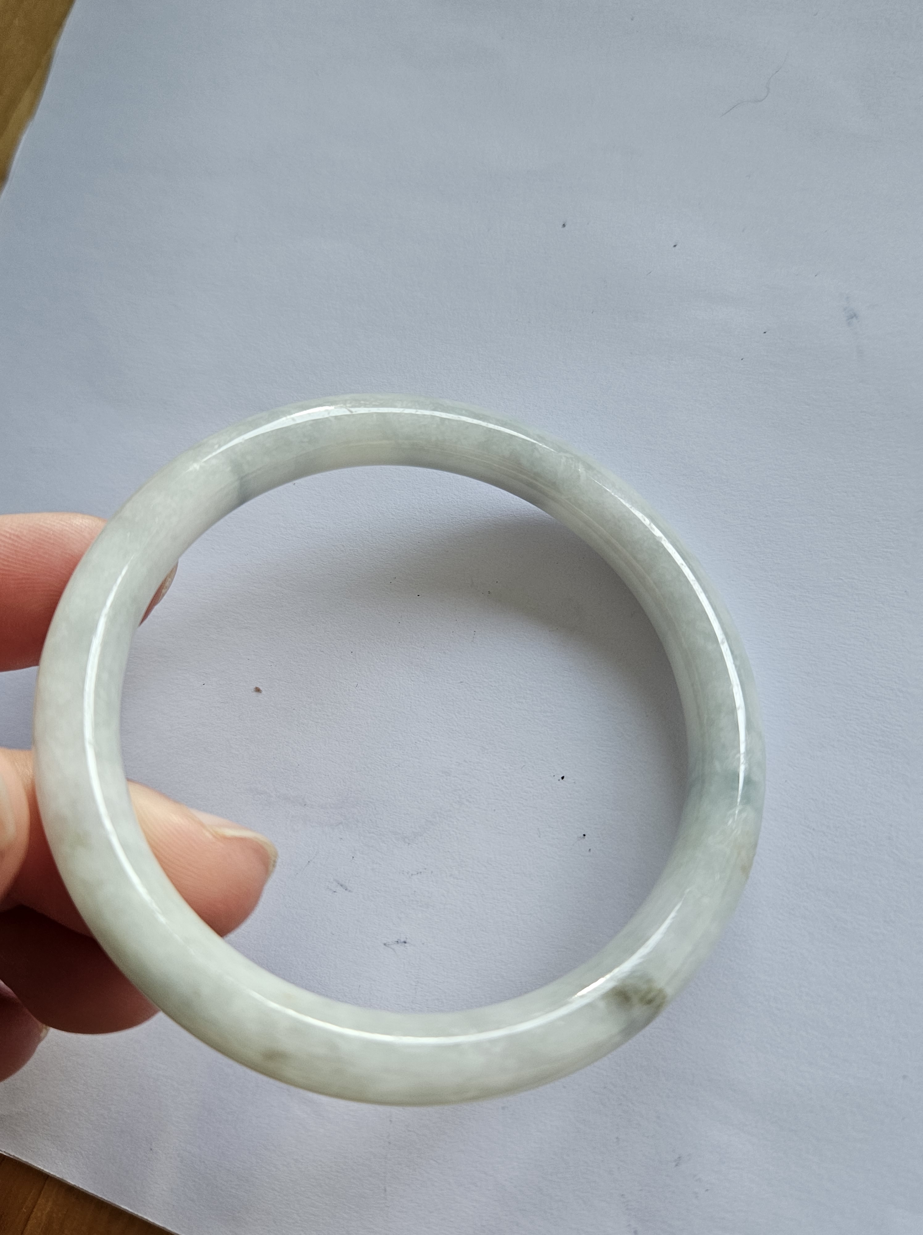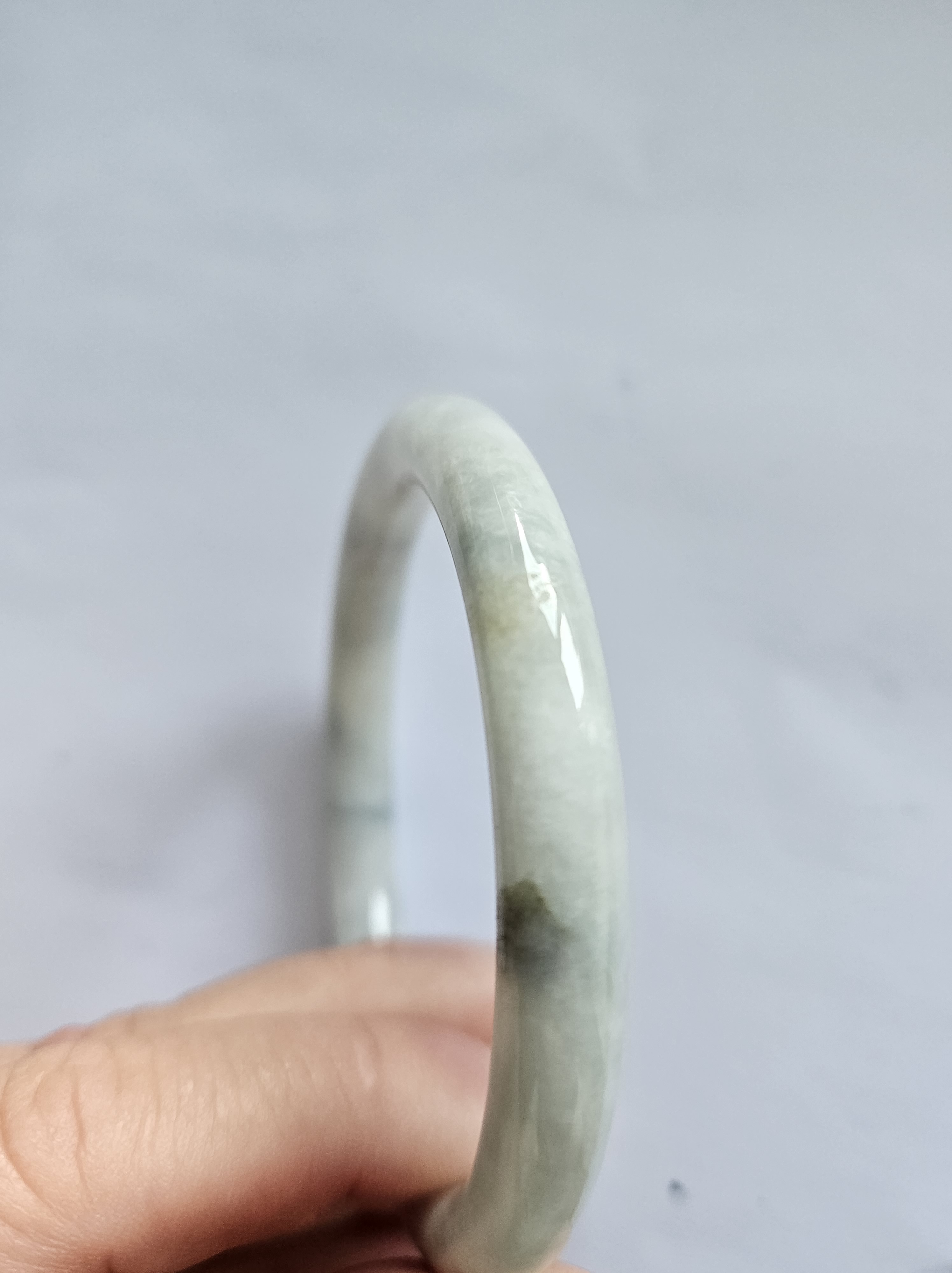 Lovely light green jadeite bangle with autumnal blooms but has a small patch of rough spot that was the skin of the stone but does not affect usage, fits up to 46mm, measures 54.2 x 7.4 x 7.5mm, weighs 28.60g, comes with a certificate of authenticity £89