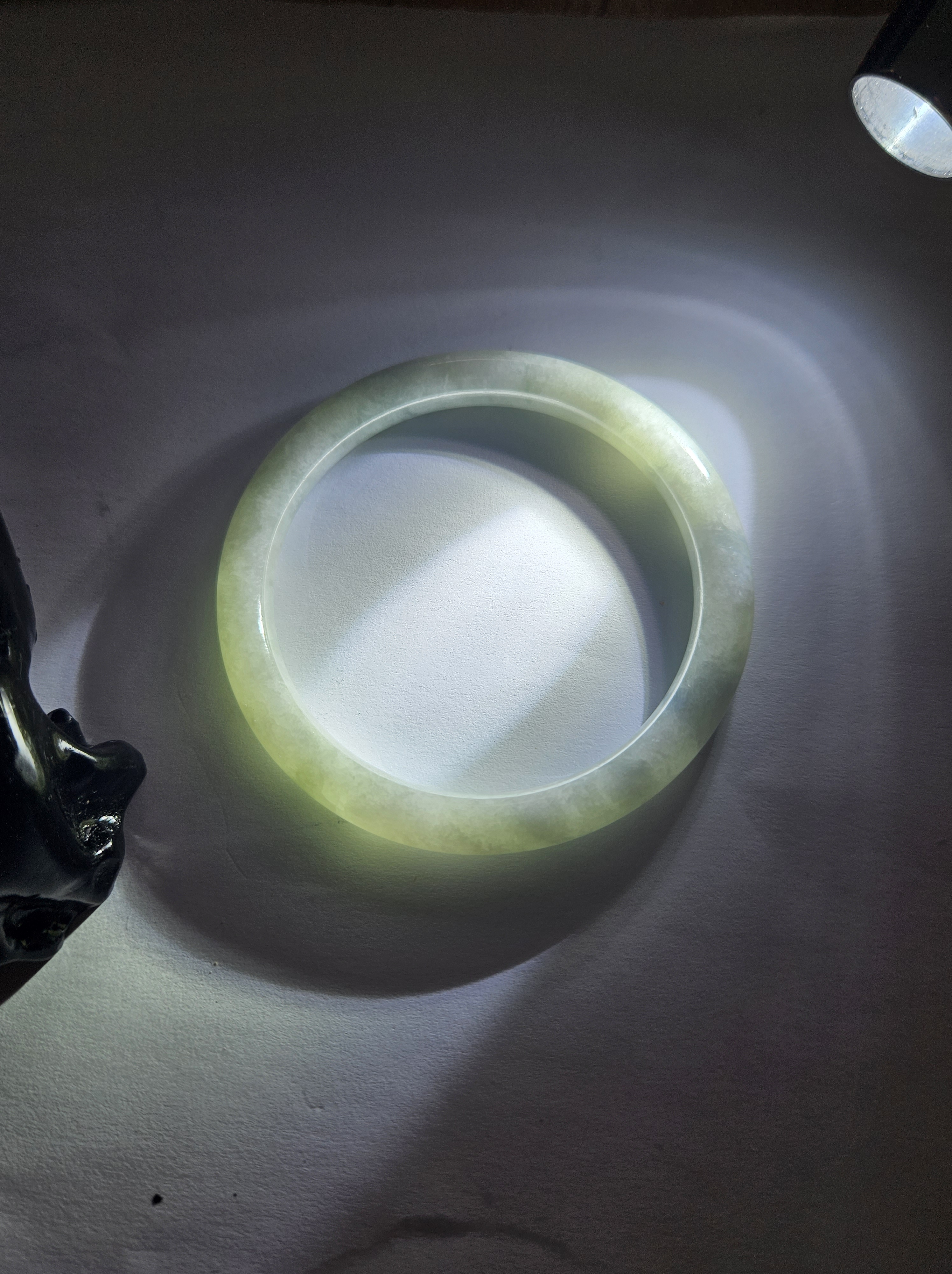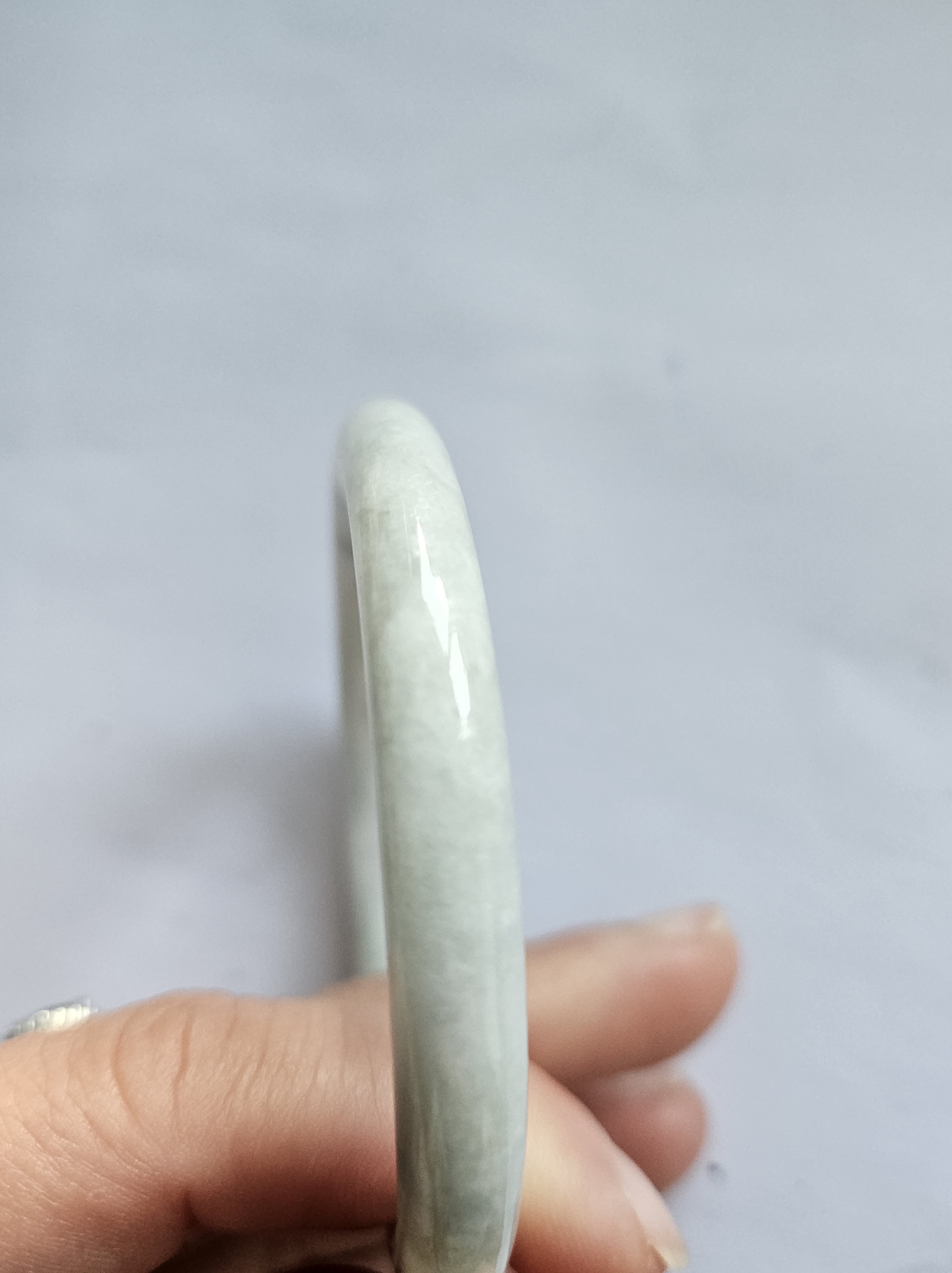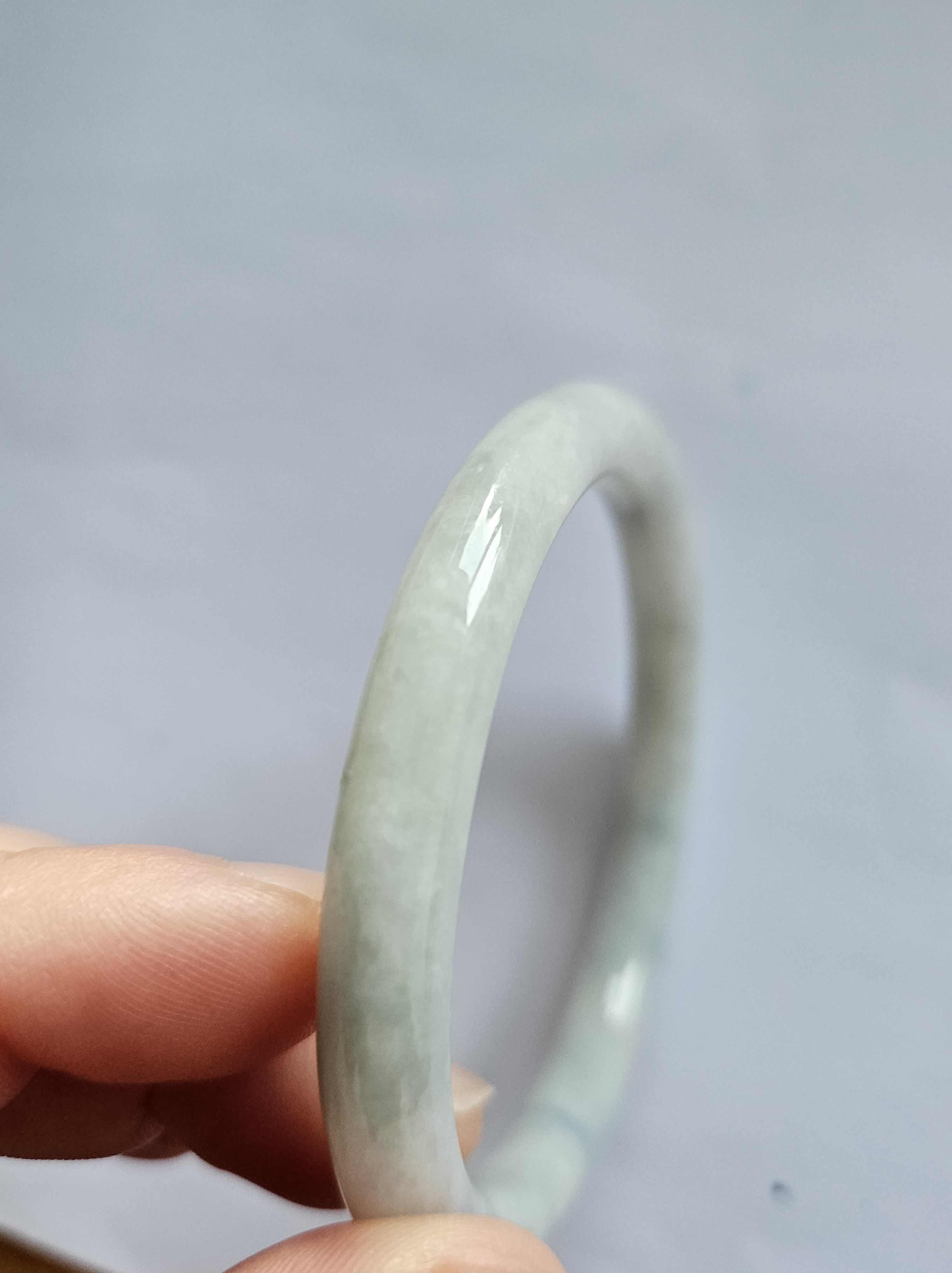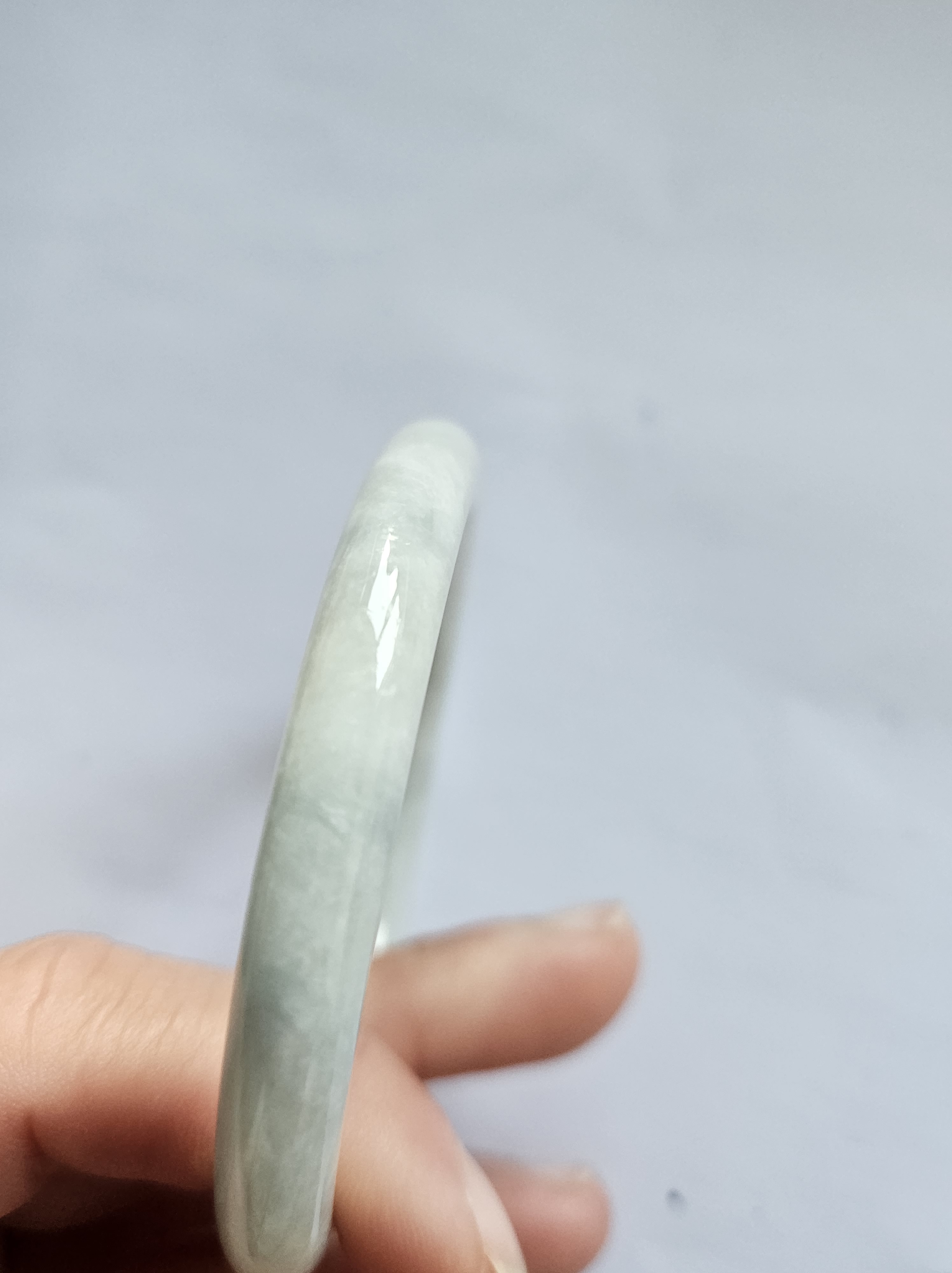Lovely light green jadeite bangle with autumnal blooms but has a small patch of rough spot that was the skin of the stone but does not affect usage, fits up to 46mm, measures 54.2 x 7.4 x 7.5mm, weighs 28.60g, comes with a certificate of authenticity £89