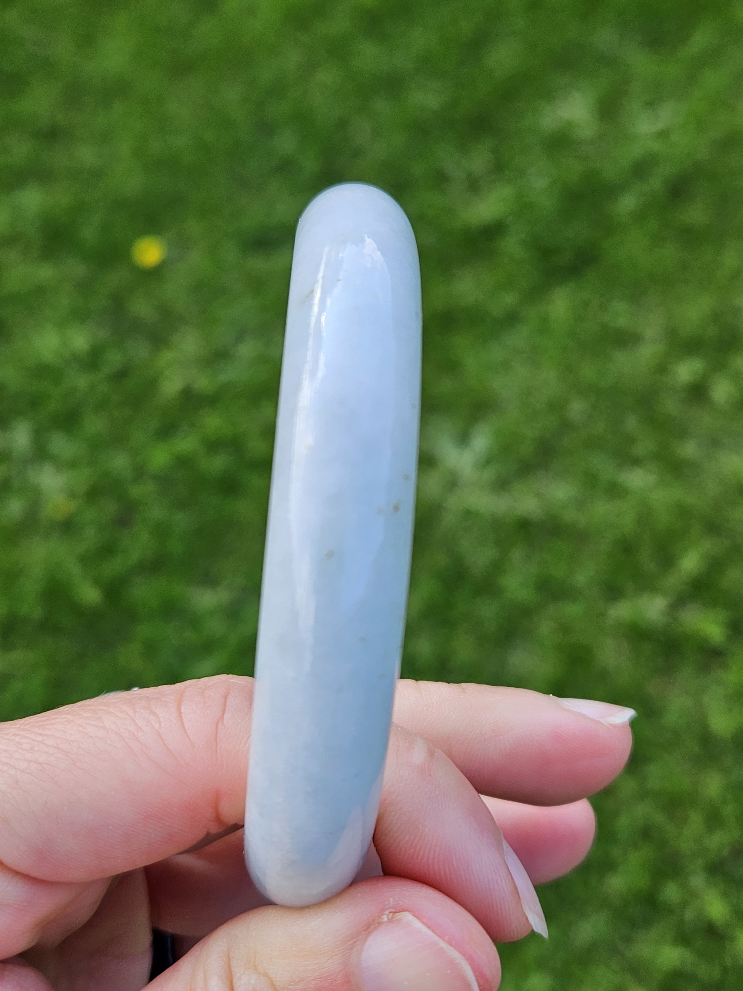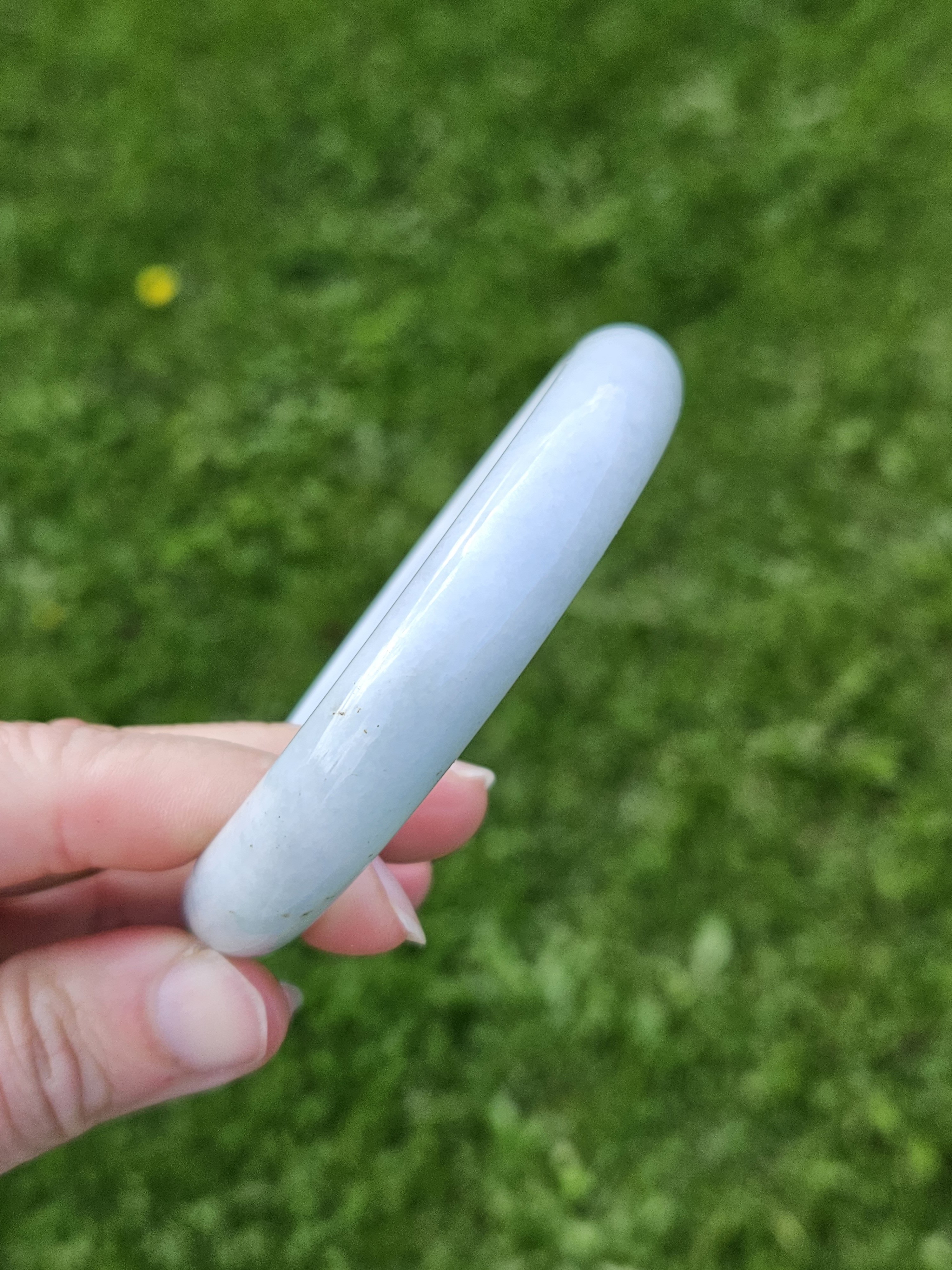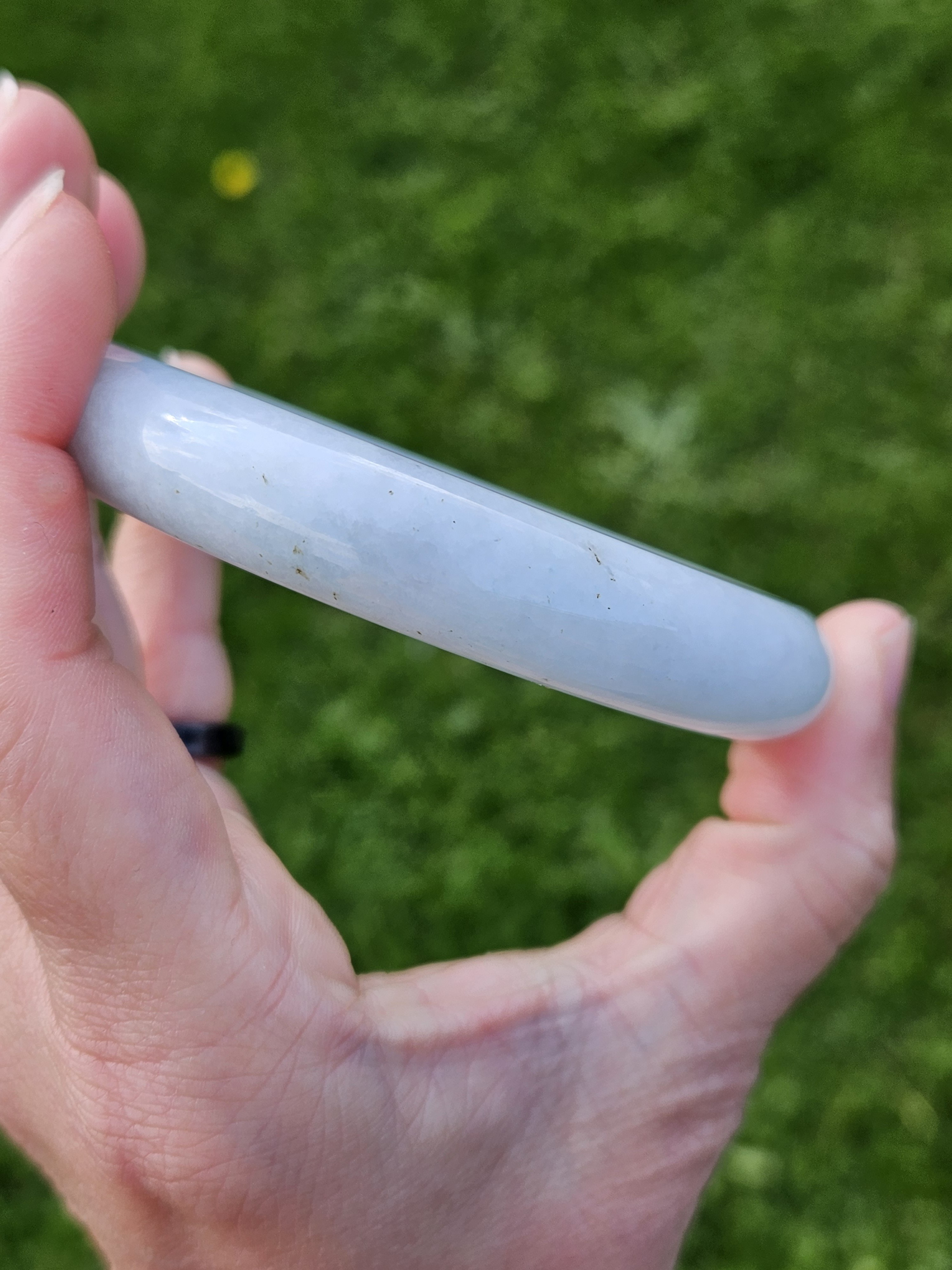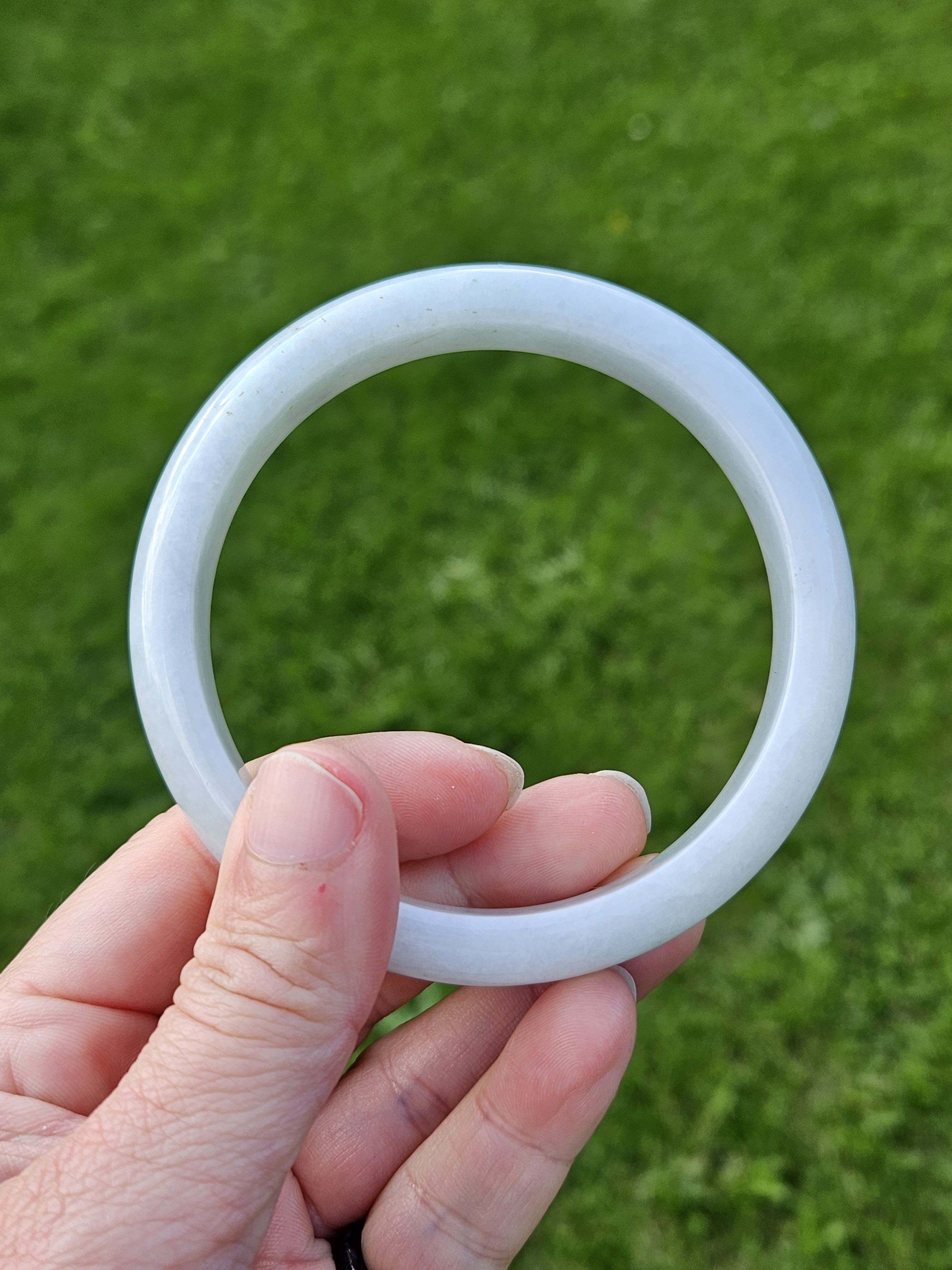 Made of Burmese jadeite, this light green bangle has a slight internal cracks that does not affect usage. Rare size at 66mm diameter, 12.7mm in width and 8.5mm thickness. Comes with a certificate of authenticity £298