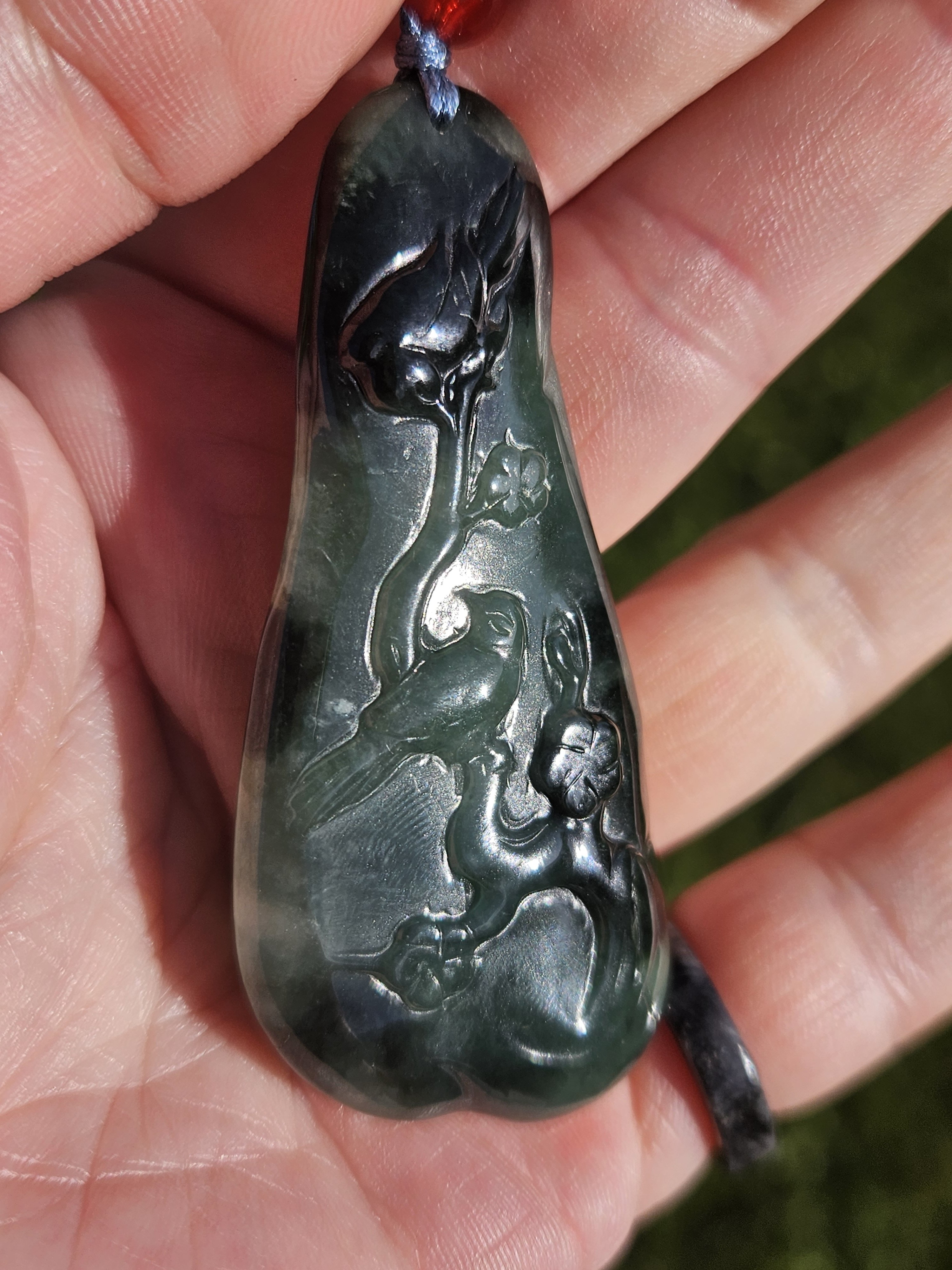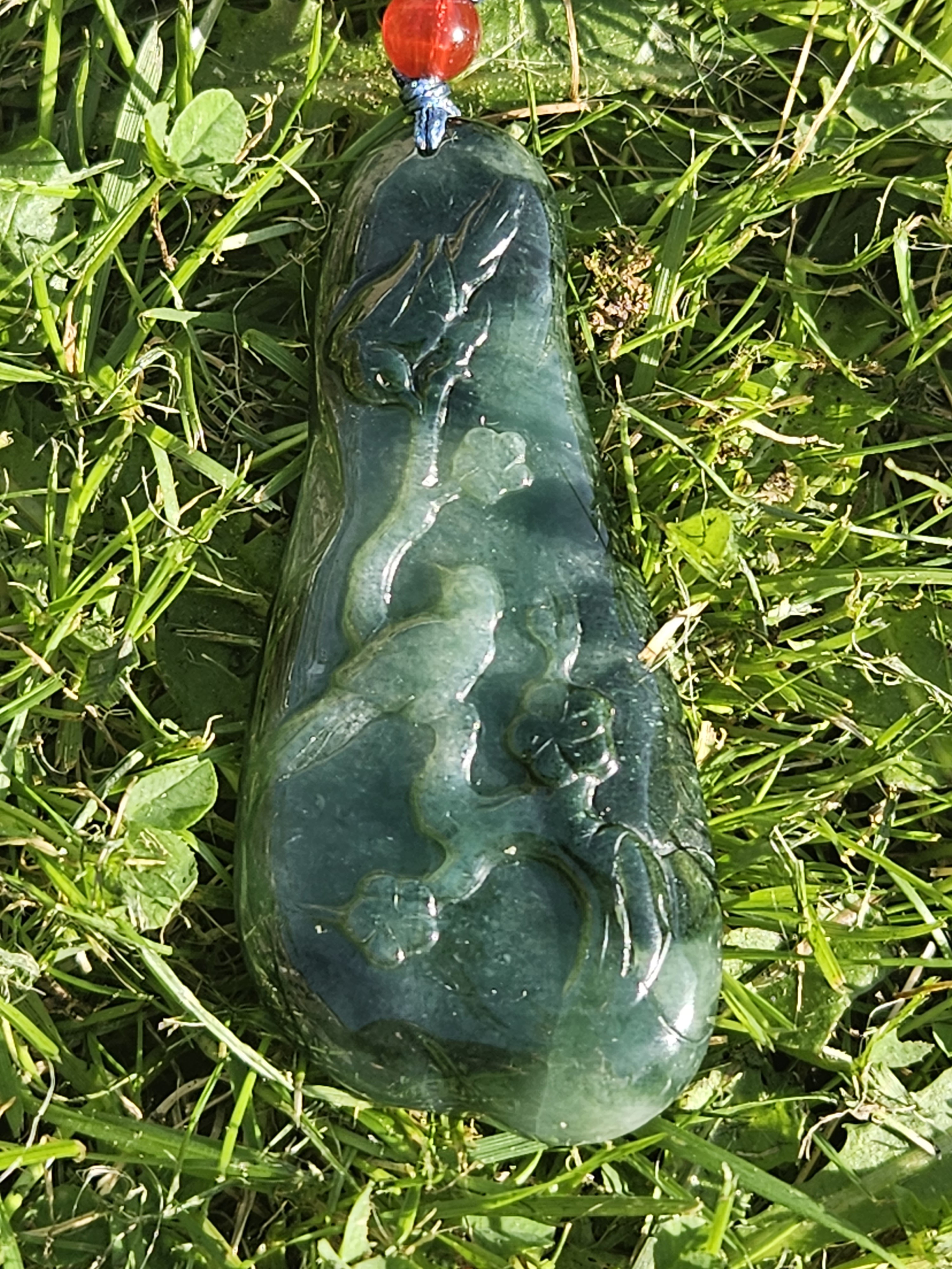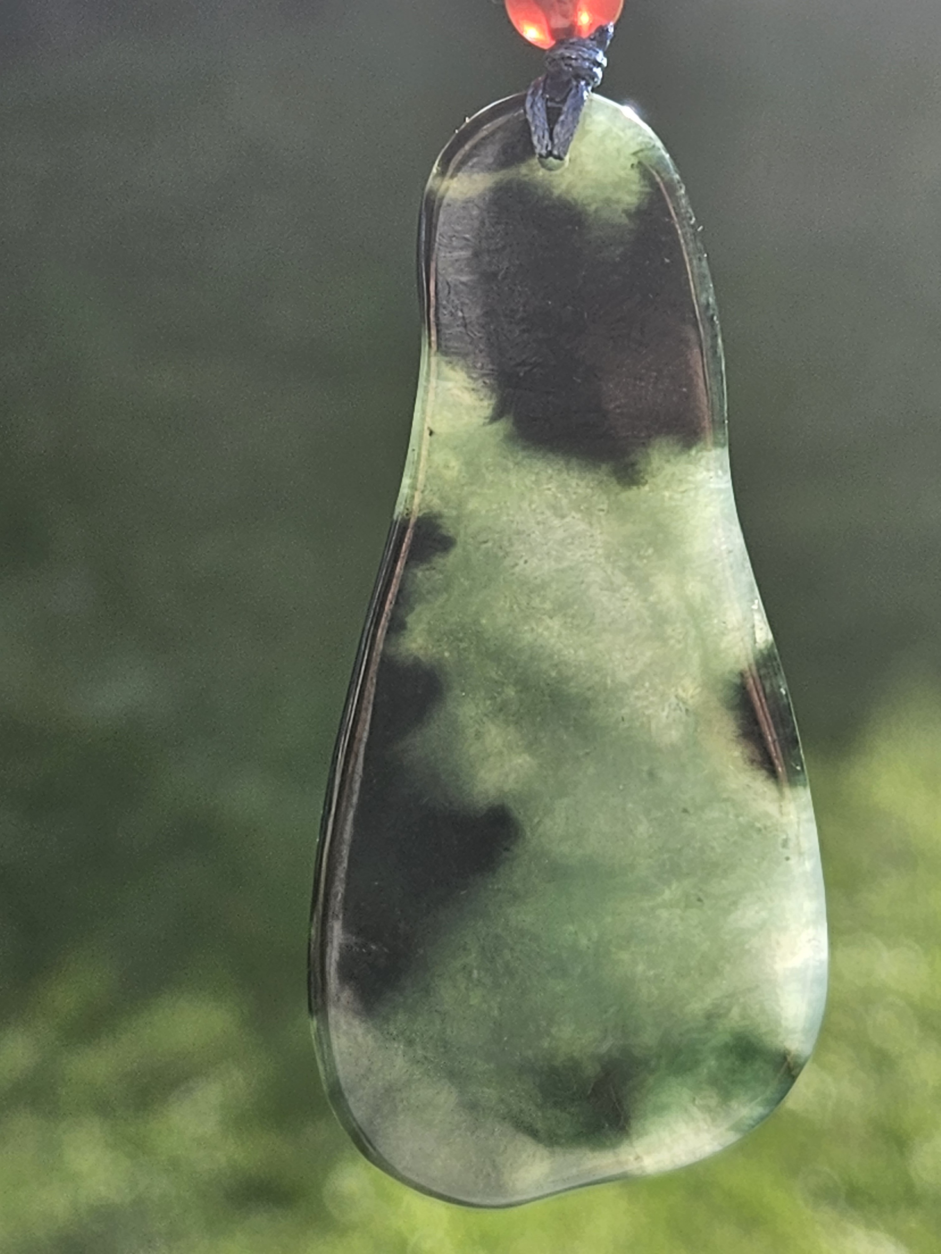 This beautiful jadeite pendant comes with an adjustable string chain, measures 61.5 x 28.8 x 6.5mm. £45