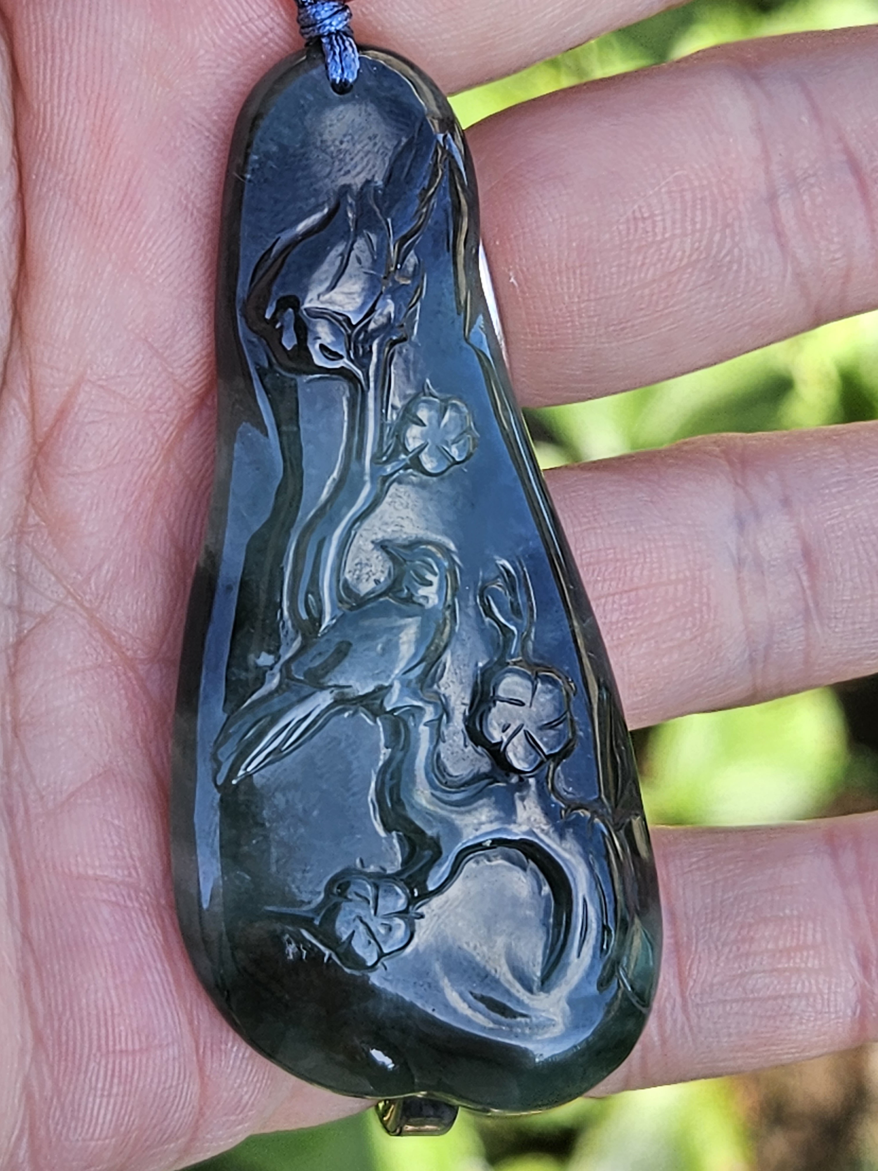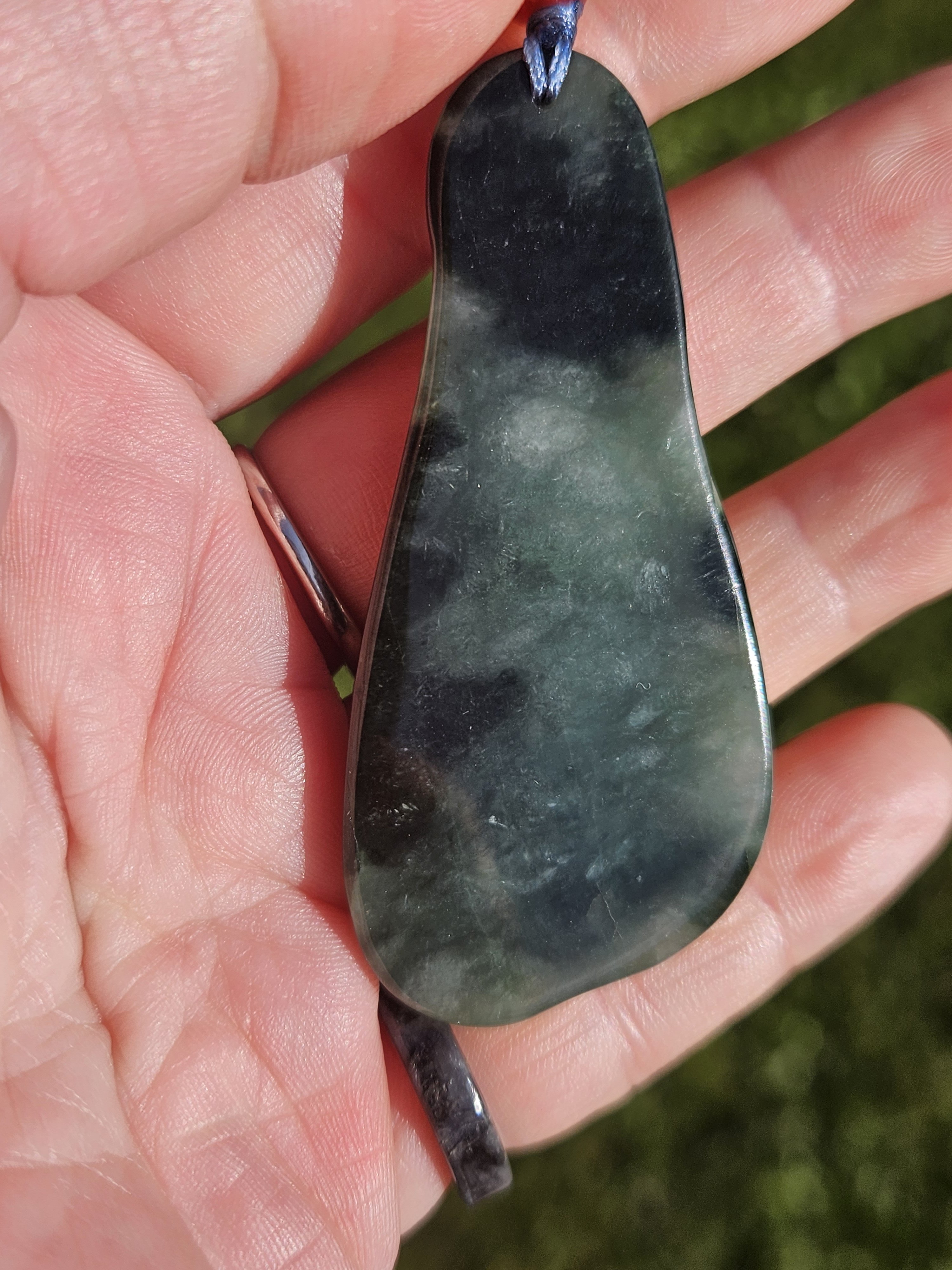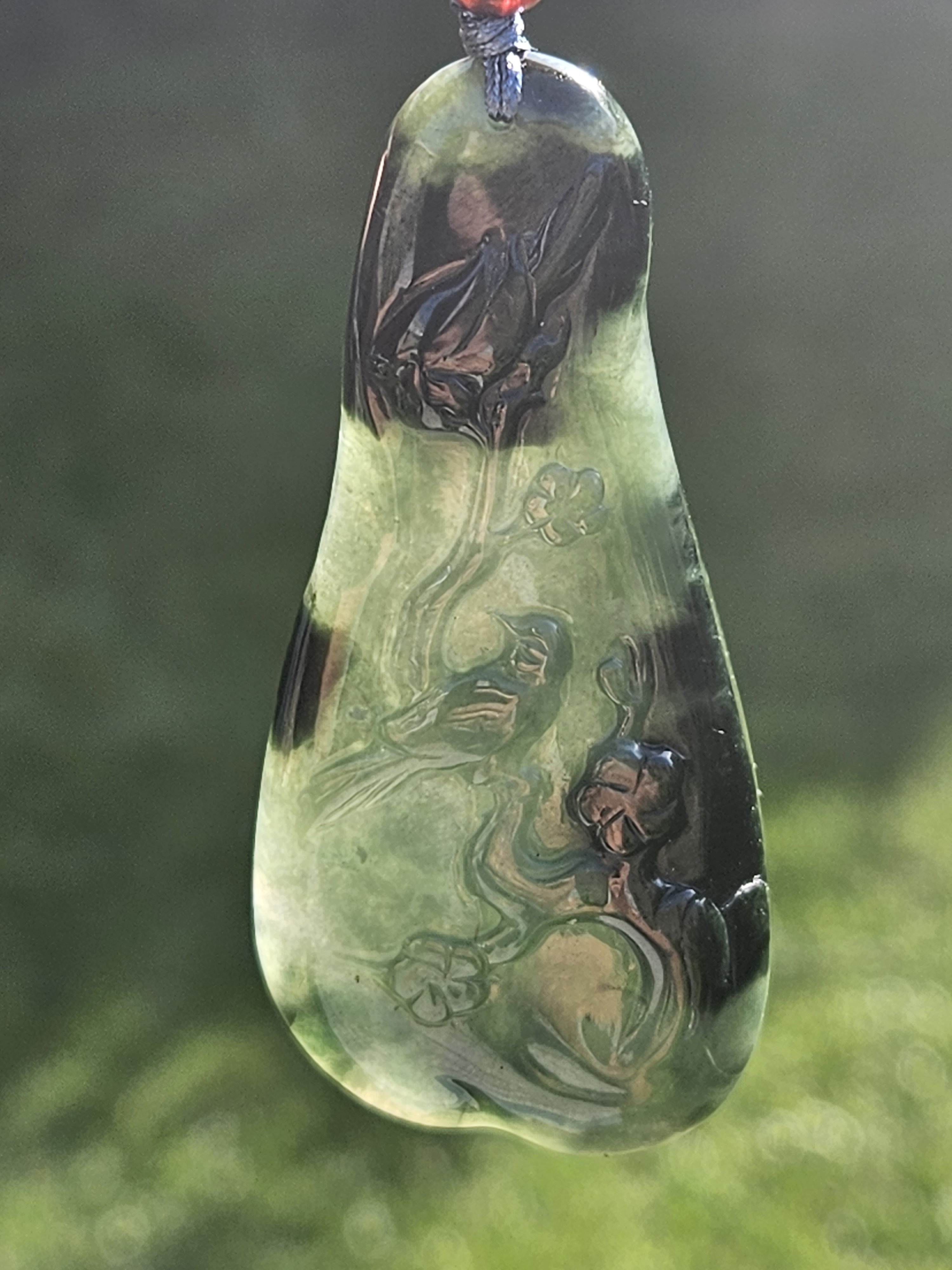 This beautiful jadeite pendant comes with an adjustable string chain, measures 61.5 x 28.8 x 6.5mm. £45