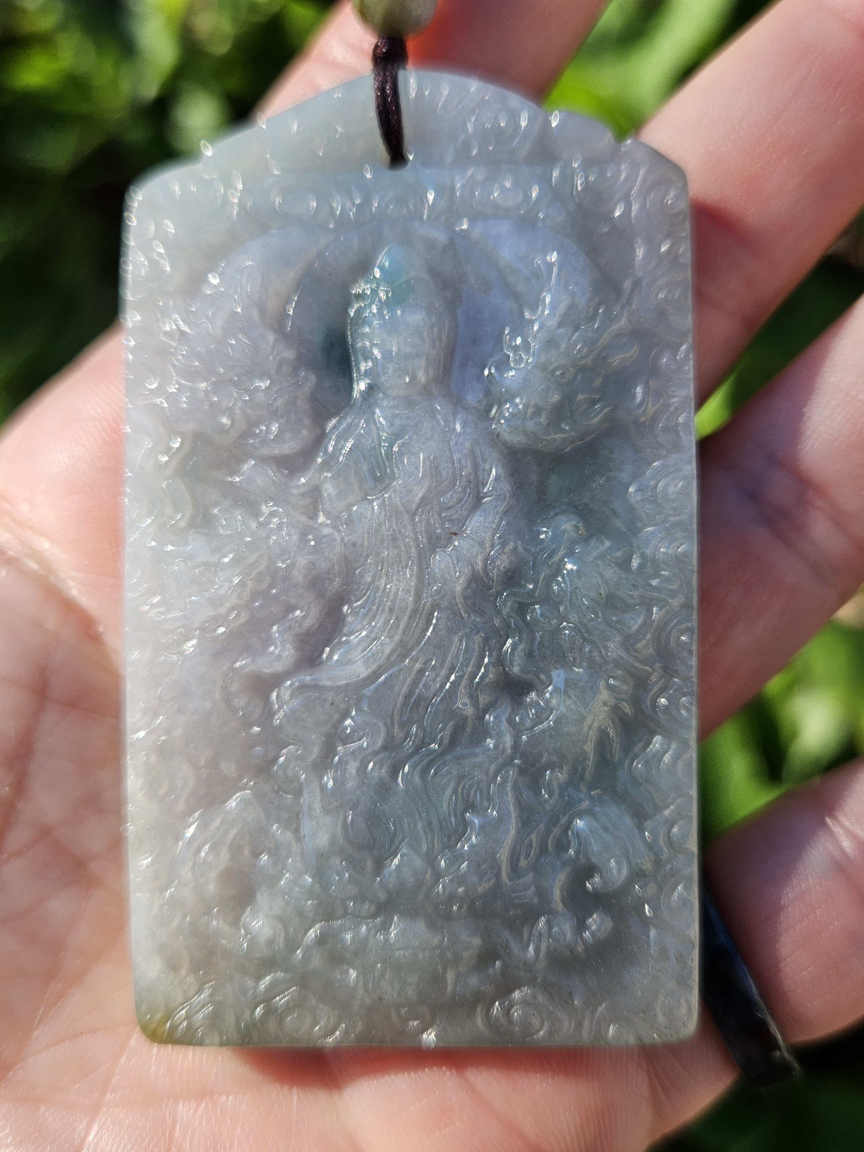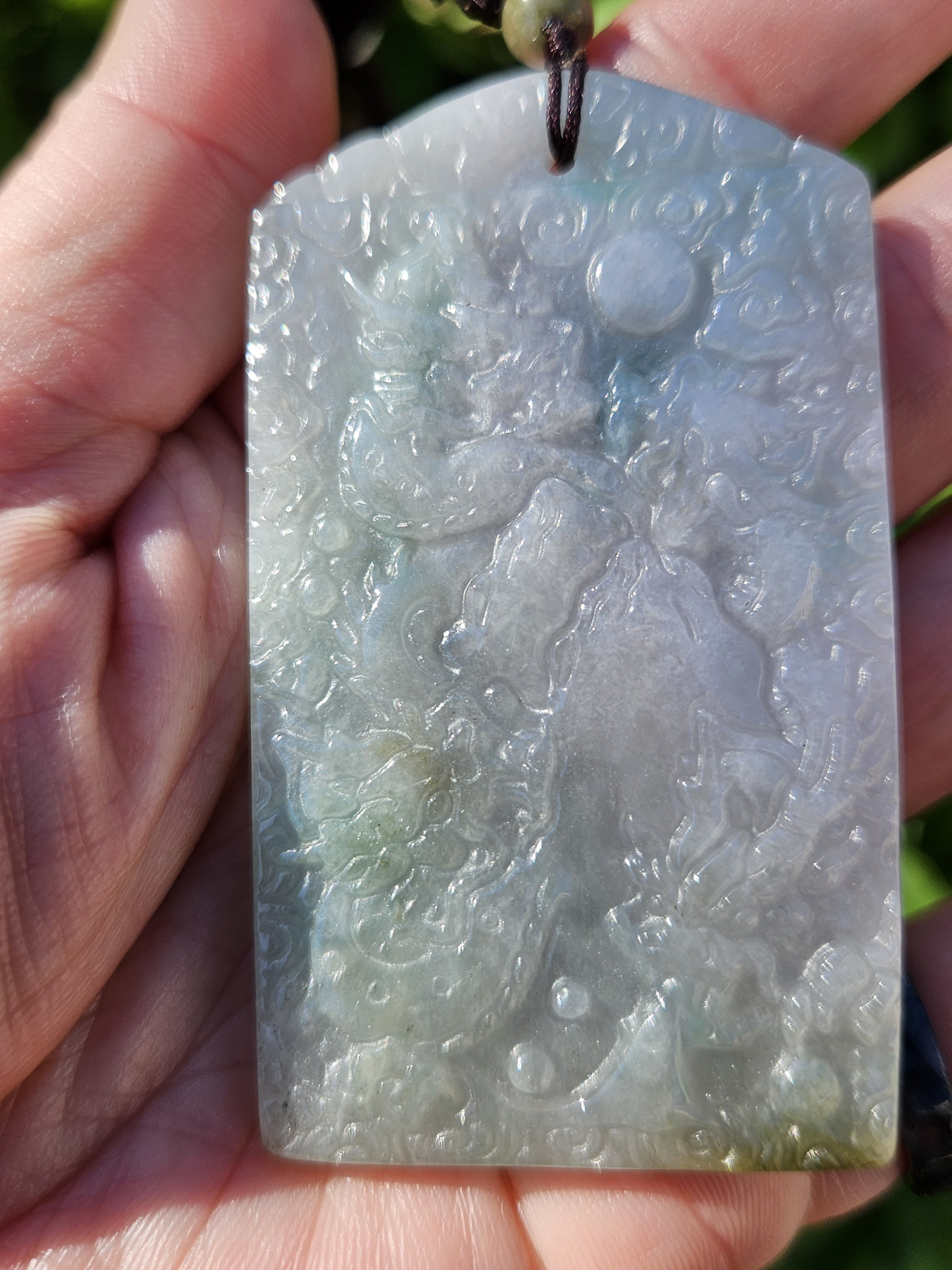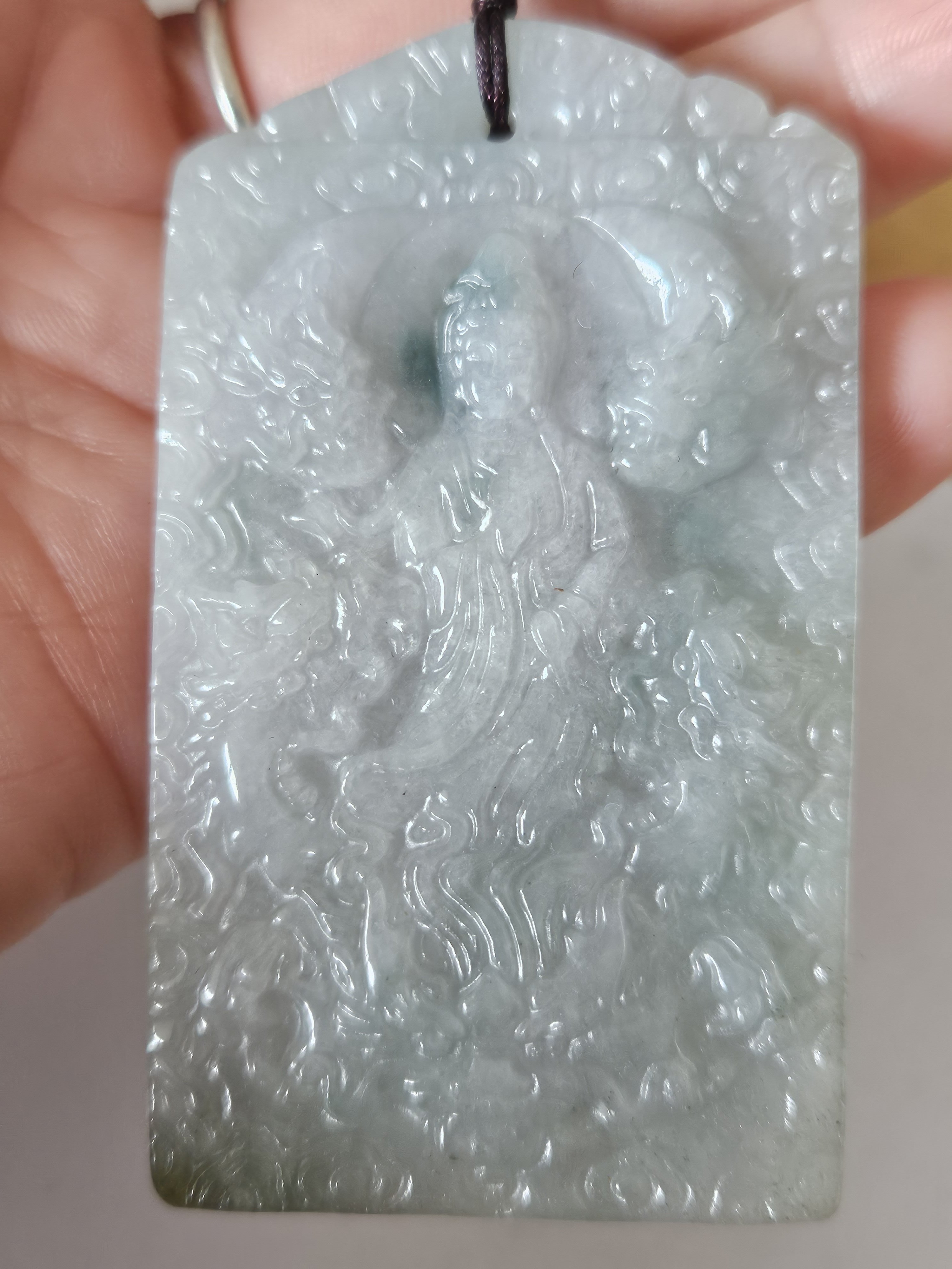 Measures 69 x 39 x 8mm, comes on an adjustable string chain, weighs 51.01g, comes with a certificate of authenticity. £89