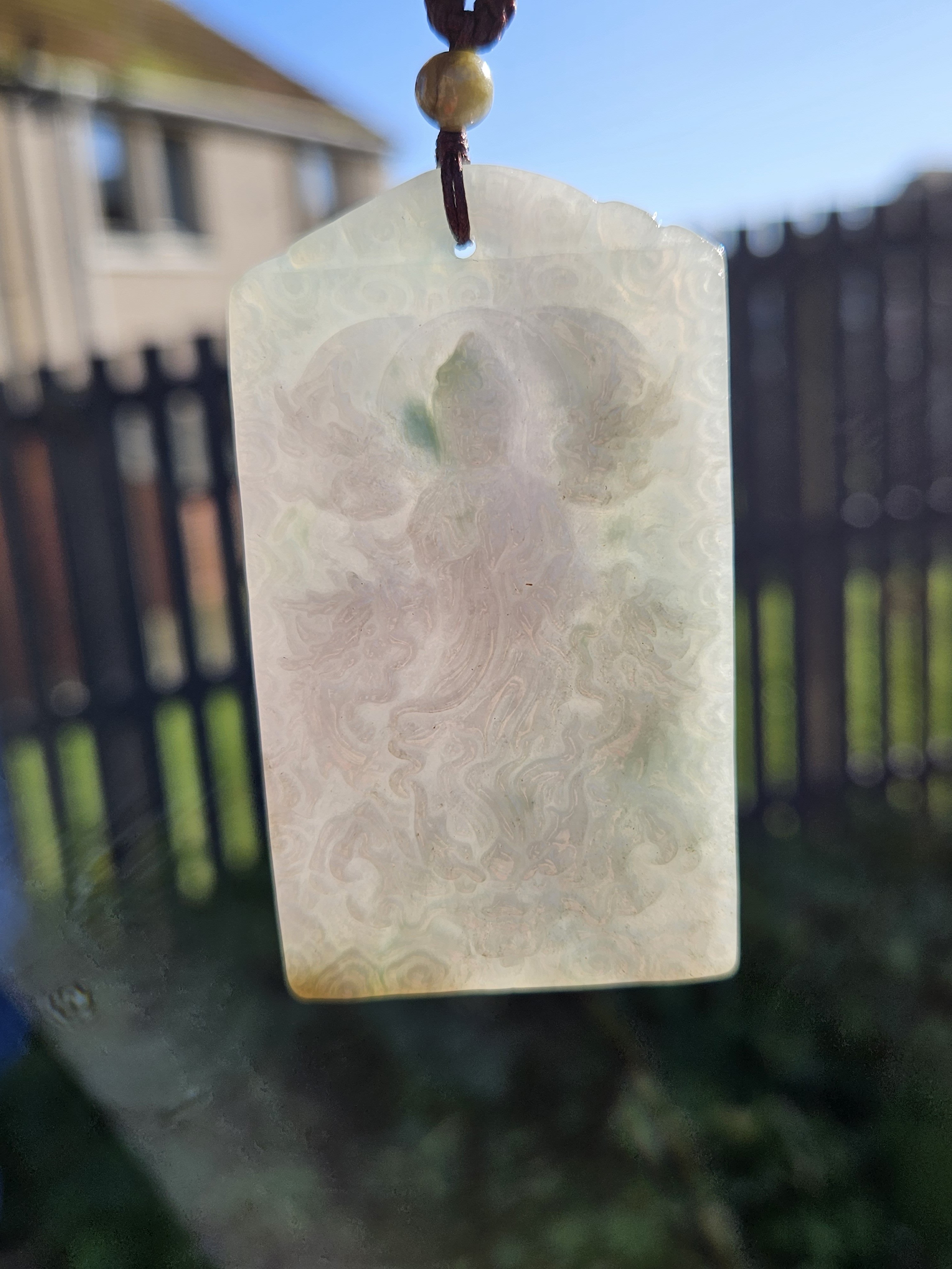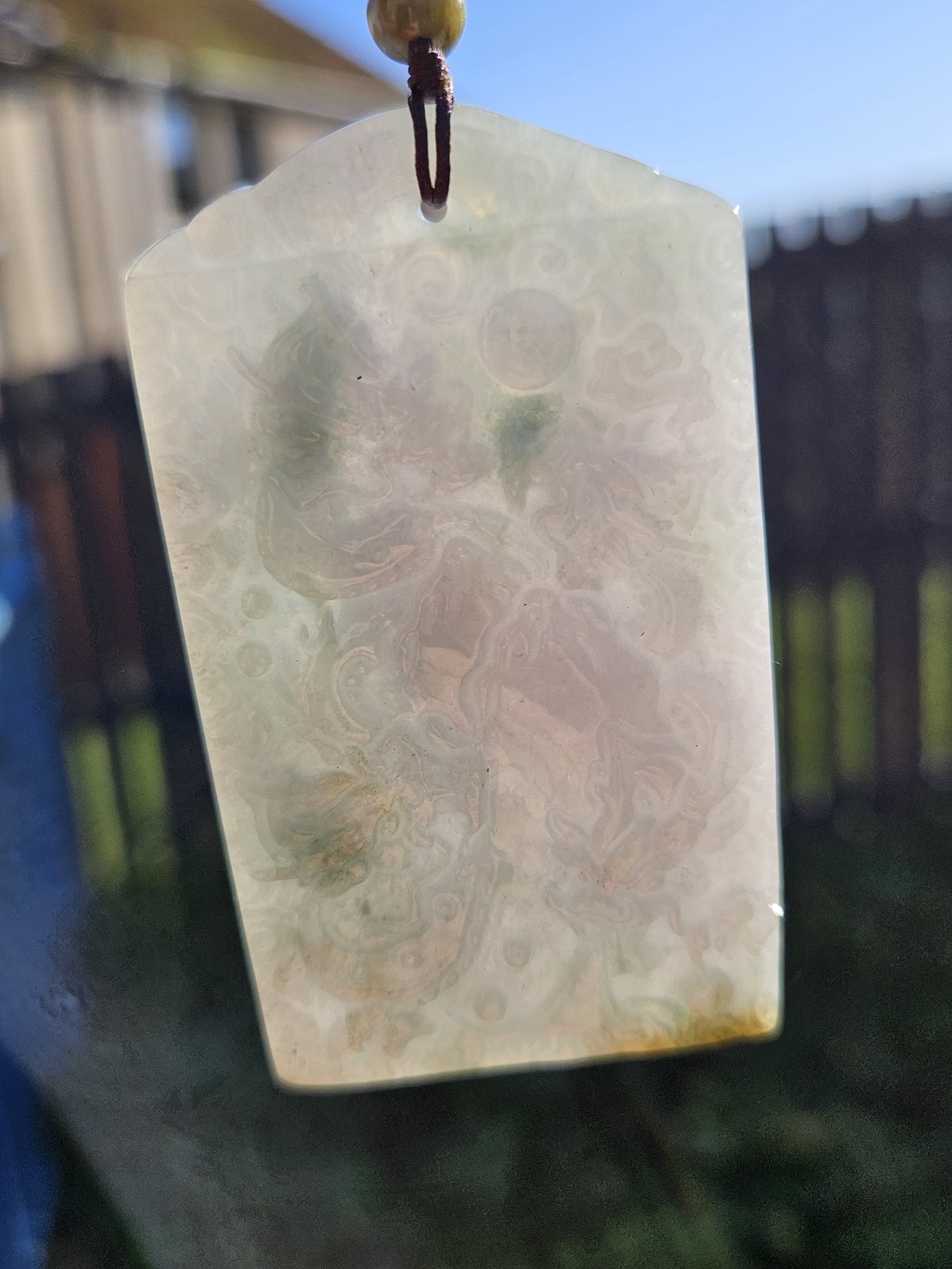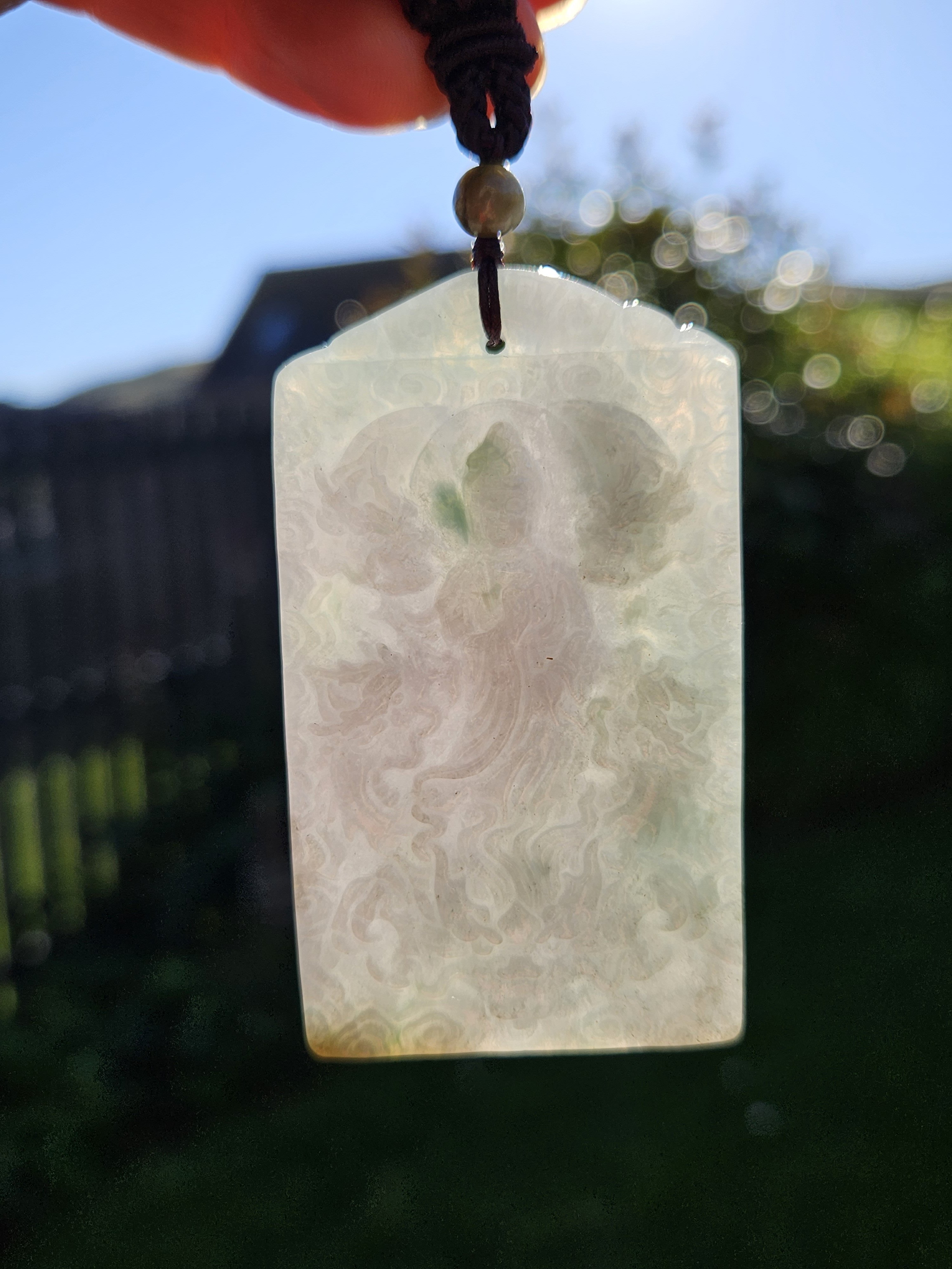 Measures 69 x 39 x 8mm, comes on an adjustable string chain, weighs 51.01g, comes with a certificate of authenticity. £89