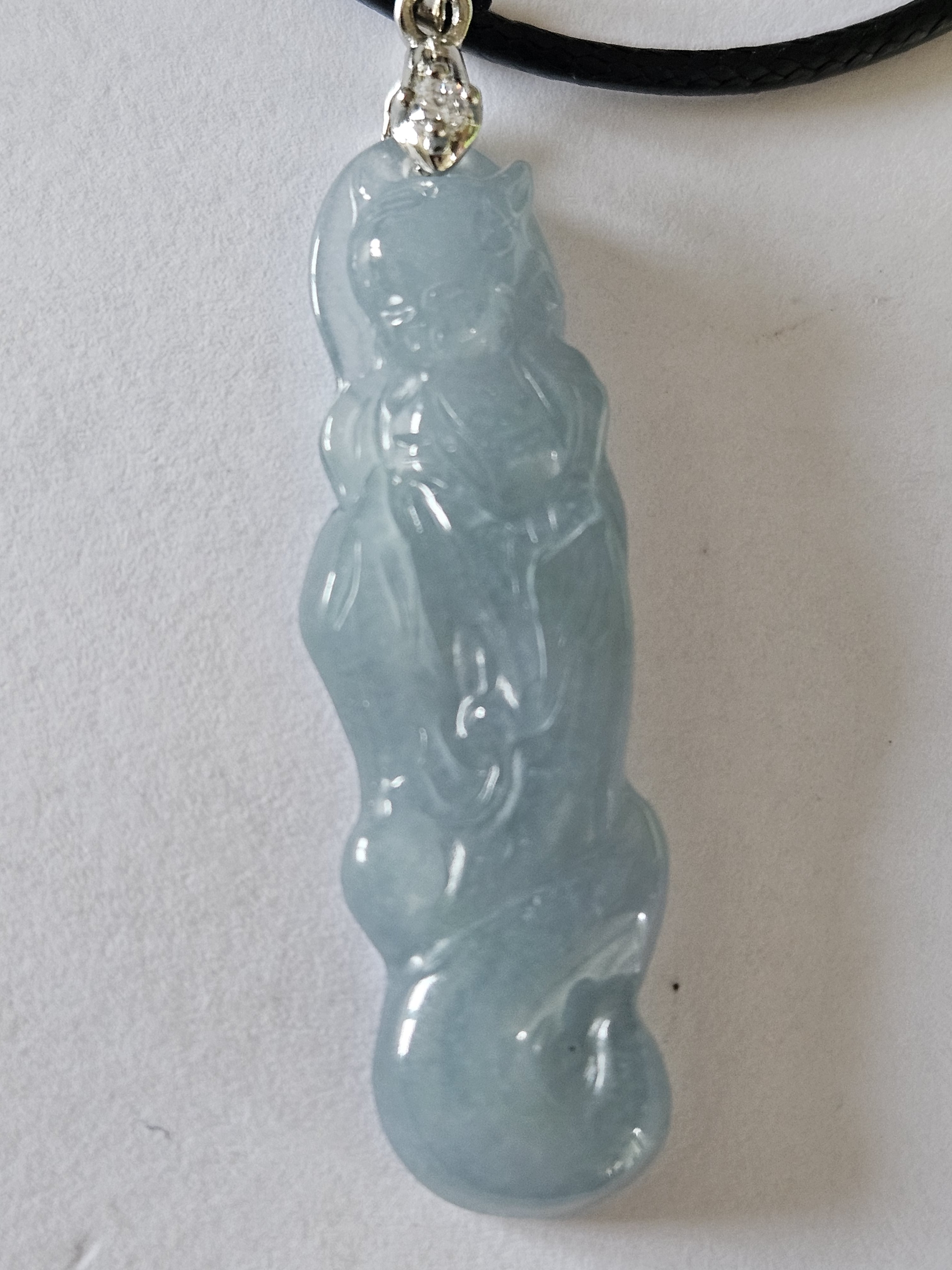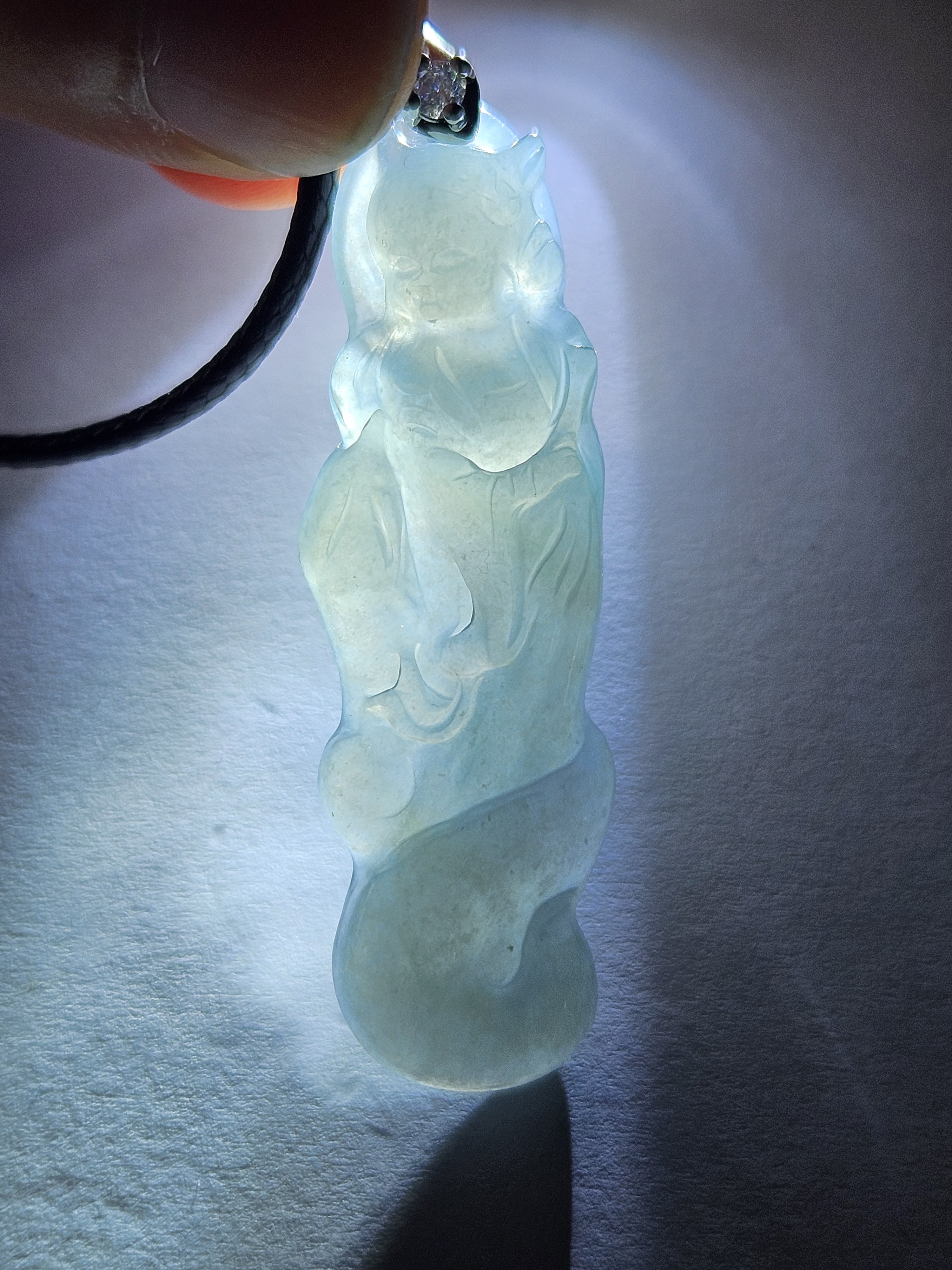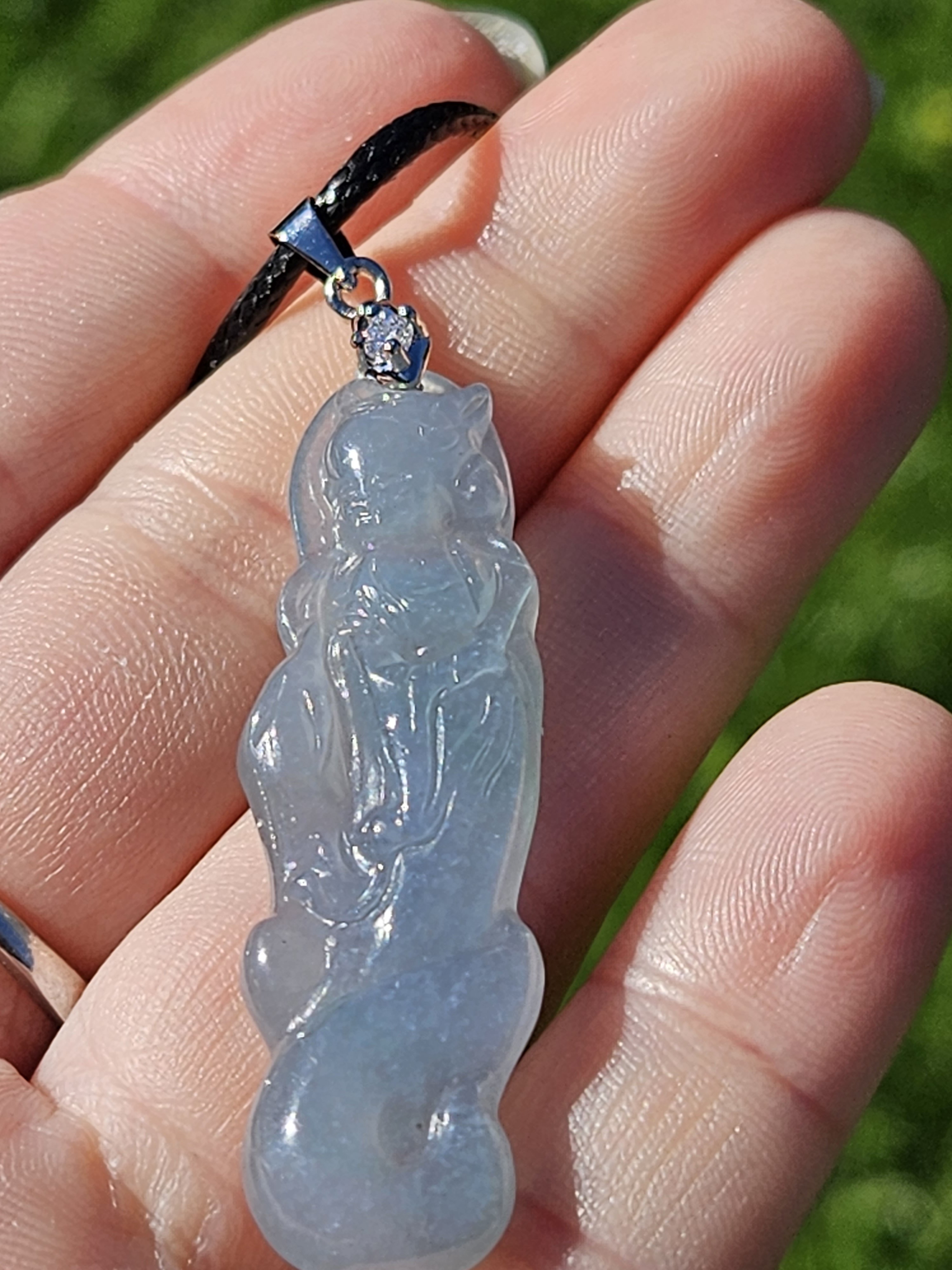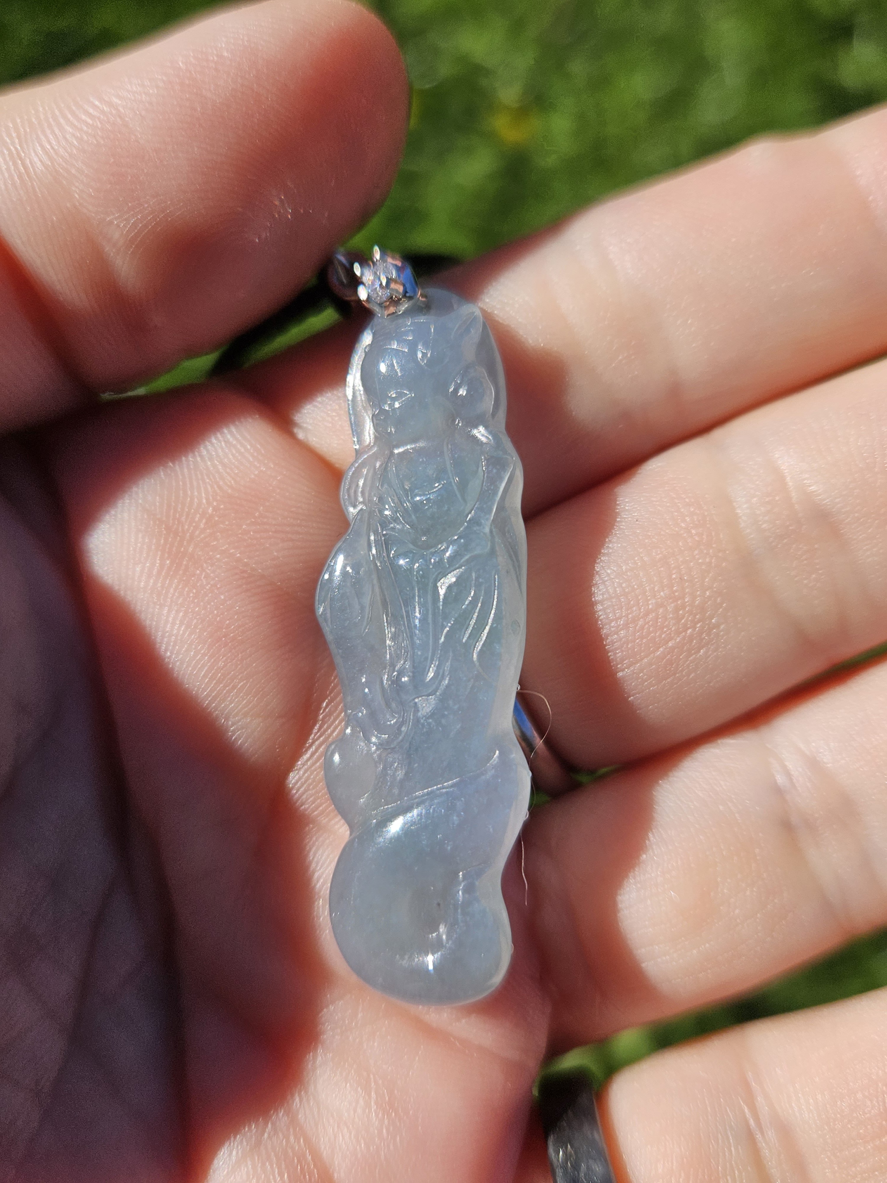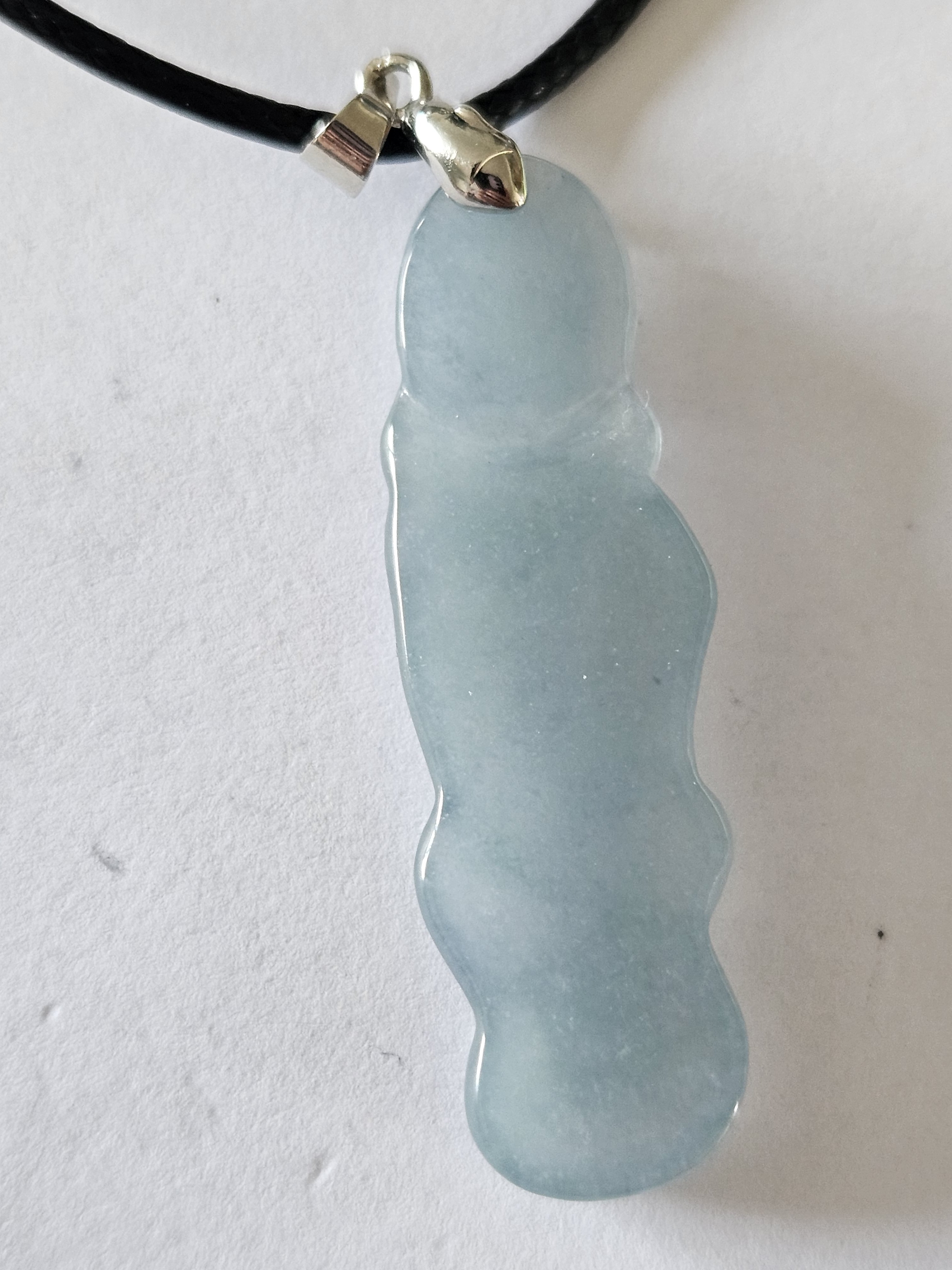 Beautiful icy light blue Guatemala jadeite fox fairy measures 44.3 x 14 x 6.7mm