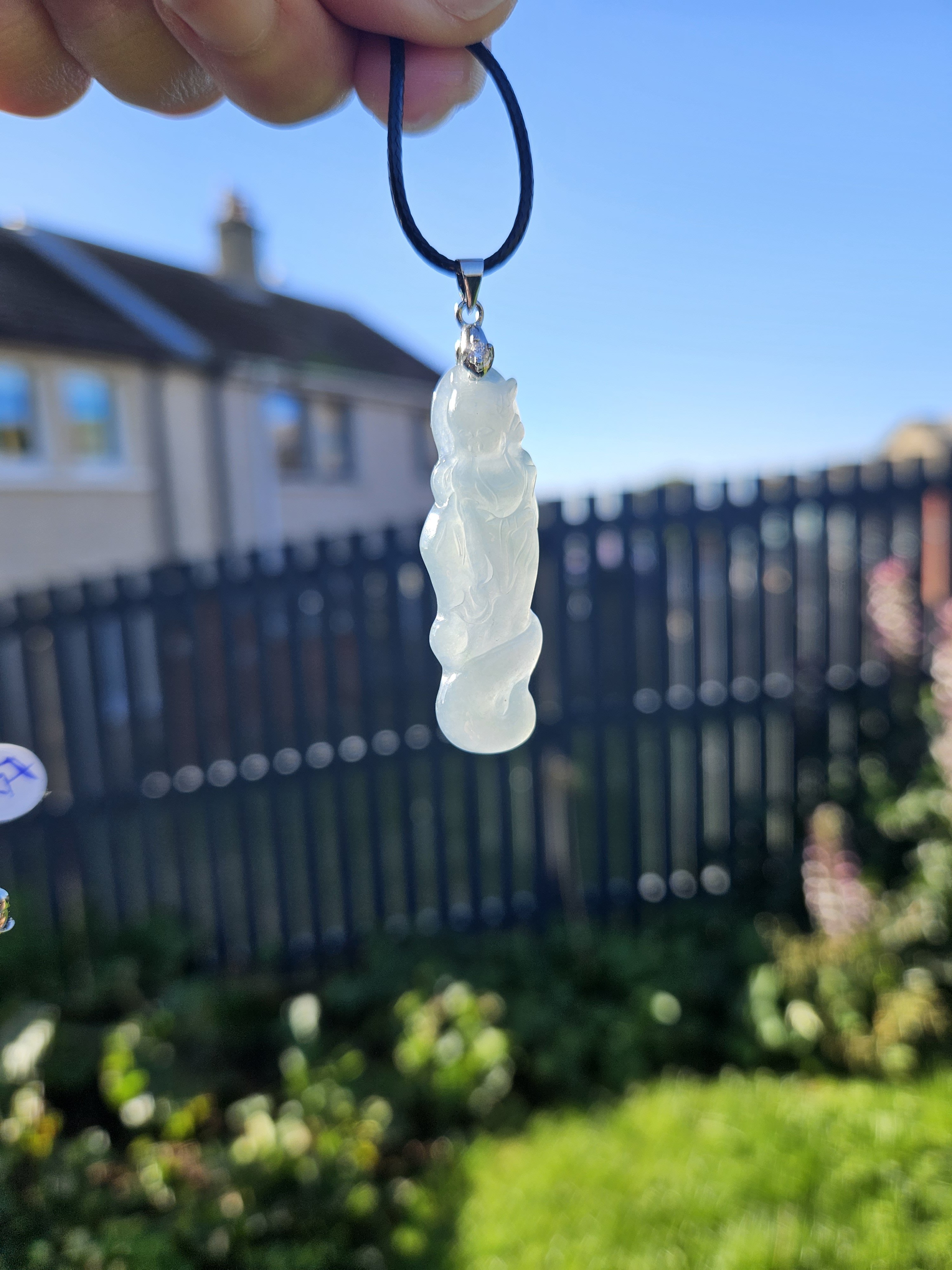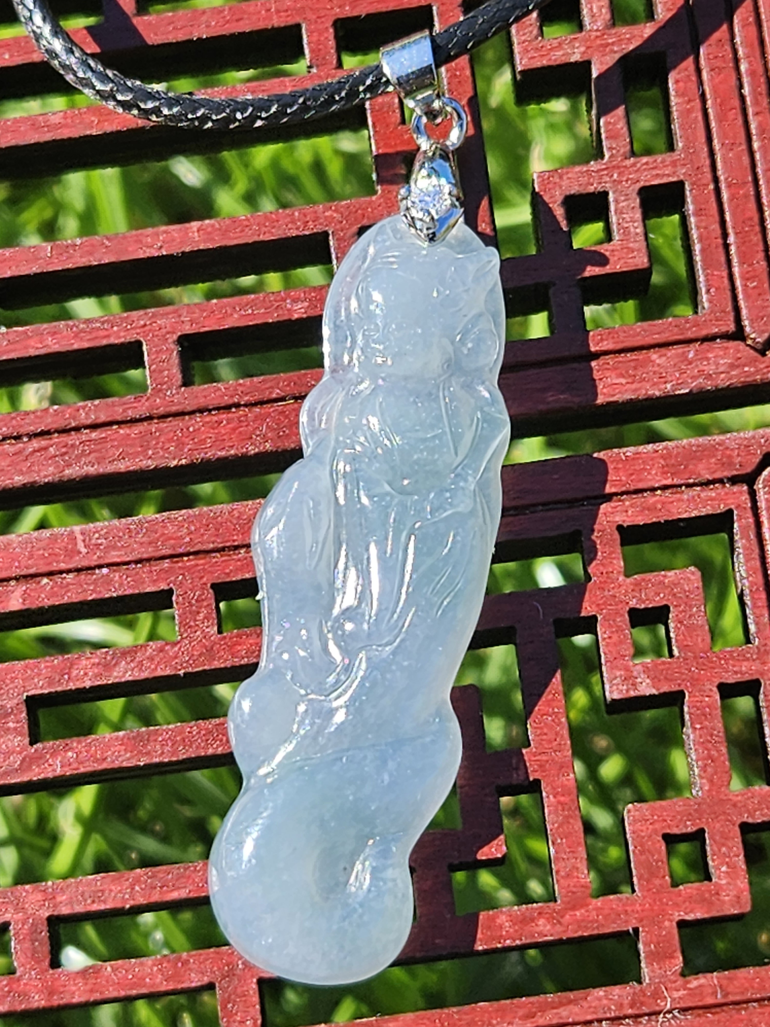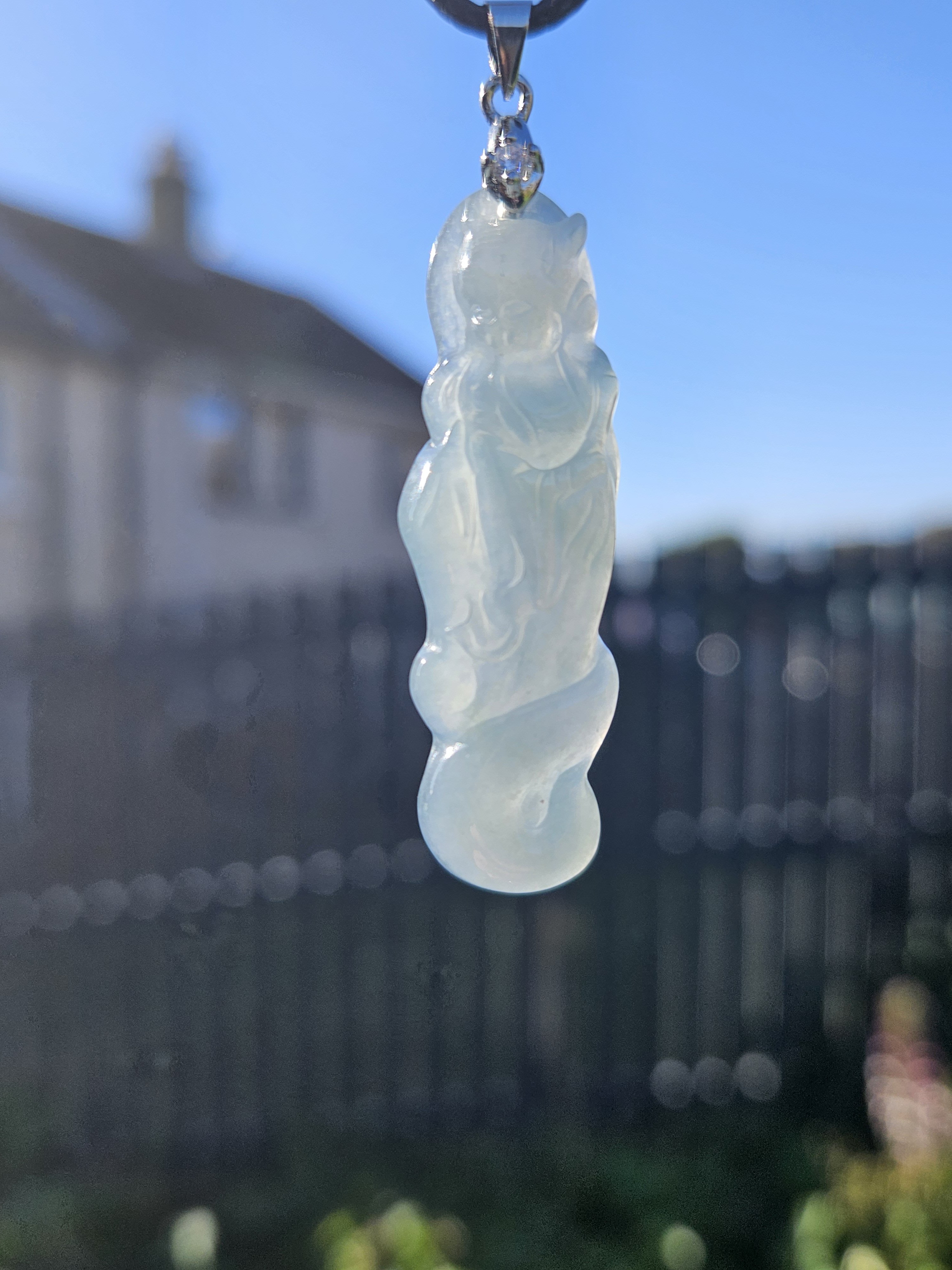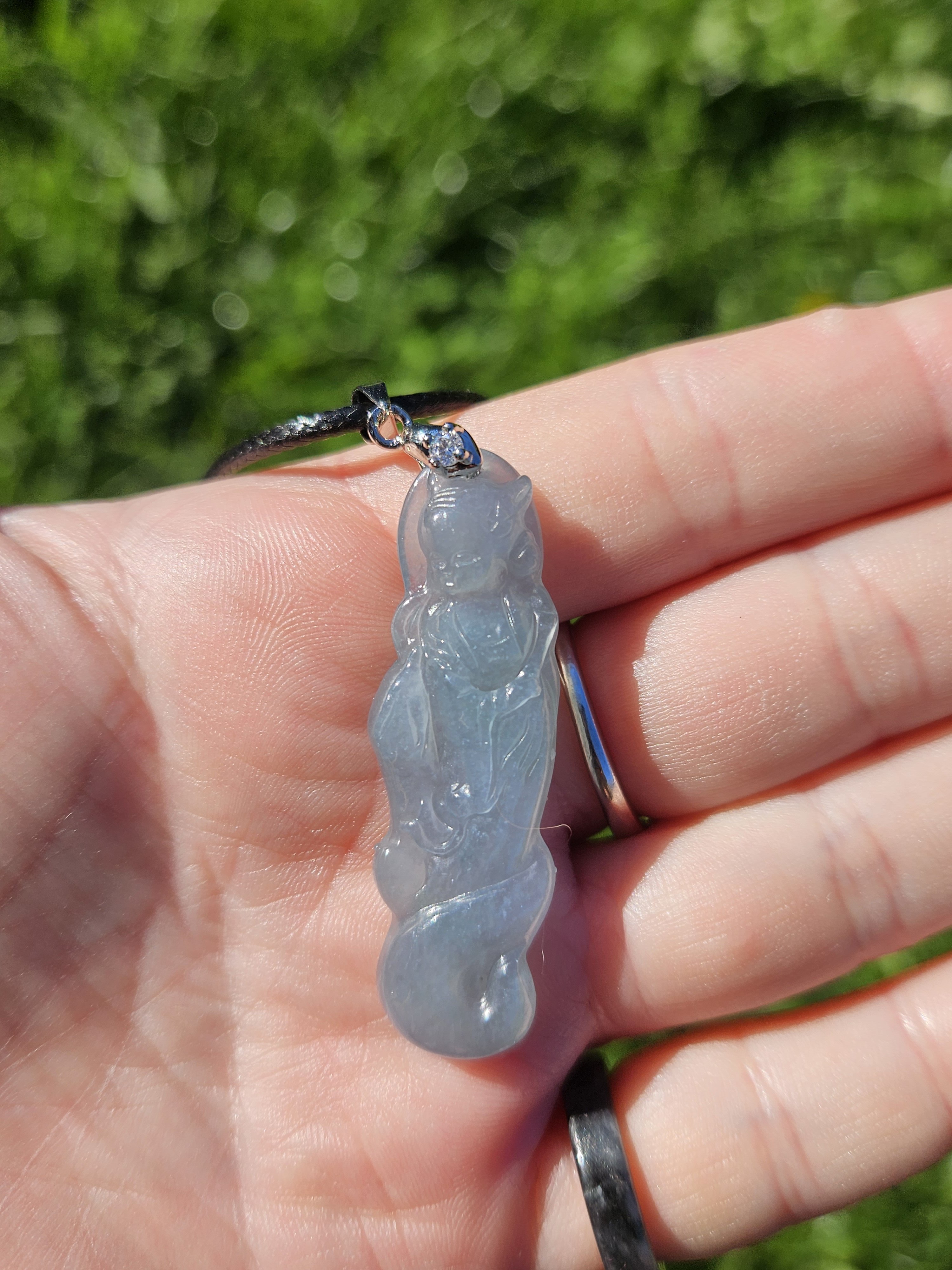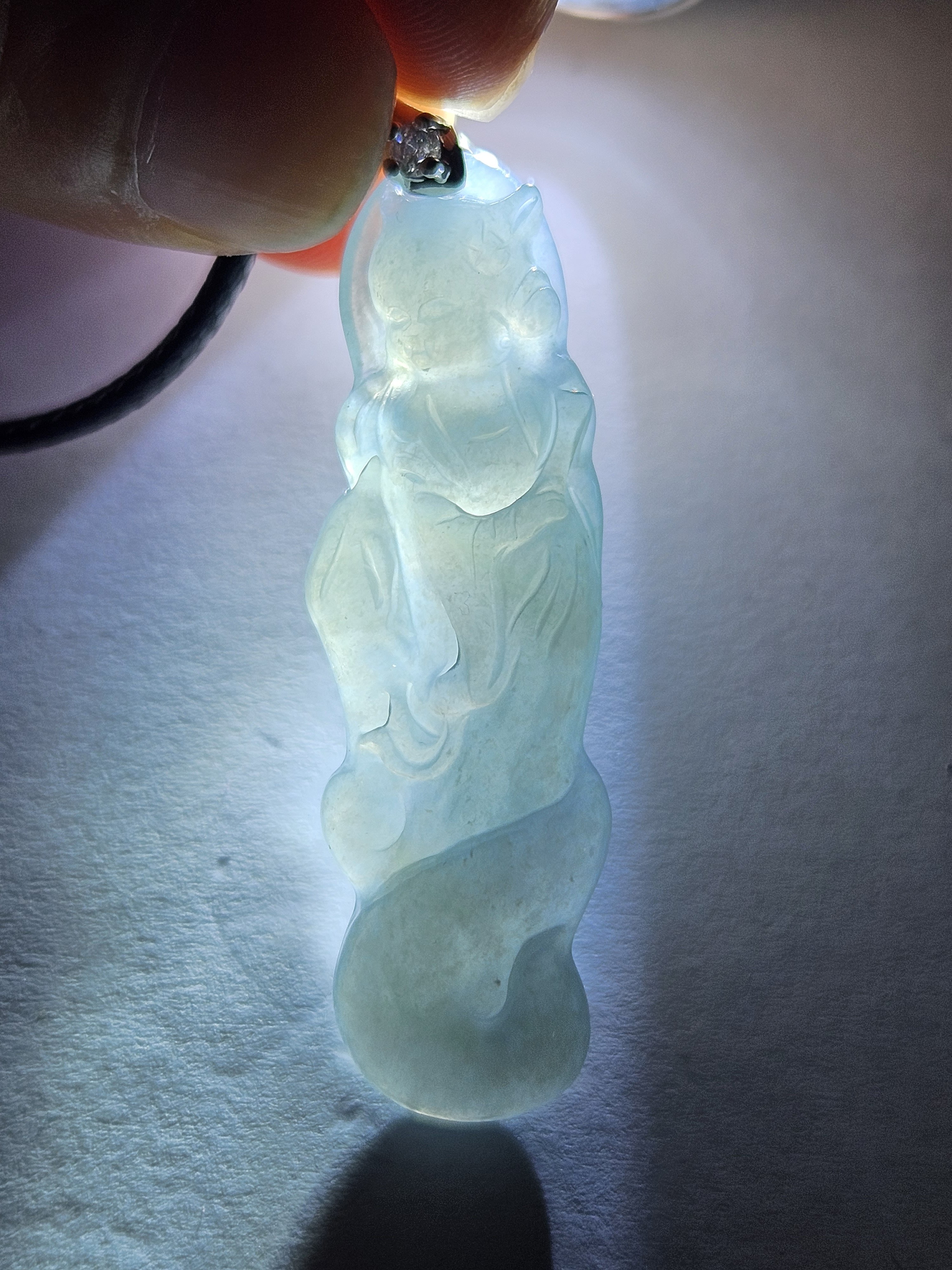 Beautiful icy light blue Guatemala jadeite fox fairy measures 44.3 x 14 x 6.7mm