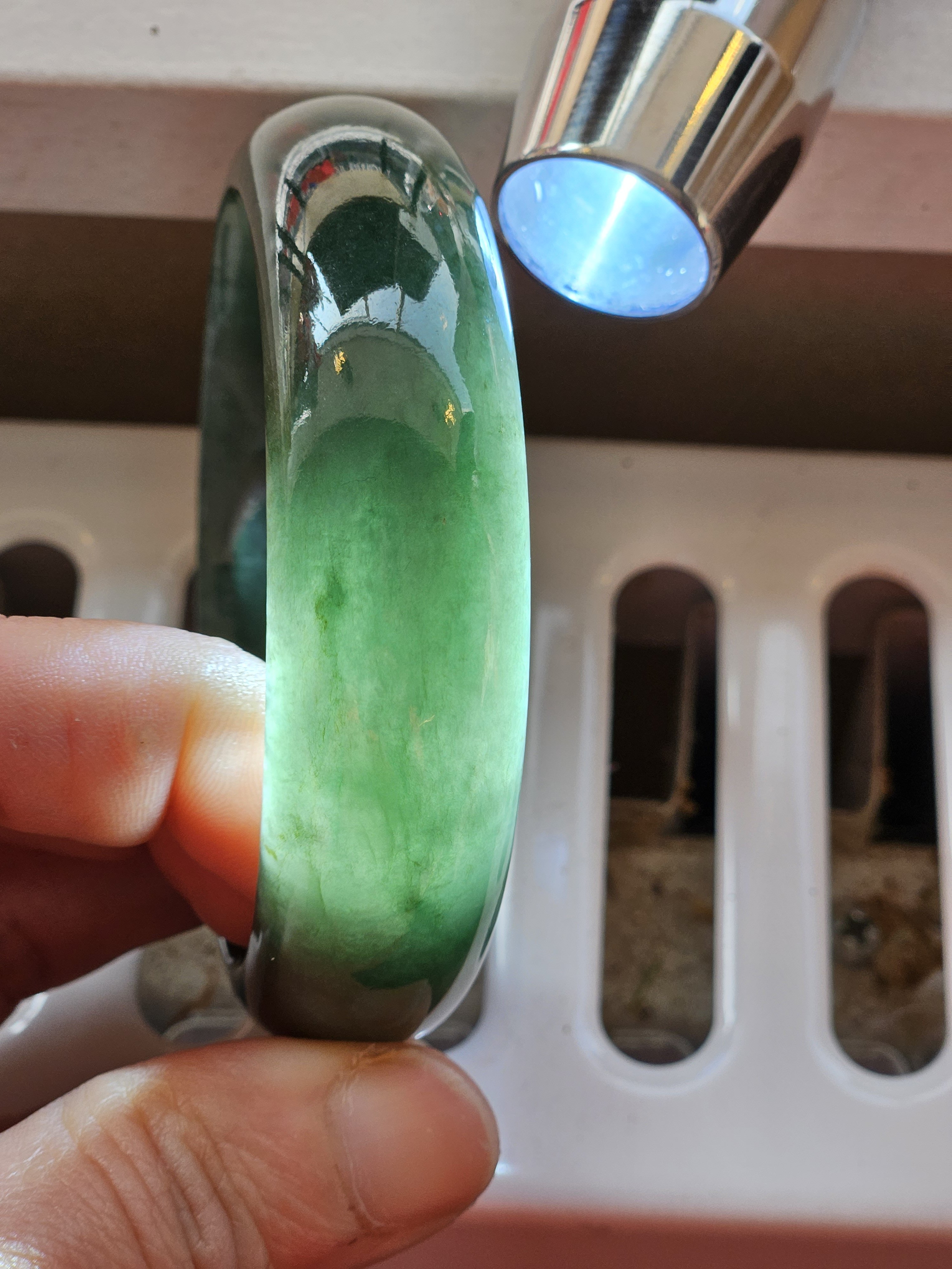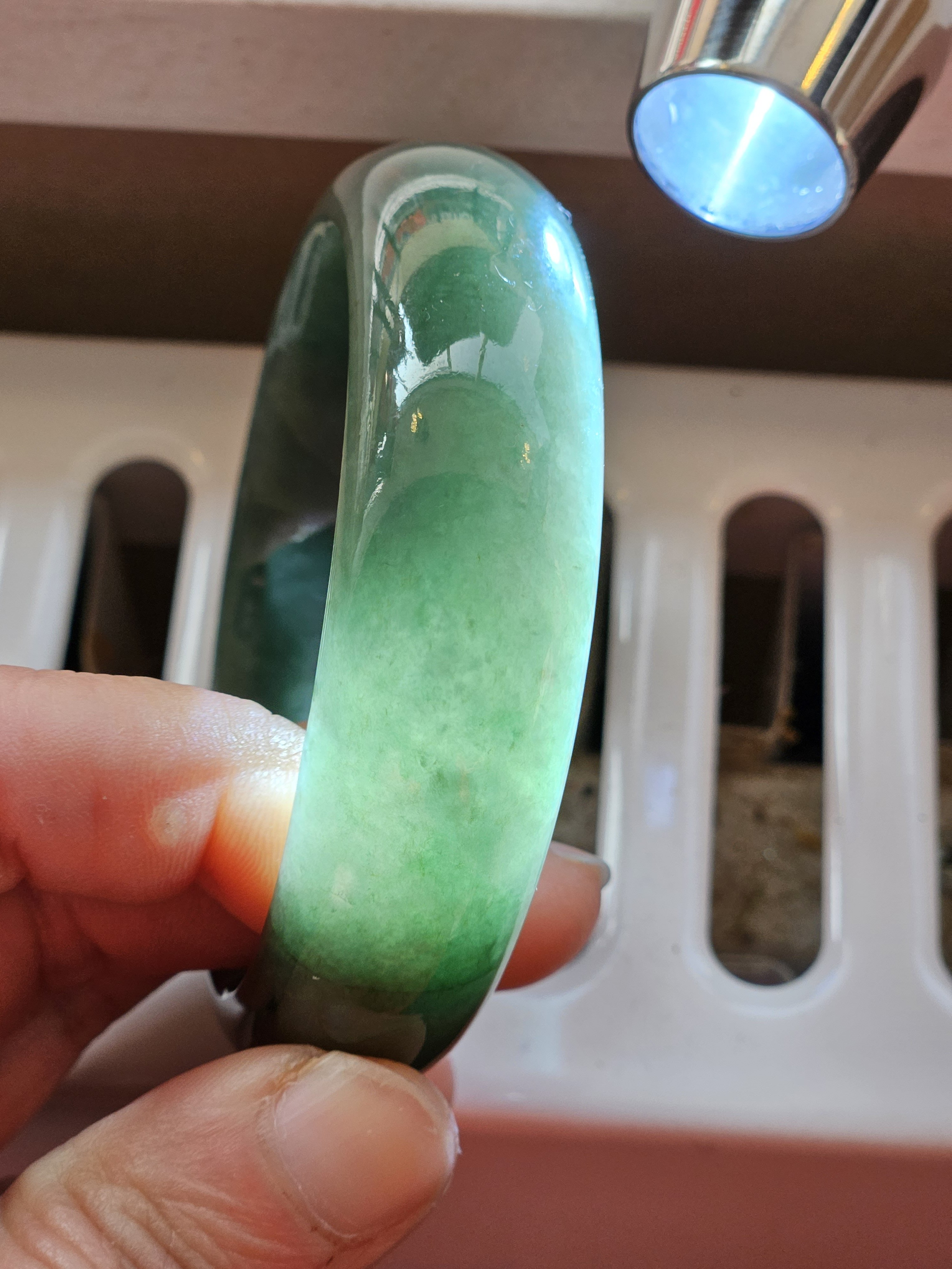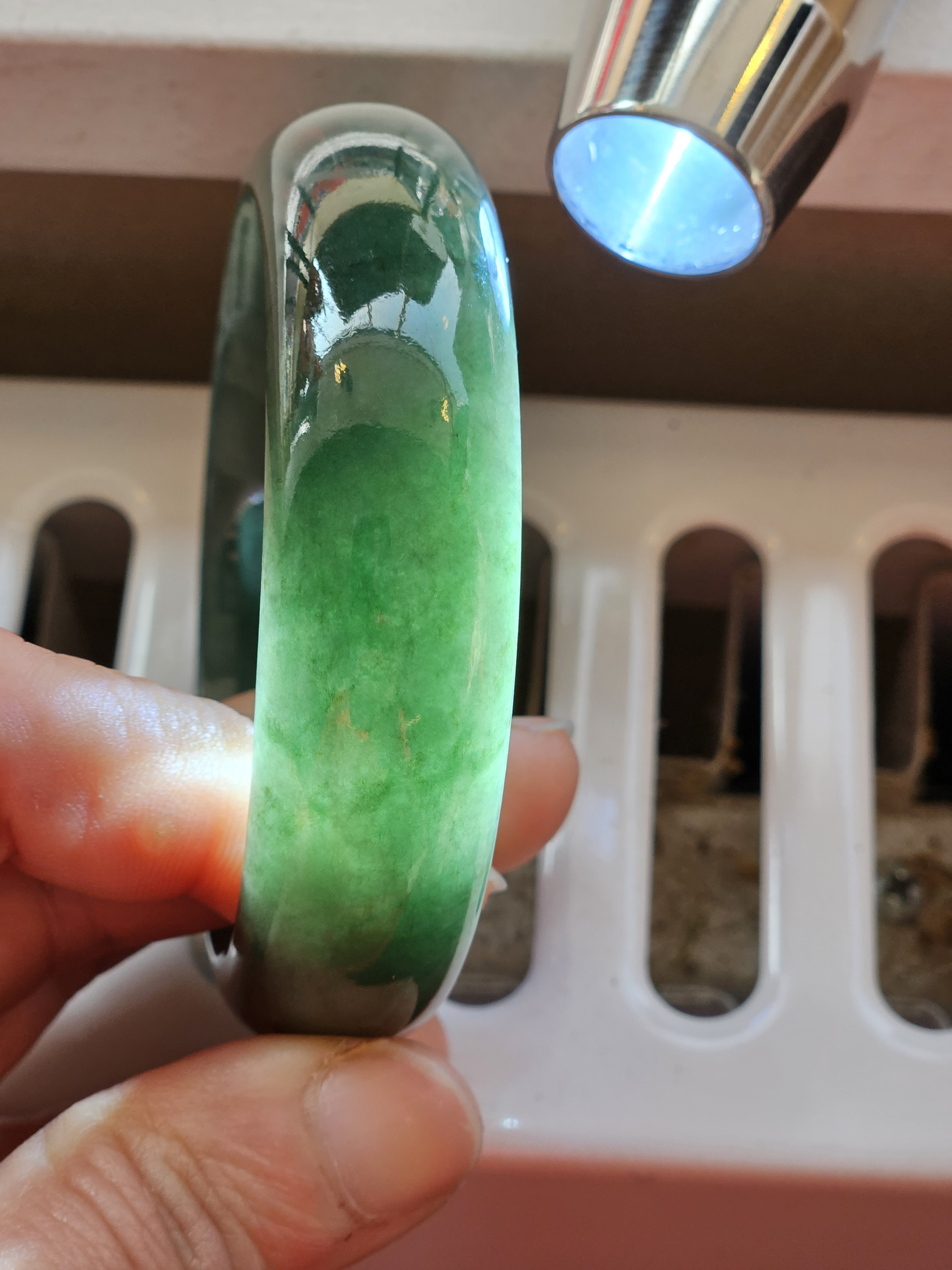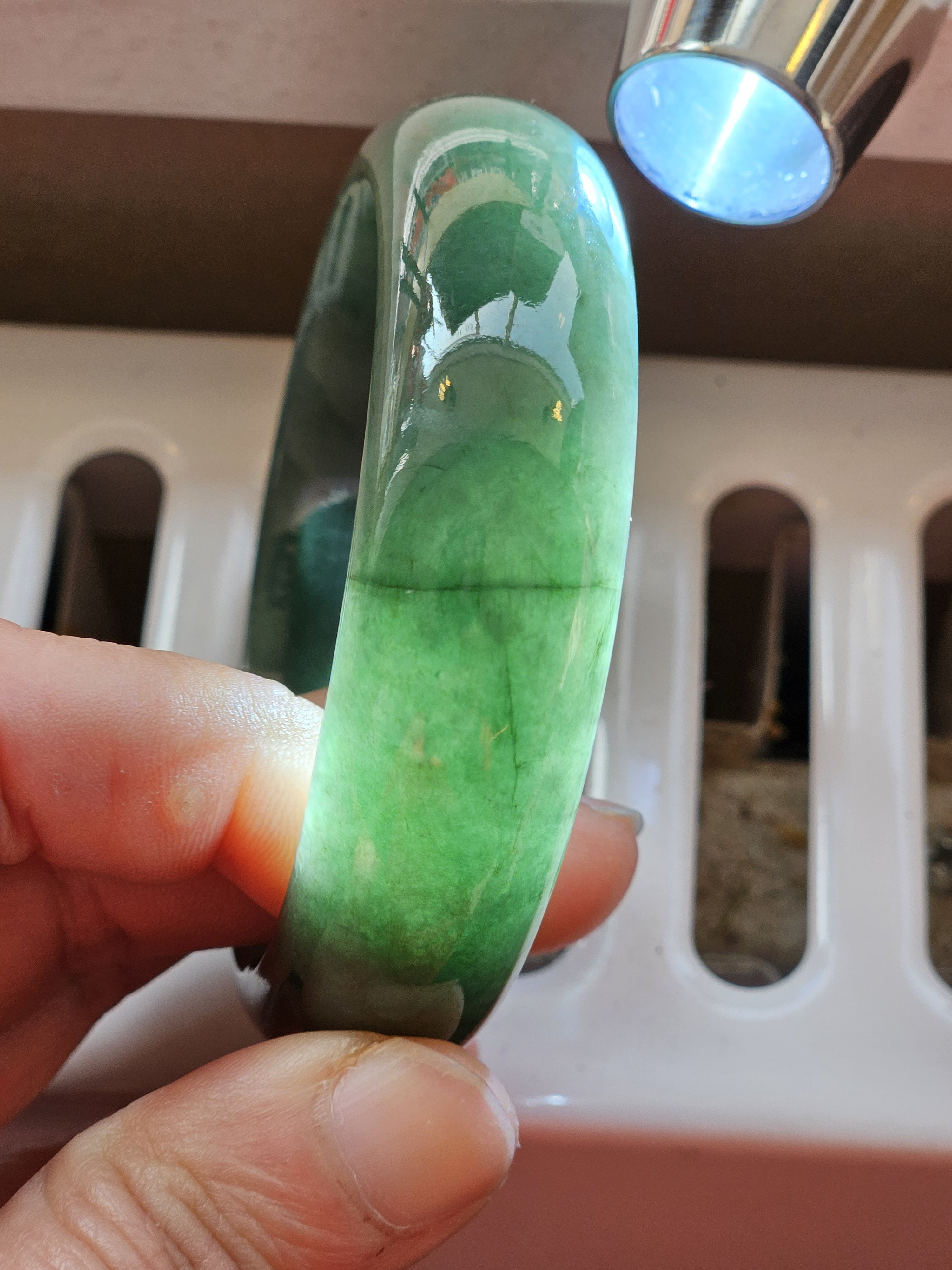 This is a stunning bangle with no cracks, has a colour line which is not obvious unless under light and is a great collection.