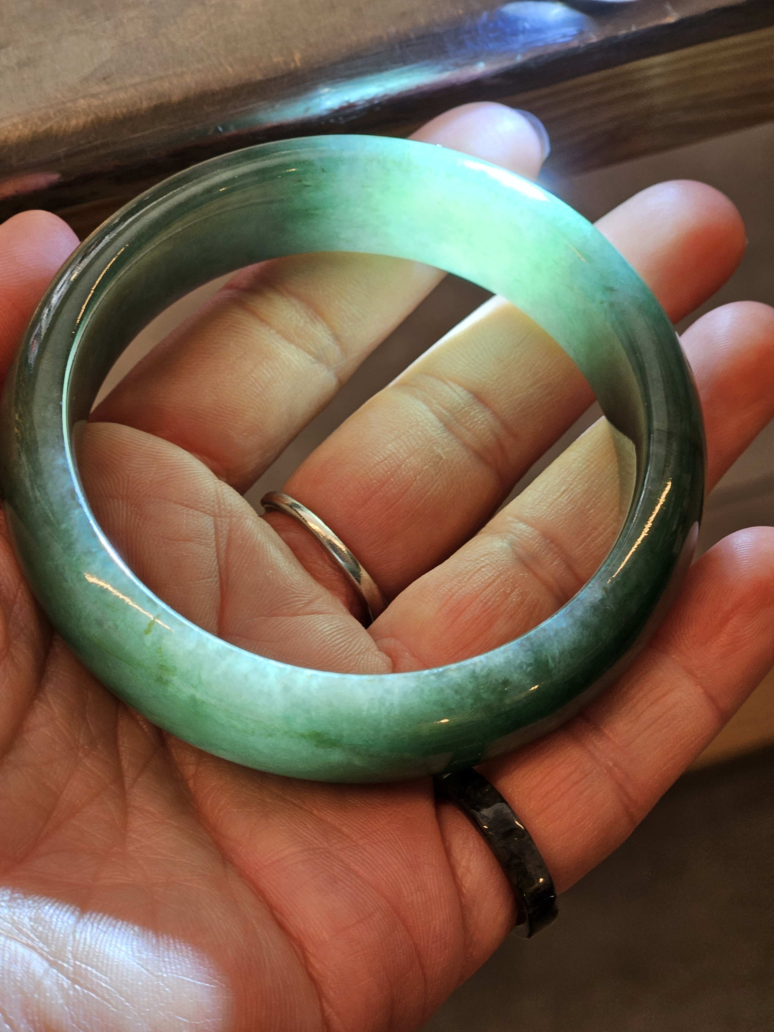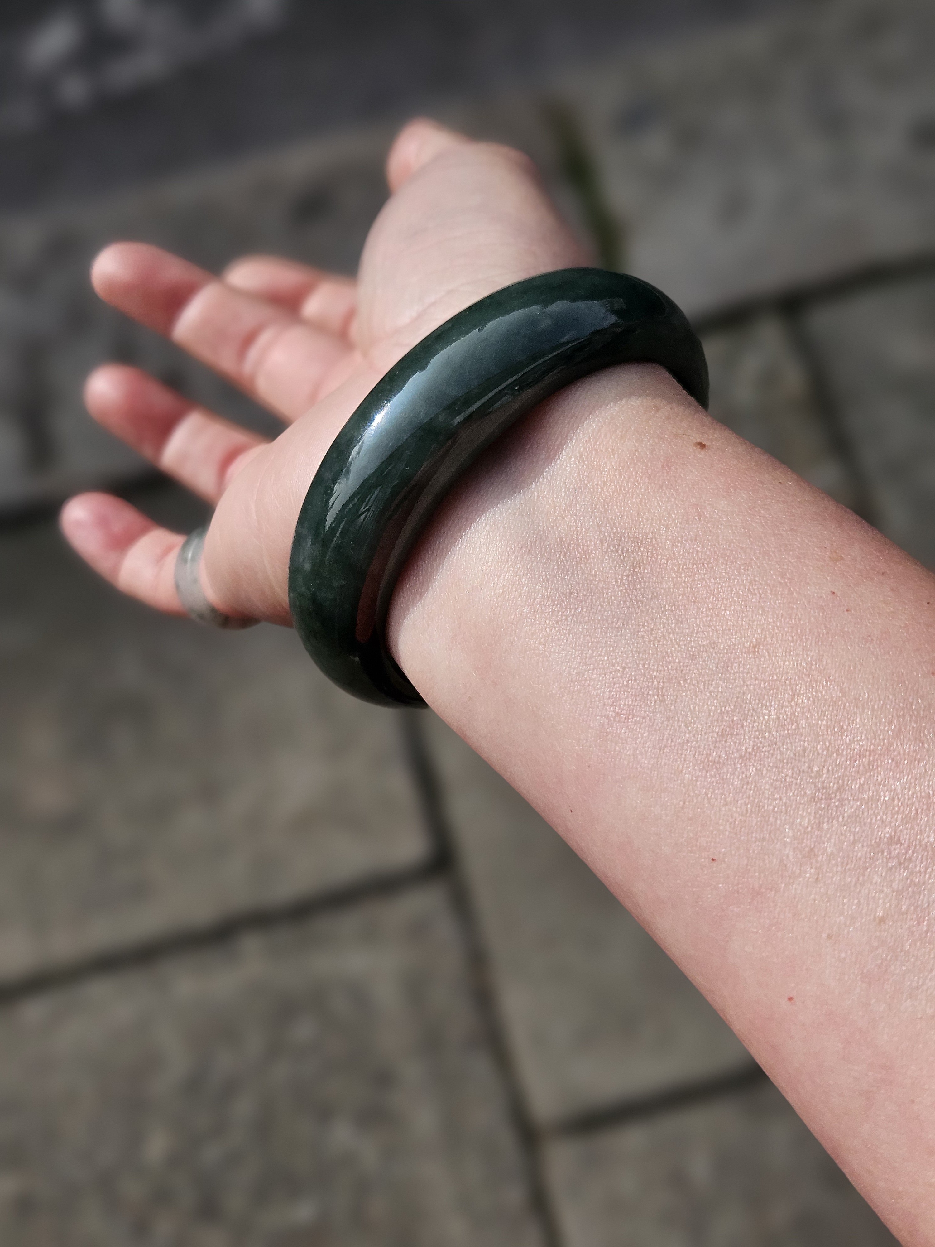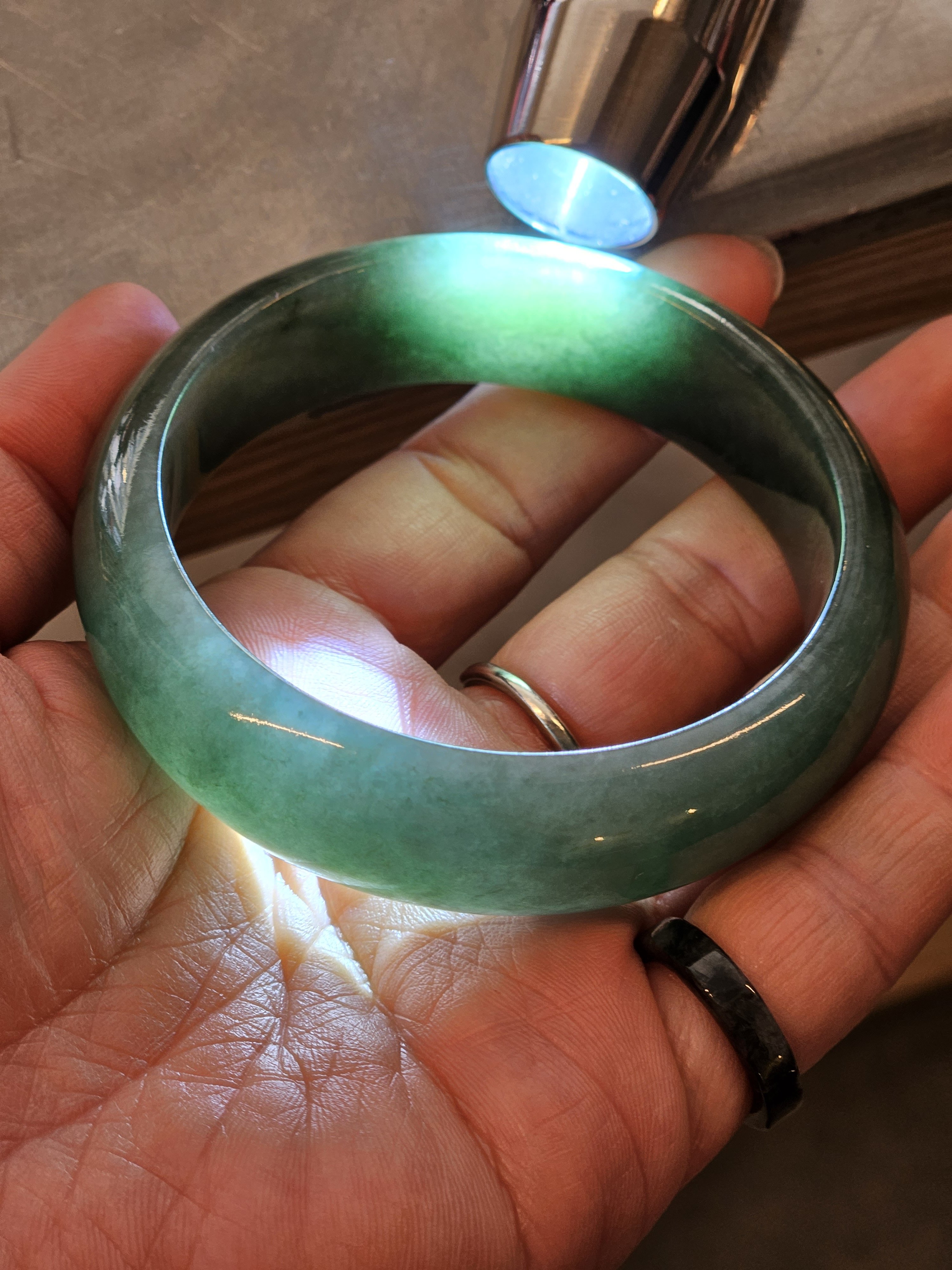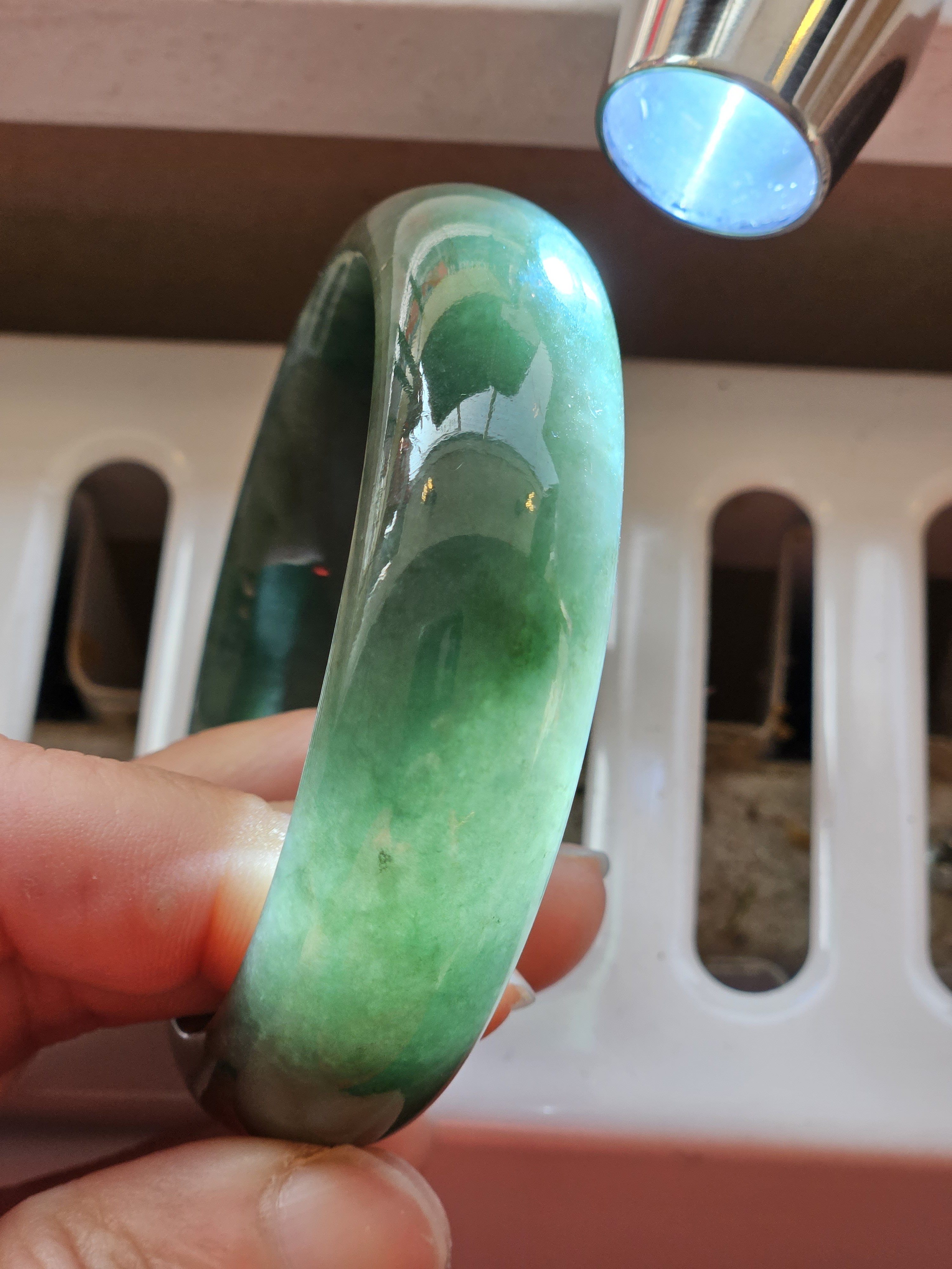 This is a stunning bangle with no cracks, has a colour line which is not obvious unless under light and is a great collection.