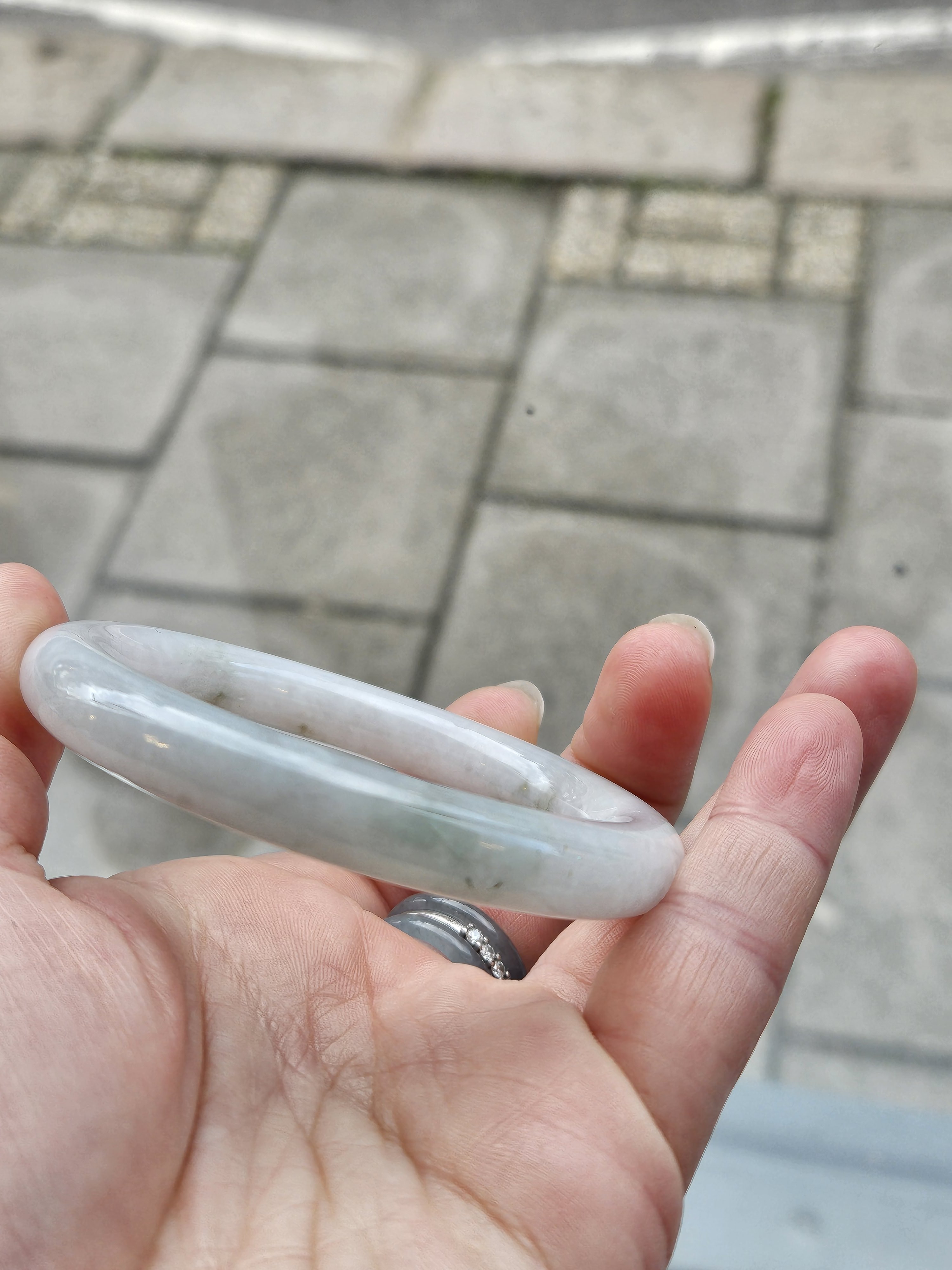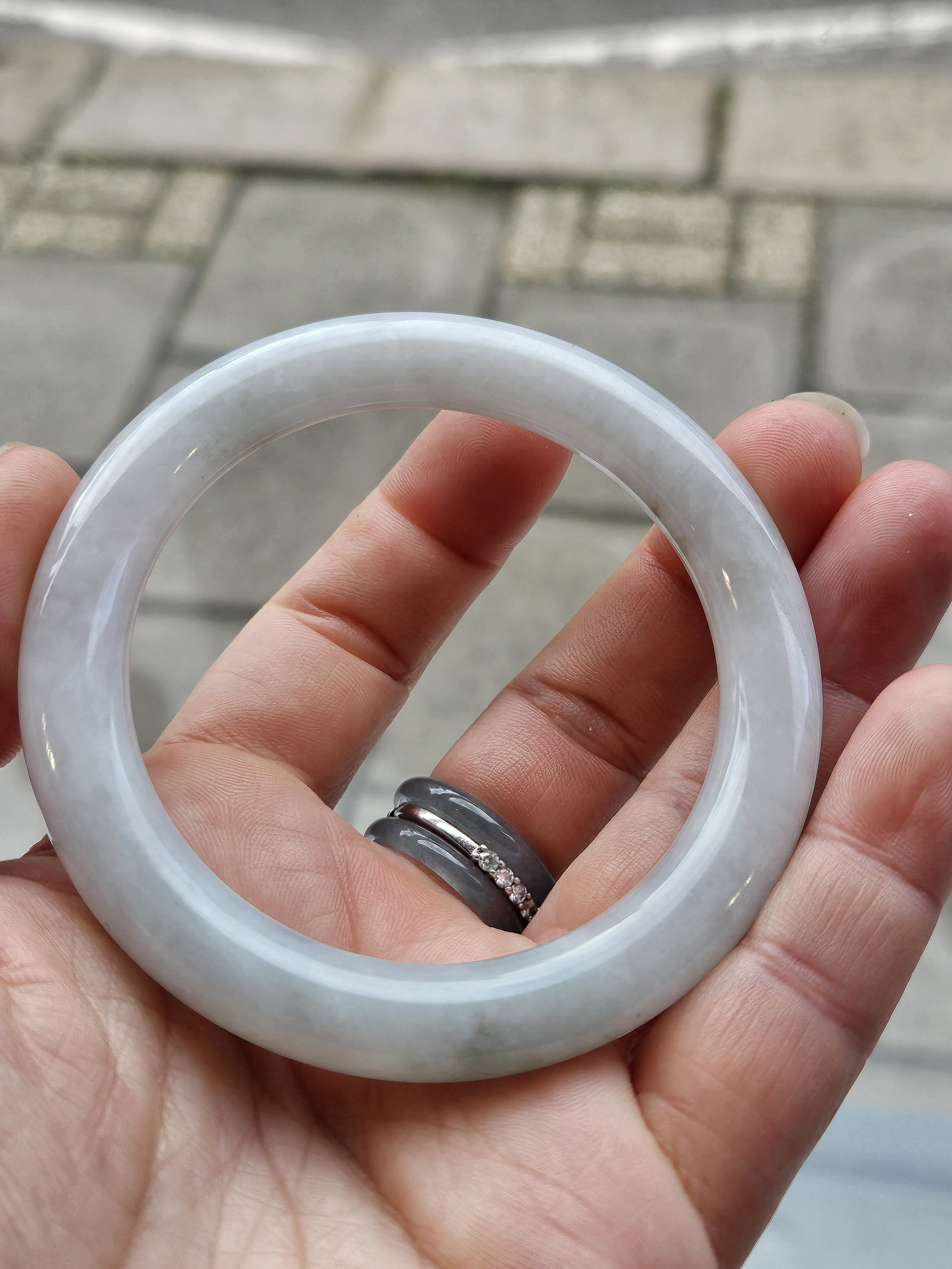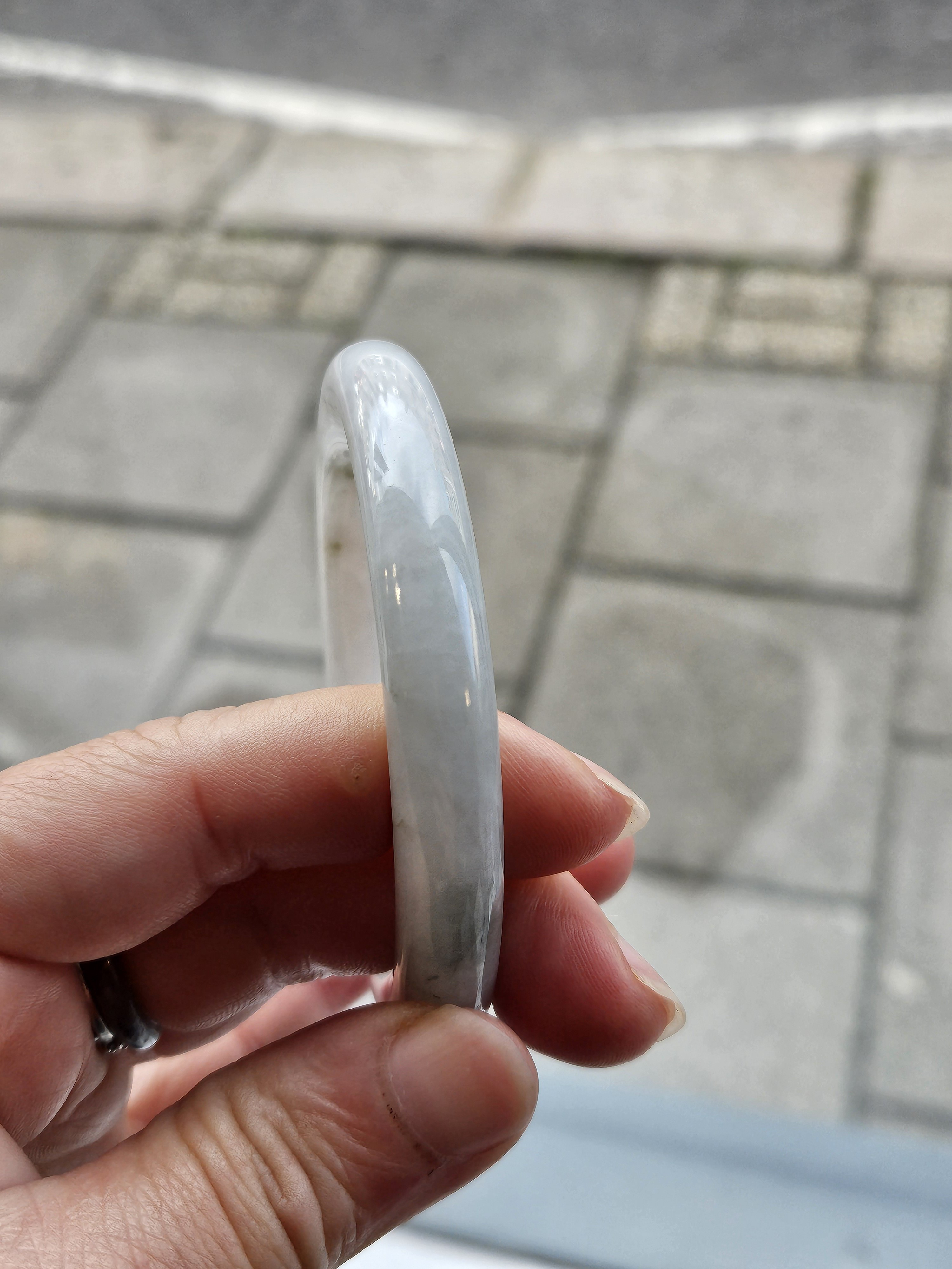 Light green round Burmese jadeite bangle fits up to 56mm, measures 54 x 9.6 x 9.7mm, weighs 47.99g, comes with a certificate of authenticity £119