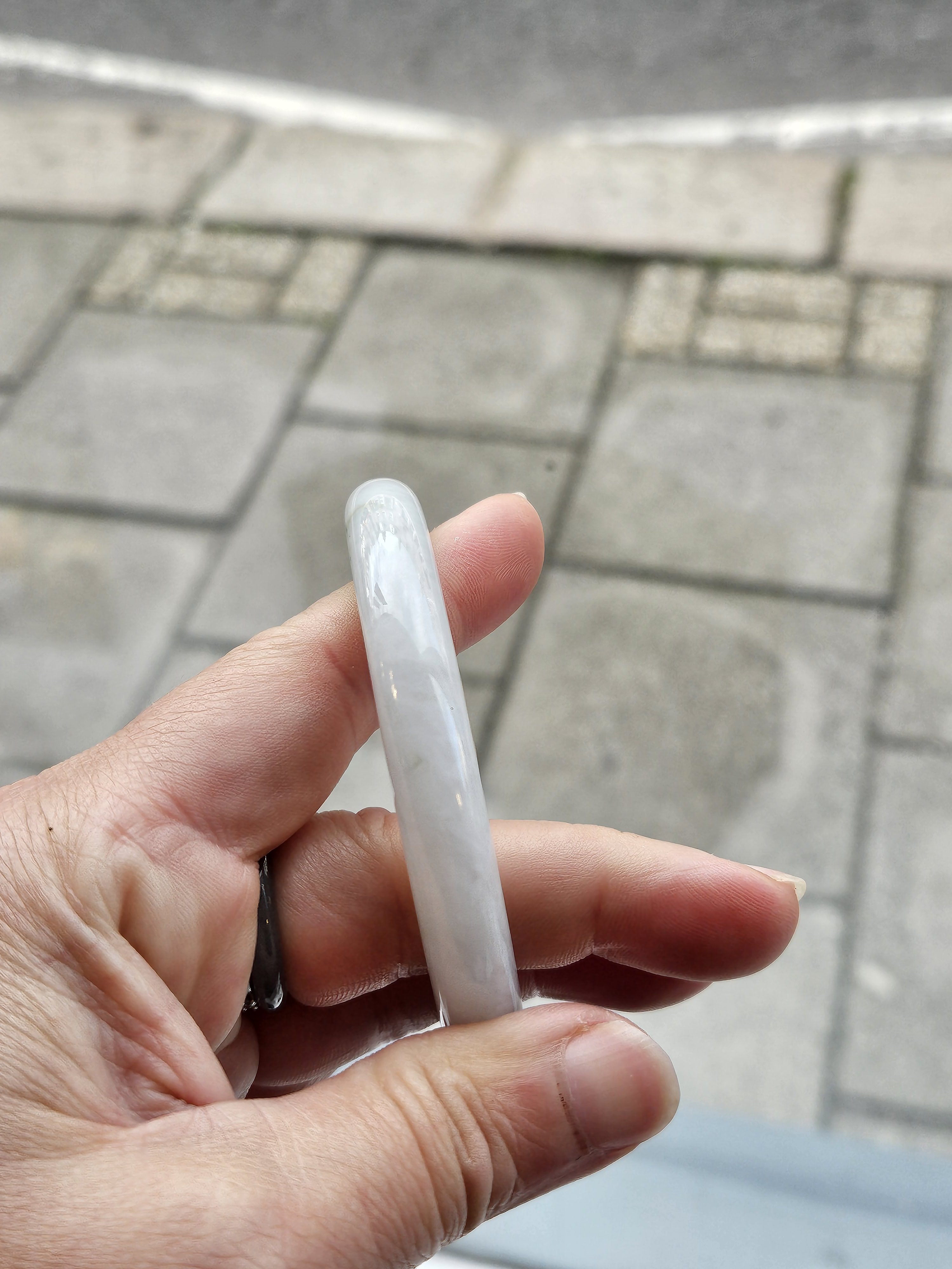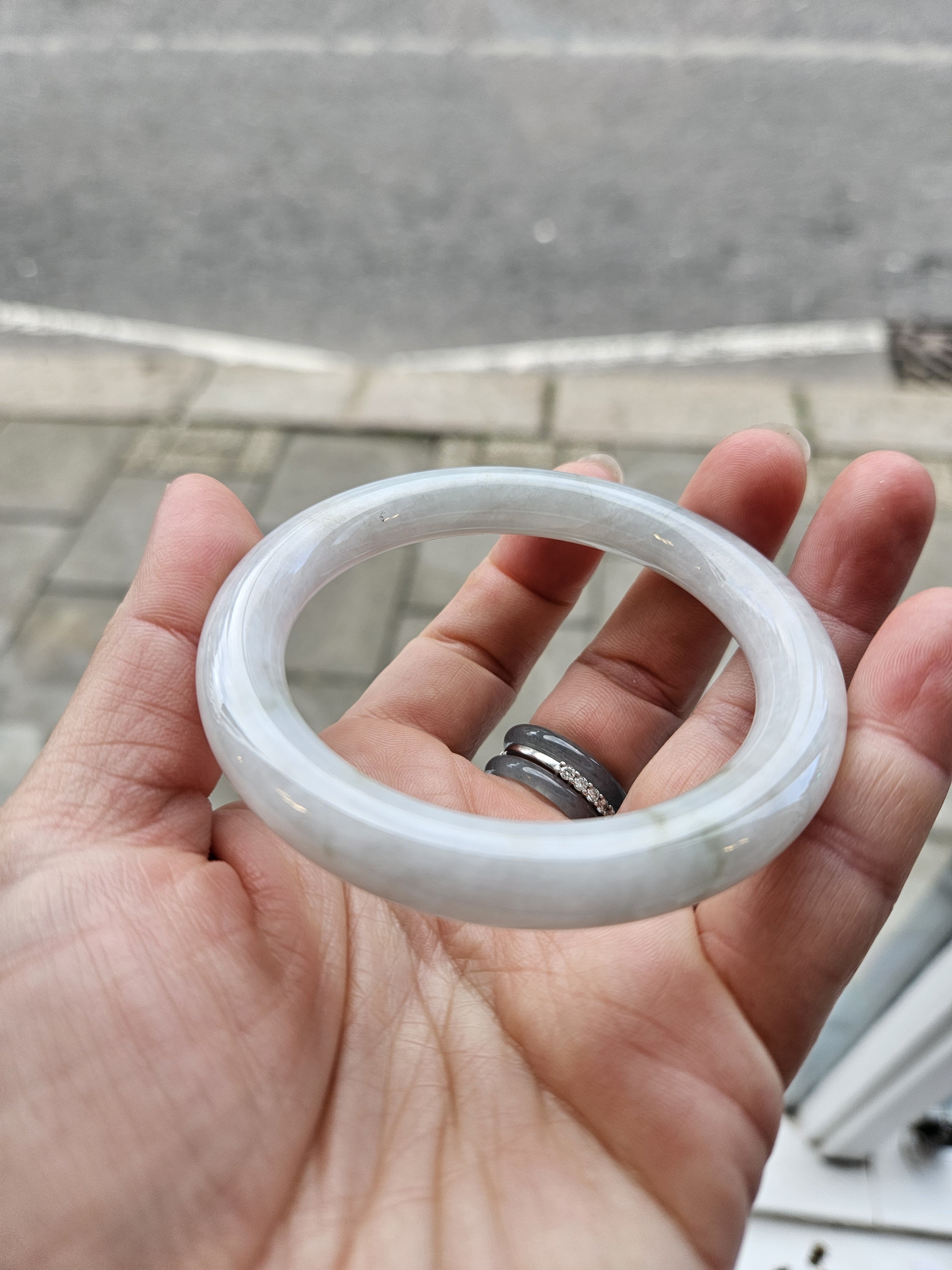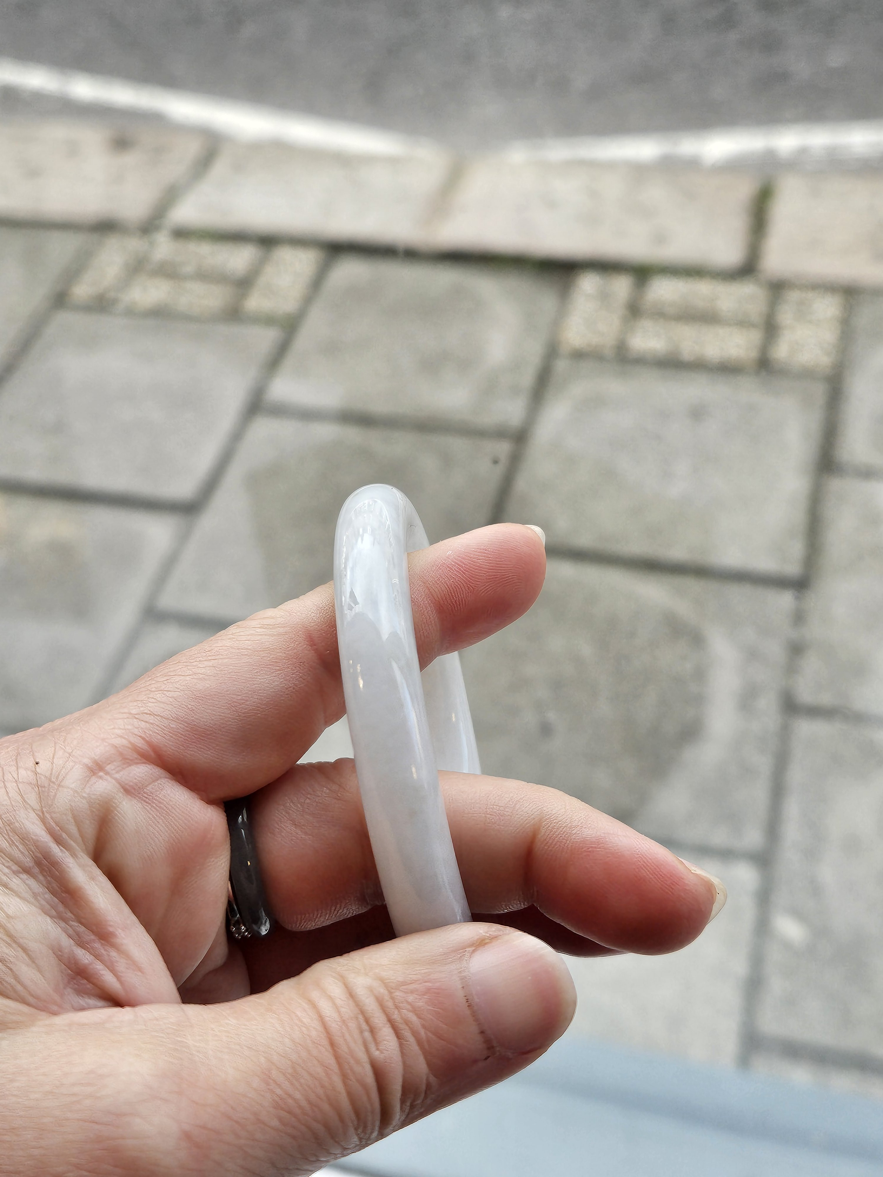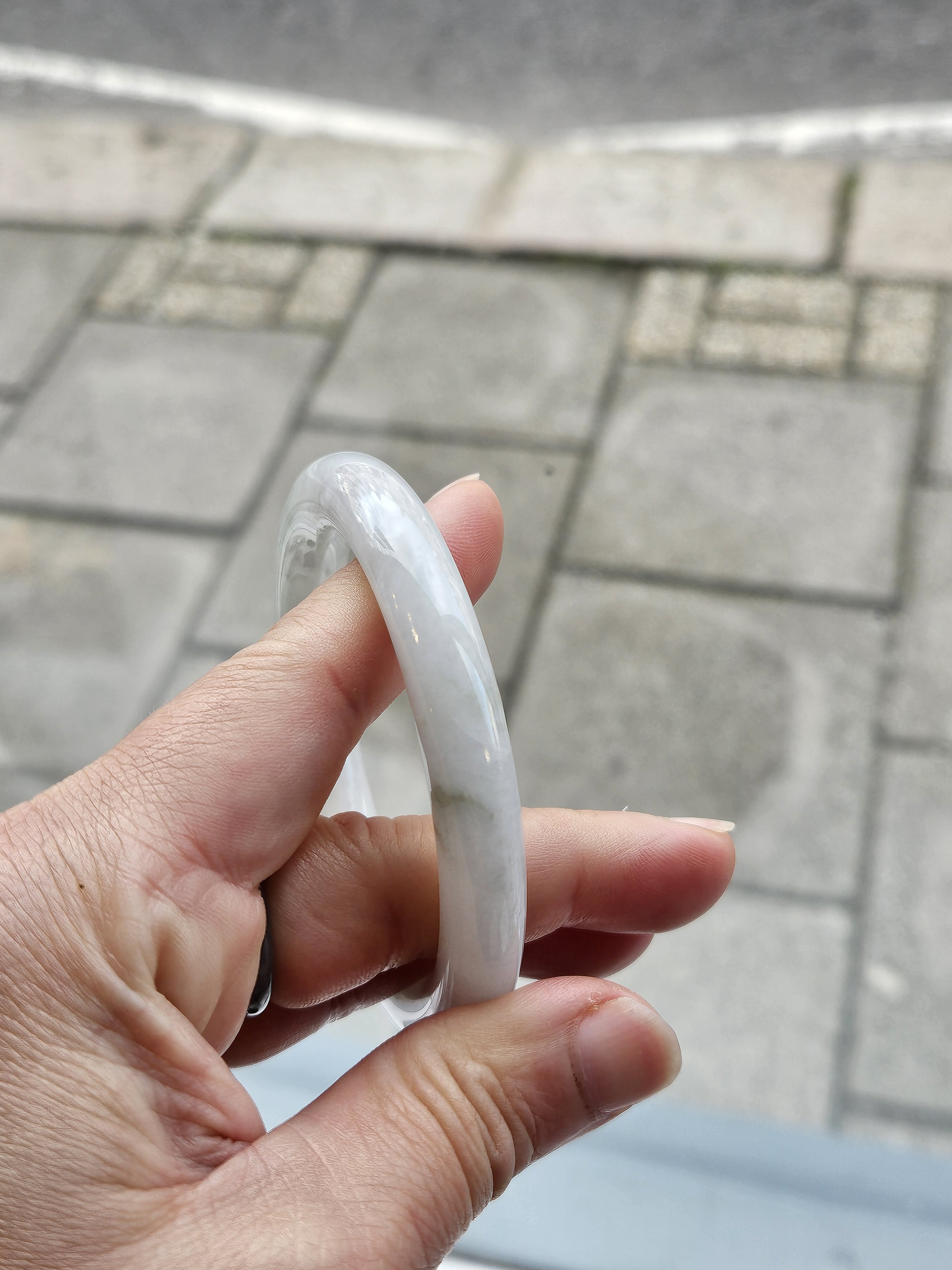 Light green round Burmese jadeite bangle fits up to 56mm, measures 54 x 9.6 x 9.7mm, weighs 47.99g, comes with a certificate of authenticity £119