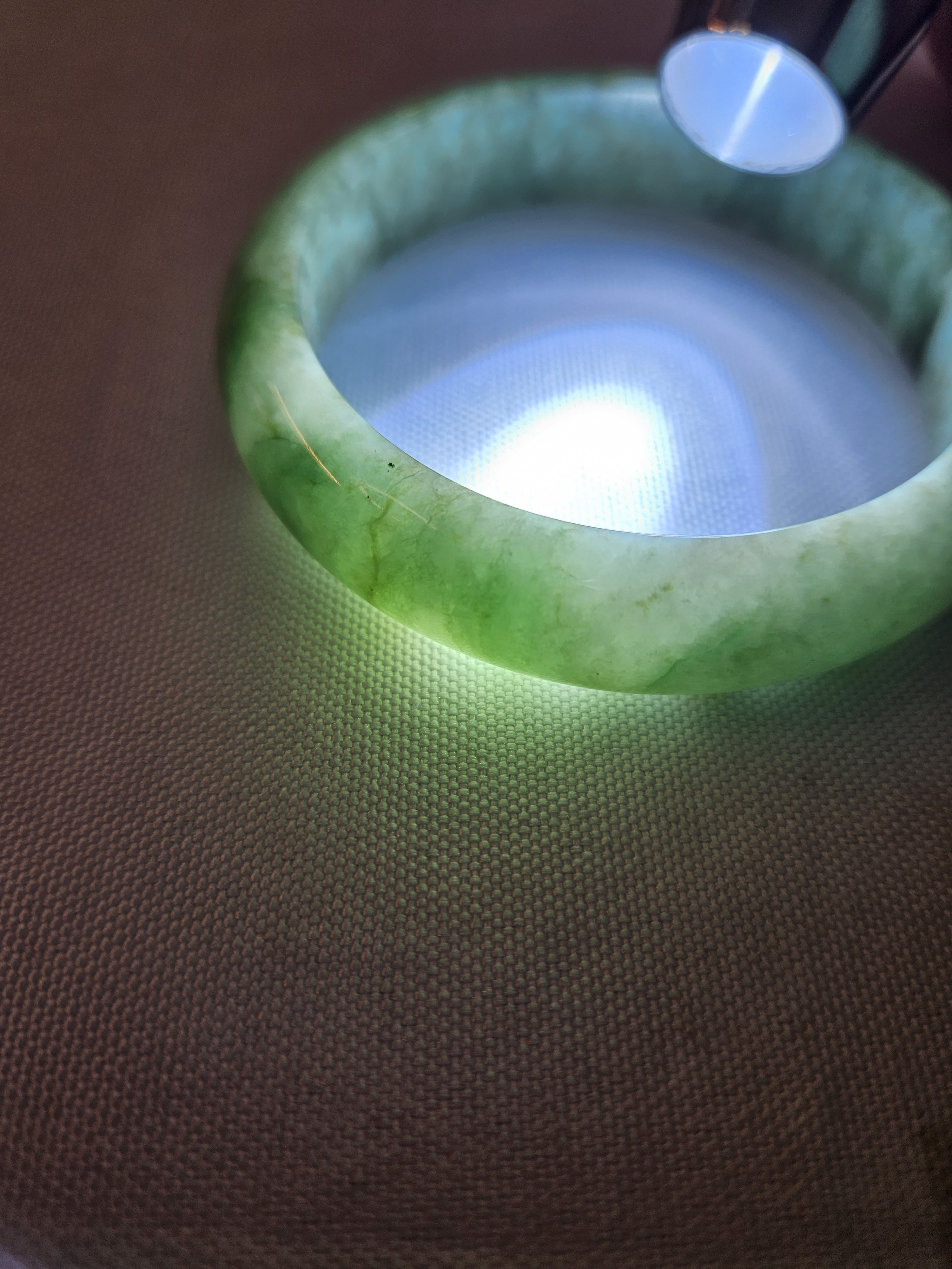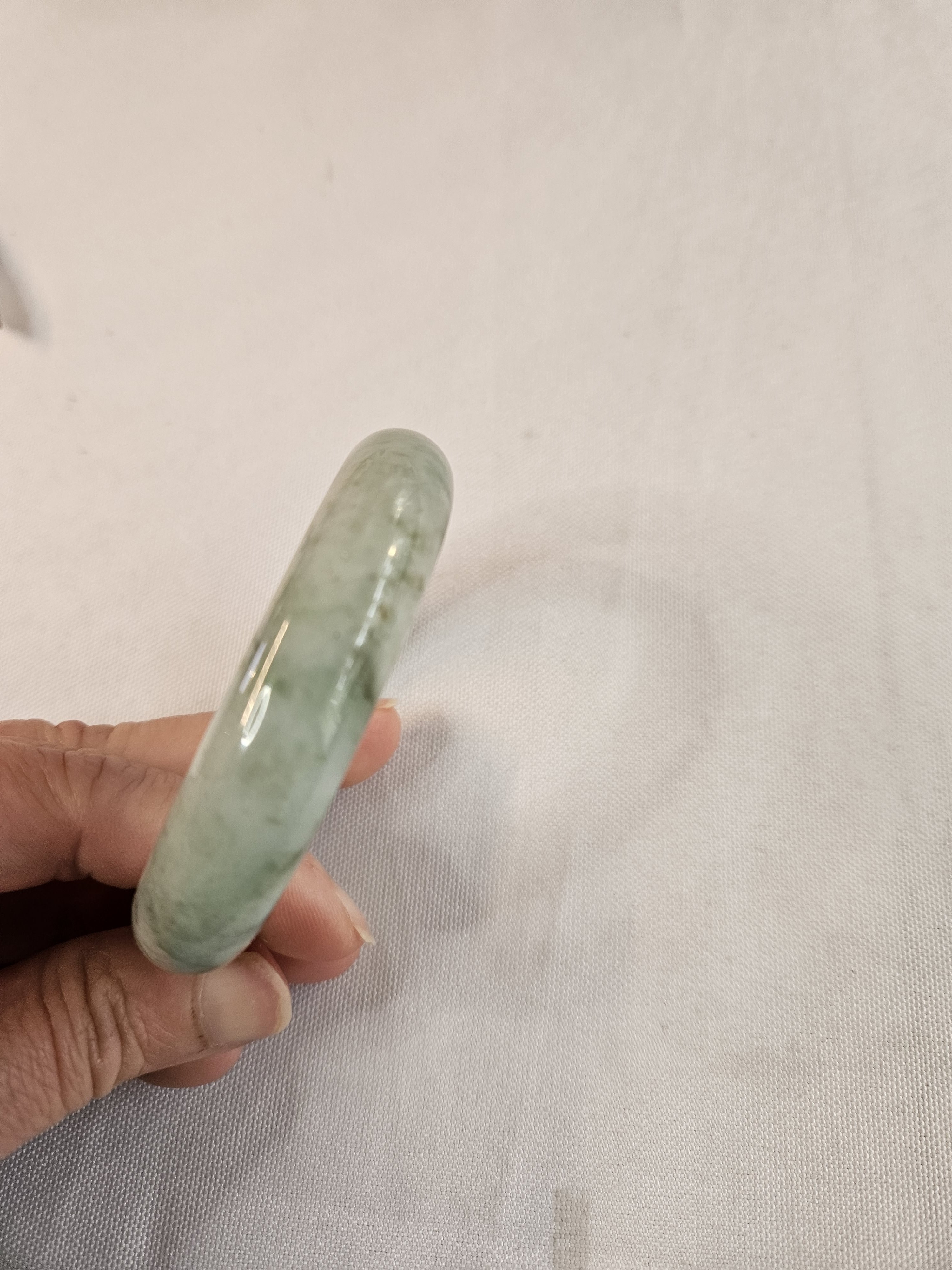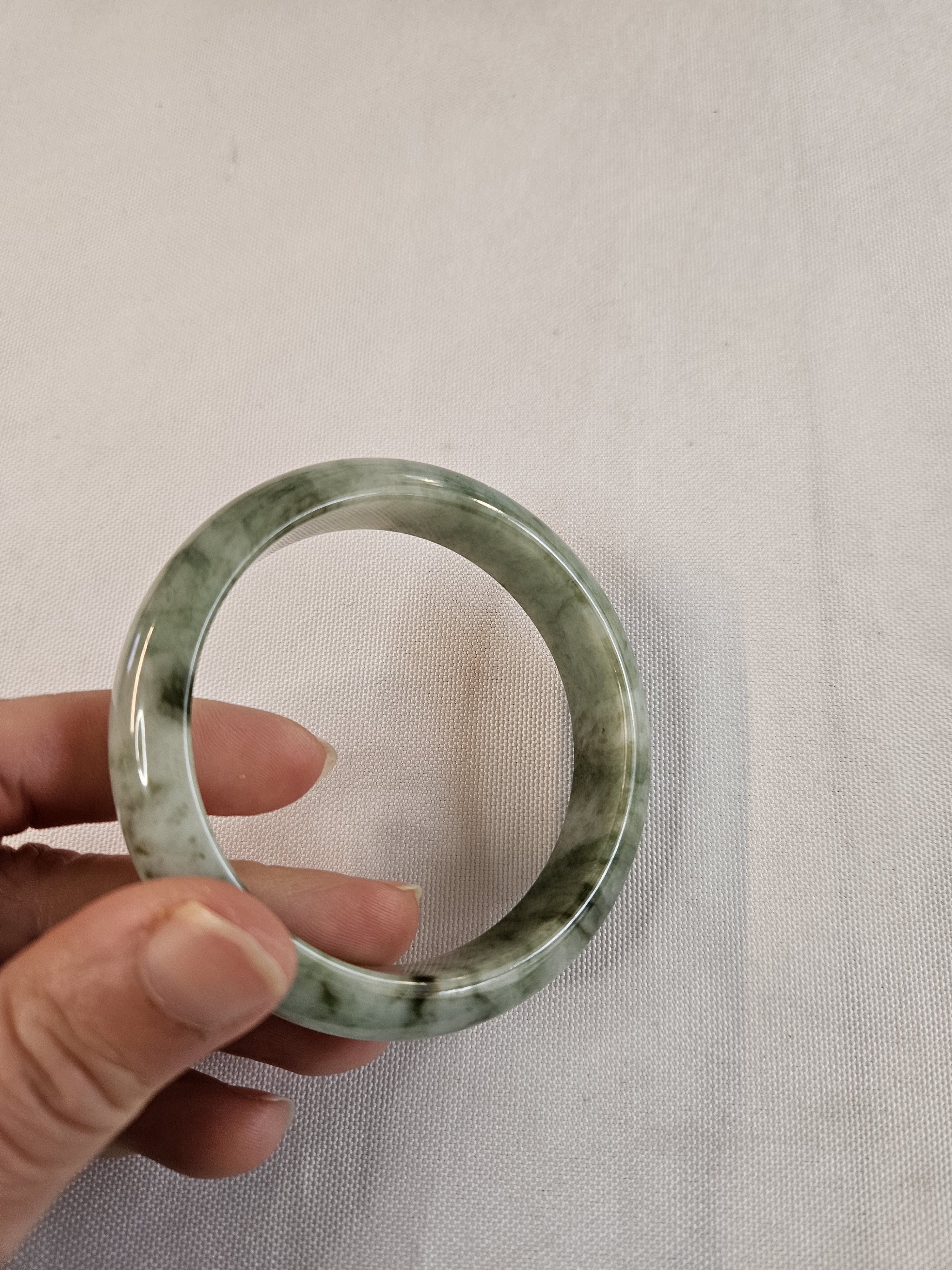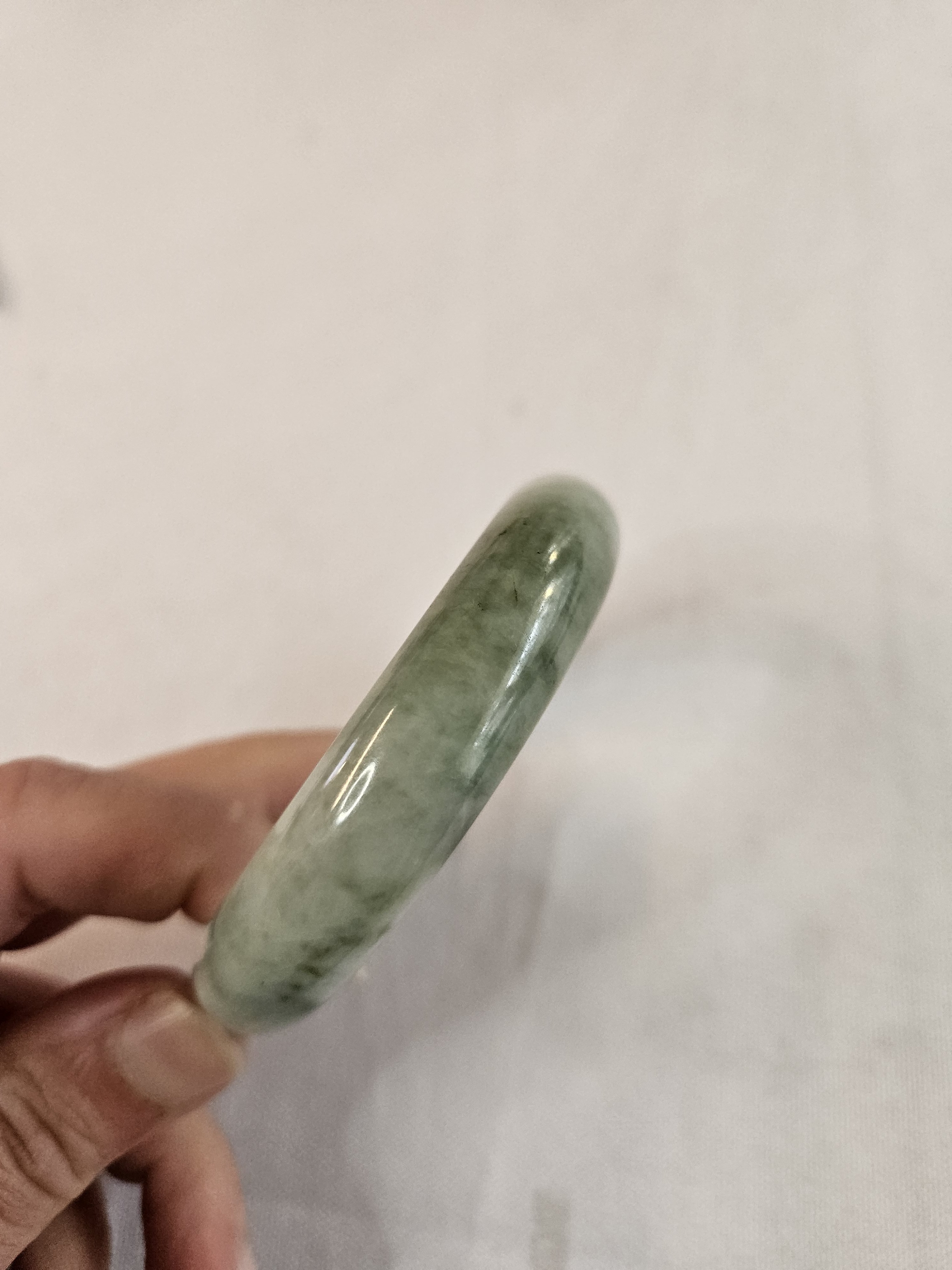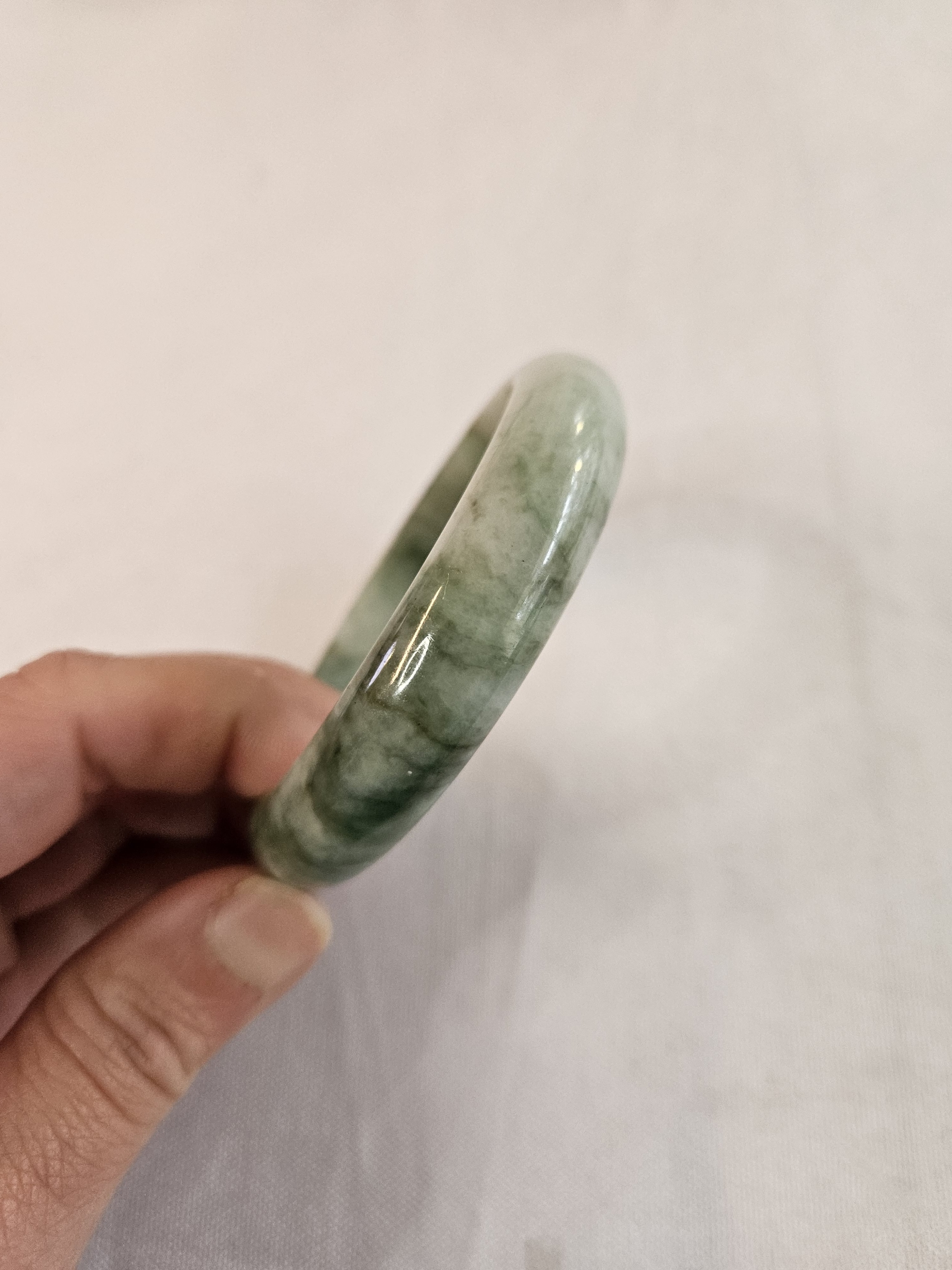 Gorgeous Burmese jadeite green bangle with blooms measures 57.8 x 13.8 x 7.5mm, weighs 57.85g, comes with a certificate of authenticity £148