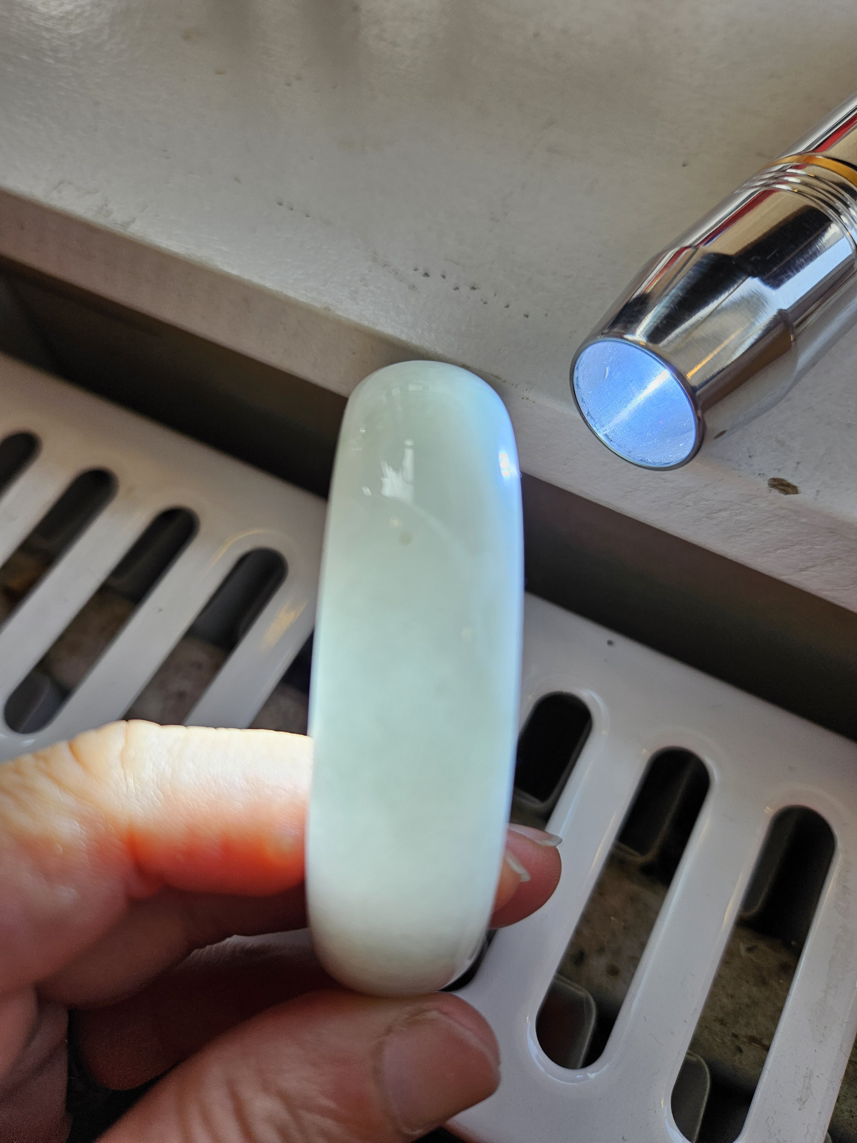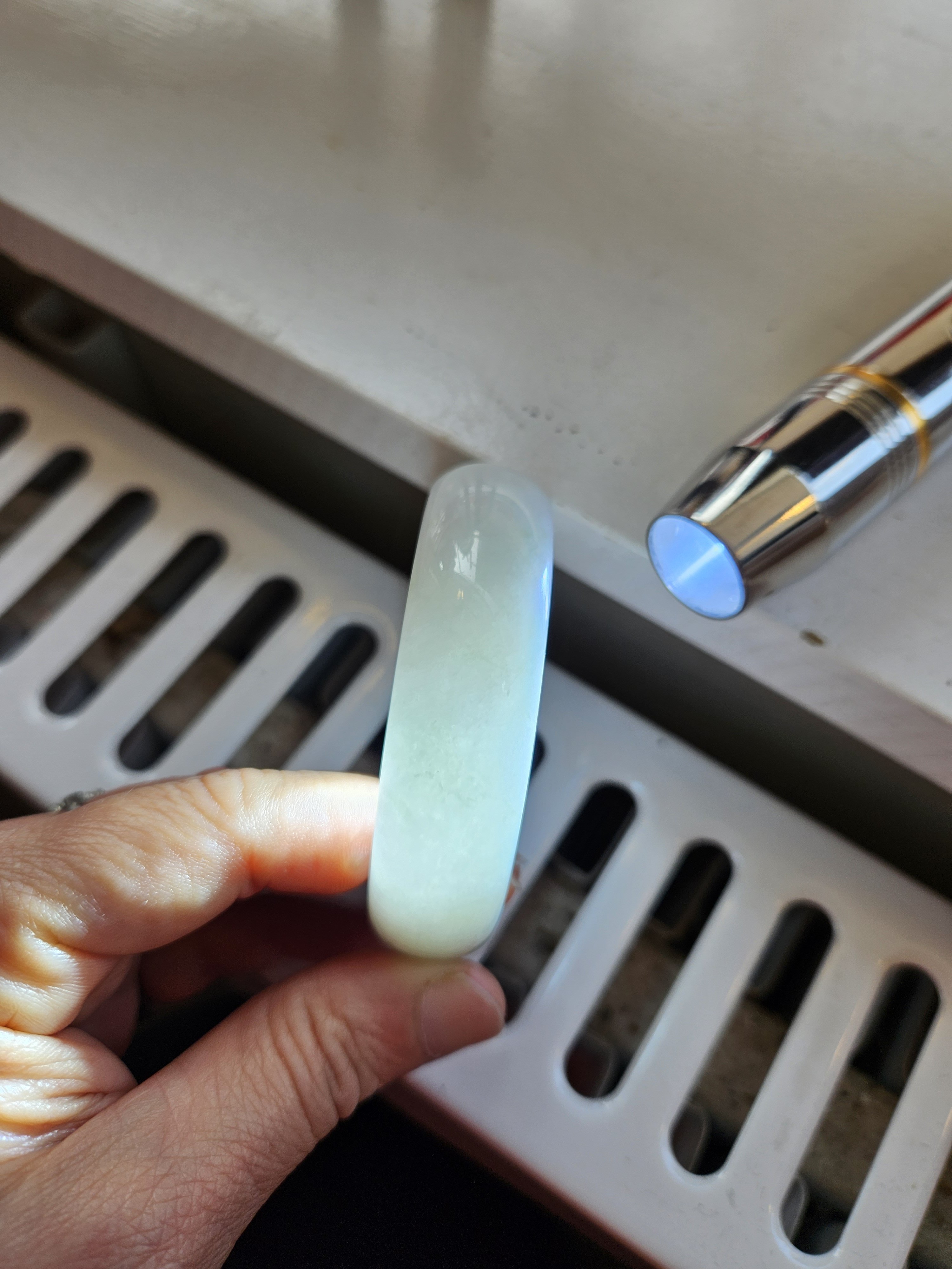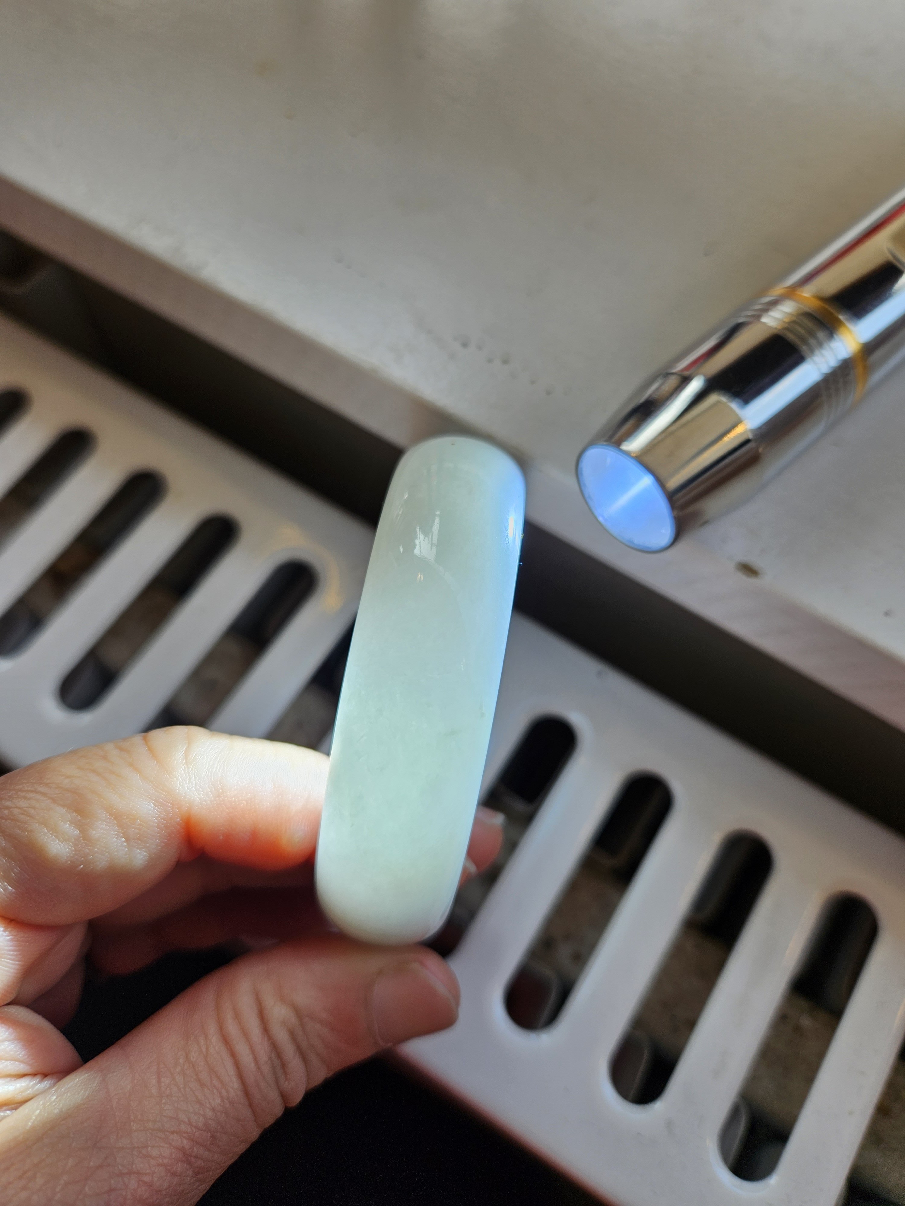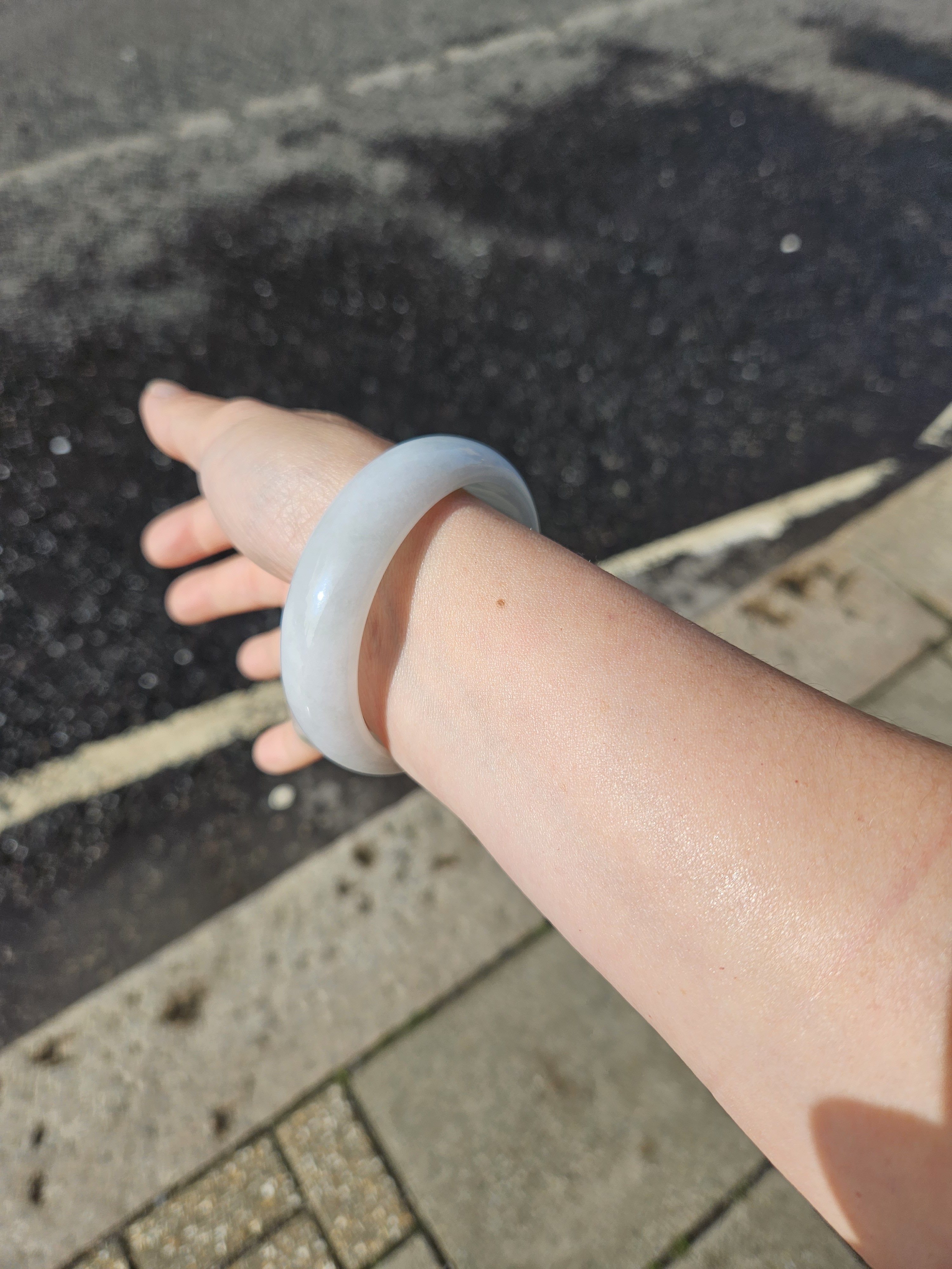 Gorgeous and modern looking Burmese jadeite bangle measures 58.1 x 17.3 x 7.6mm, weighs 71.38g, comes with a certificate of authenticity £538