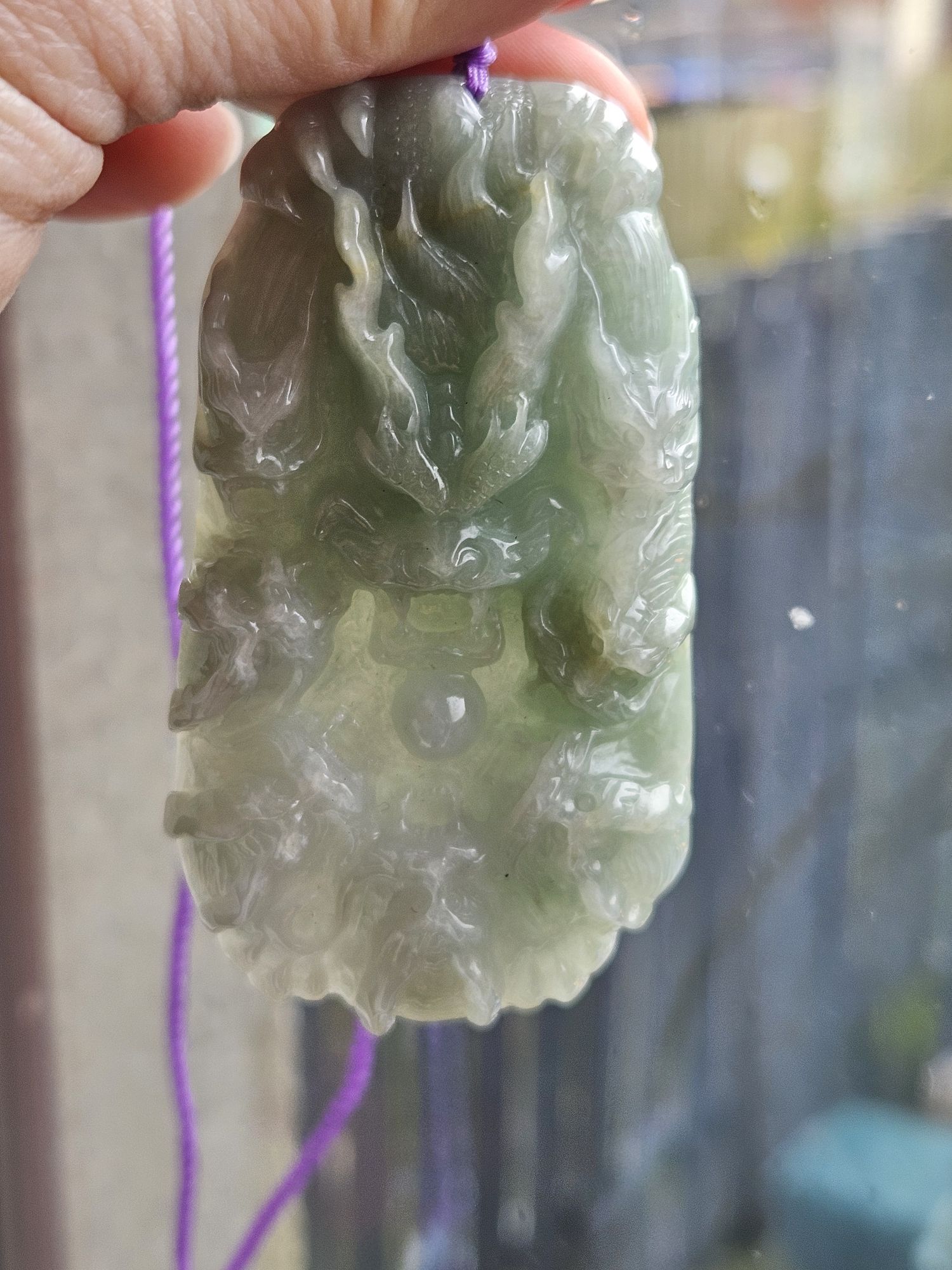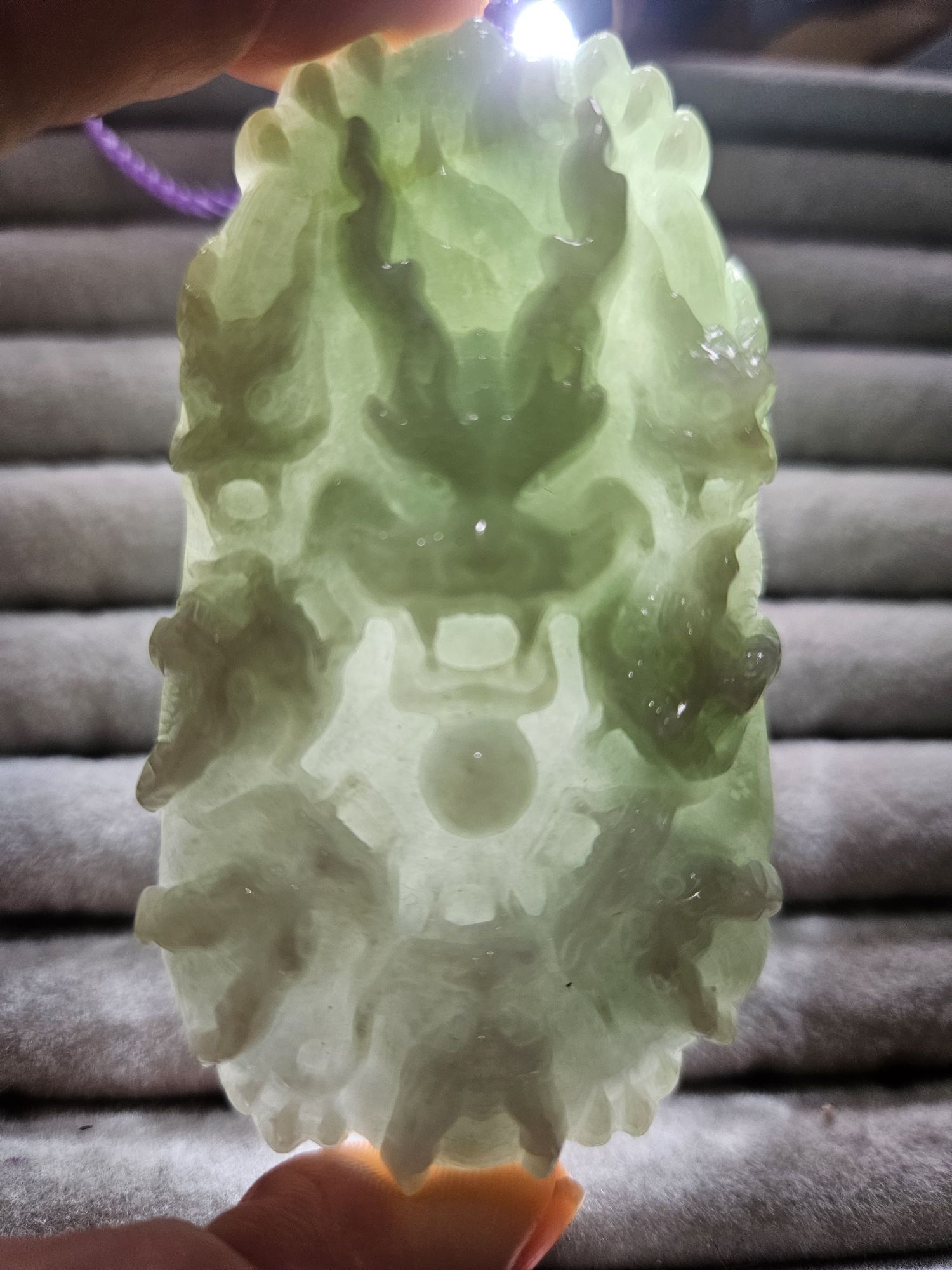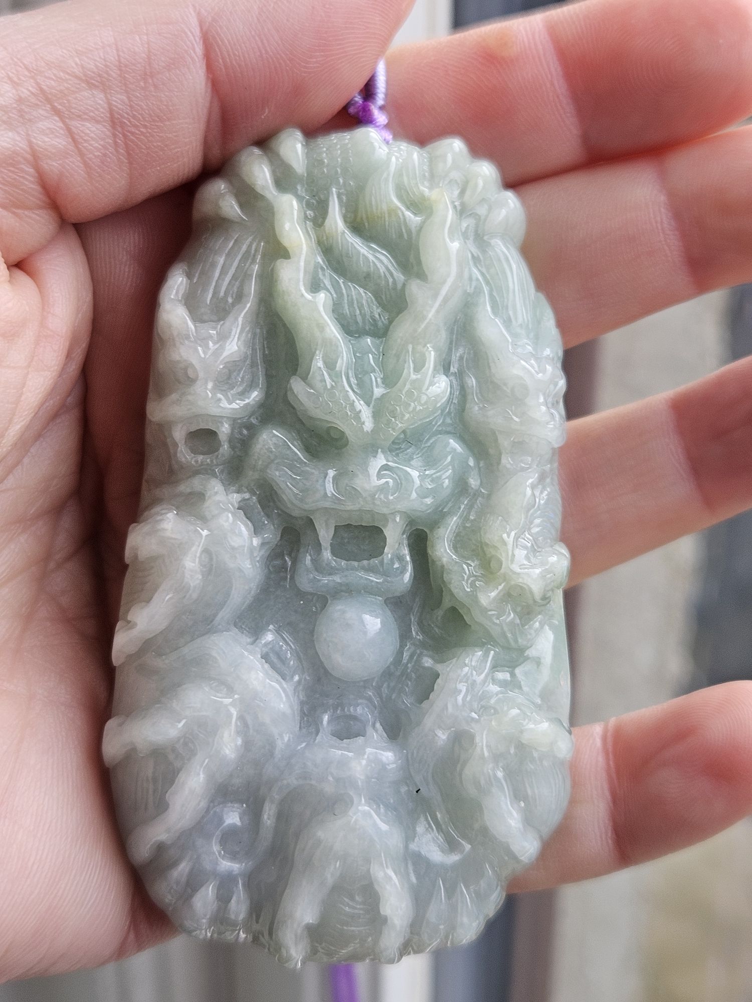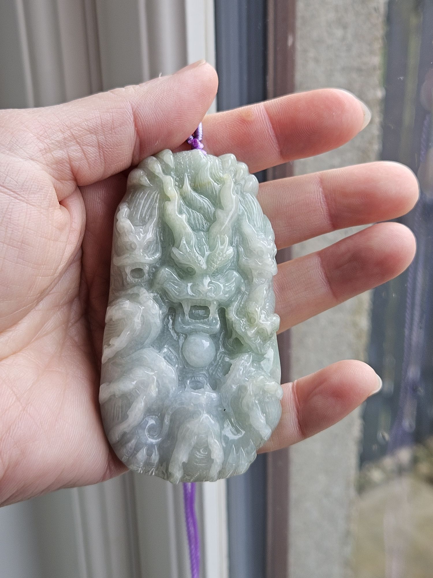 Chinese dragon is believed to be the most powerful and important symbol in feng shui and Chinese folklore. This jade stone pendent is a carving of 1 large dragon and 7 smaller dragons, measures 76.5 x 41.2 x 13.9, weighs 90.27g, come with a certificate of authenticity £119