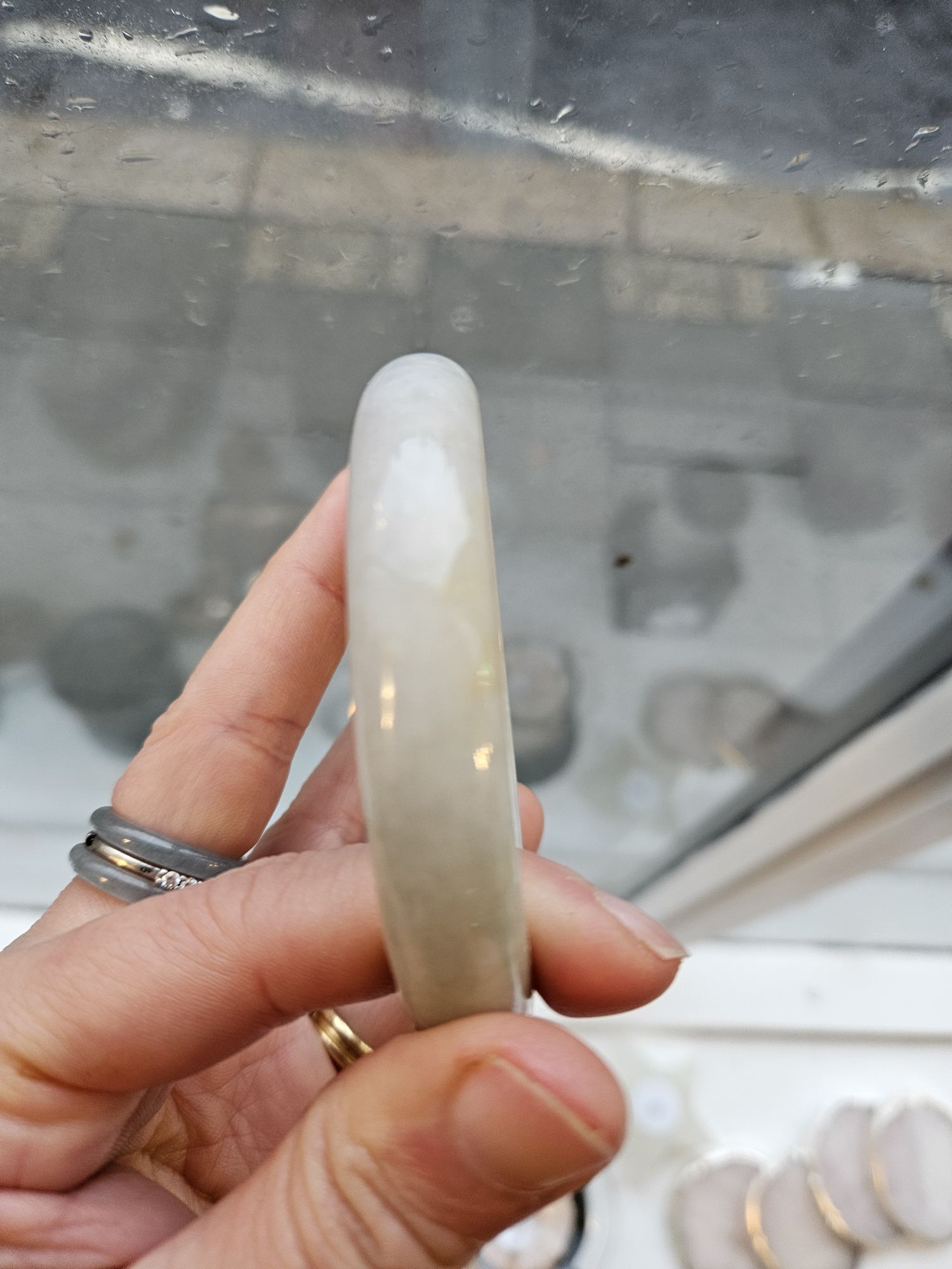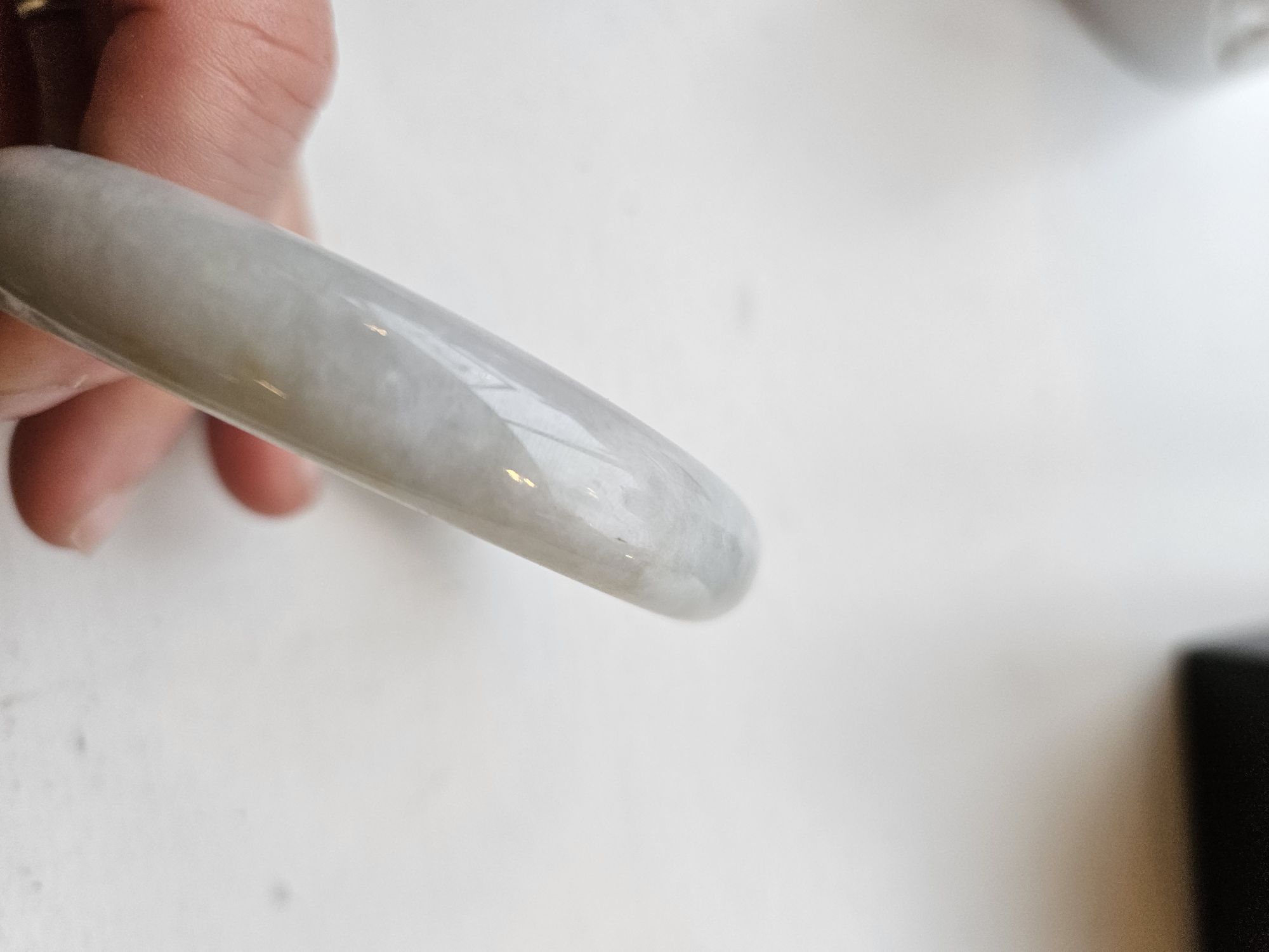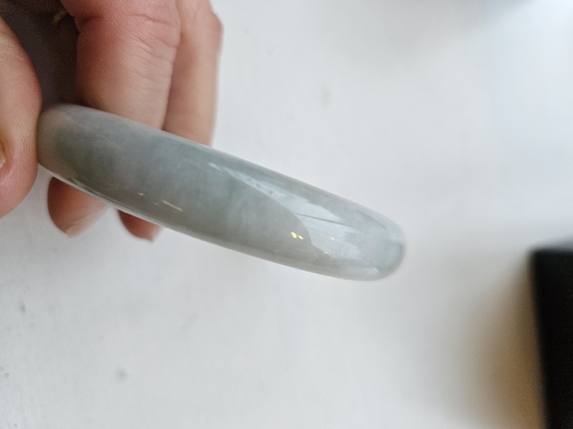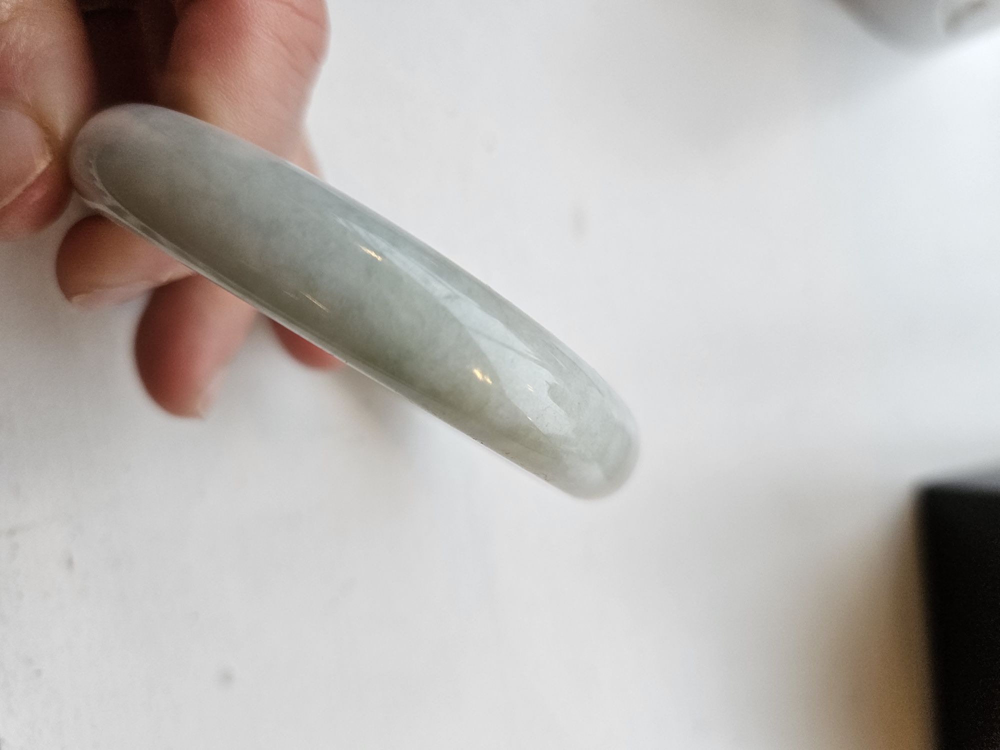 Large size Burmese jadeite bangle measuring 62.8 x 12.5 x 8mm, weighs 53.8g, comes with a certificate of authenticity £158