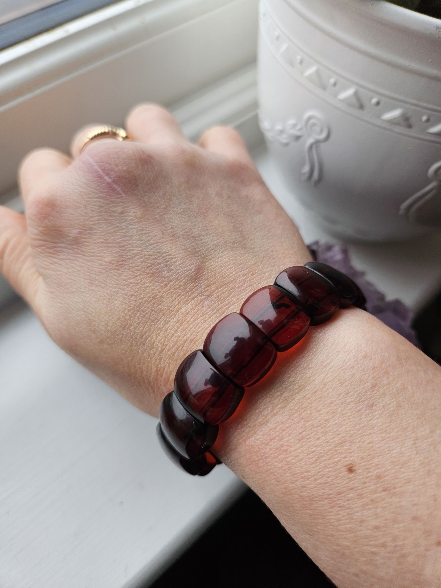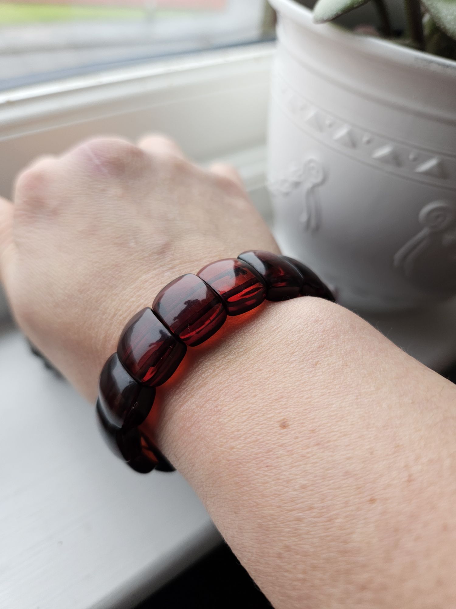This semi-precious organic gemstone origin is valued for its ability to turn negative and blocked energy into positive energy. It is also believed that it can improve overall vitality and body regeneration. It is also a stone of happiness and passion that can help you to achieve your love desires. Amber itself has scientifically proven anti-inflammatory properties. Measures 15.2mm wide, 5.7mm thick and fits up to 7 inches wrist. £65