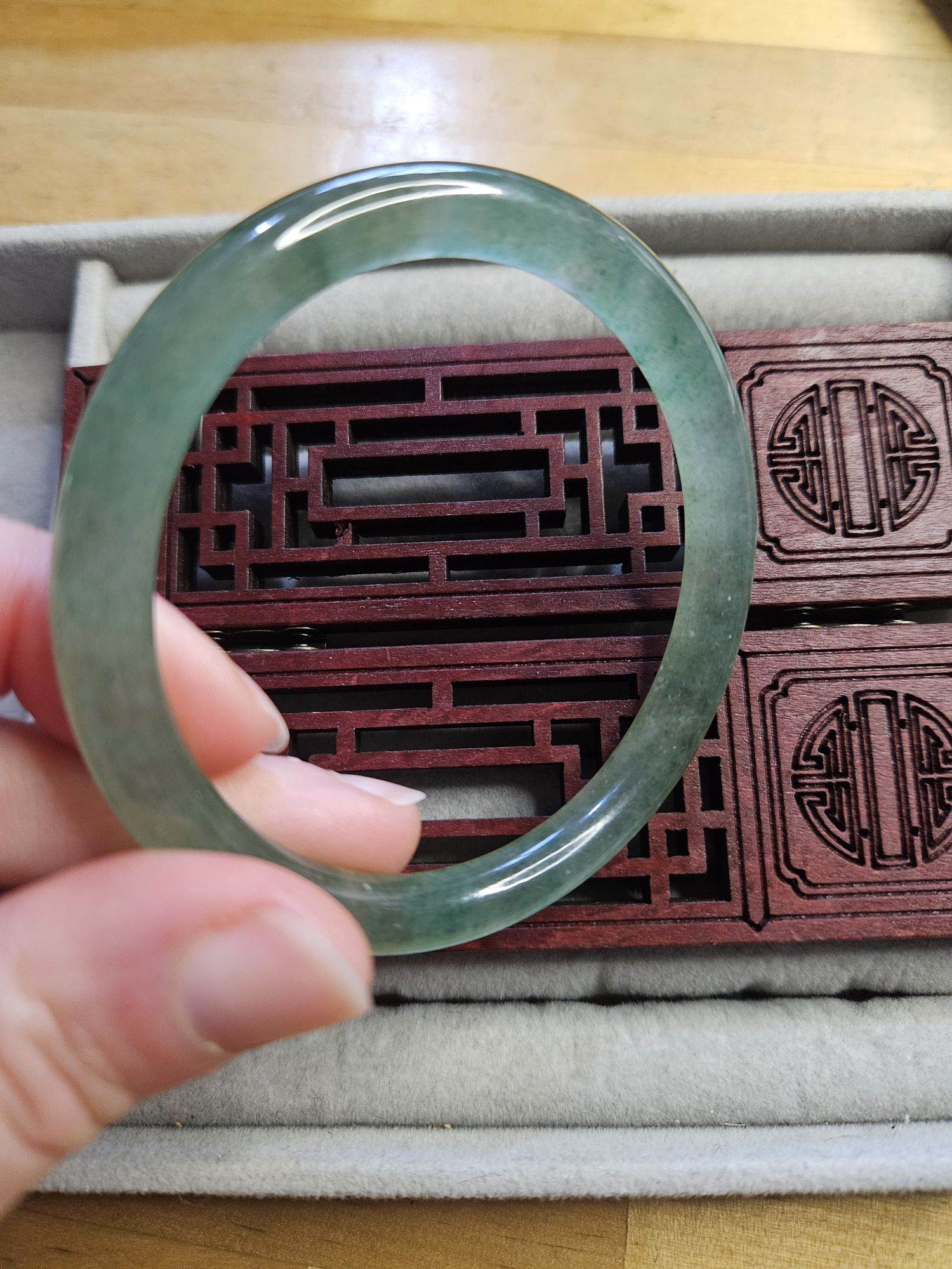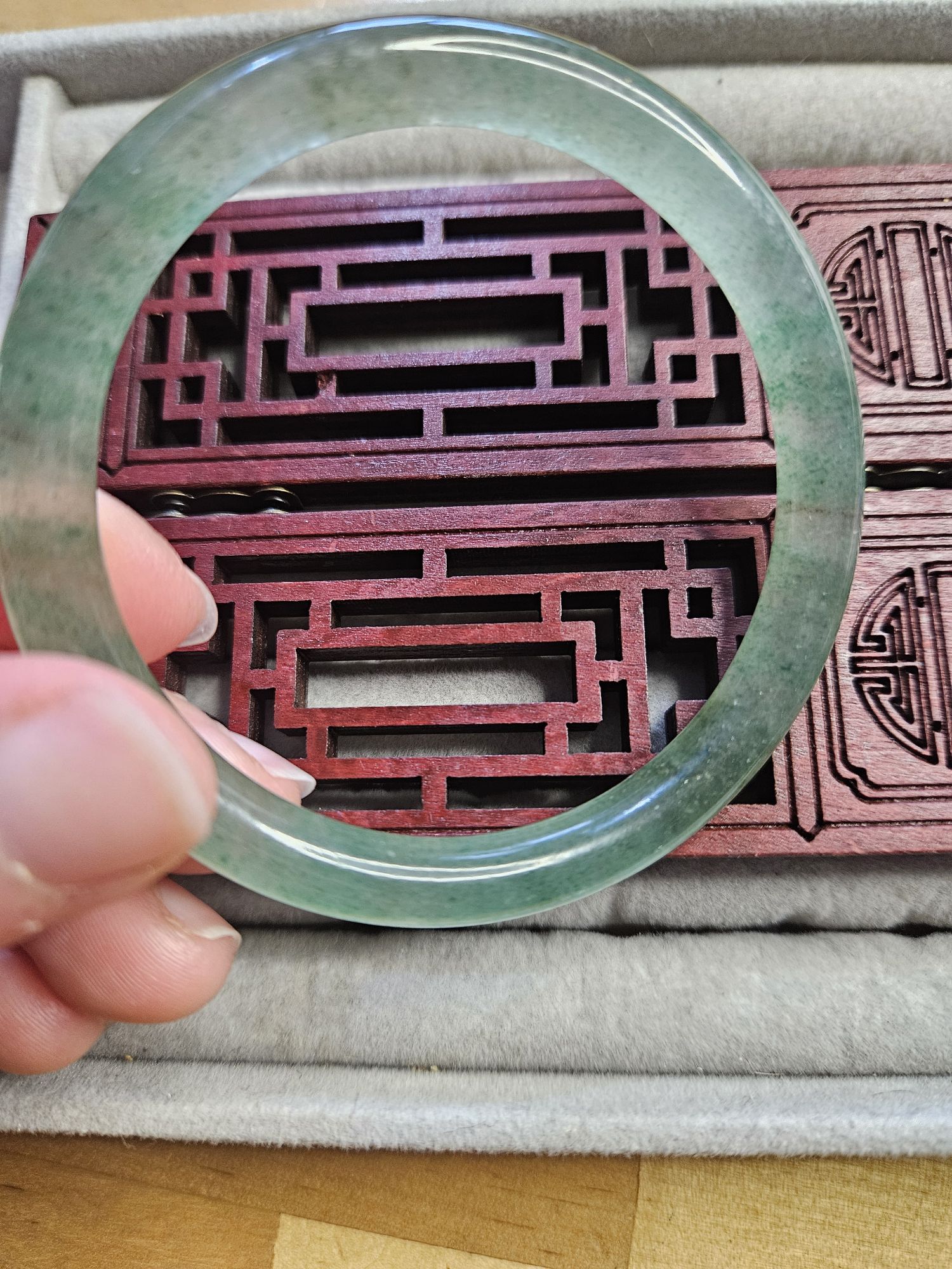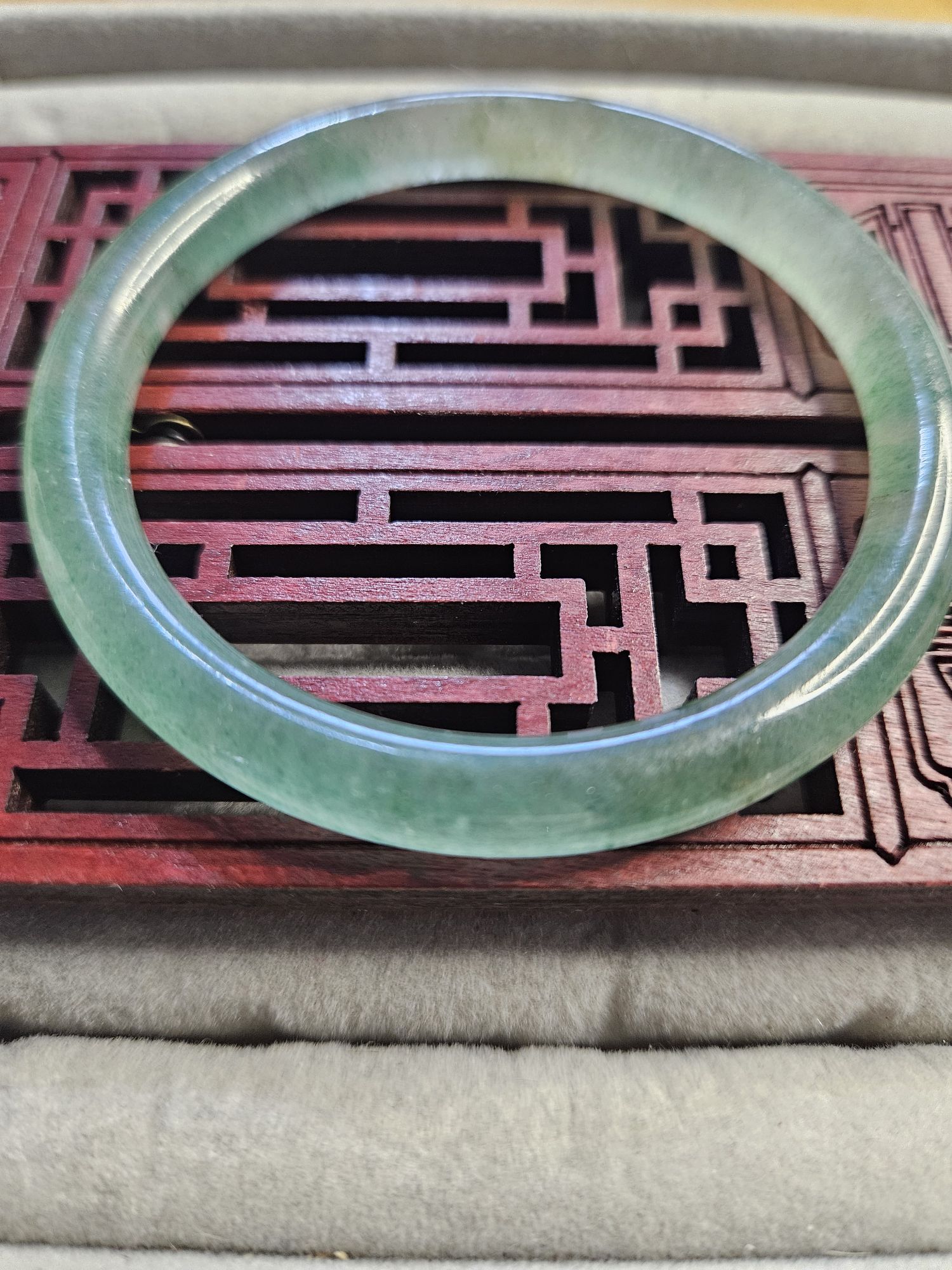 Green strawberry quartz bangle does not often come by. I have only this one left. Measures 56 x 7.5 x 7.6mm, fits up to 58mm. £40