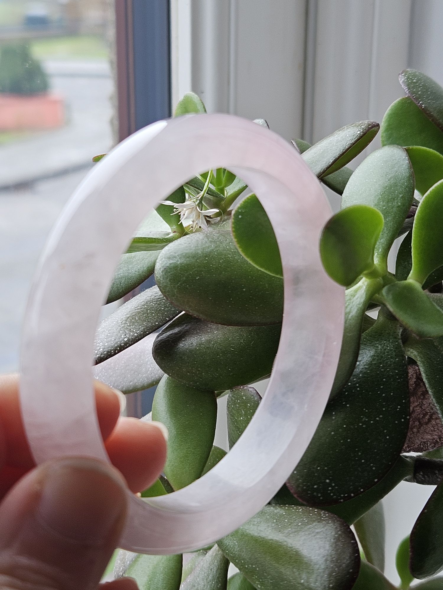 Pink Quartz is a symbol of love so the rays that the stone emits spread love energy in the surroundings. Pink quartz is the best aid to heal all negative emotions that come in the mind. It helps you to control anger, anxiety, fear, unhealthy feelings that ultimately makes you feel happy and brings harmony in life. This lovely bangle measures 60.7 x 12.7 x 7.4mm. £ 50