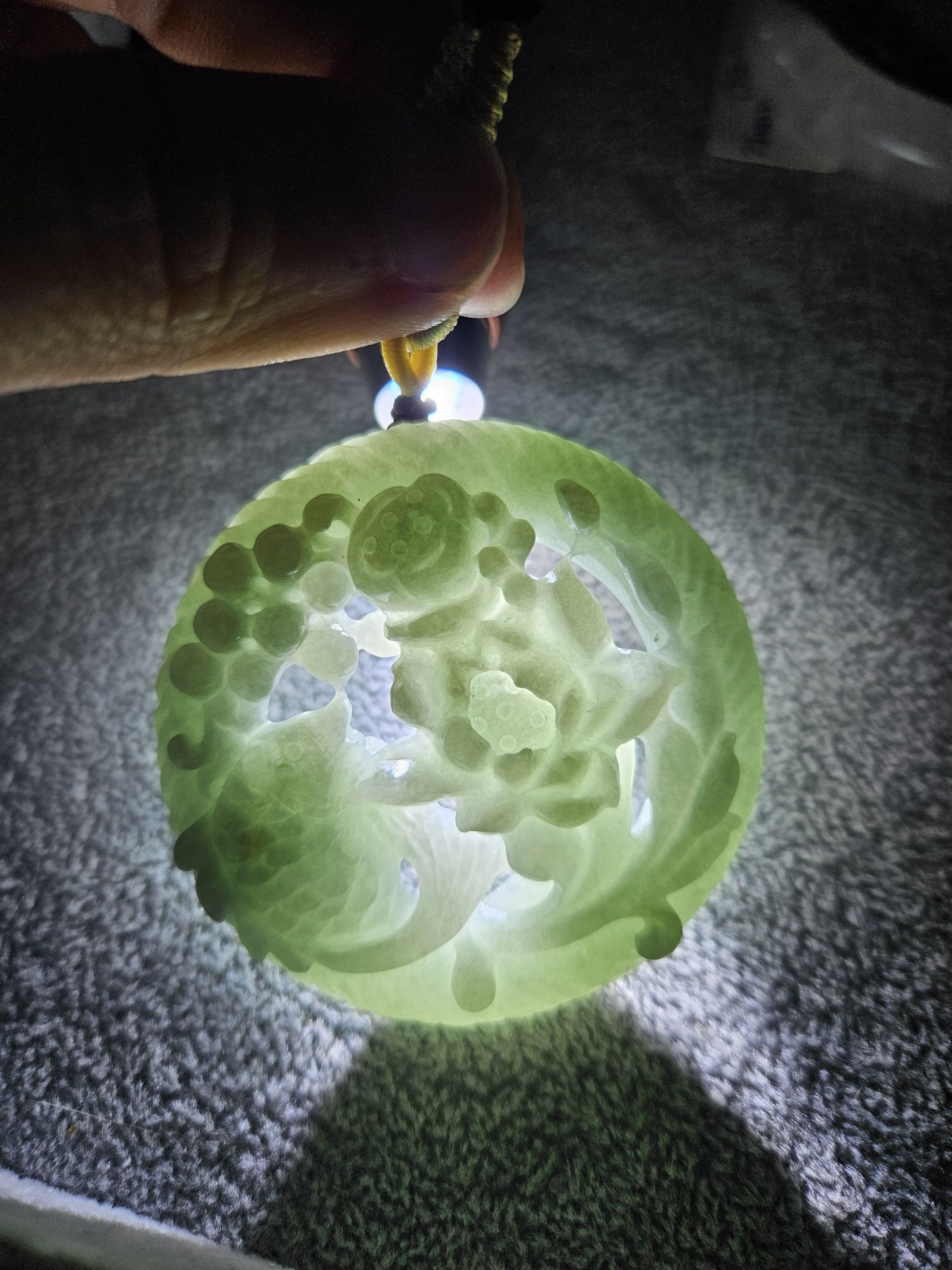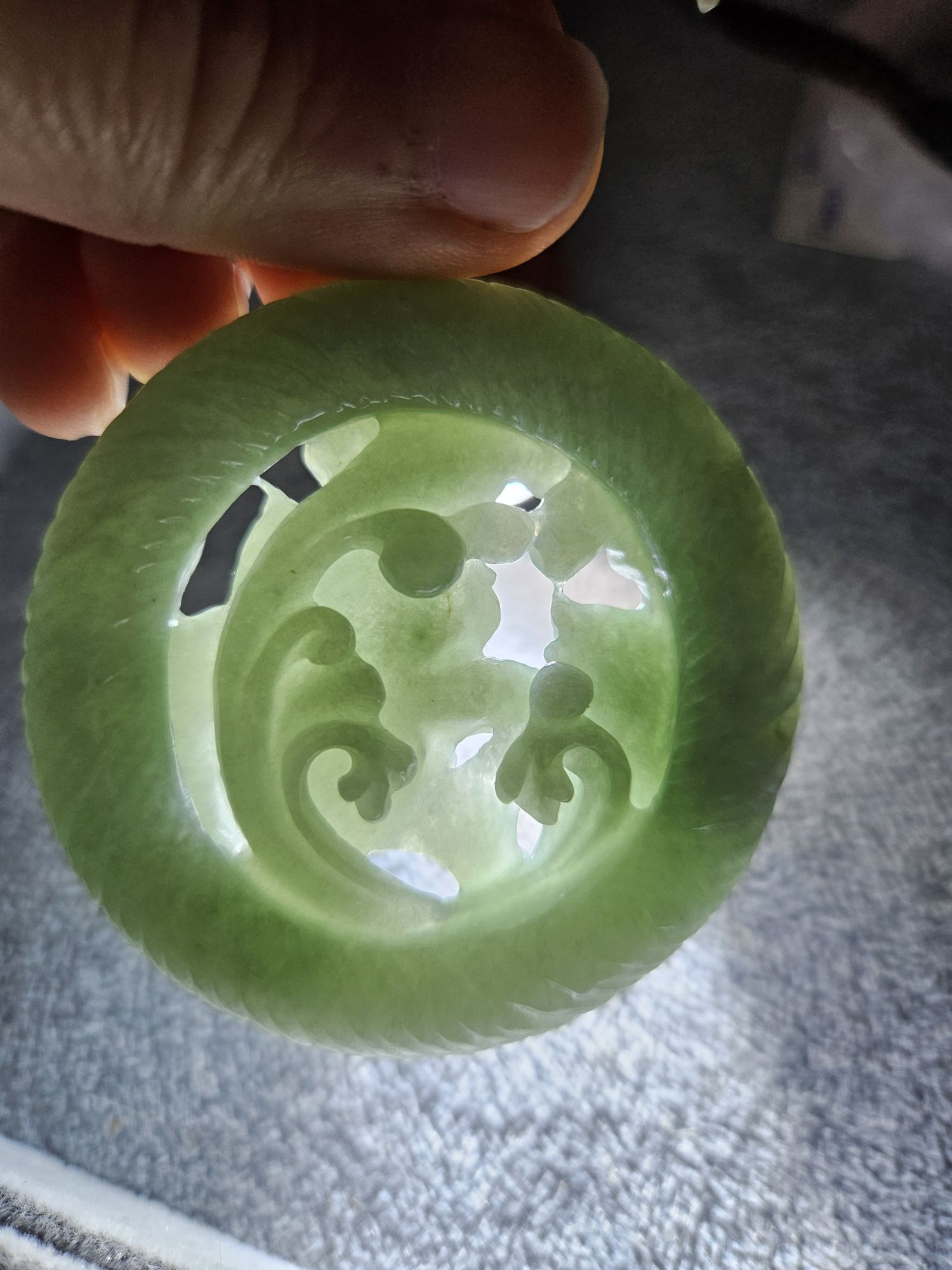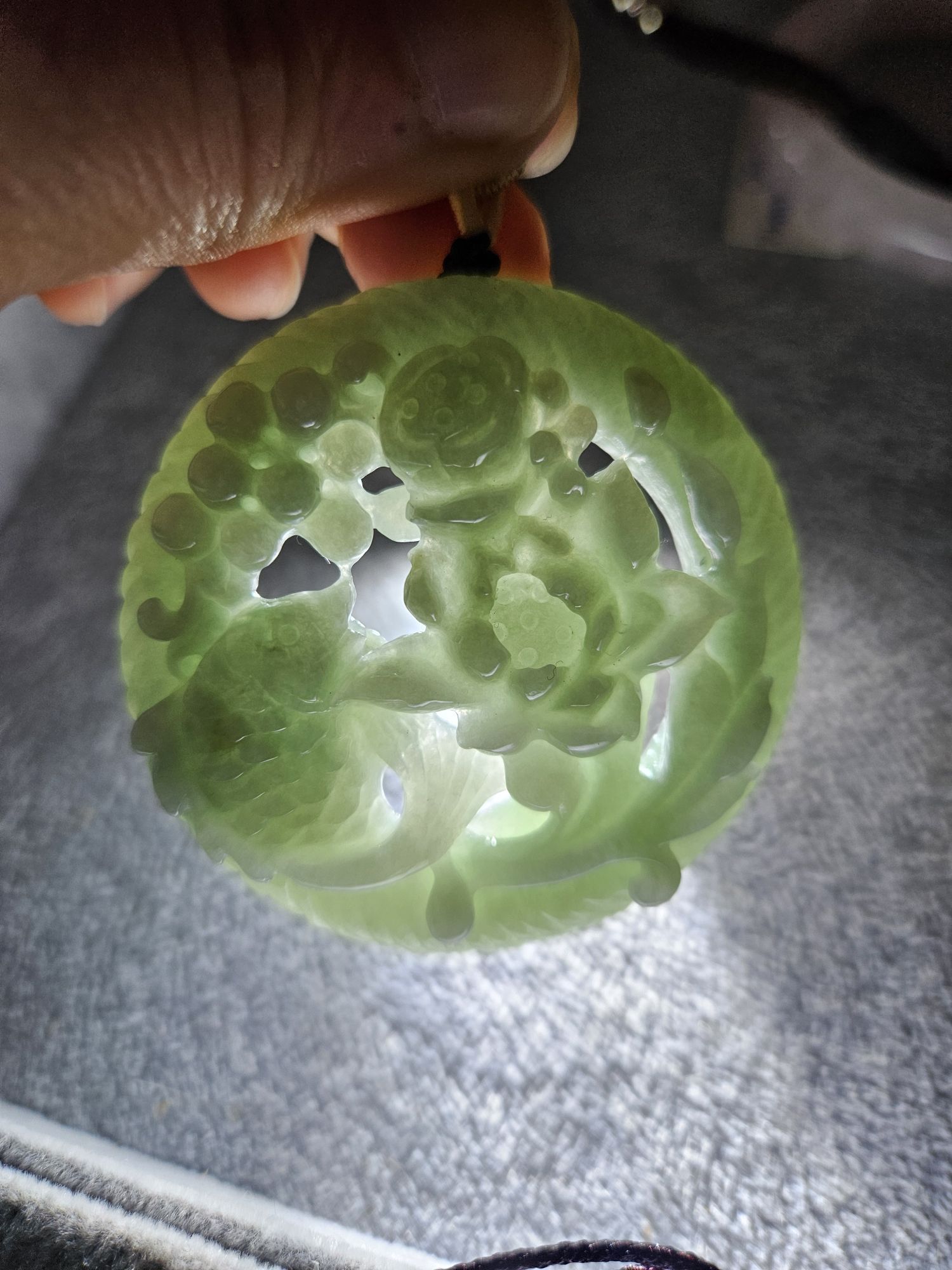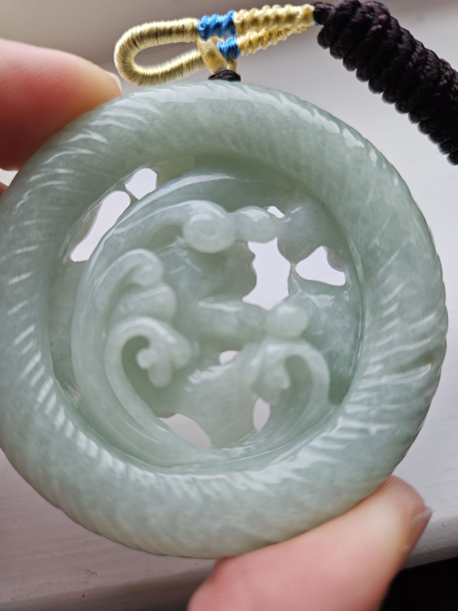 Because lotuses rise from the mud without stains, they are often viewed as a symbol of purity. Since they return to the murky water each evening and open their blooms at the break of day, lotus flowers are also symbols of strength, resilience, and rebirth. Fish is a symbol of wealth & abundance as the chinese pronunciation “Yu” means surplus. It is also believed to attract good luck, good fortune, longevity & more children. Excellent for everyone wishing for a more prosperous life. This lovely burmese jadeite pendant on an adjustable string measures 55 x 11.5mm, weighs 53.21g, comes with a certificate of authenticity £158