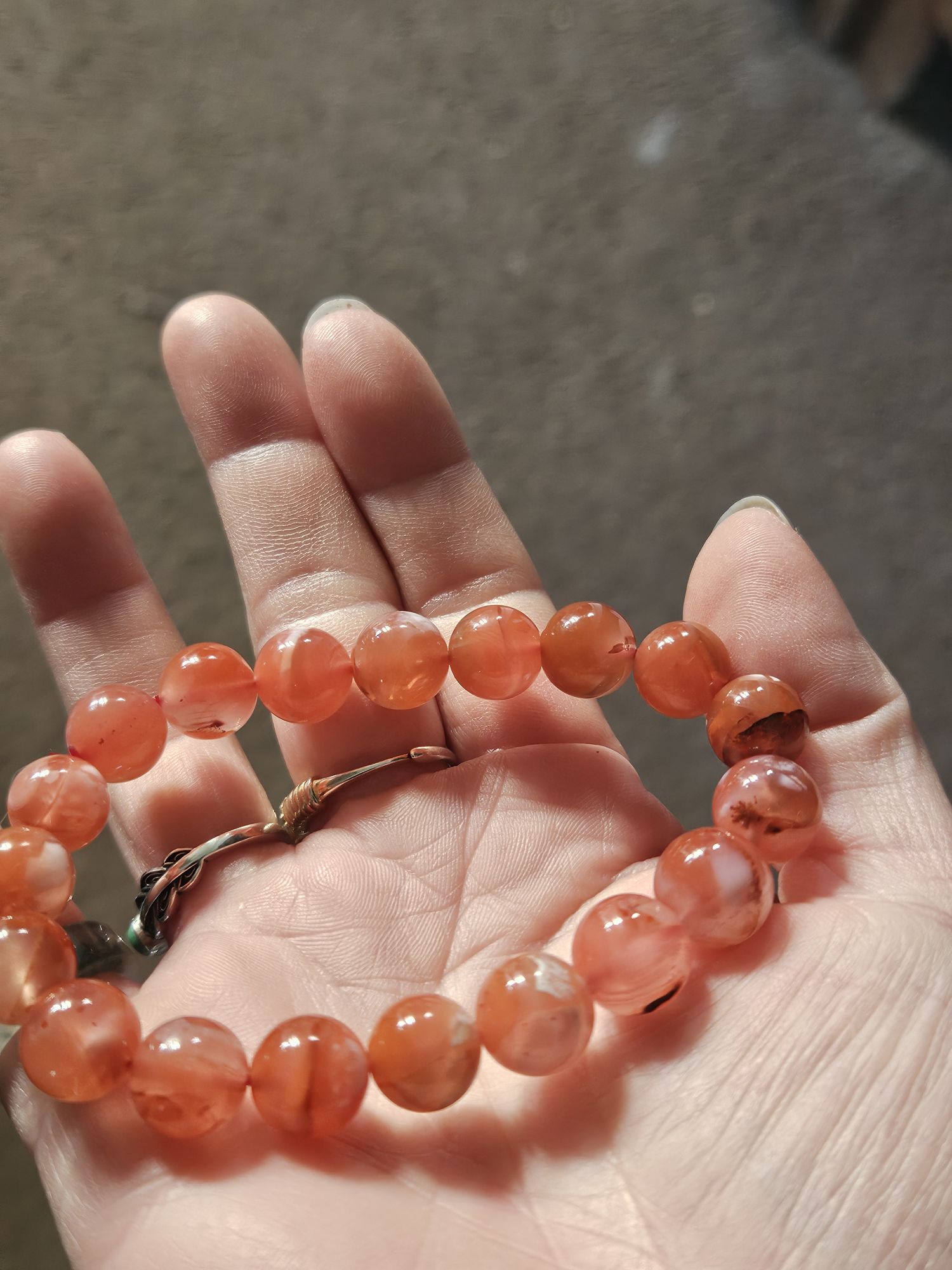 Nanhong red agate, also known as ”red jade“ in ancient times, is one of most precious material been used in Tibetan jewelries. These delicate transplanted Nanhong agate beads are from Baoshan. The name ”ice fluttering red“ accurately describes the stone: the body is clear and transparent, crystal as ice, while red, ”floating“ in such an ice-like body, red and white form a bright chromatic aberration, and some red also form natural and durable. The pattern and shape are unique and sunny. £ 55
