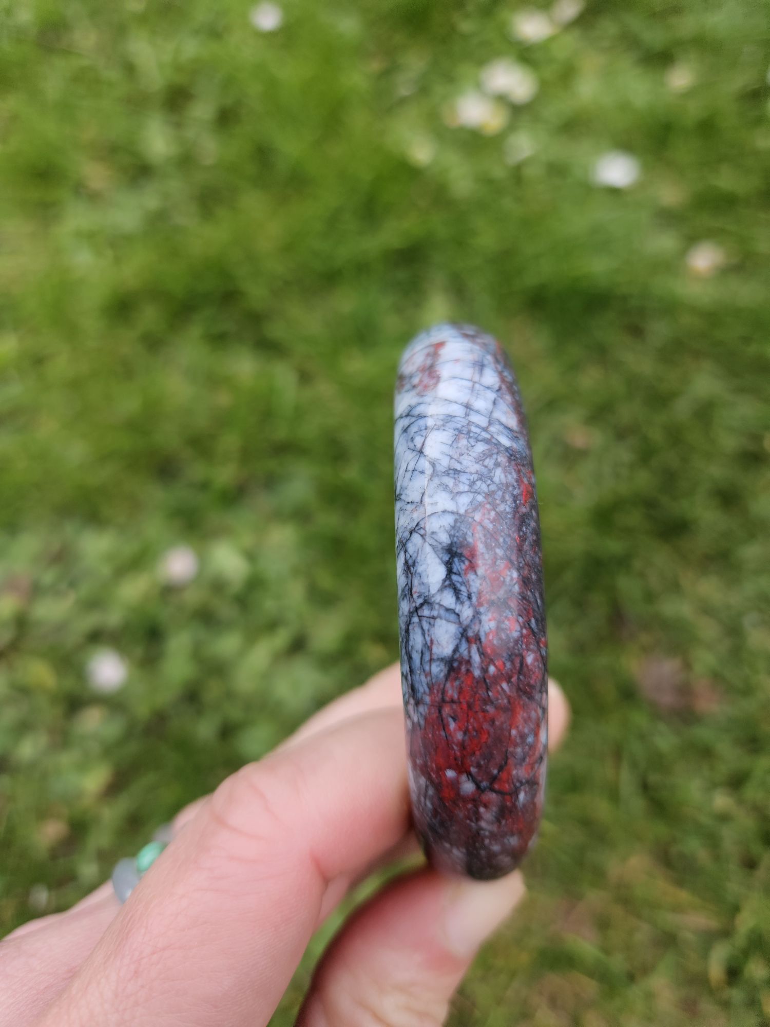 Cinnabar is spiritual healing and protecting you from negative force are cinnabar’s top priorities. It can help you find inner peace and guide you towards a more positive mindset. Measures 58.7 x 15 x 9.5mm. £98