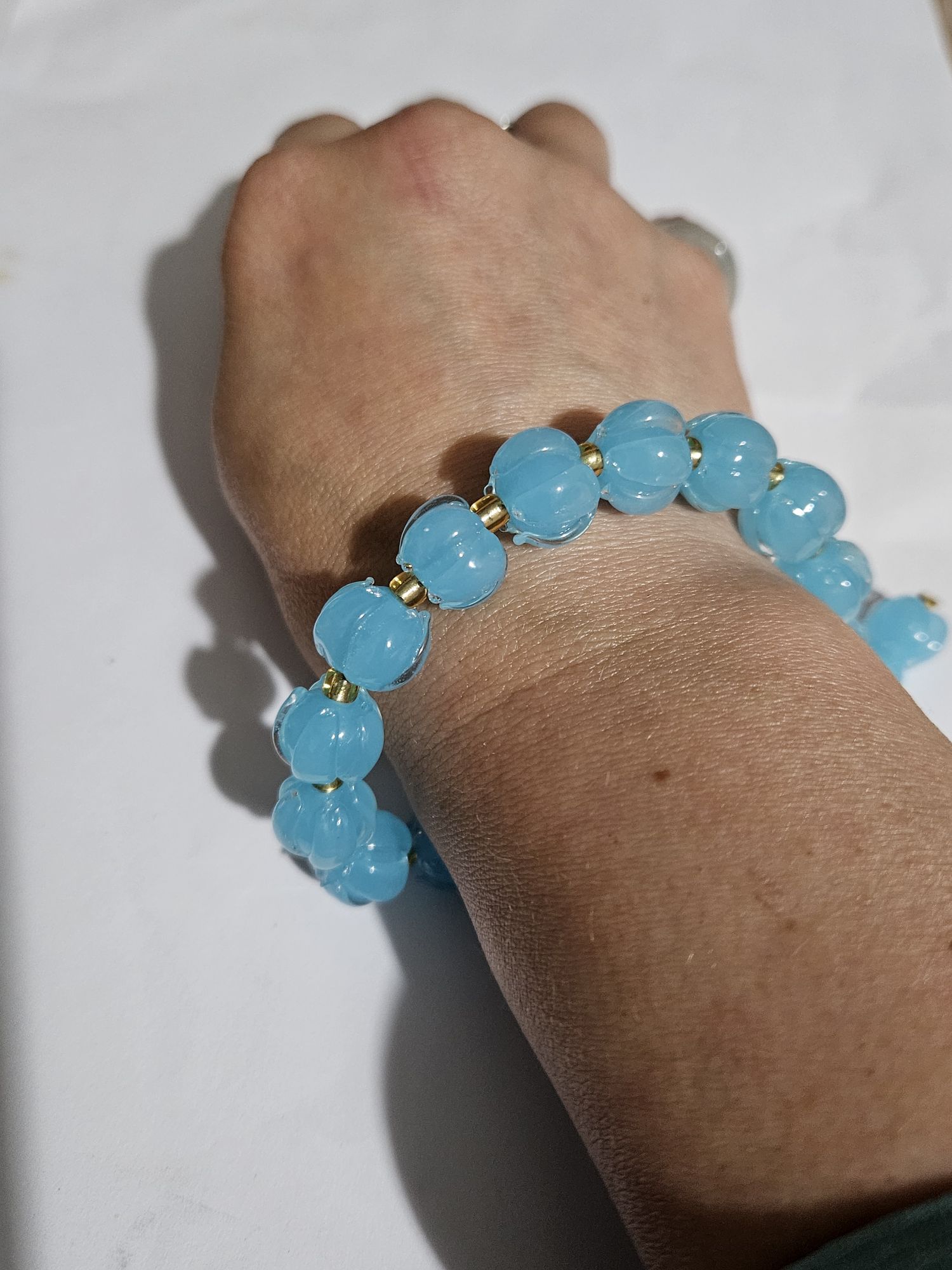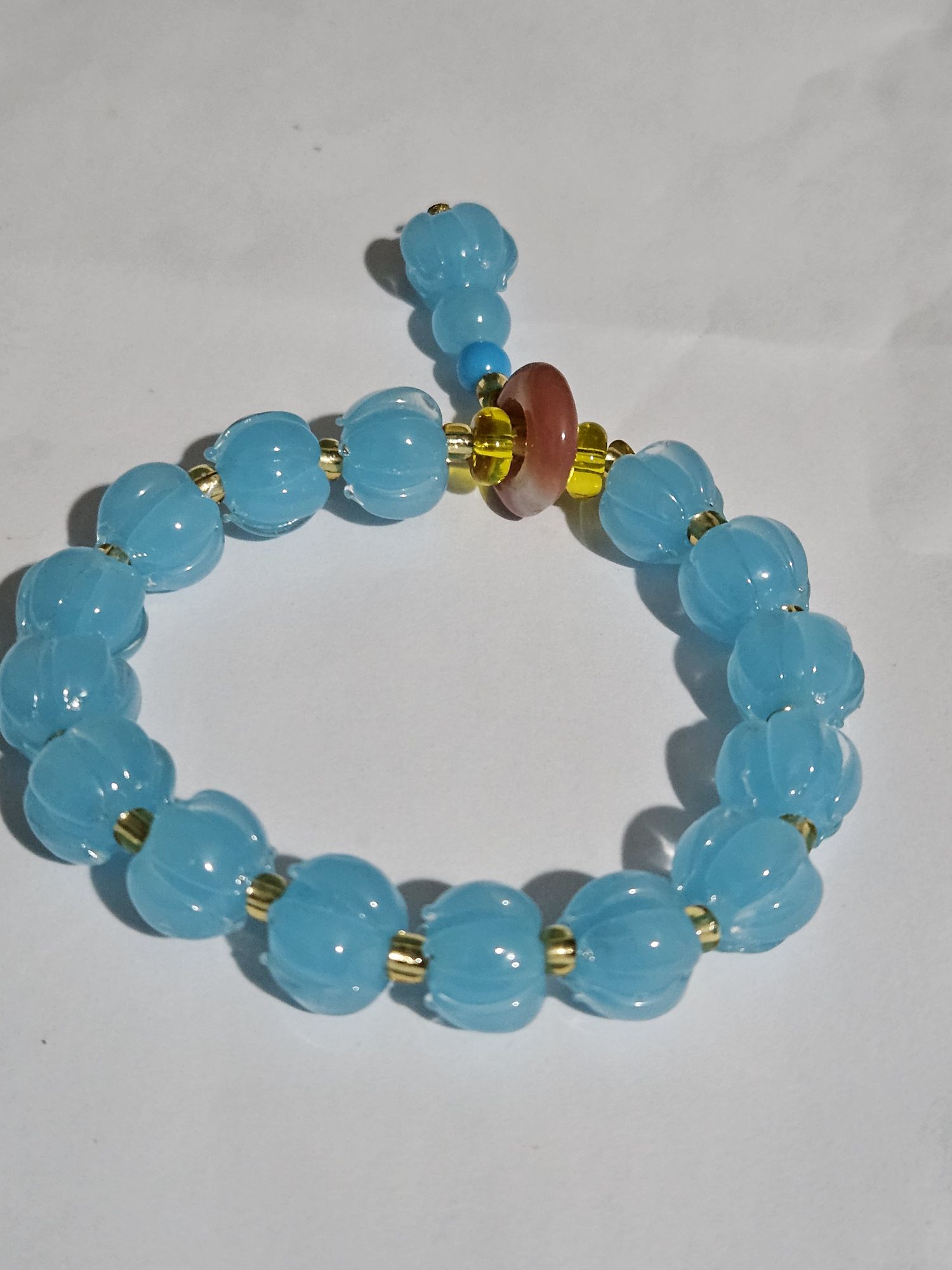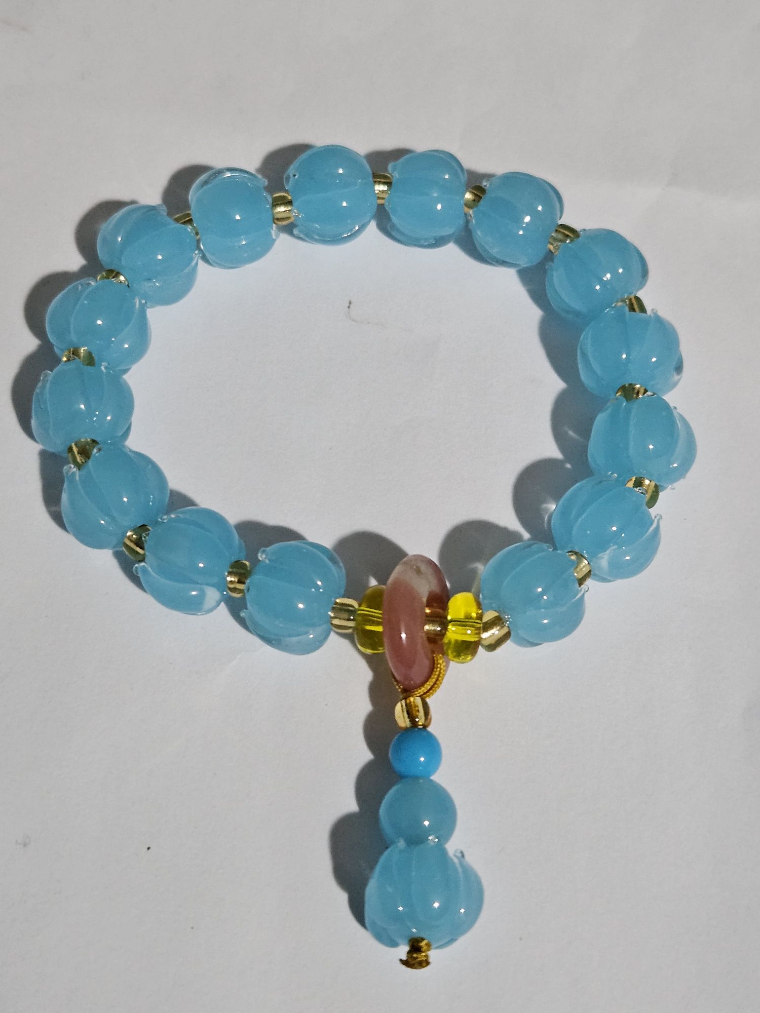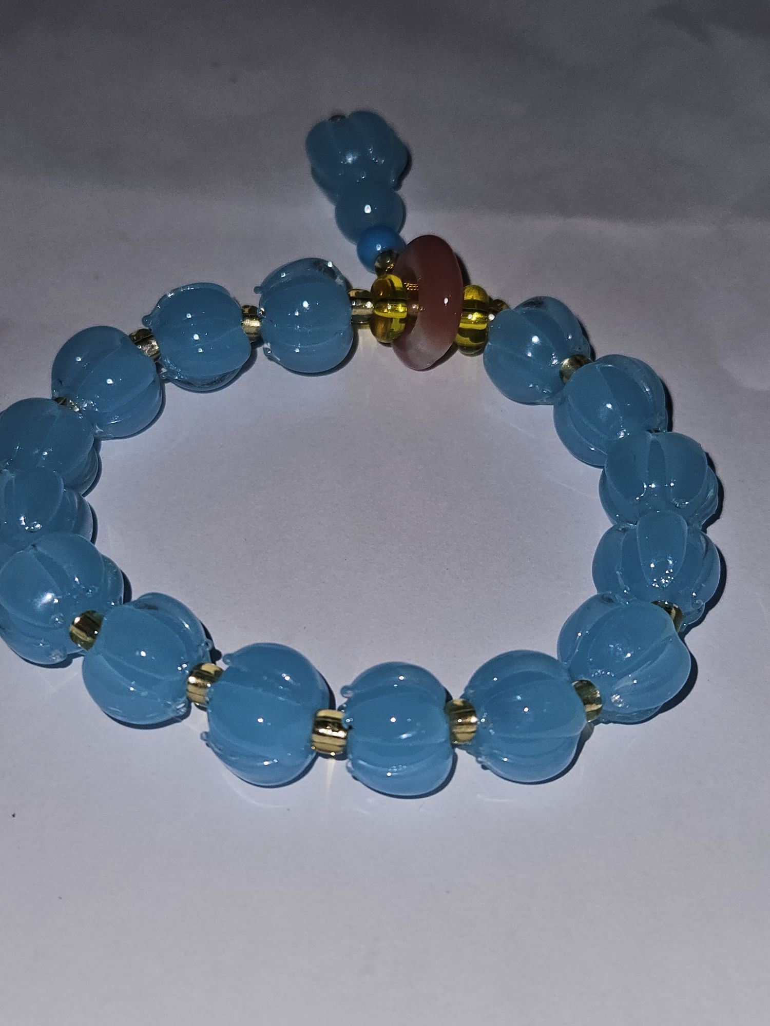 The 12.3mm pumpkin shape beaded bracelet features Incense Ash Glass beads, renowned for their ethereal beauty and spiritual significance. These beads are created from the ashes of sacred incense, symbolizing purification and the removal of negative energies. The translucent nature of the glass represents clarity of thought and reflection, allowing you to connect with your inner self and invite serenity into your life. £20