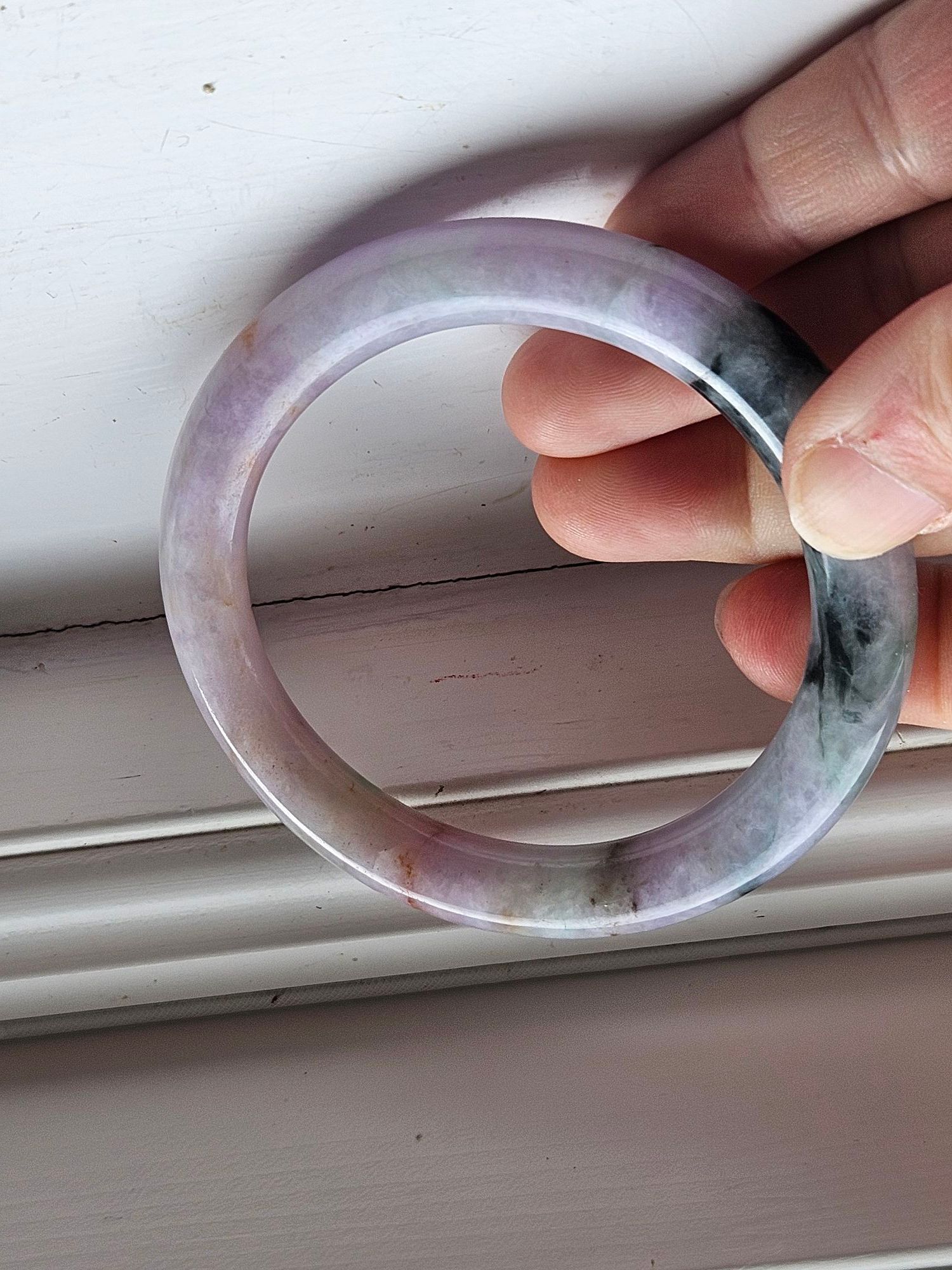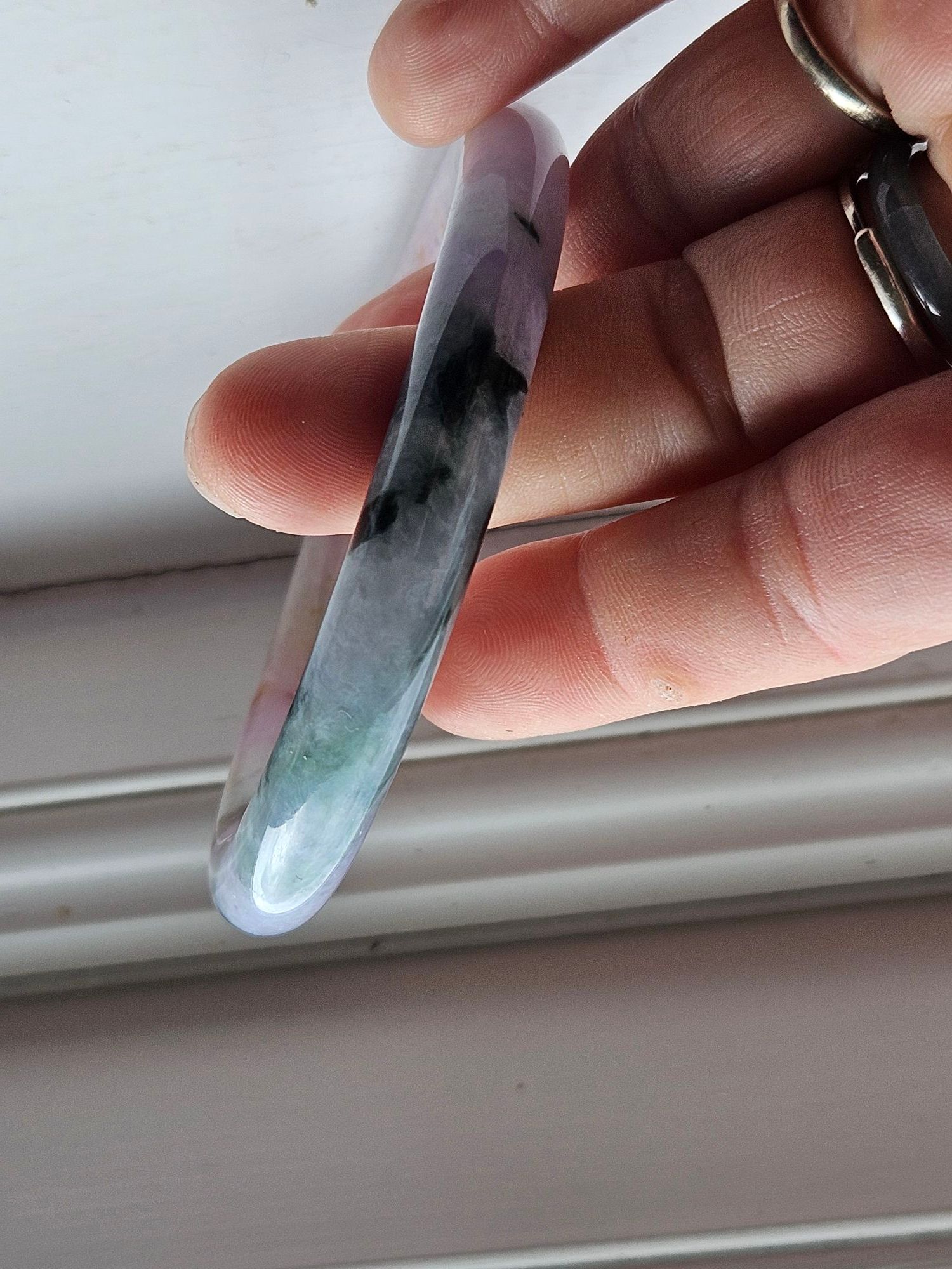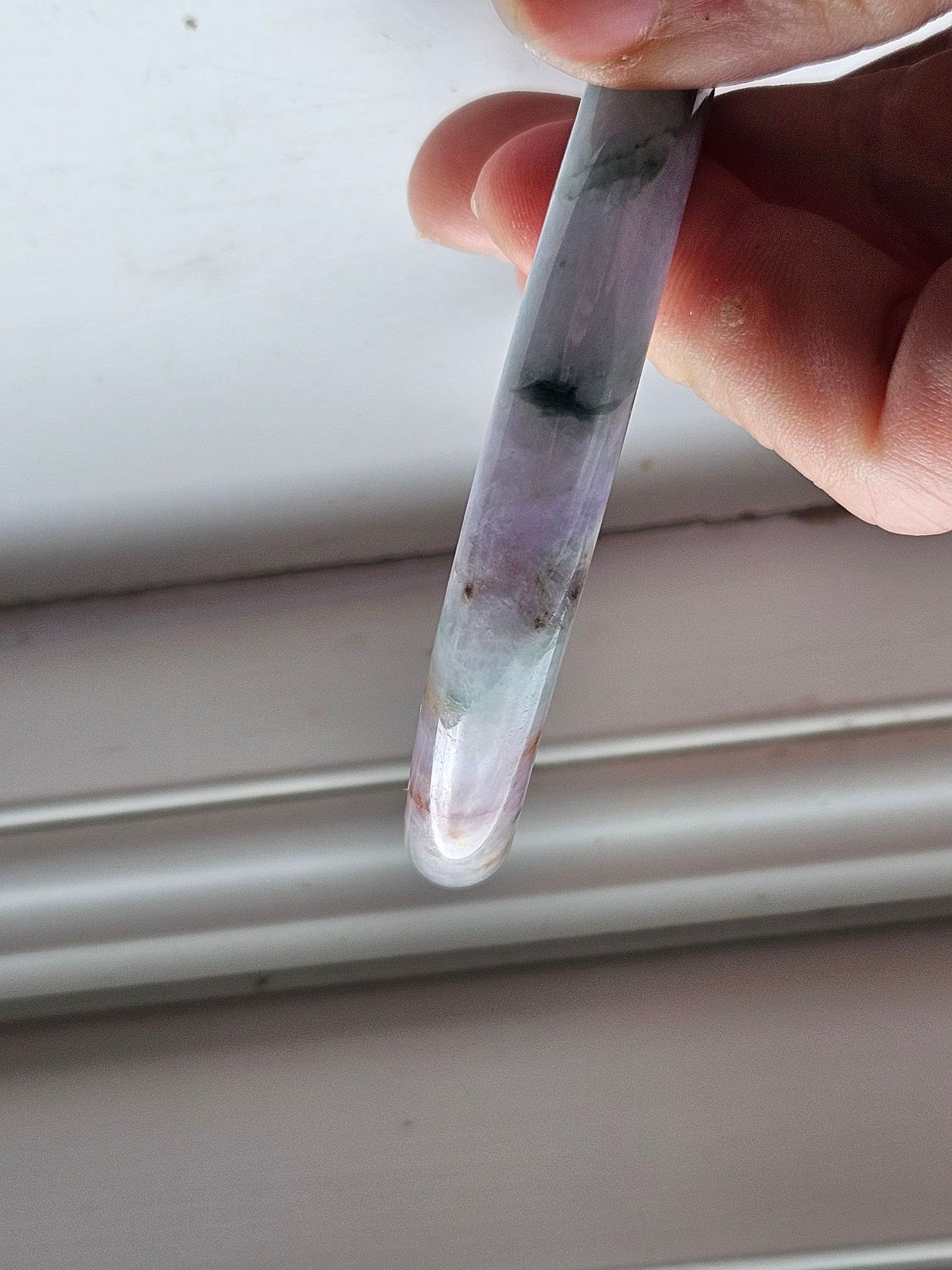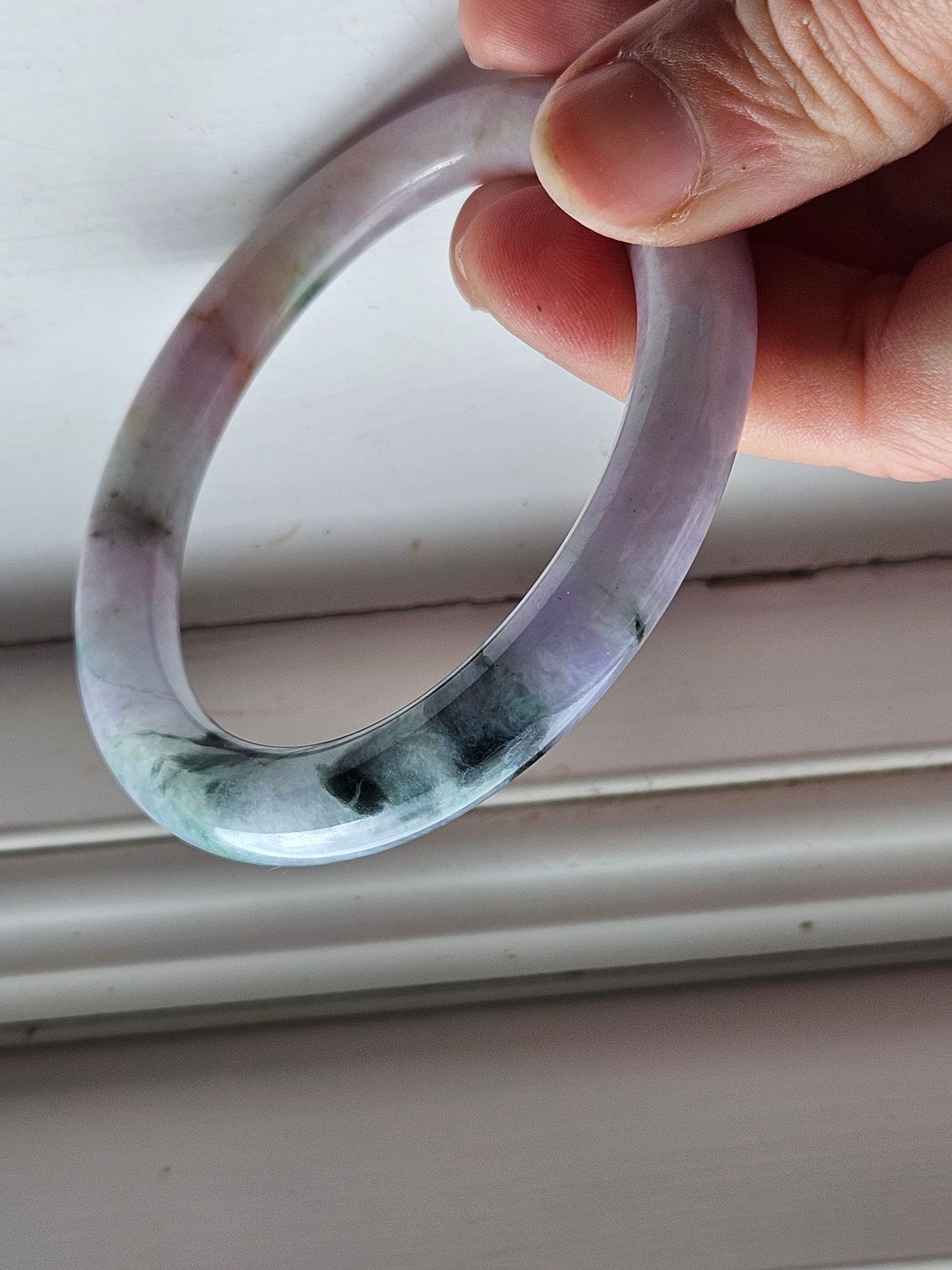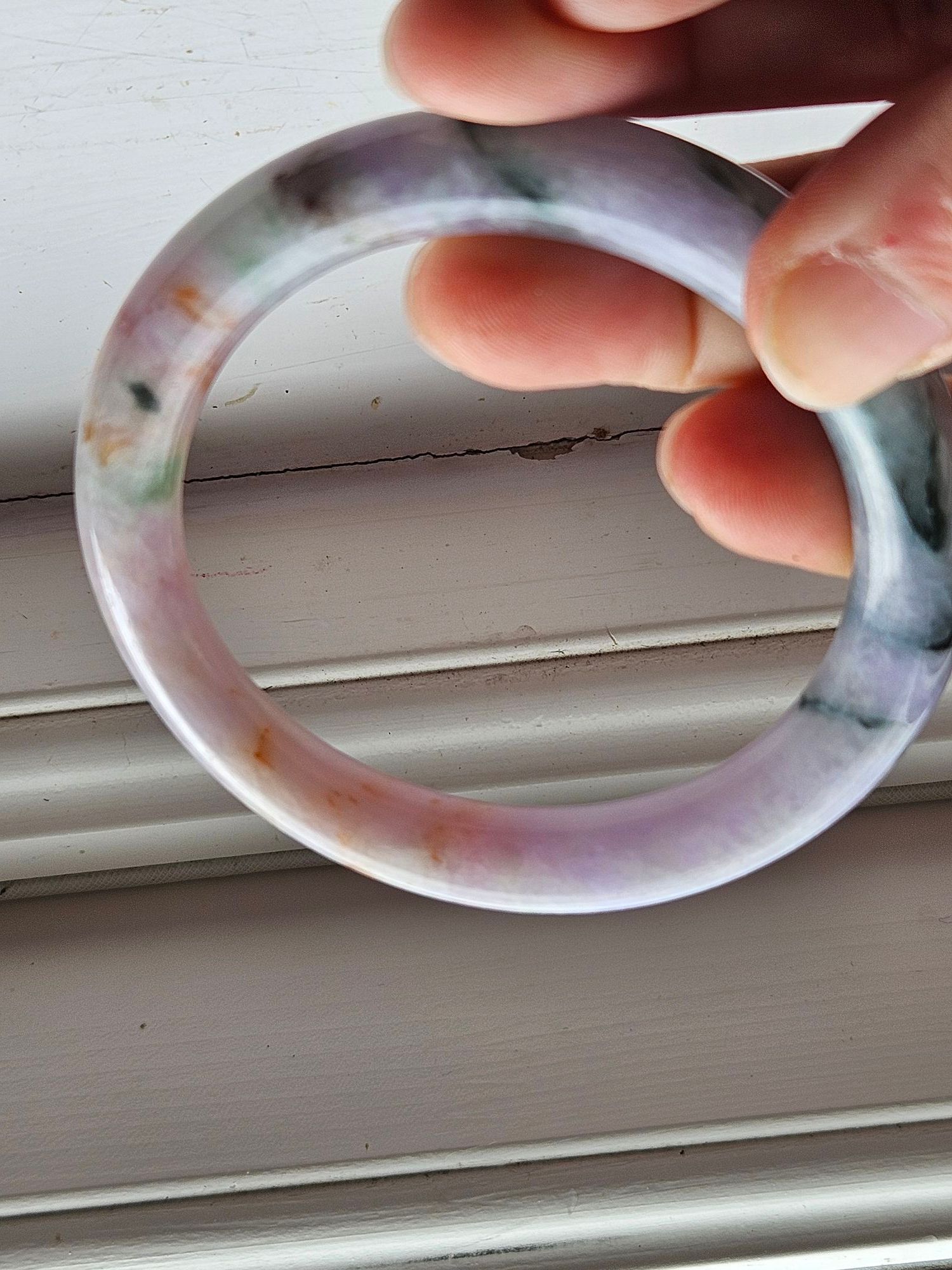 Stunning Burmese jadeite bangle consisting of purple, green and yellow fits up to 58mm, measures 56.2 x 9.3 x 10.4mm, comes with a certificate of authenticity £418