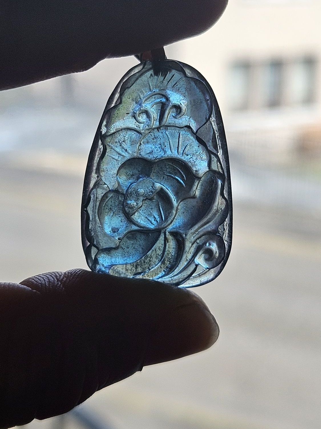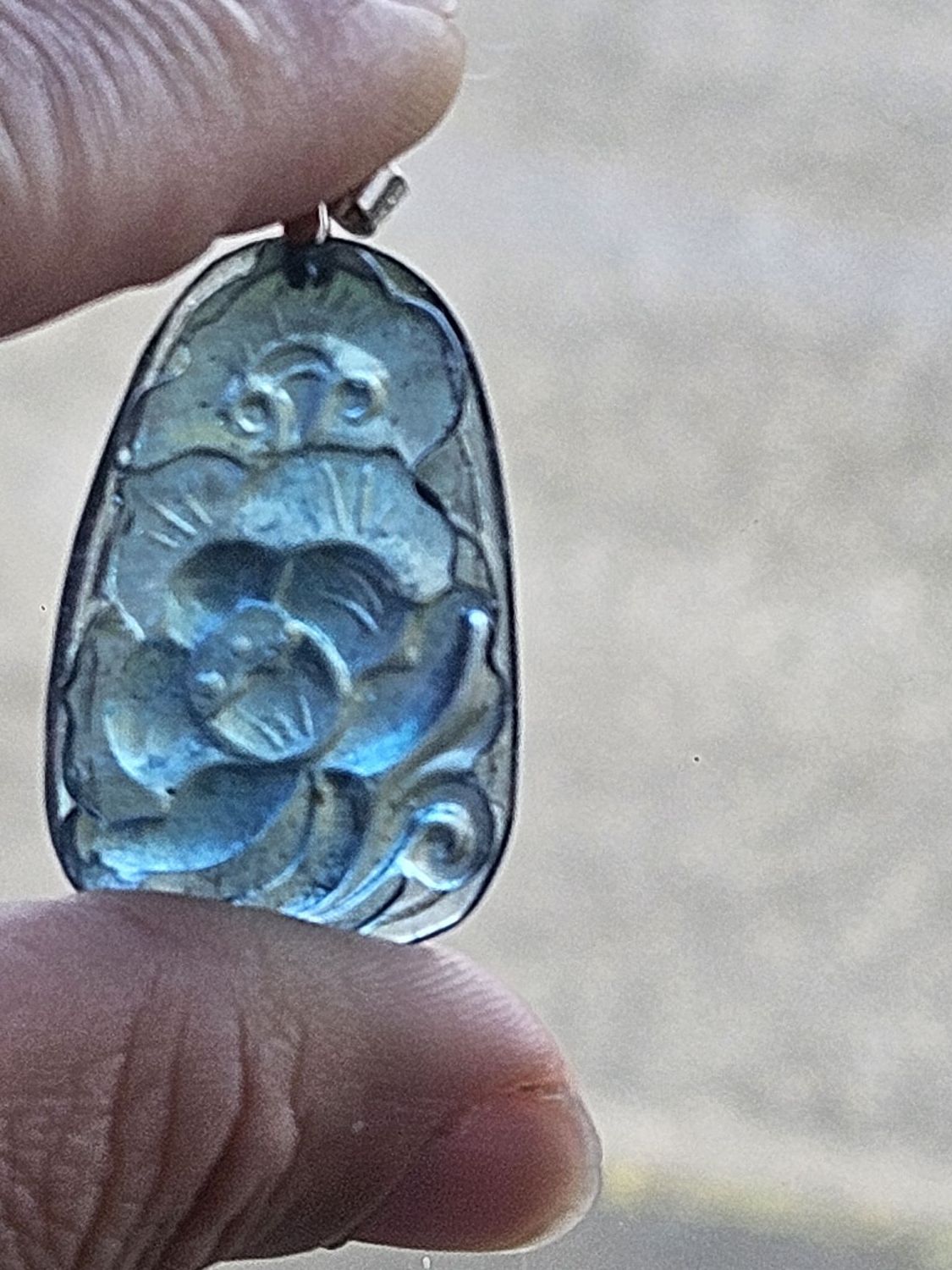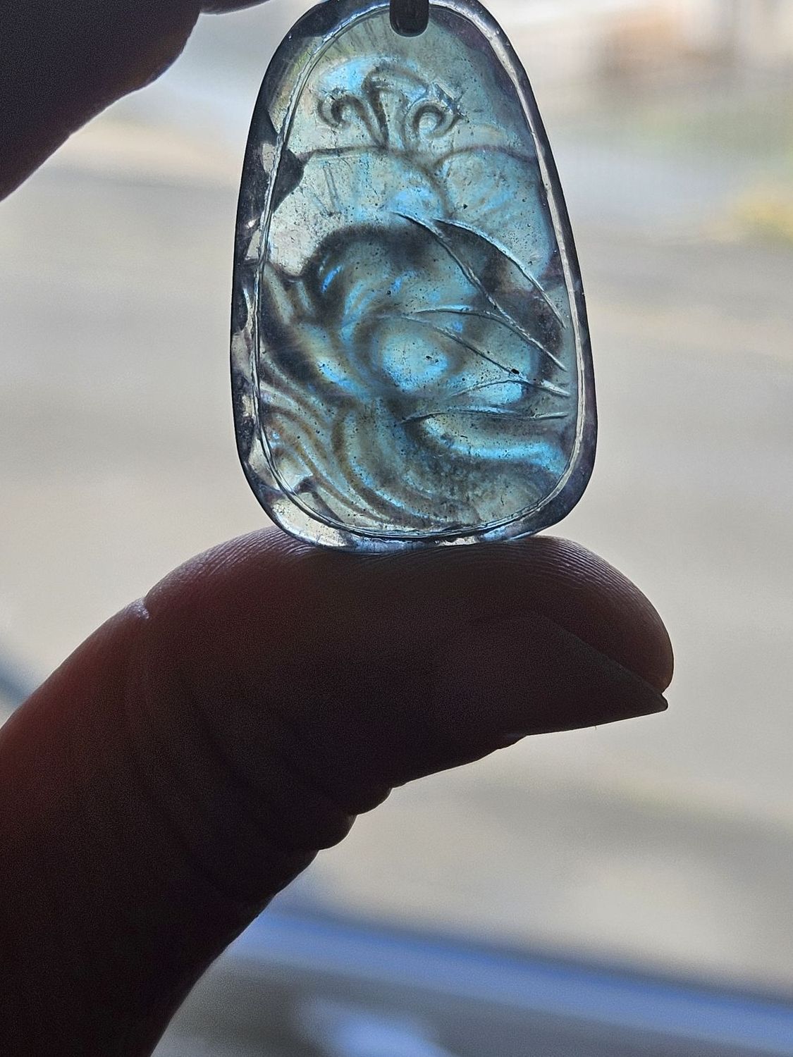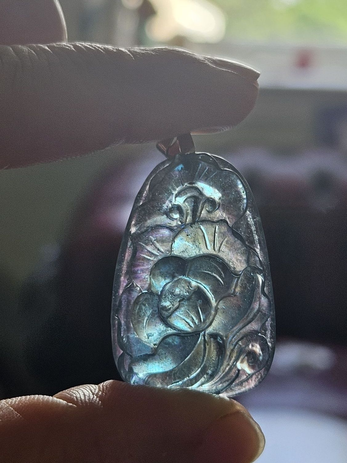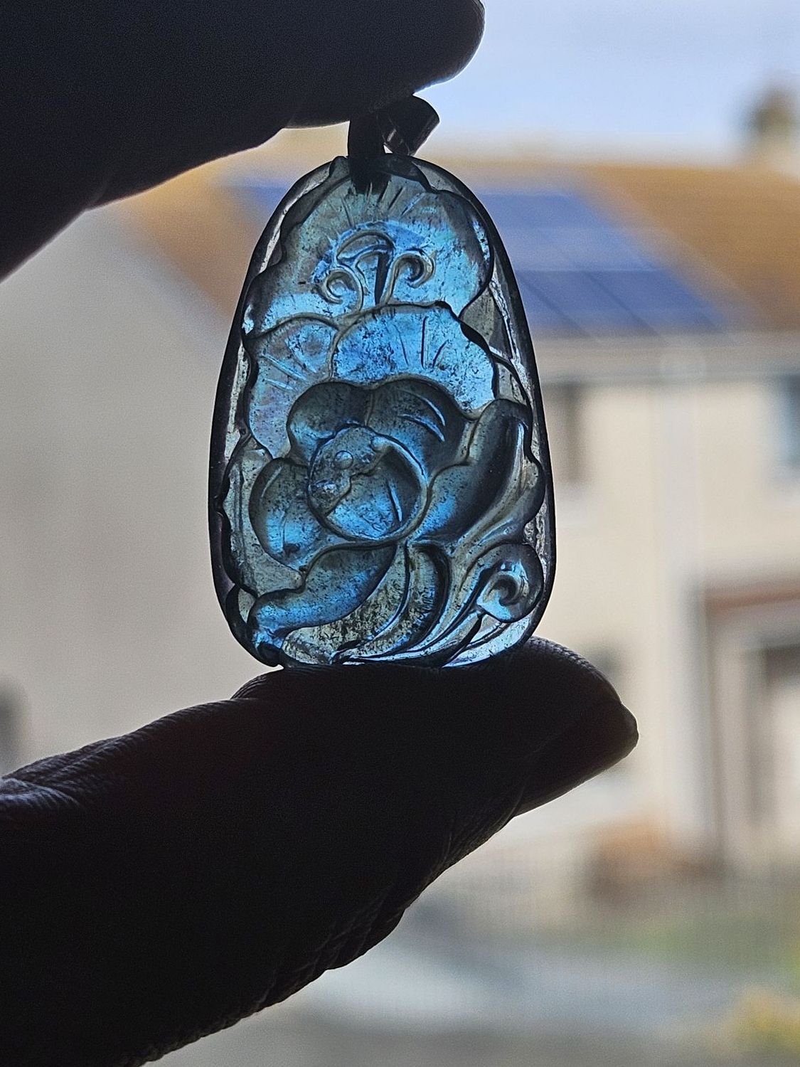 Aquamarine pendant measures 32.6 x 21.5 x 9.3mm. Aquamarine can relieve tension and reduce feelings of stress, anger or frustration; it also helps eliminate negative emotions. Help throat infections, swollen glands and thyroid. £58
