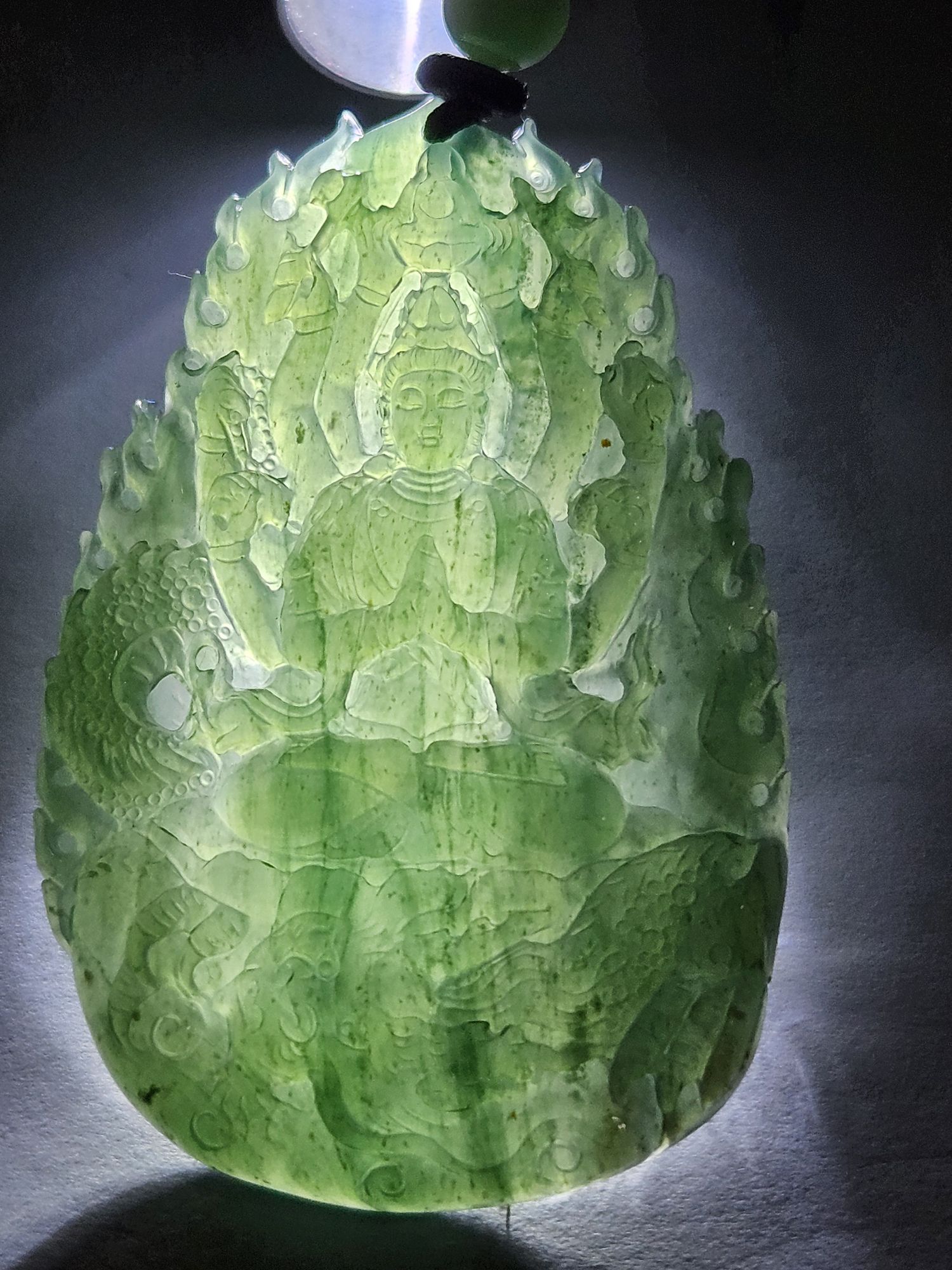 A jade Thousand-Armed Guanyin pendant is said to have many benefits, including: