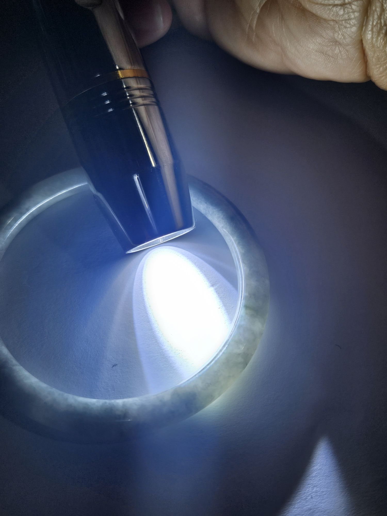 Round Burmese bangle in smoky grey and black measures 57.3 x 7.1 x 7.6mm. Weigh 25.5g, fits up to 59mm. £48