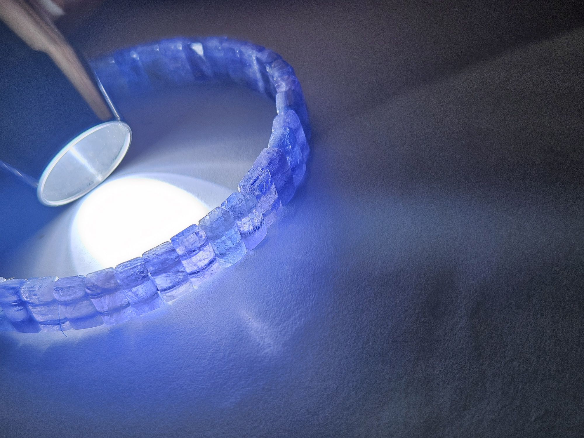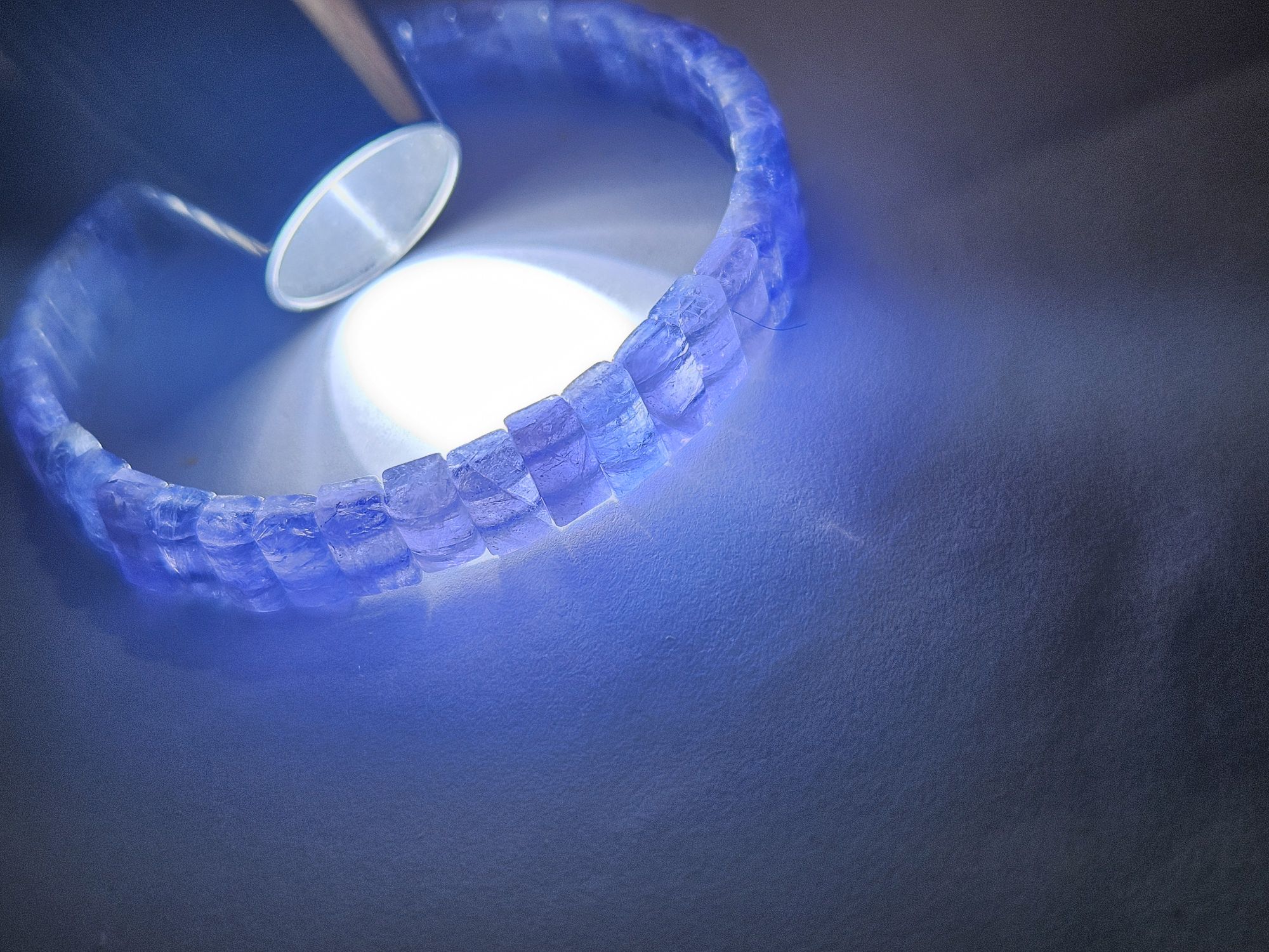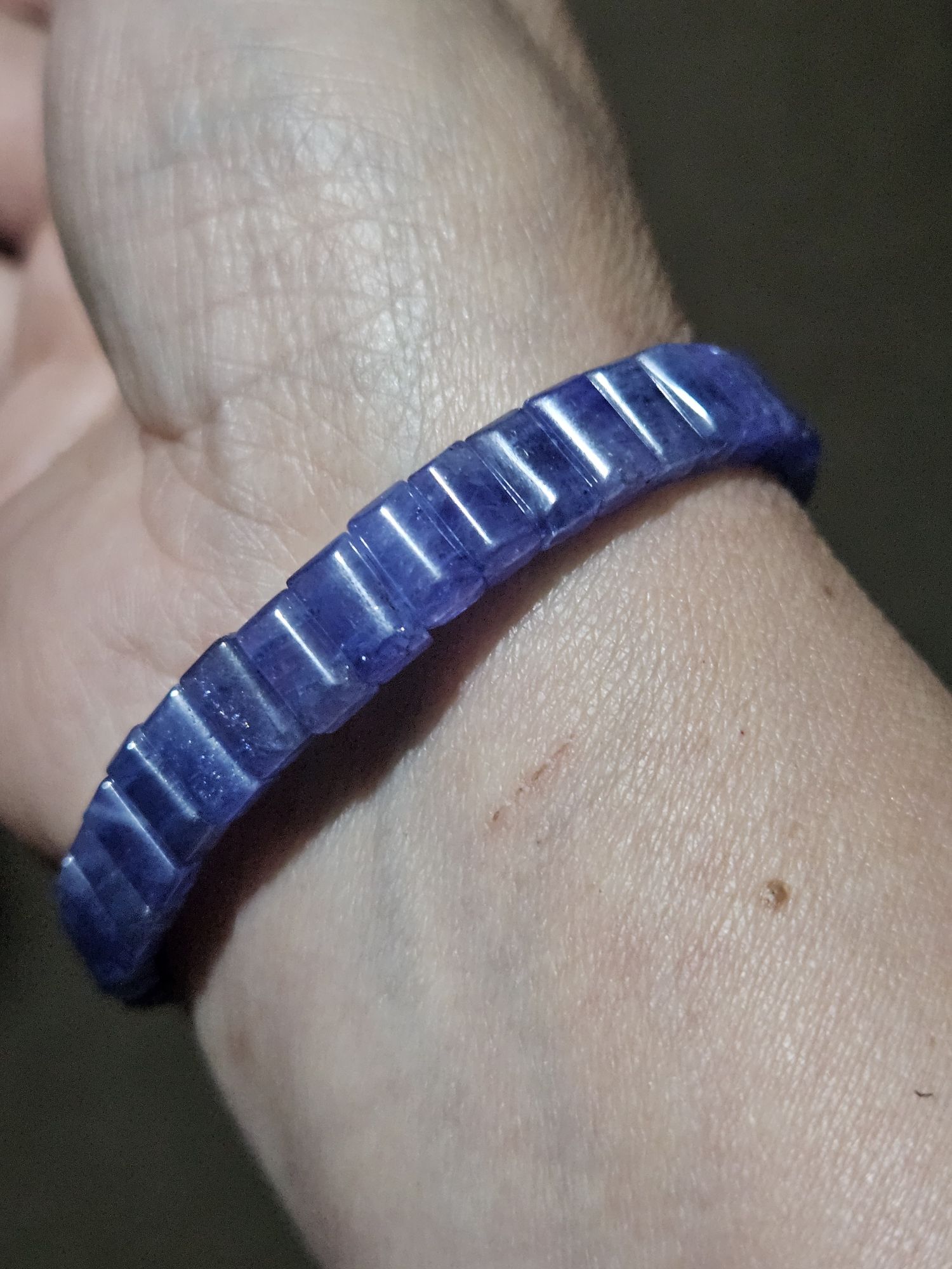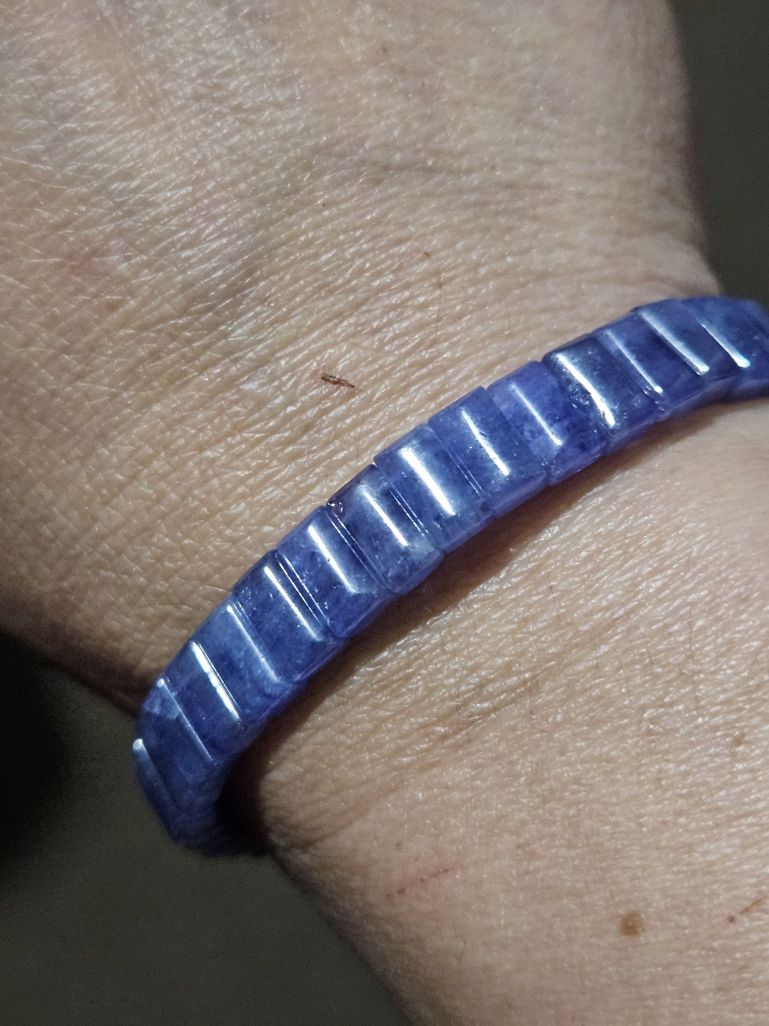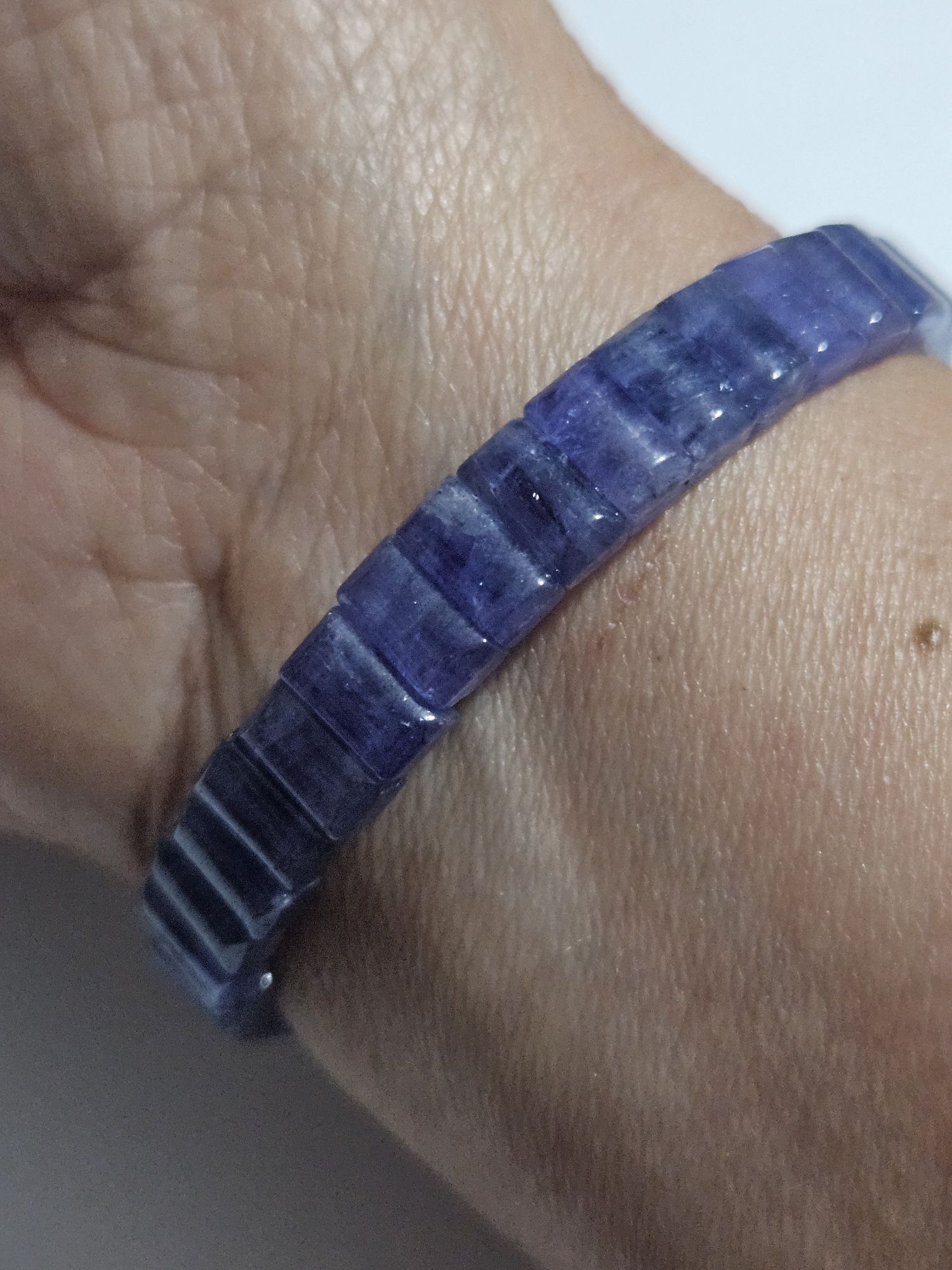 Gorgeous purple natural Tanzanite bangle style bracelet measures 7.9mm wide, 3.7mm thick, fits up to 17cm wrists. £130