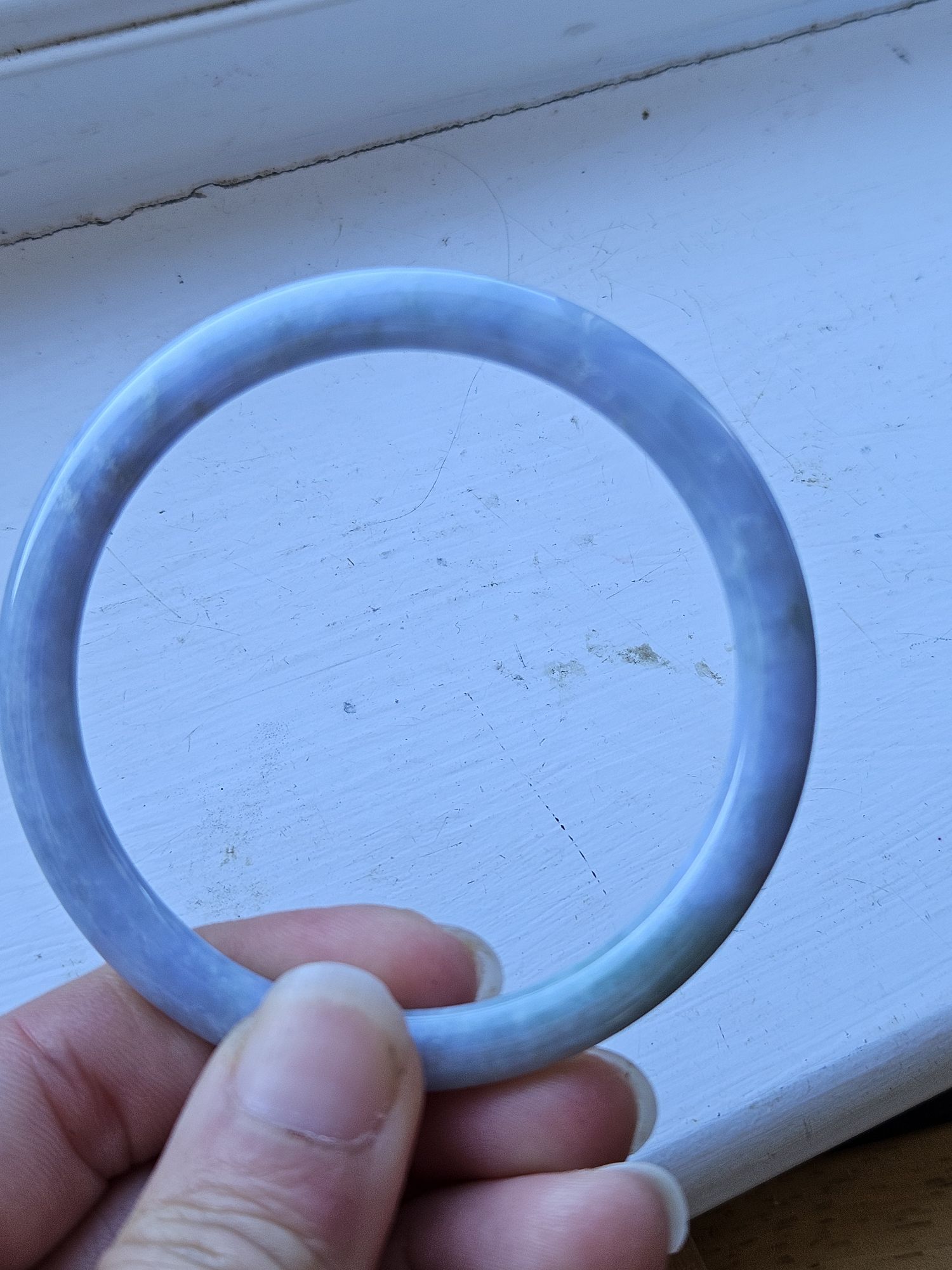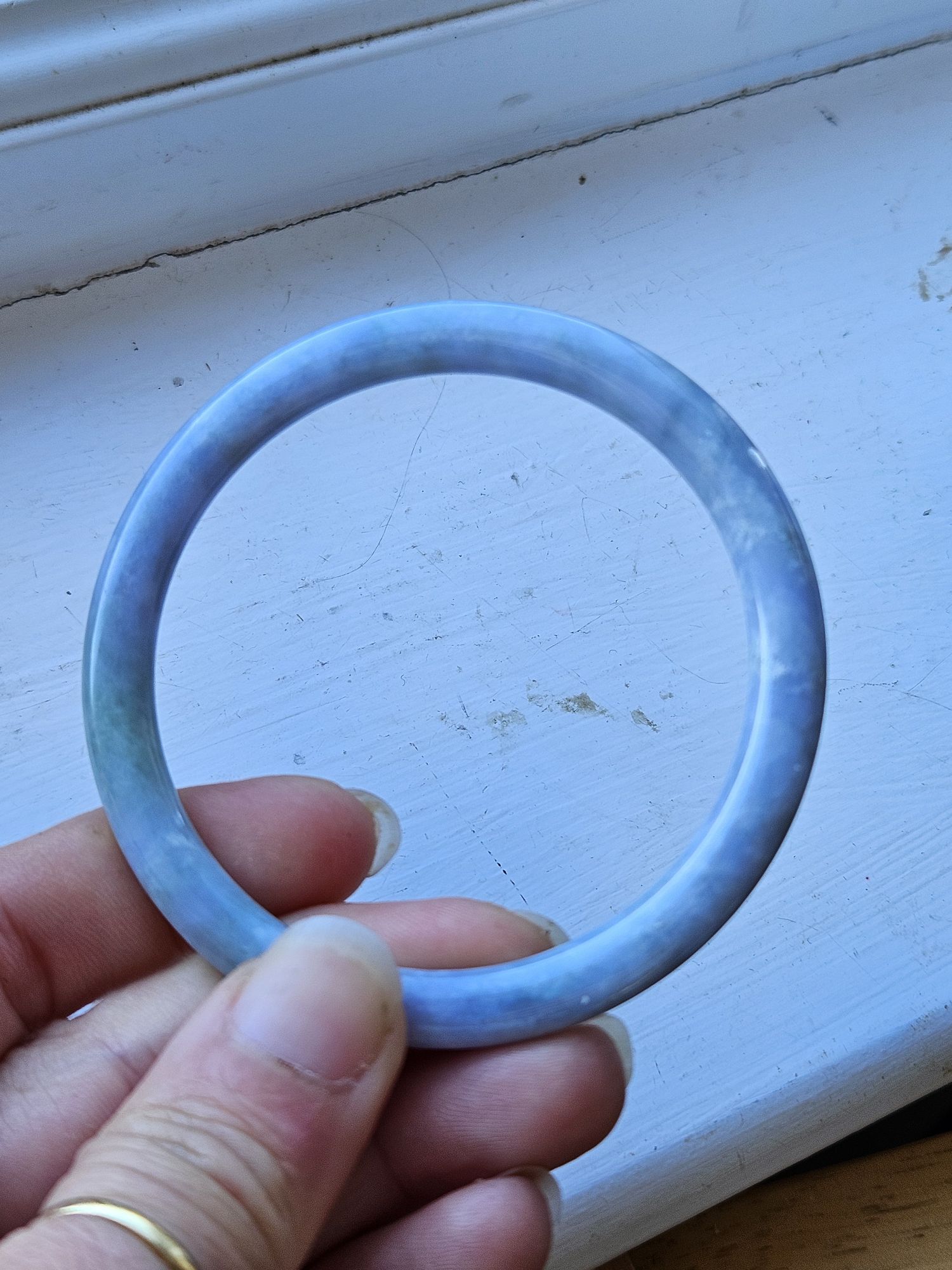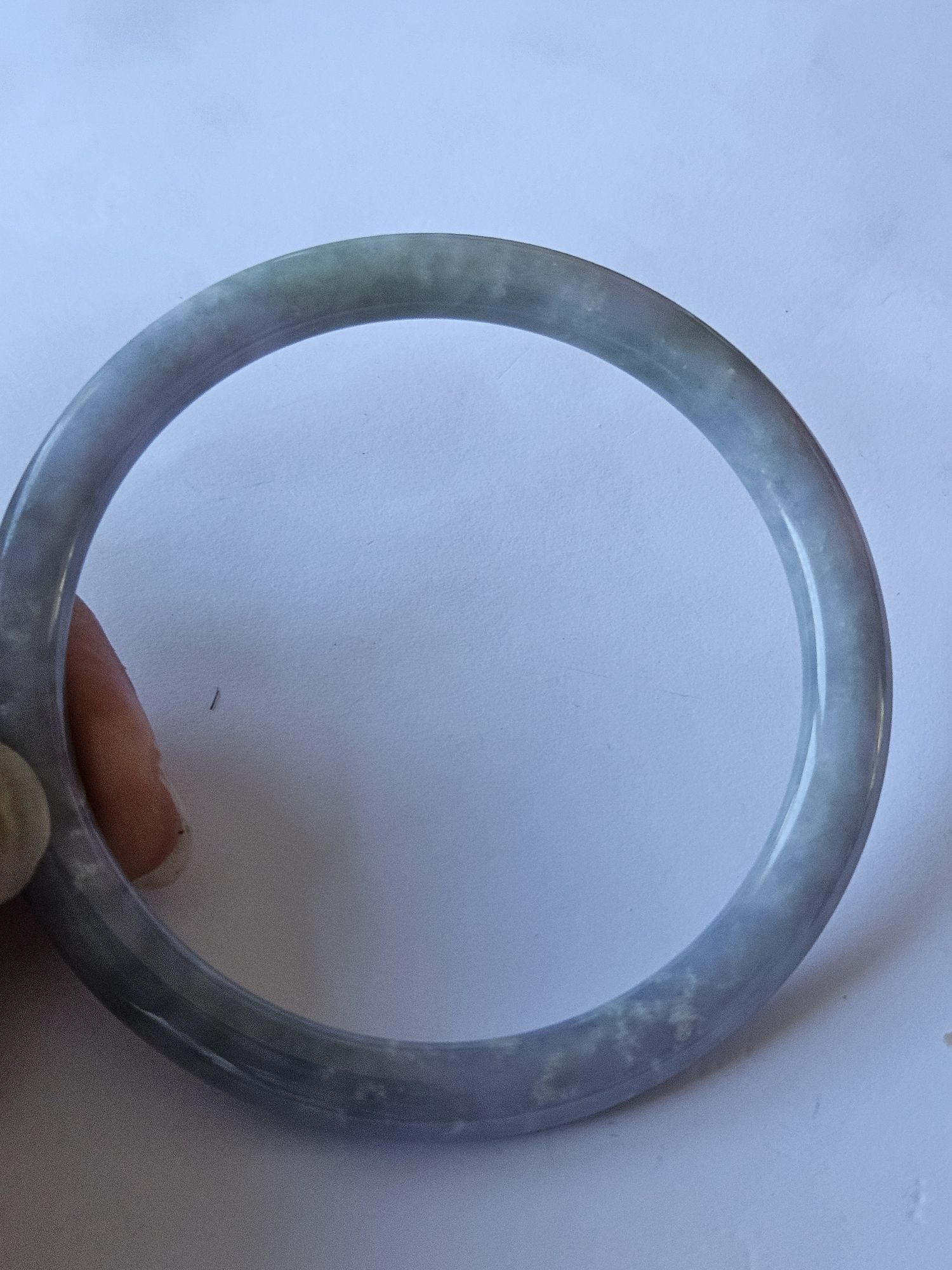 Very lovely purple and green round Burmese jadeite bangle that fits up to 58mm, comes with a certificate of authenticity