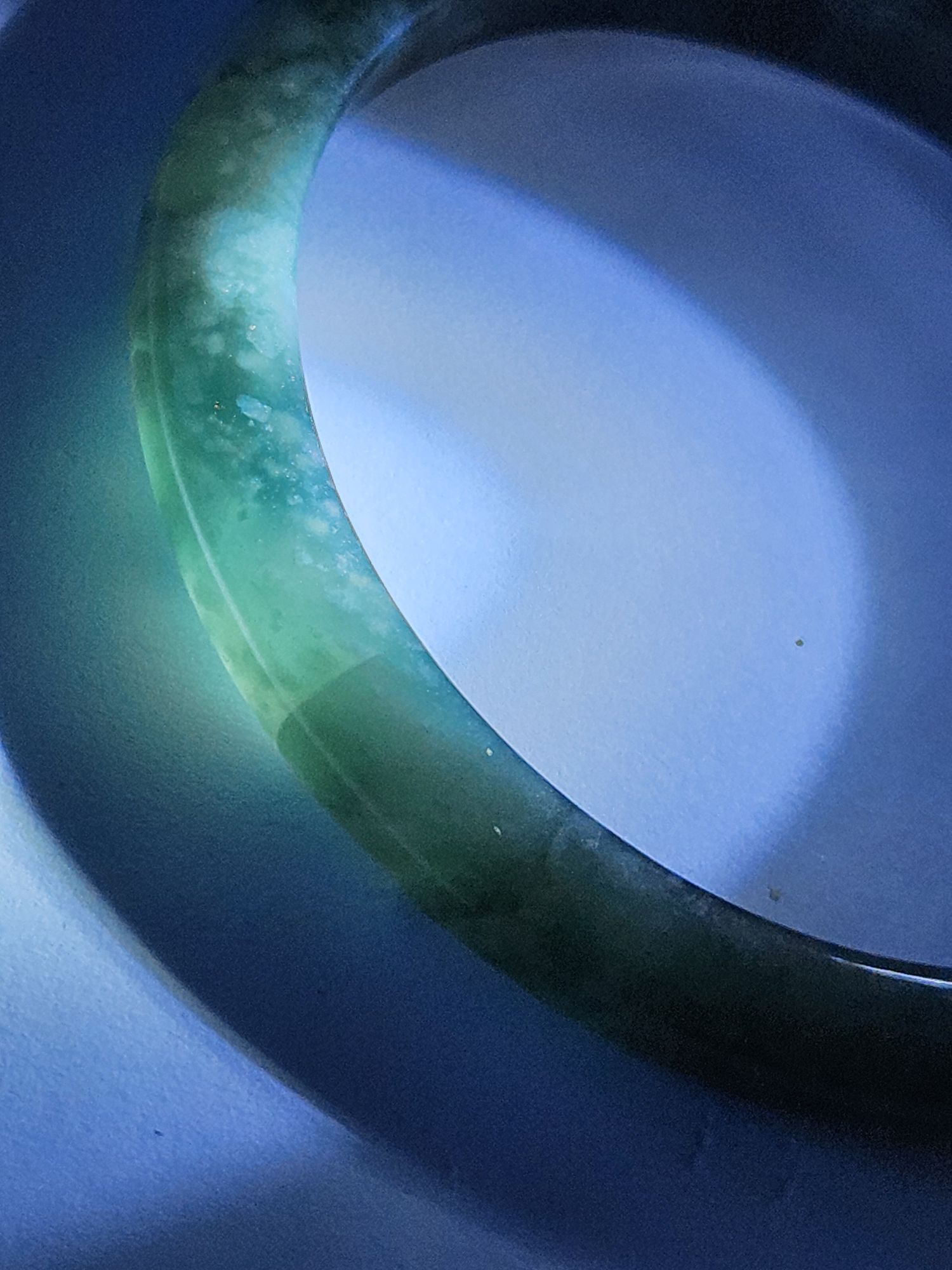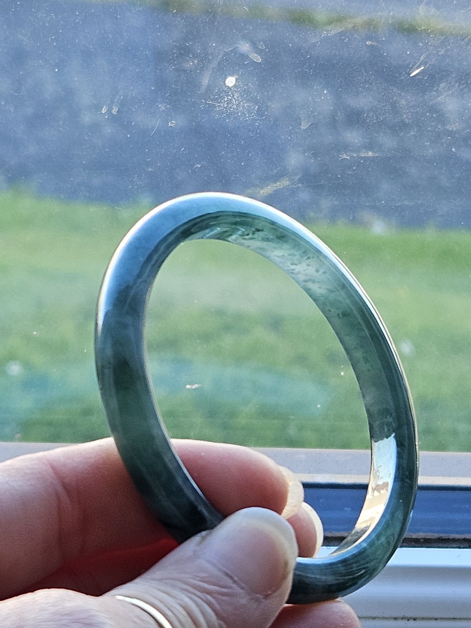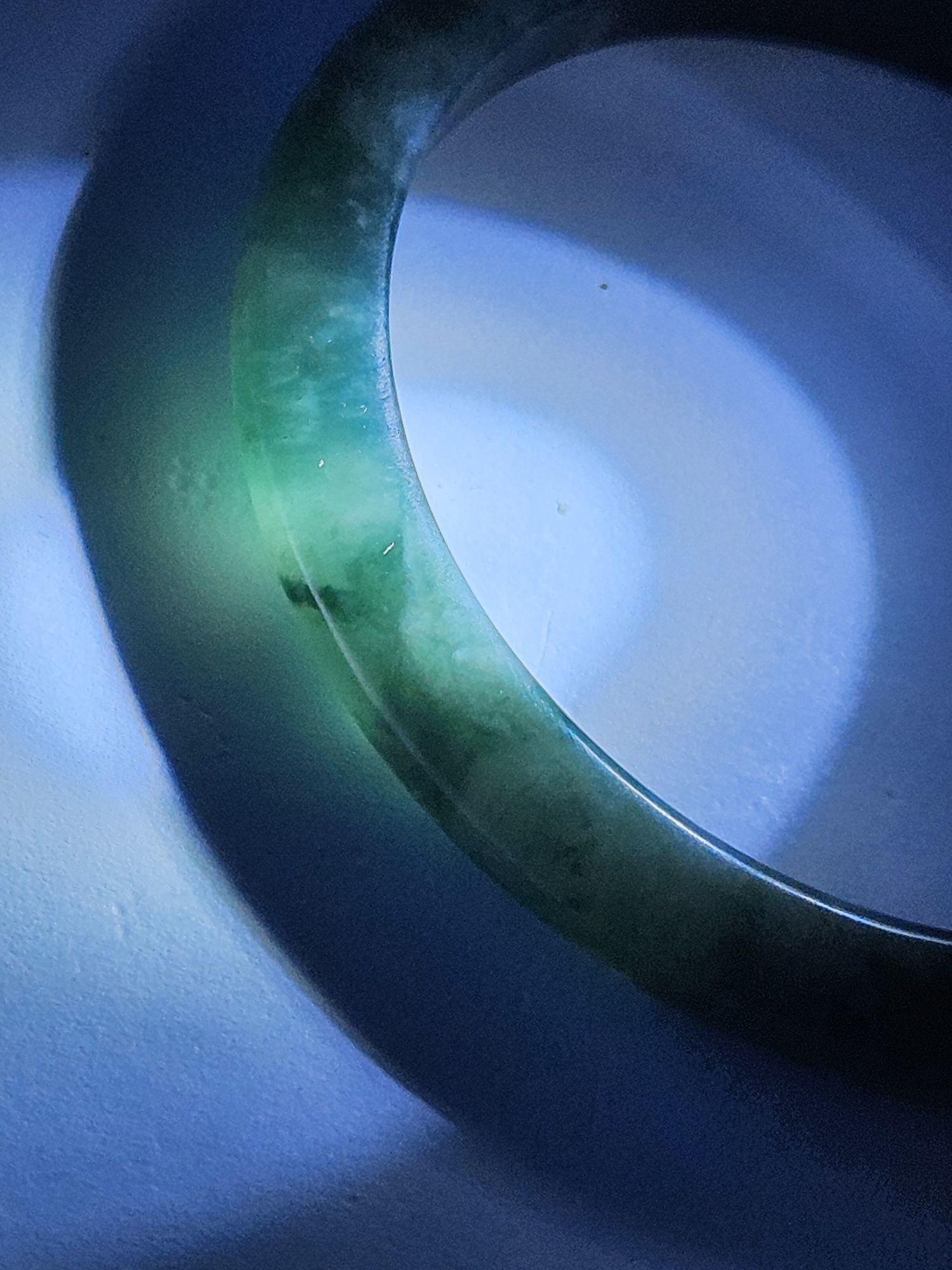 A full green Guatemala jadeite bangle measures 56 x 7.9 x 6.7mm, weighs 30.48g, comes with a certificate of authenticity £189