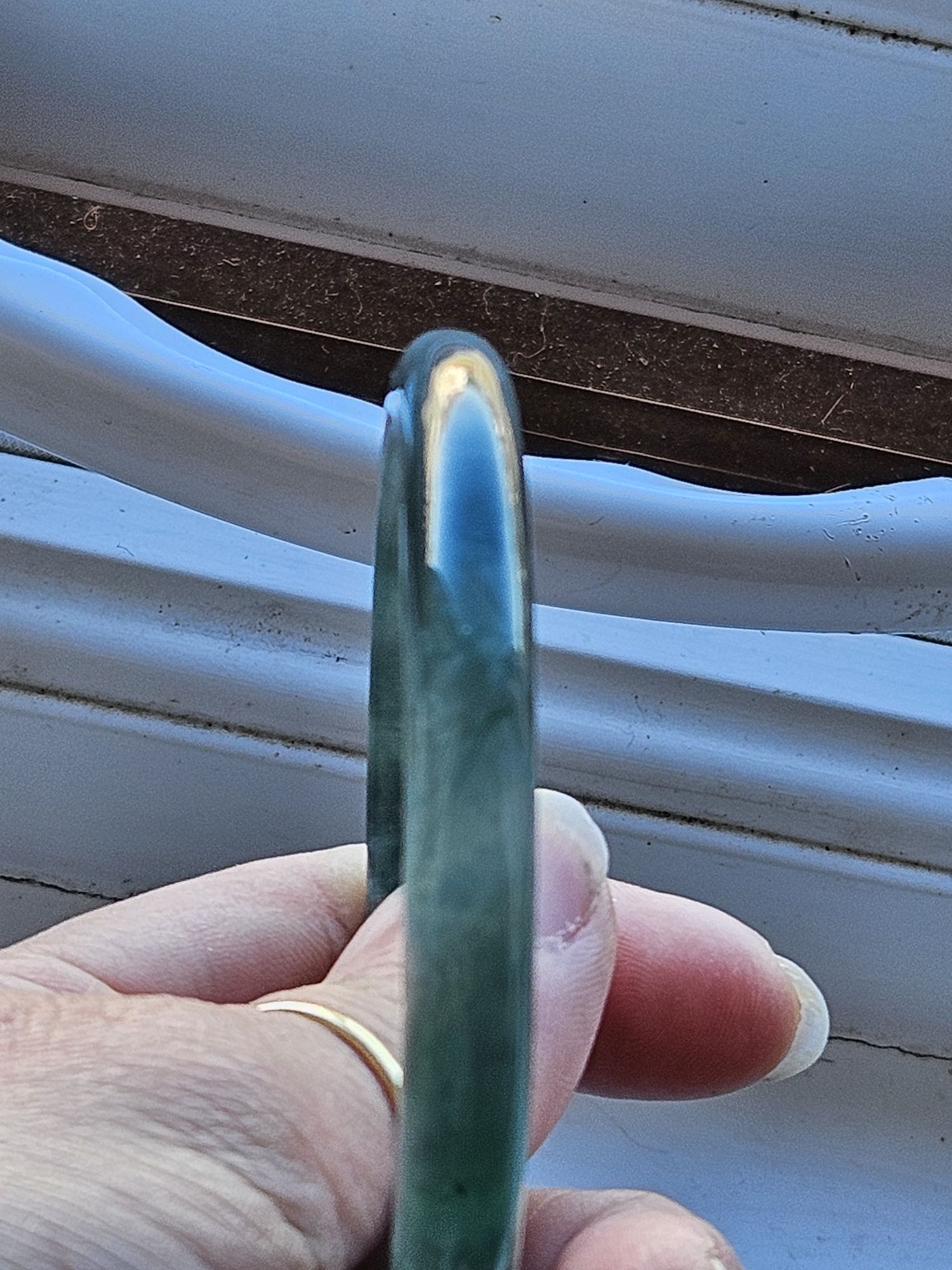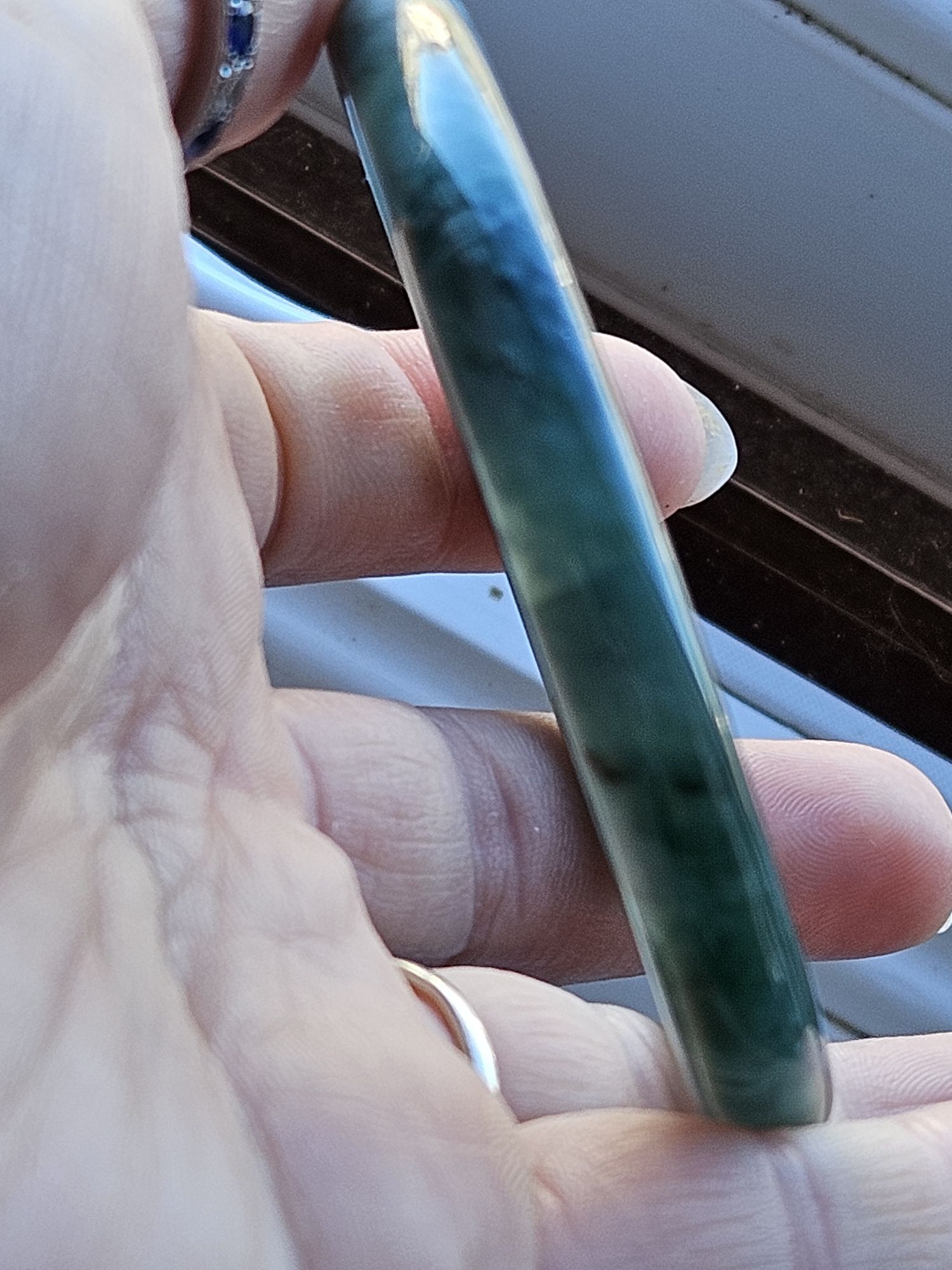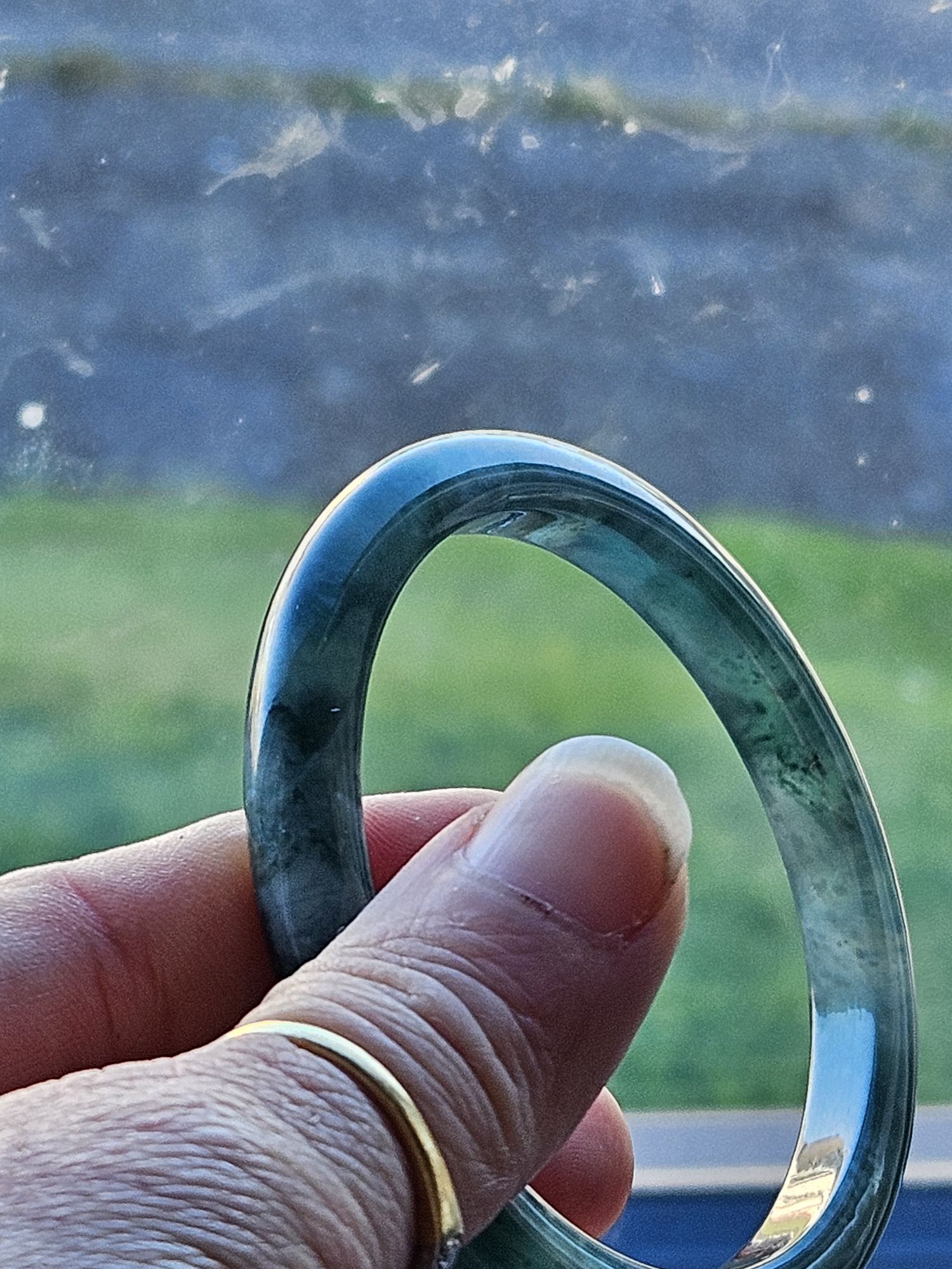 A full green Guatemala jadeite bangle measures 56 x 7.9 x 6.7mm, weighs 30.48g, comes with a certificate of authenticity £189