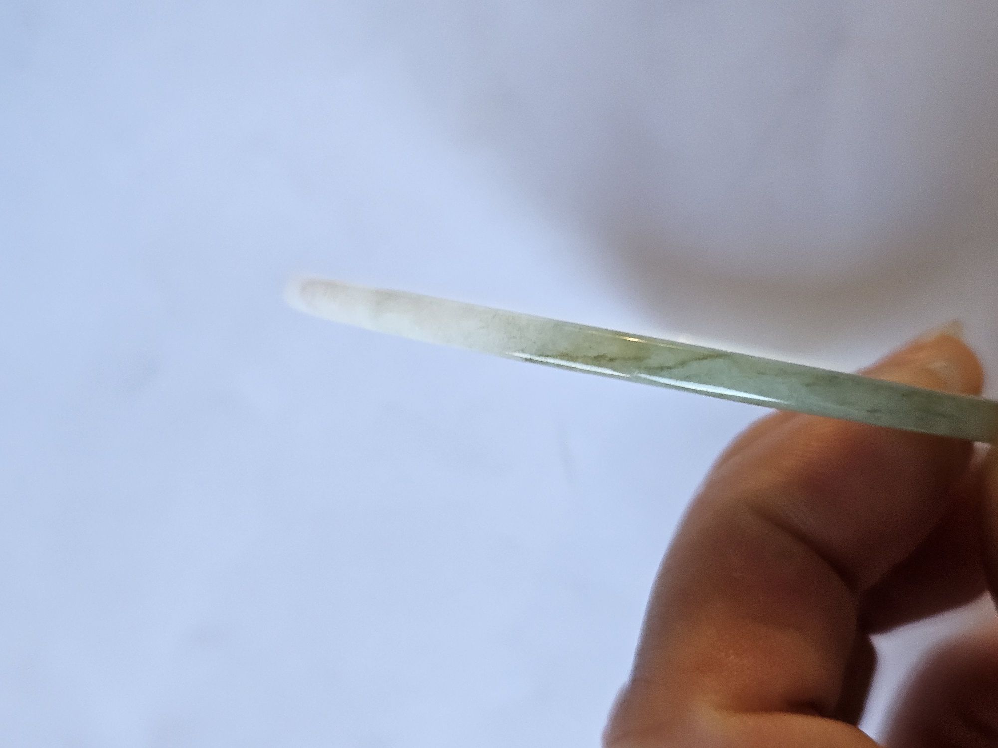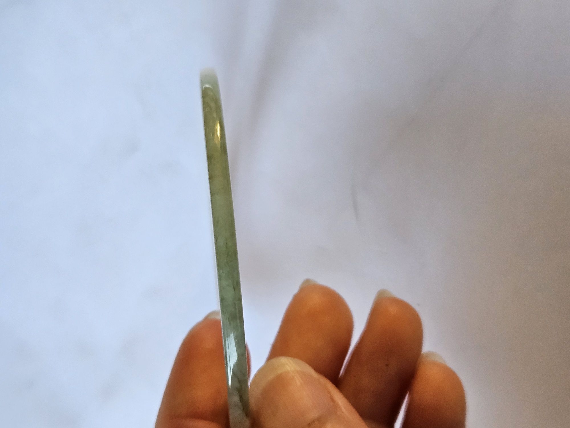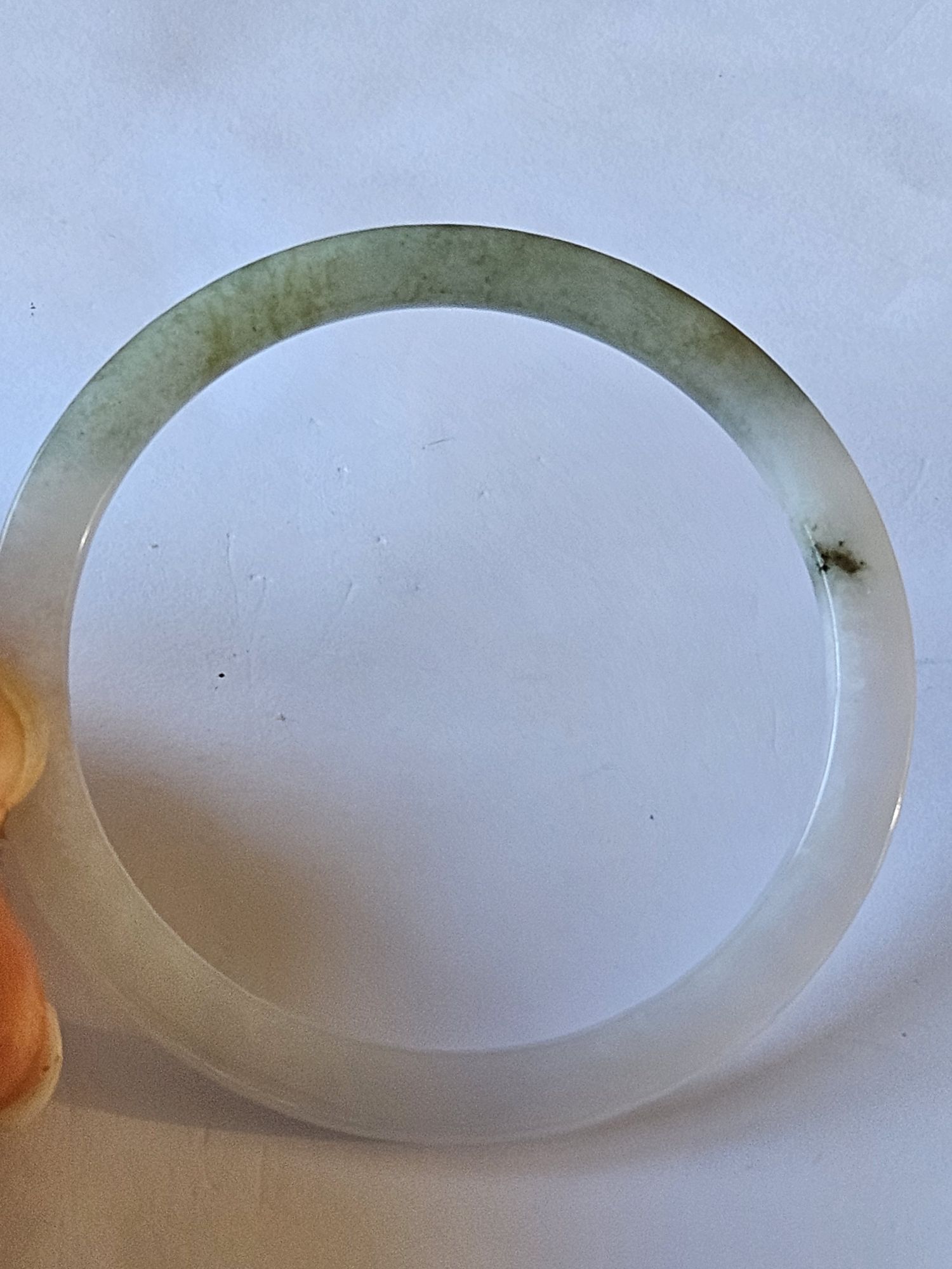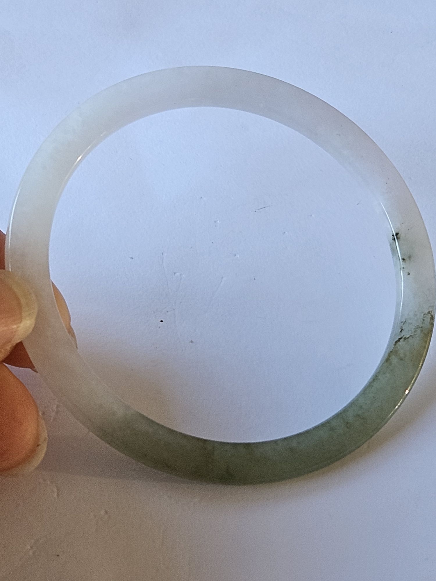 A little like ying and Yang half purple and almost half green Burmese jadeite bangle, measures 57 x 2.4 x 5.4mm, weighs 15.26g. Comes with a certificate of authenticity £55
