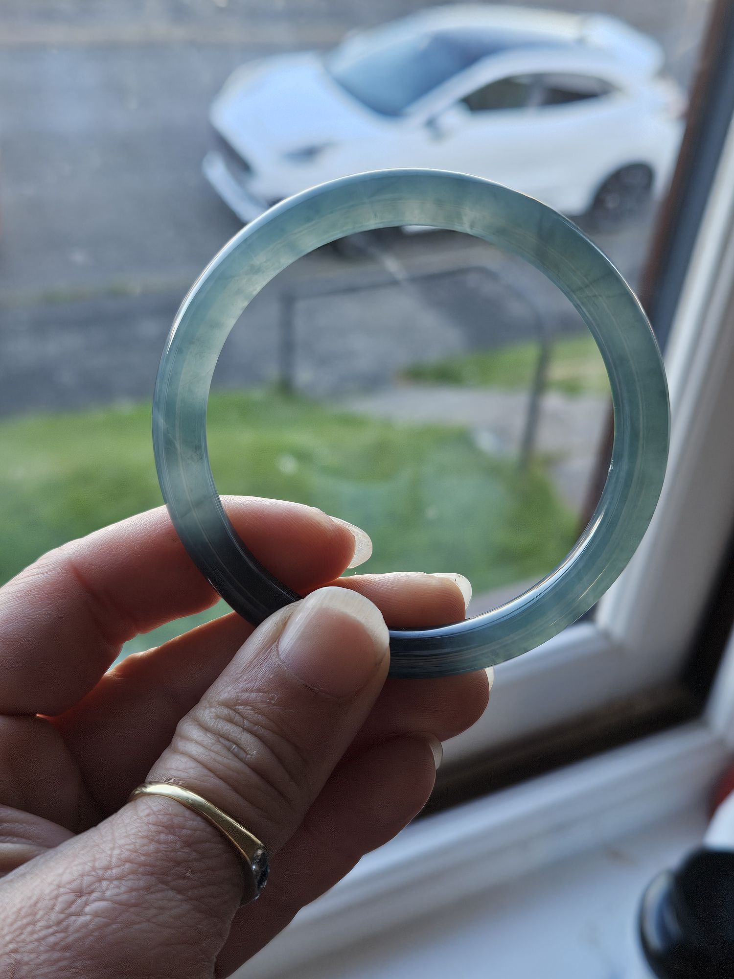 Stunning icy round bangle that fits up to 57mm, measures 55 x 7.5 x 7.5mm, weighs 28.85g, comes with a certificate of authenticity £428