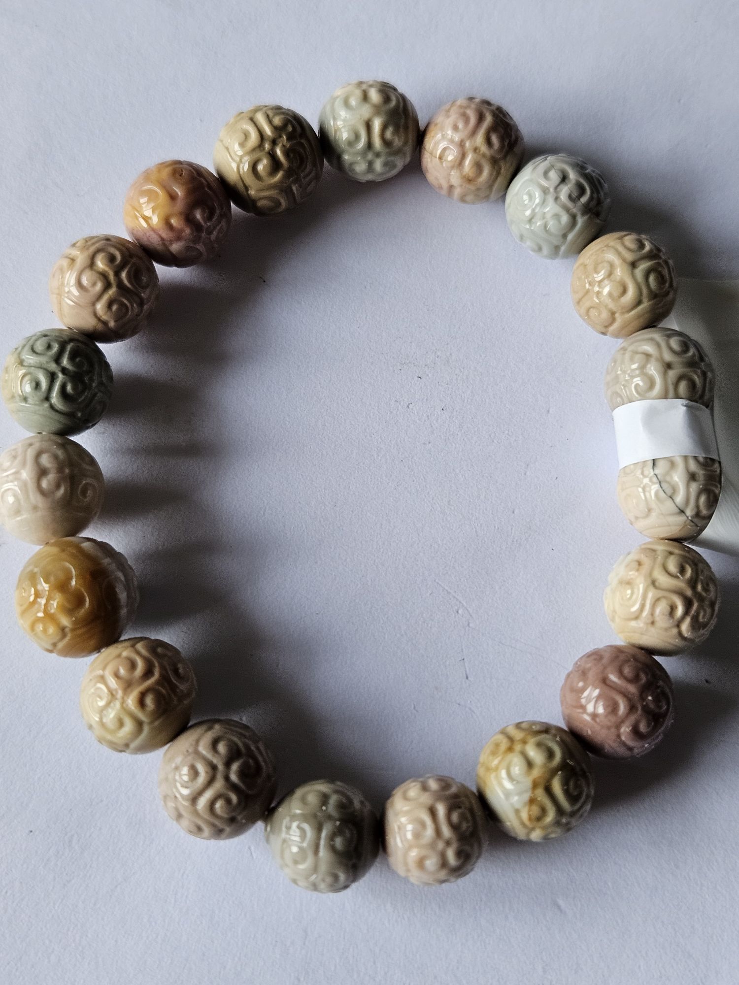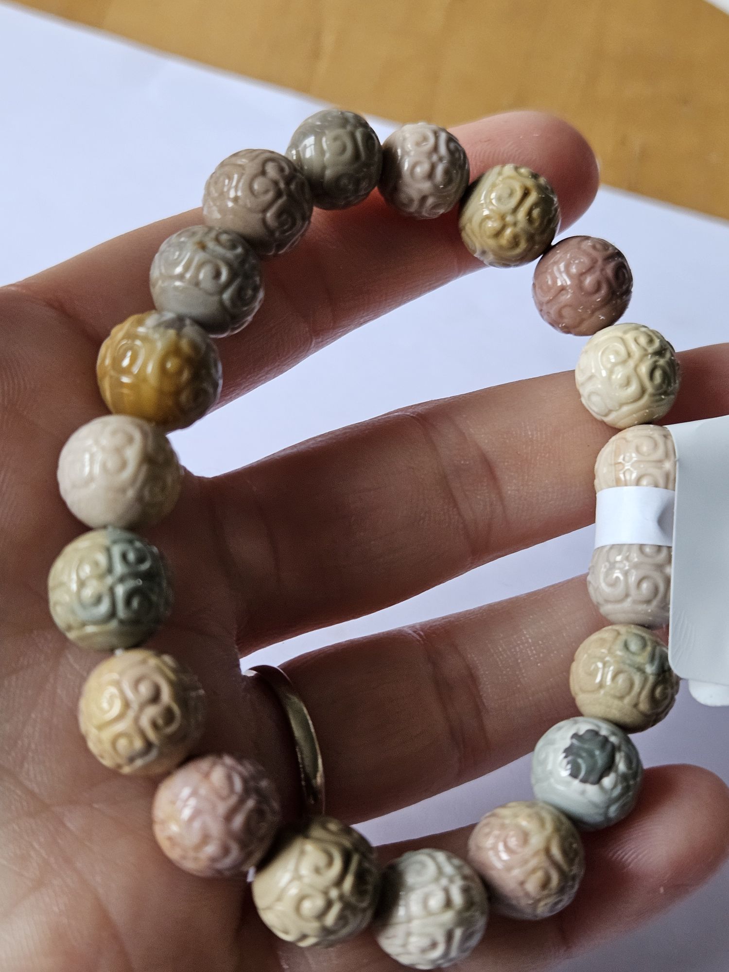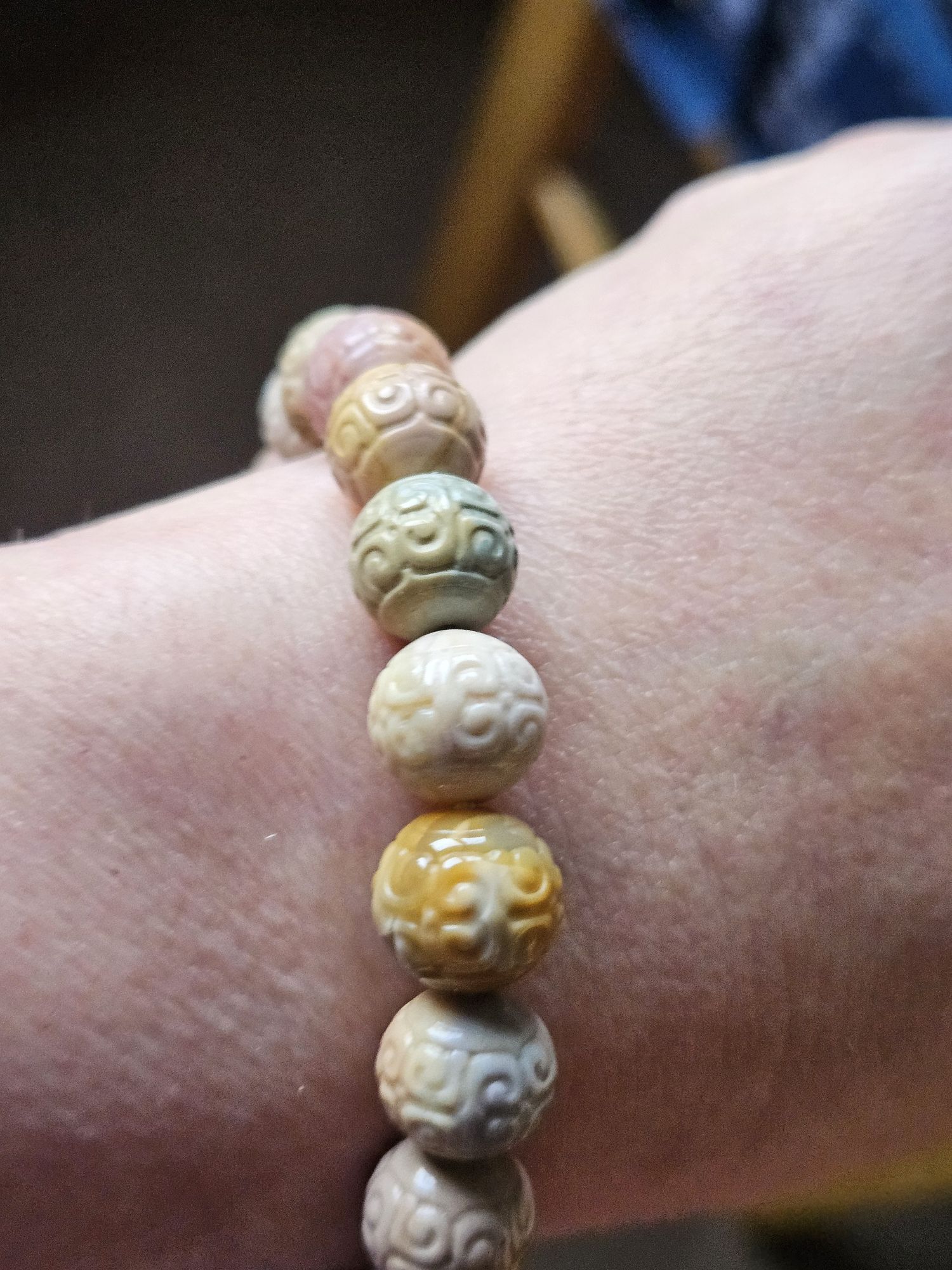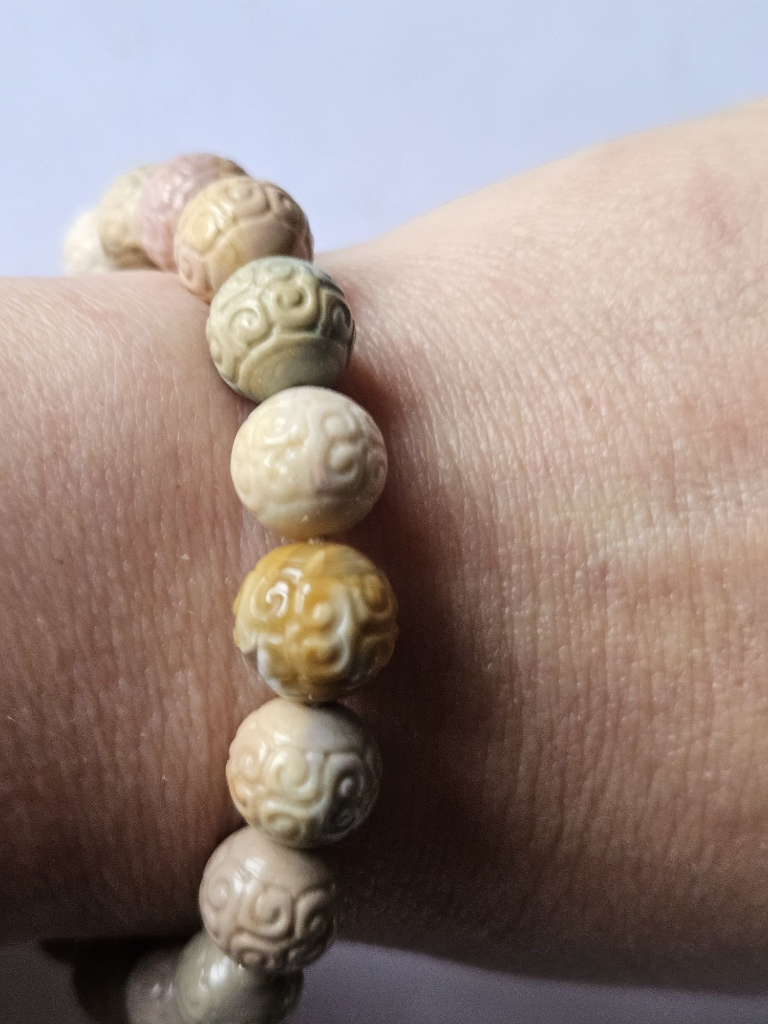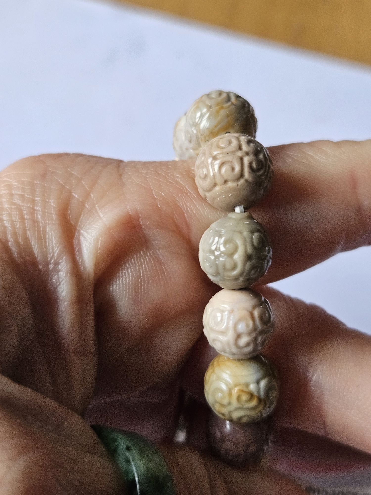 Alashan agate is usually polished into beads, and may have small natural pores, tiny cracks, or crystal lines. It is important to avoid showering or swimming with agate jewelry, as repeated contact with water and chemicals can damage and permanently discolor the pieces. £35