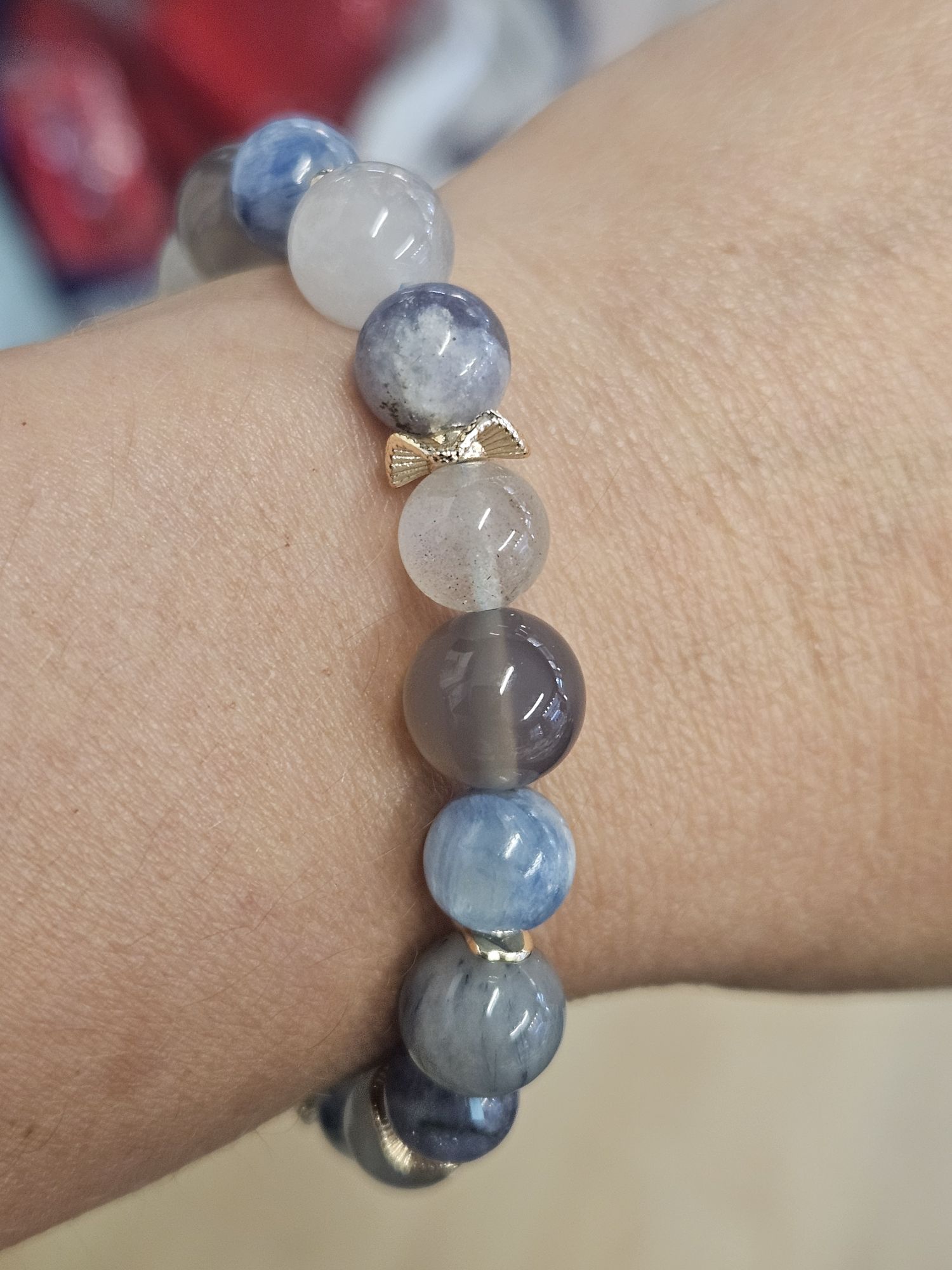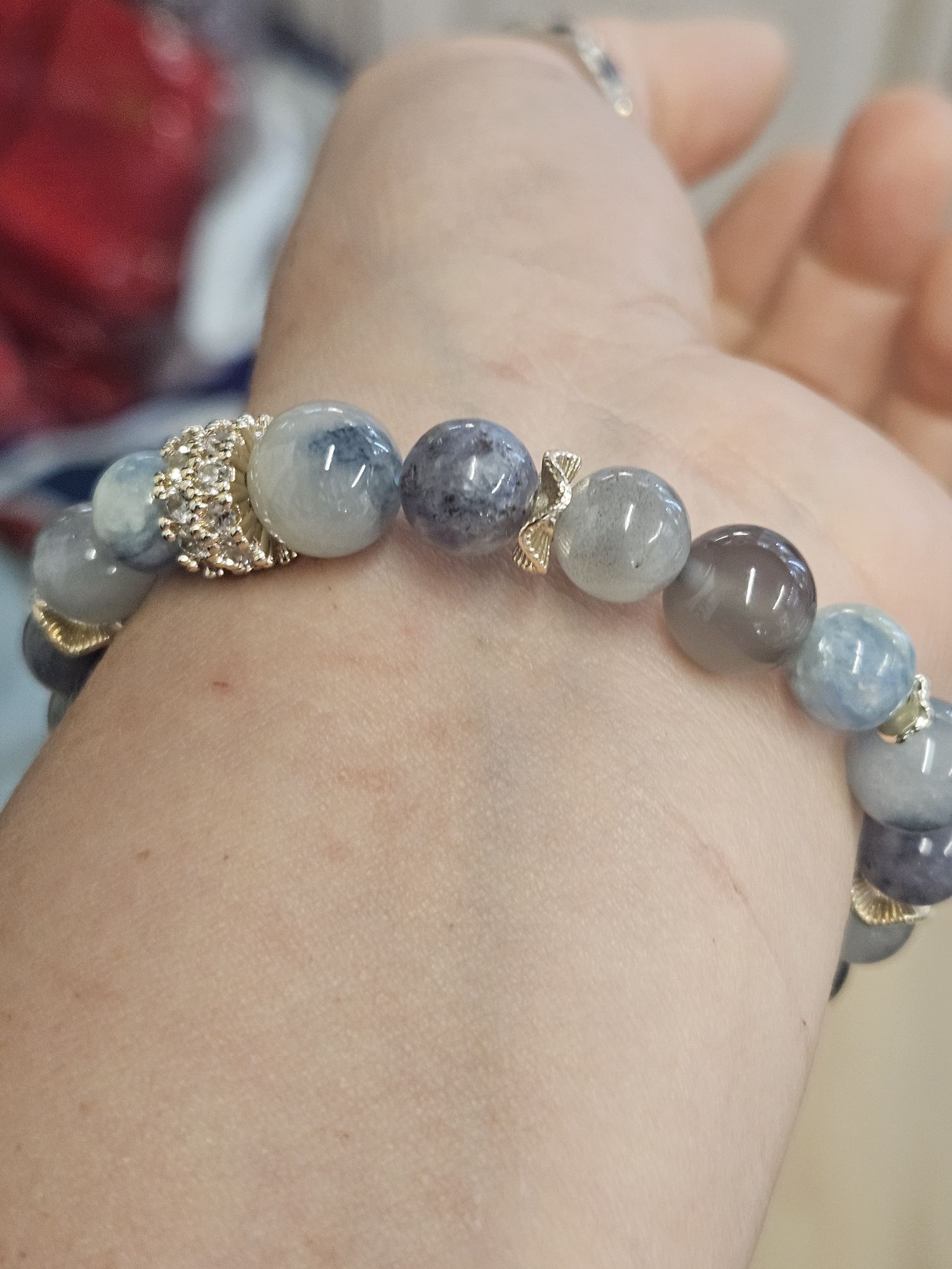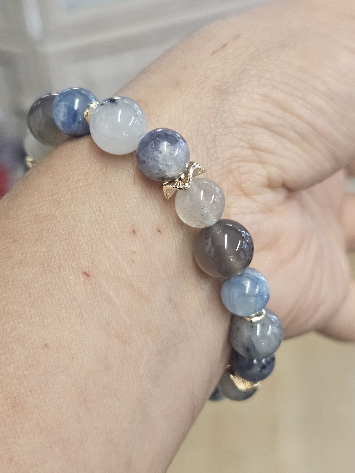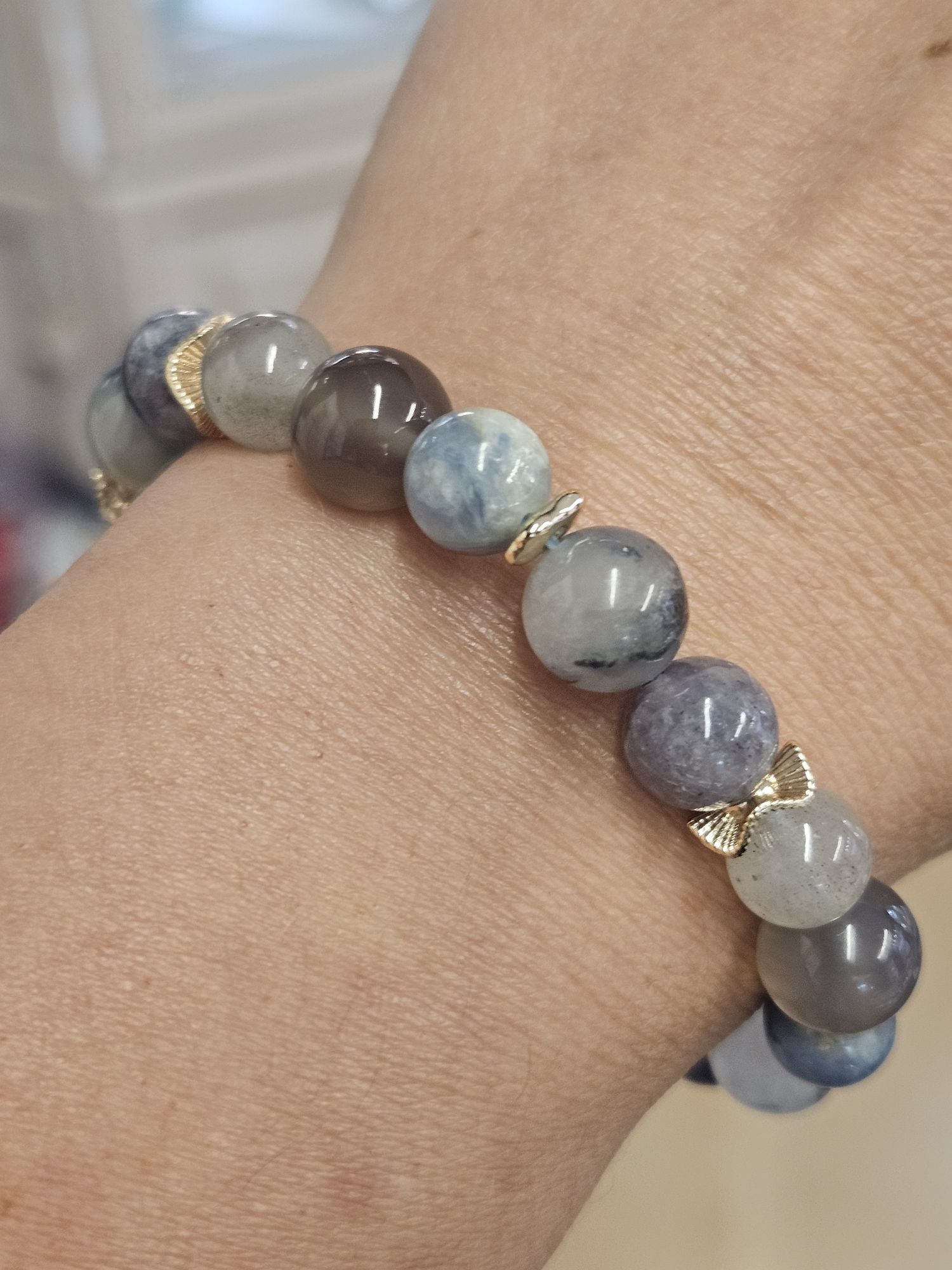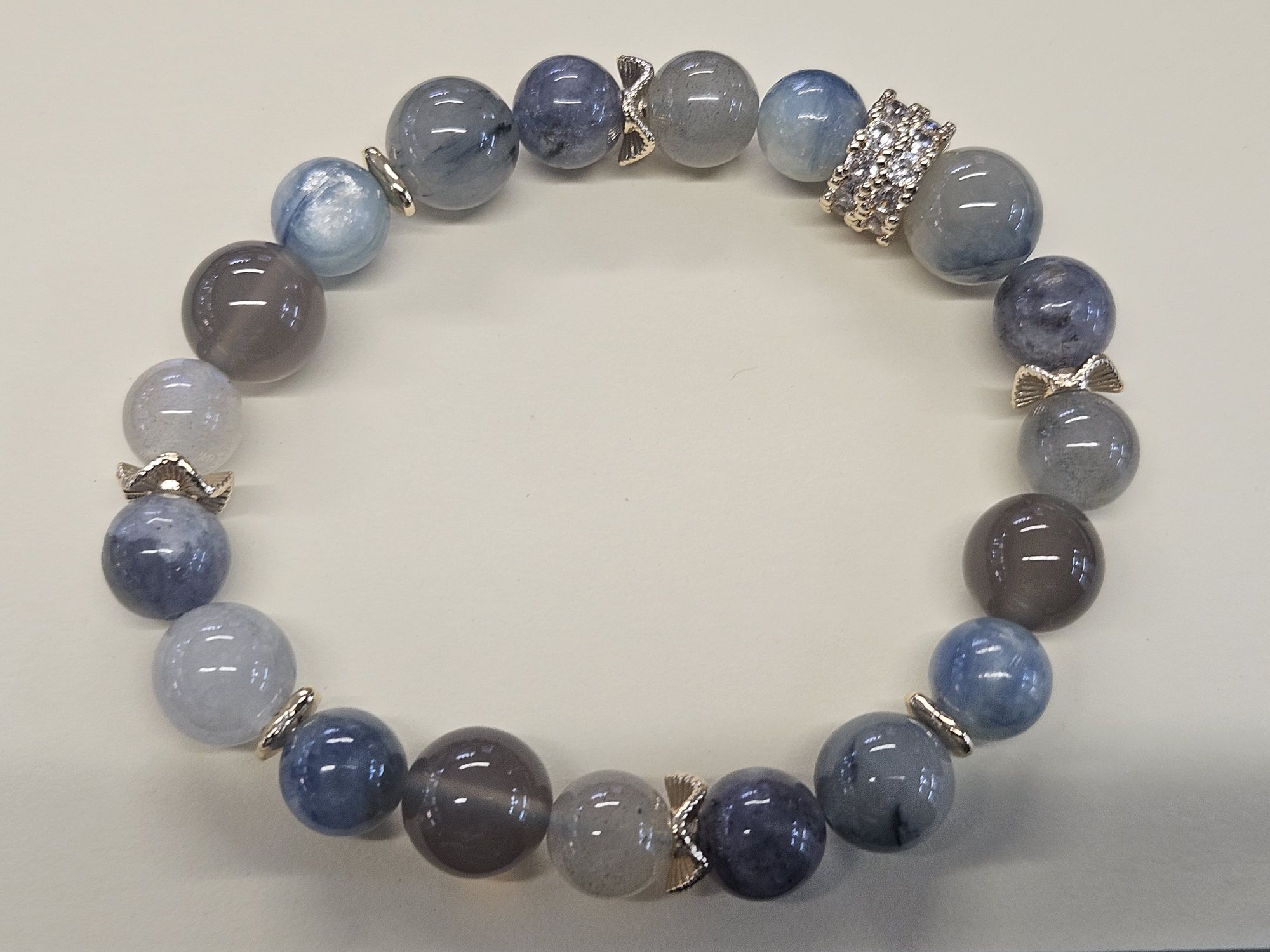 Handmade in Scotland at #122murraystreetmontrose, using blue Rutilated quartz, Kyanite, Labradorite, smoky purple grey Agate, it helps to clear negative energy, soothe stress and anxiety, provide protection and stability.