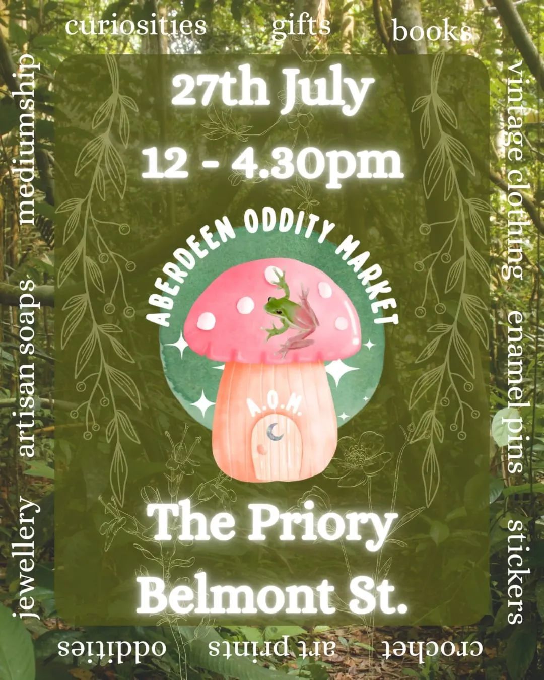 Sunday 27th July 12pm to 4.30pm, hosted by Aberdeen Oddities Market at The Priory on Belmont street.