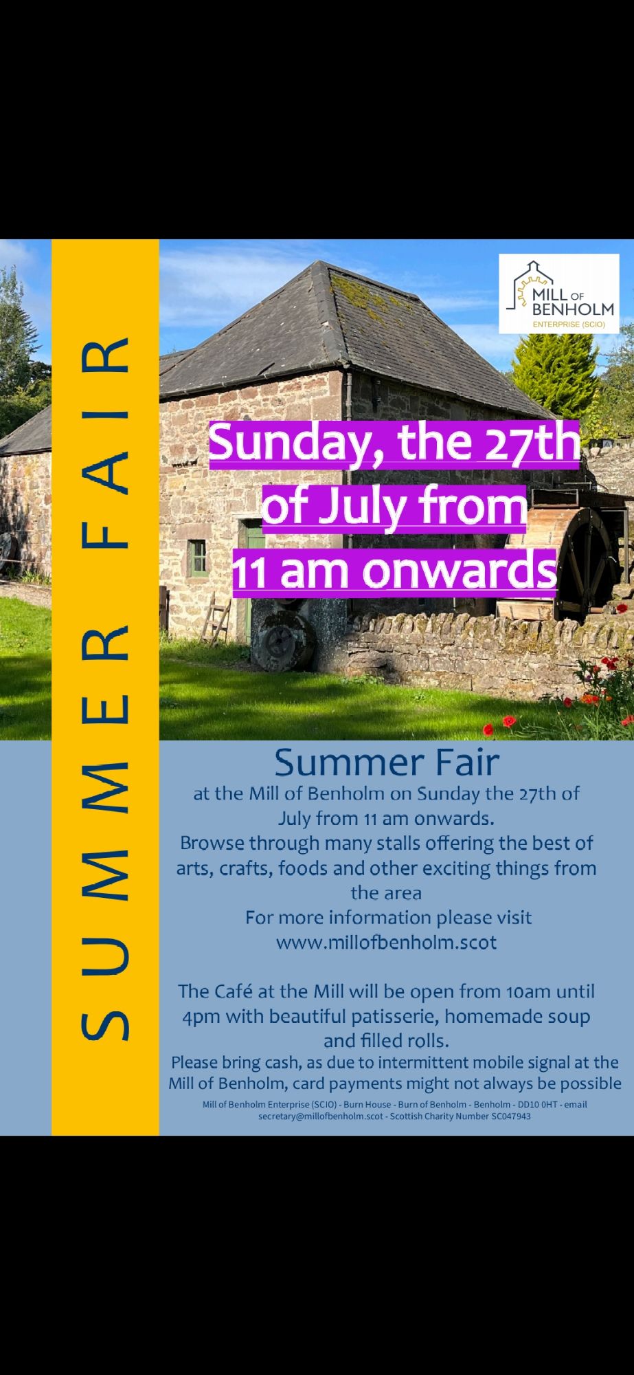 Sunday 27th July 11am to 3pm, Summer Market by Mill of Benholm Enterprise .