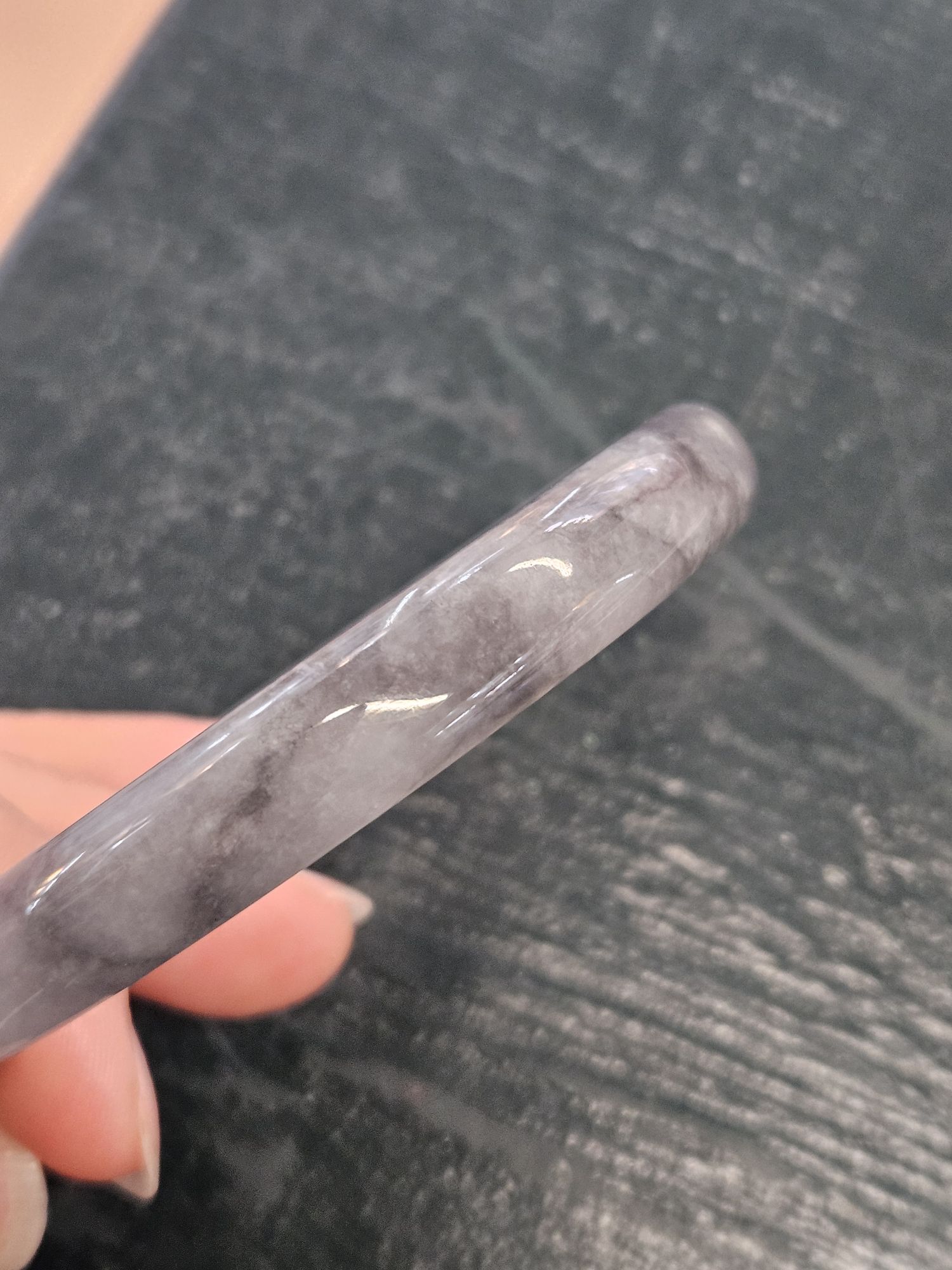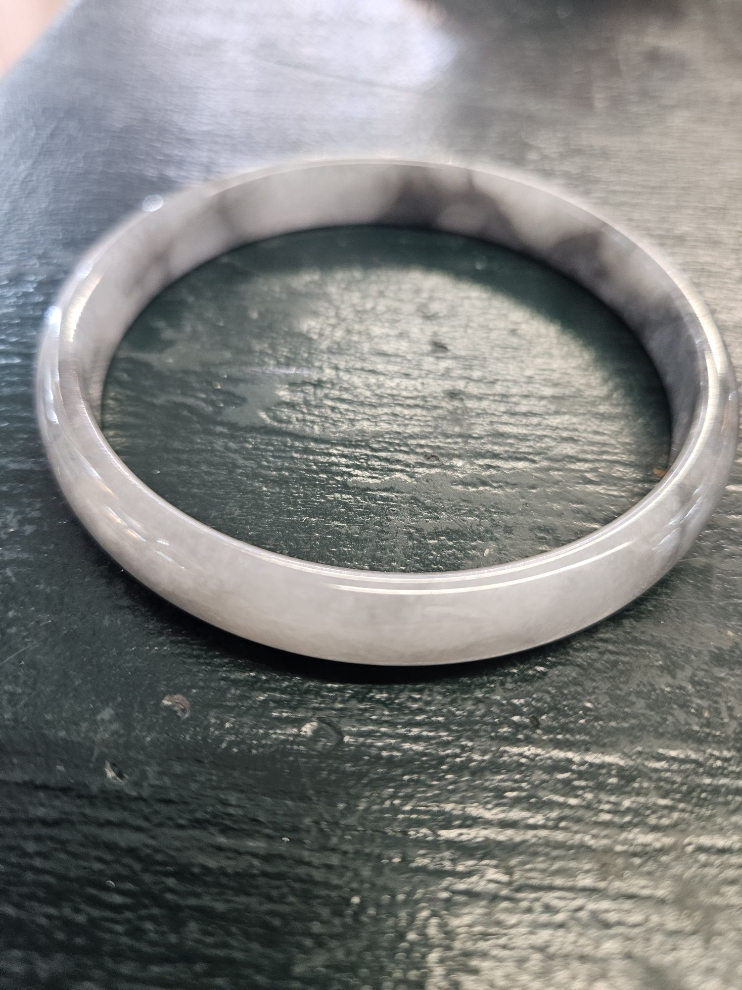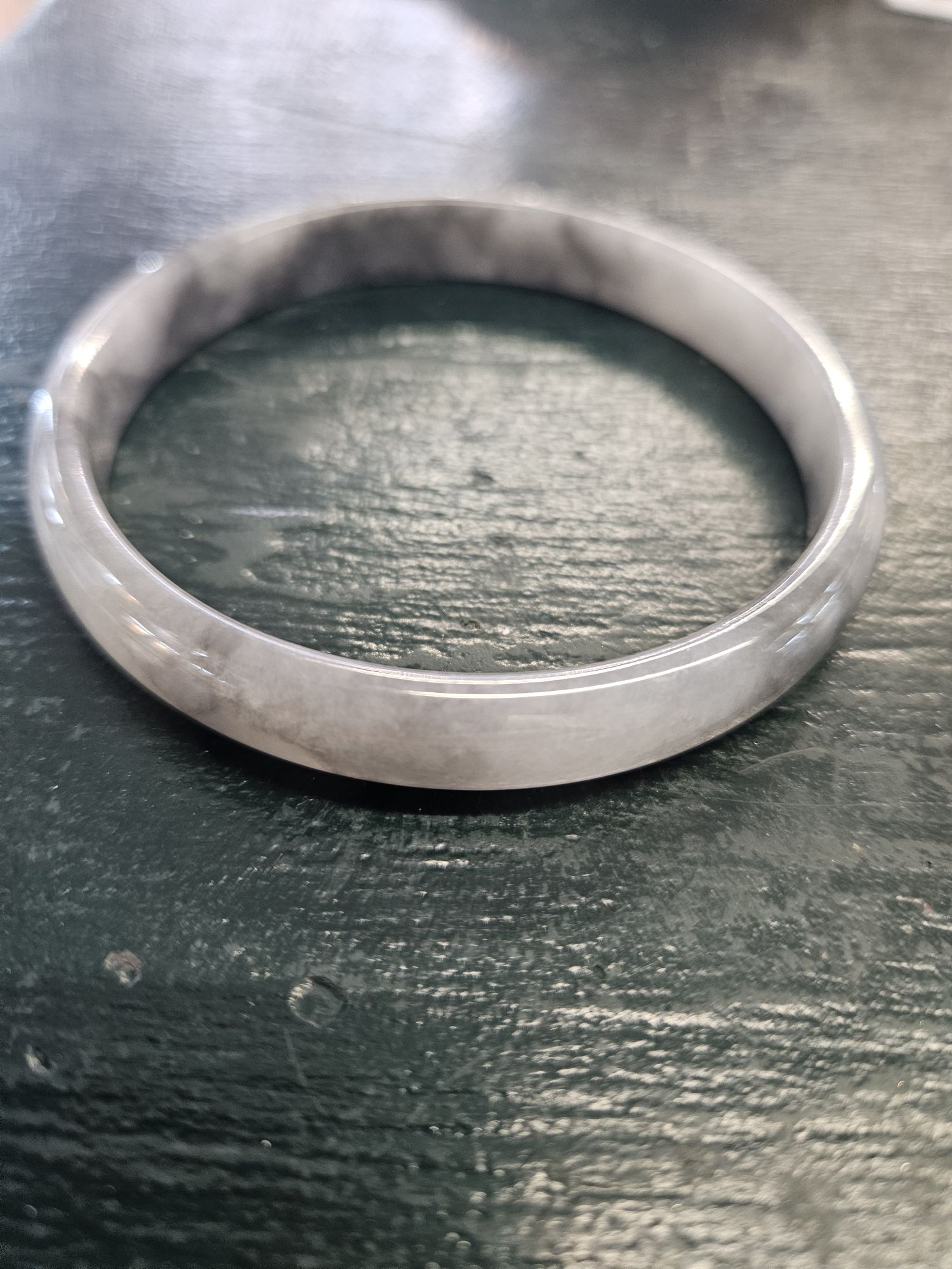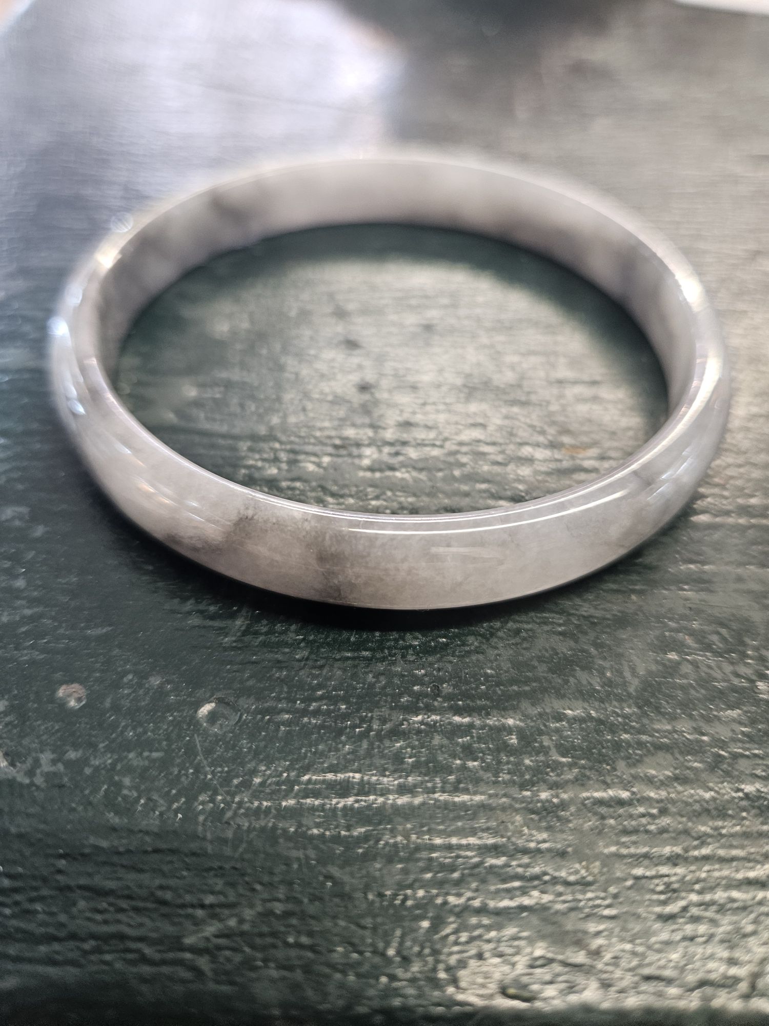 Beautiful slim smoky grey Burmese jadeite bangle, the colour is akin to a traditional chinese water colour painting. The darker grey are like clouds giving it a lovely look.