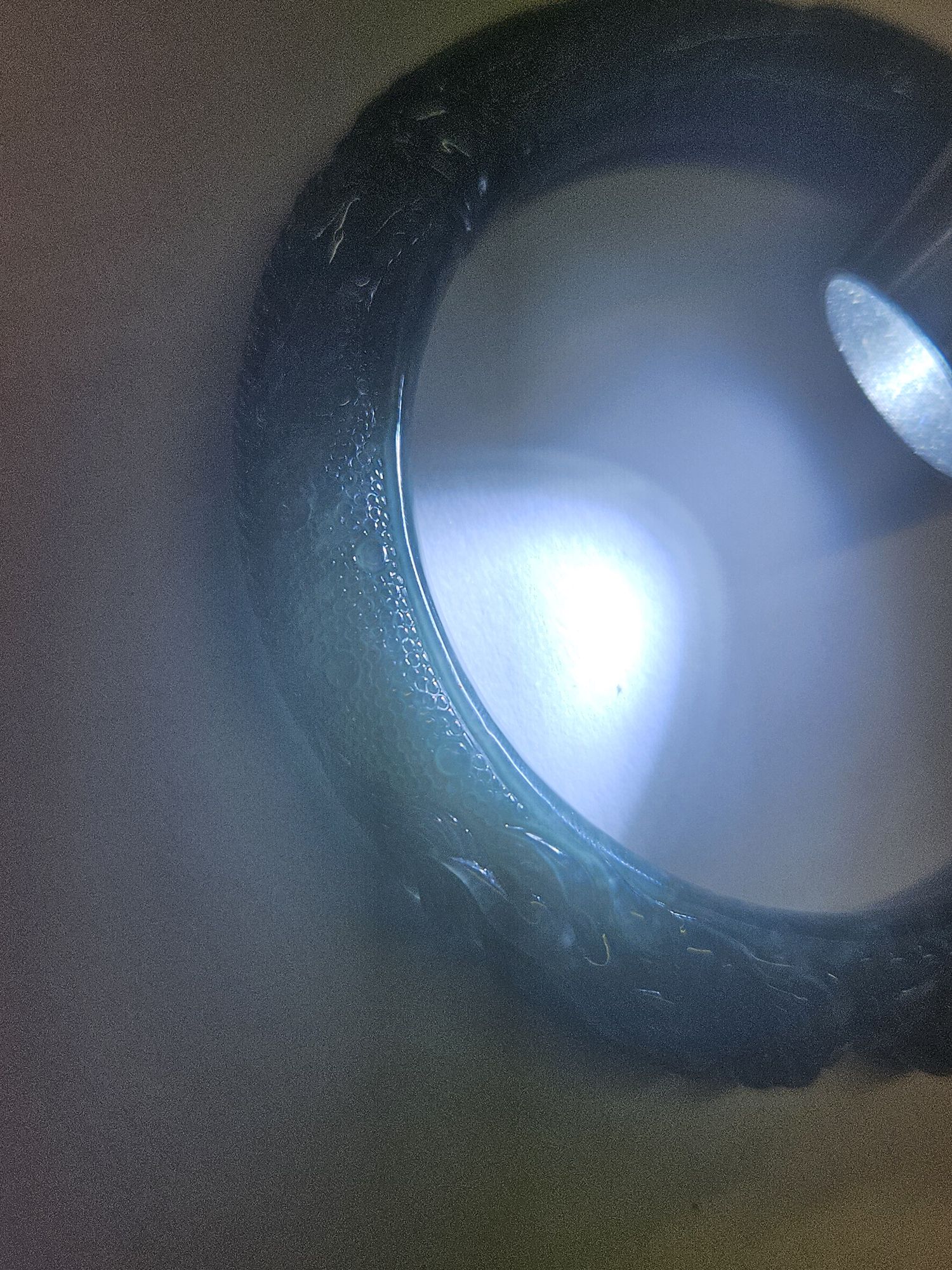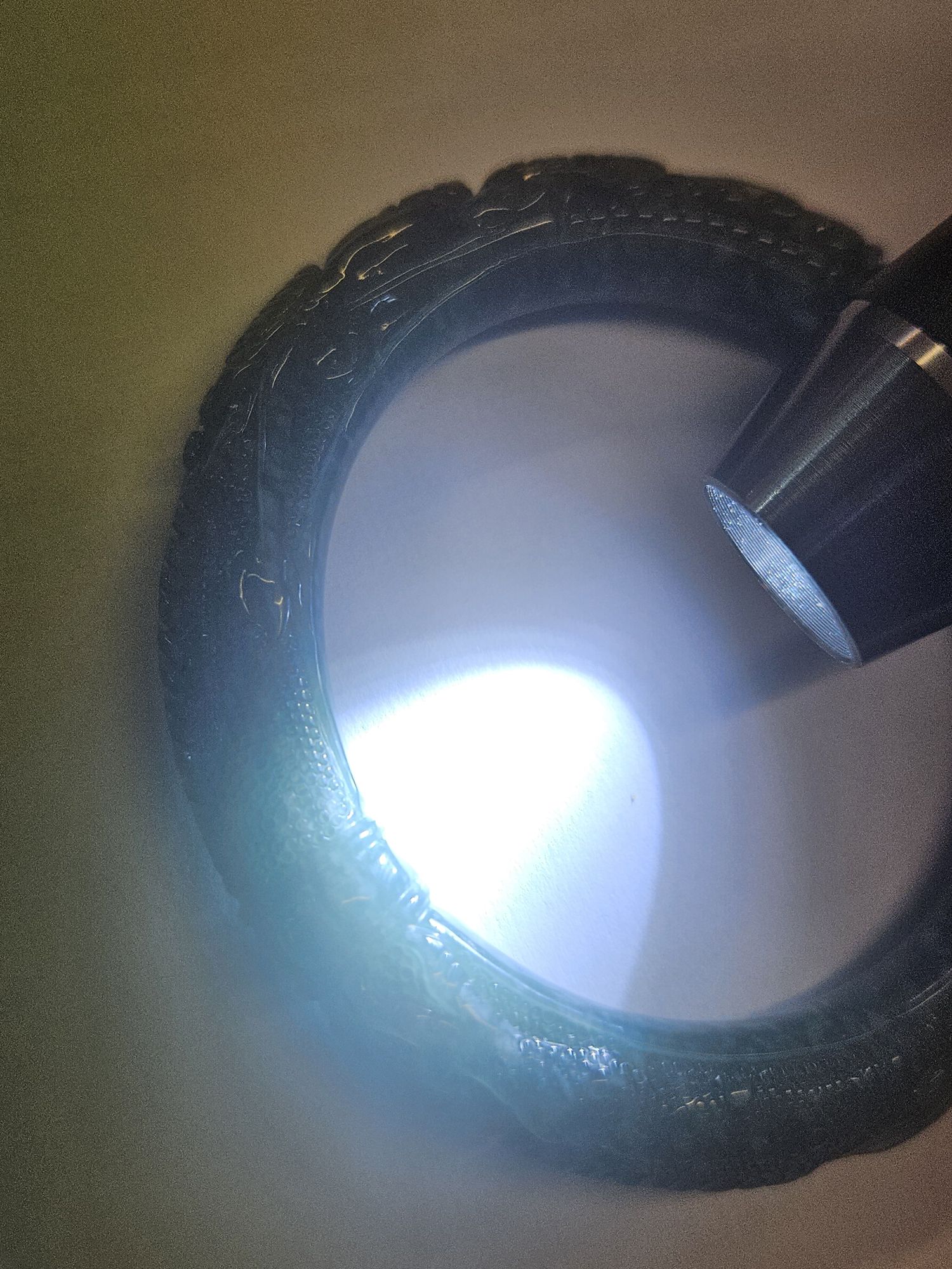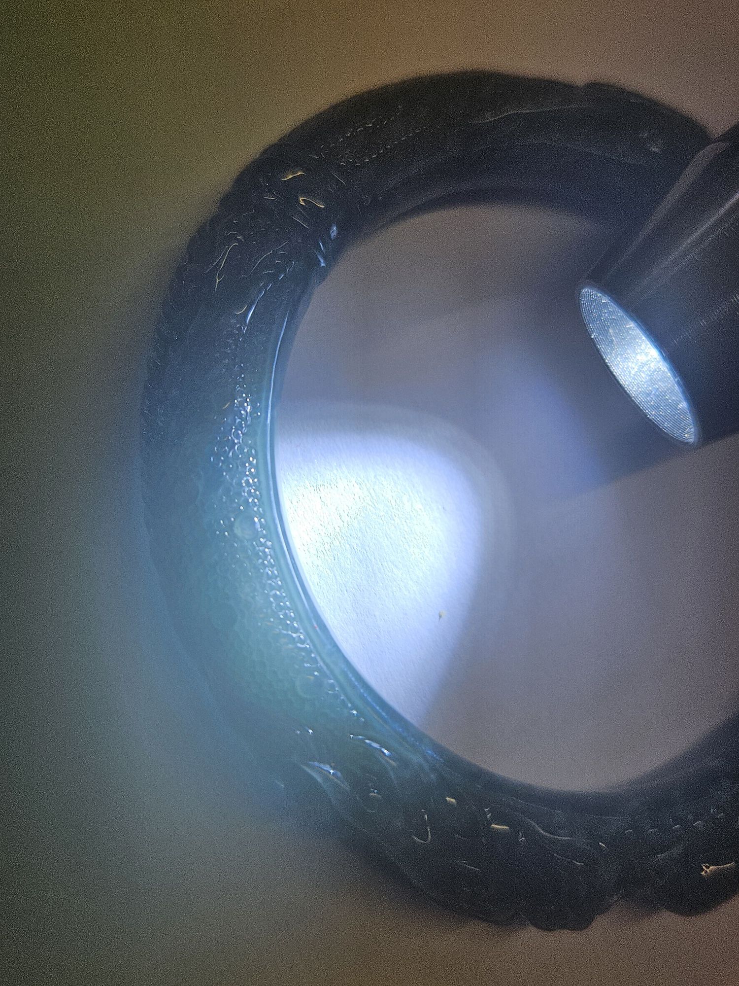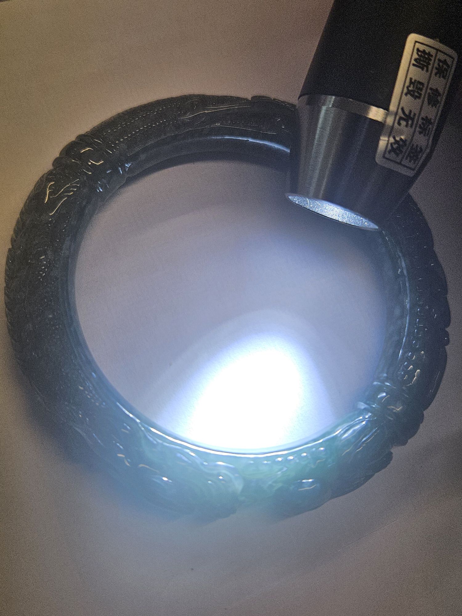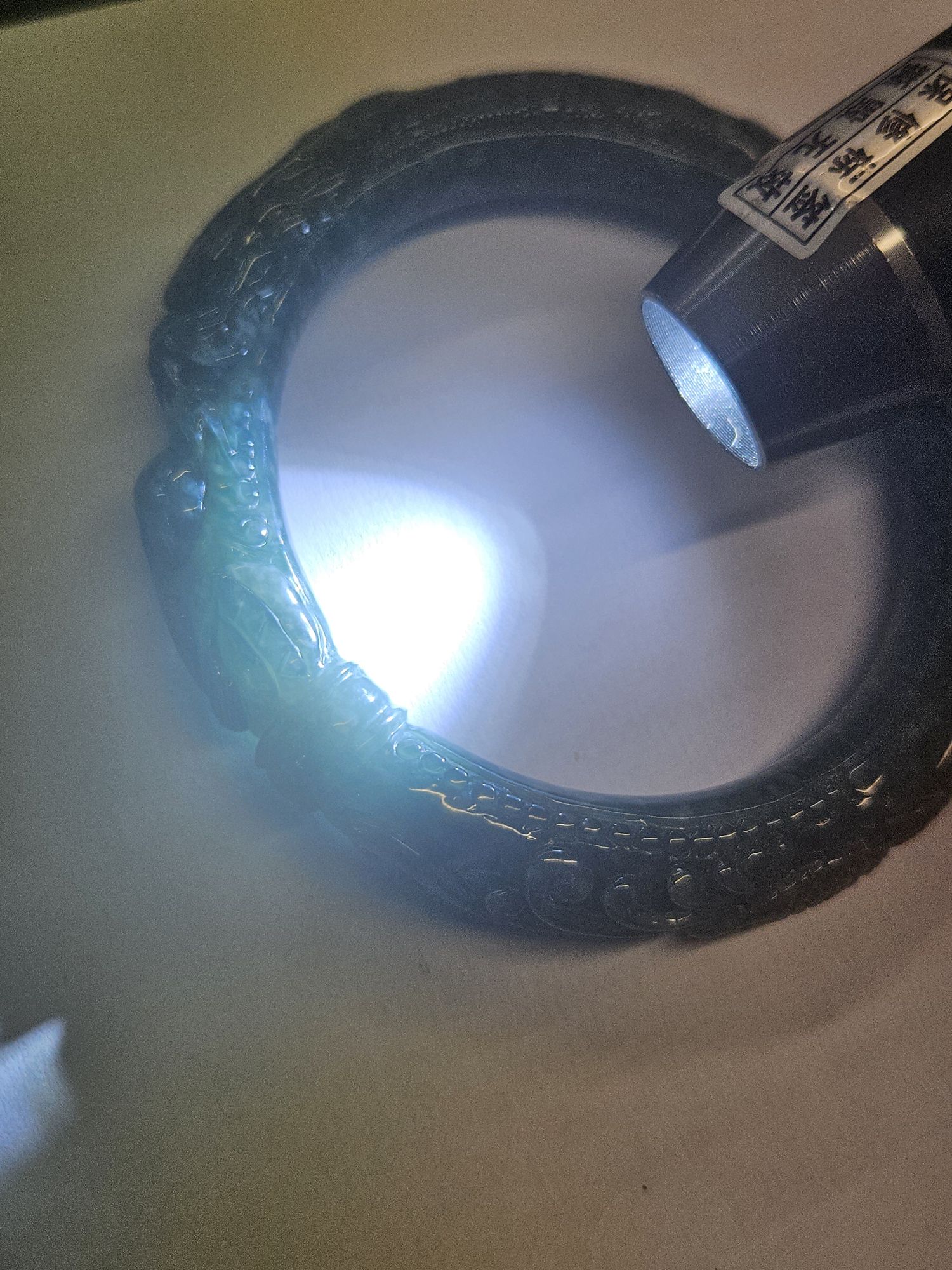 Made of Guatemala jadeite, fits up to 58mm, measures 56.8 x 10.3 x 11.2, weighs 58.71g, comes with a certificate of authenticity.